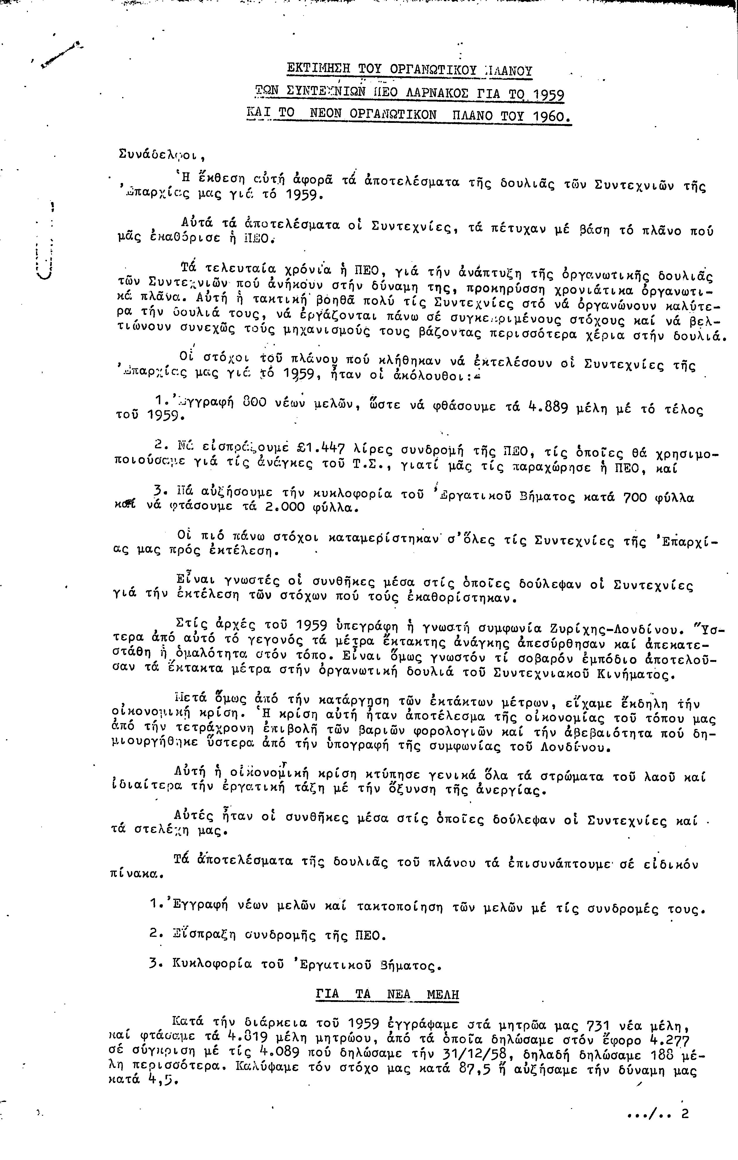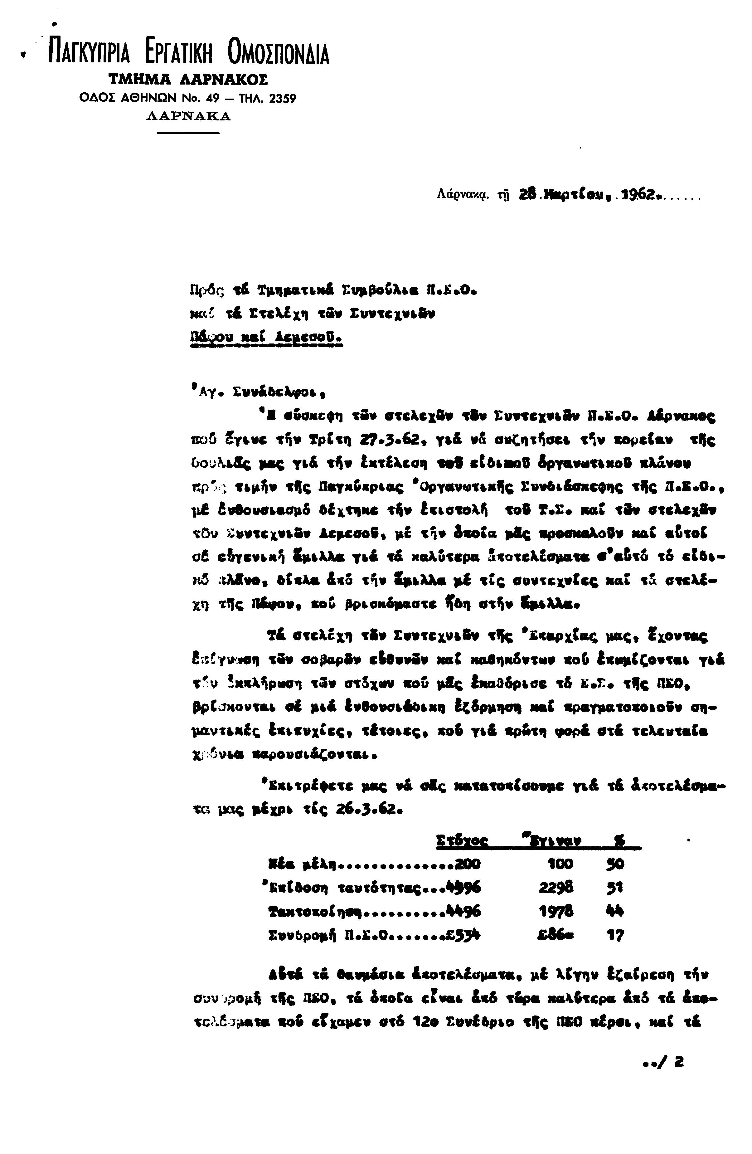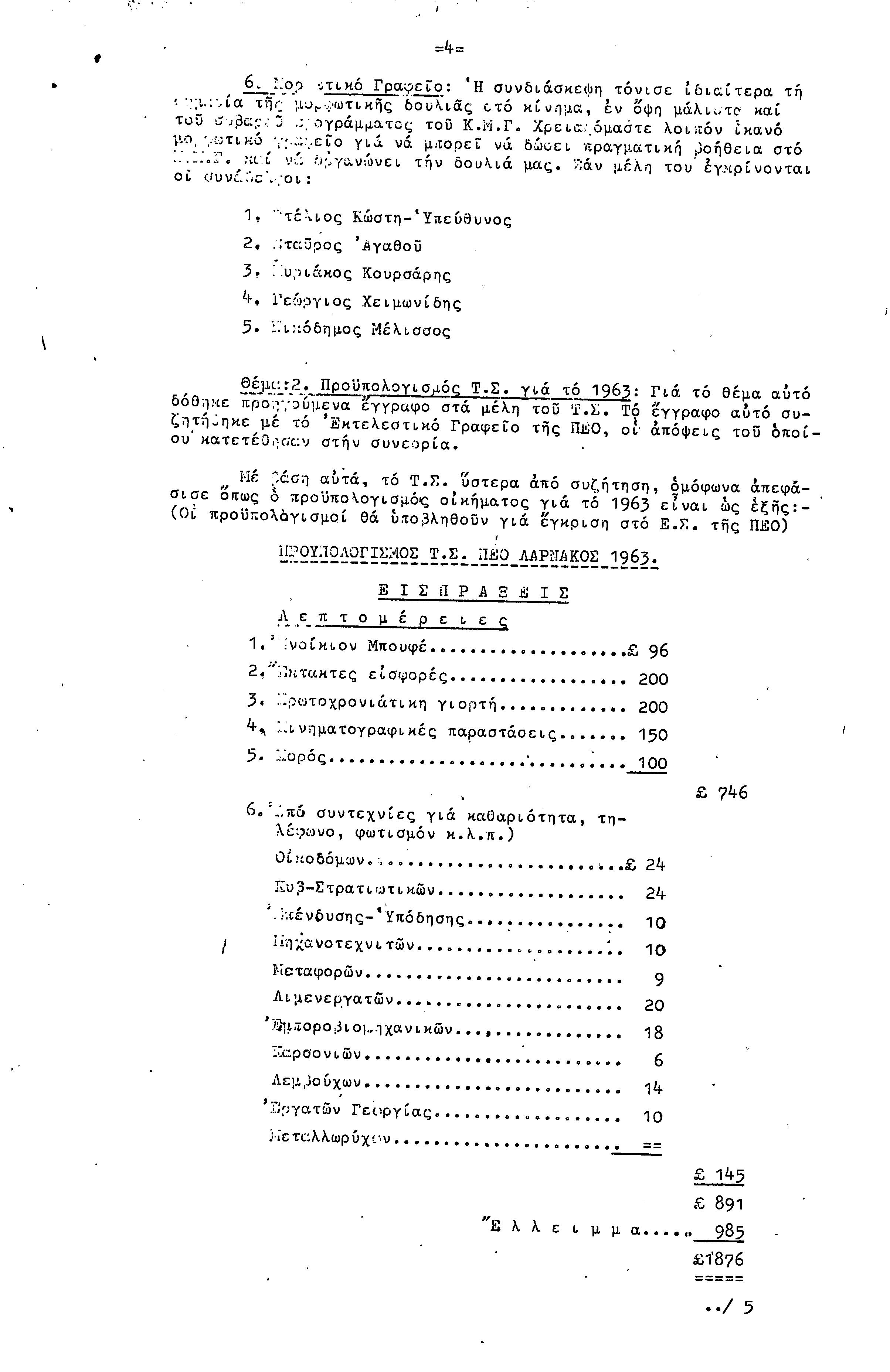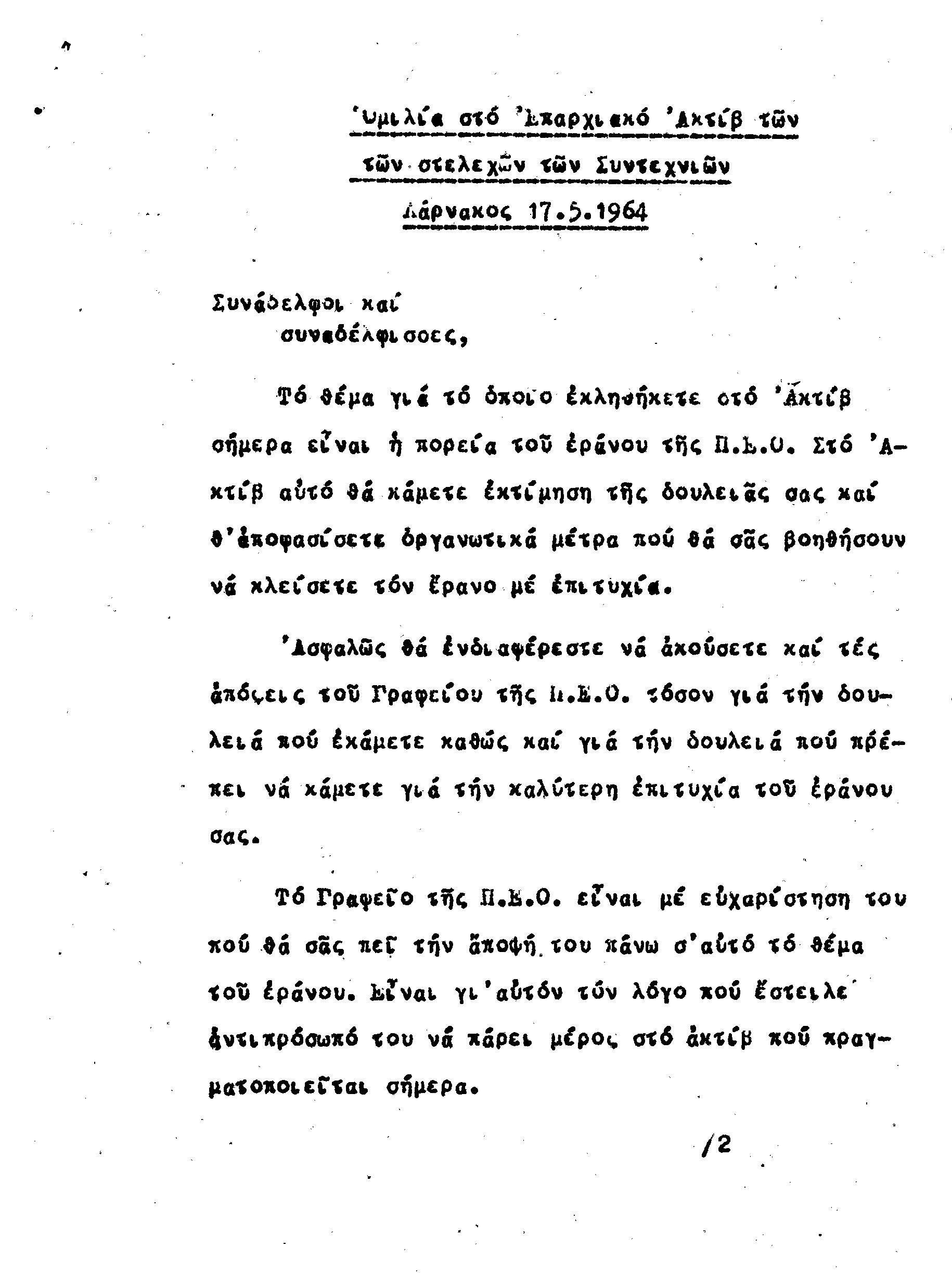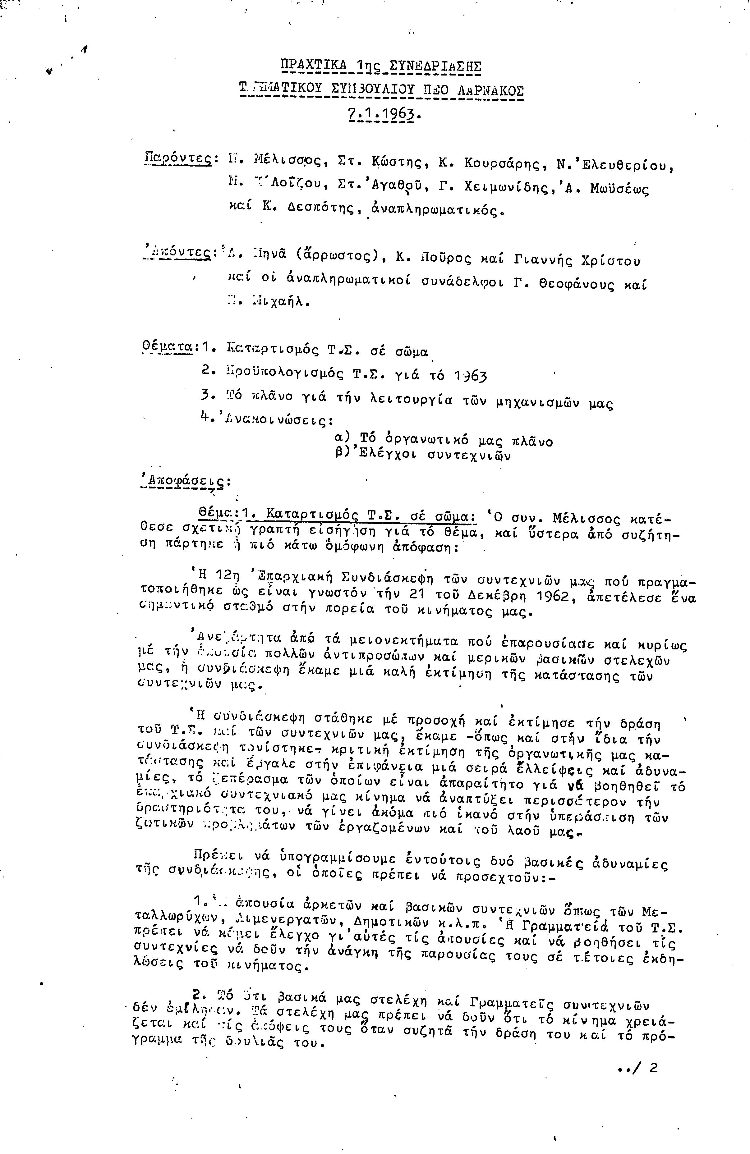 ΕΓΓΡΑΦΑ Τ.Σ. ΠΕΟ ΛΑΡΝΑΚΑΣ,1964 (ΟΡΓΑΝΩΤΙΚΟ ΠΛΑΝΟ)
