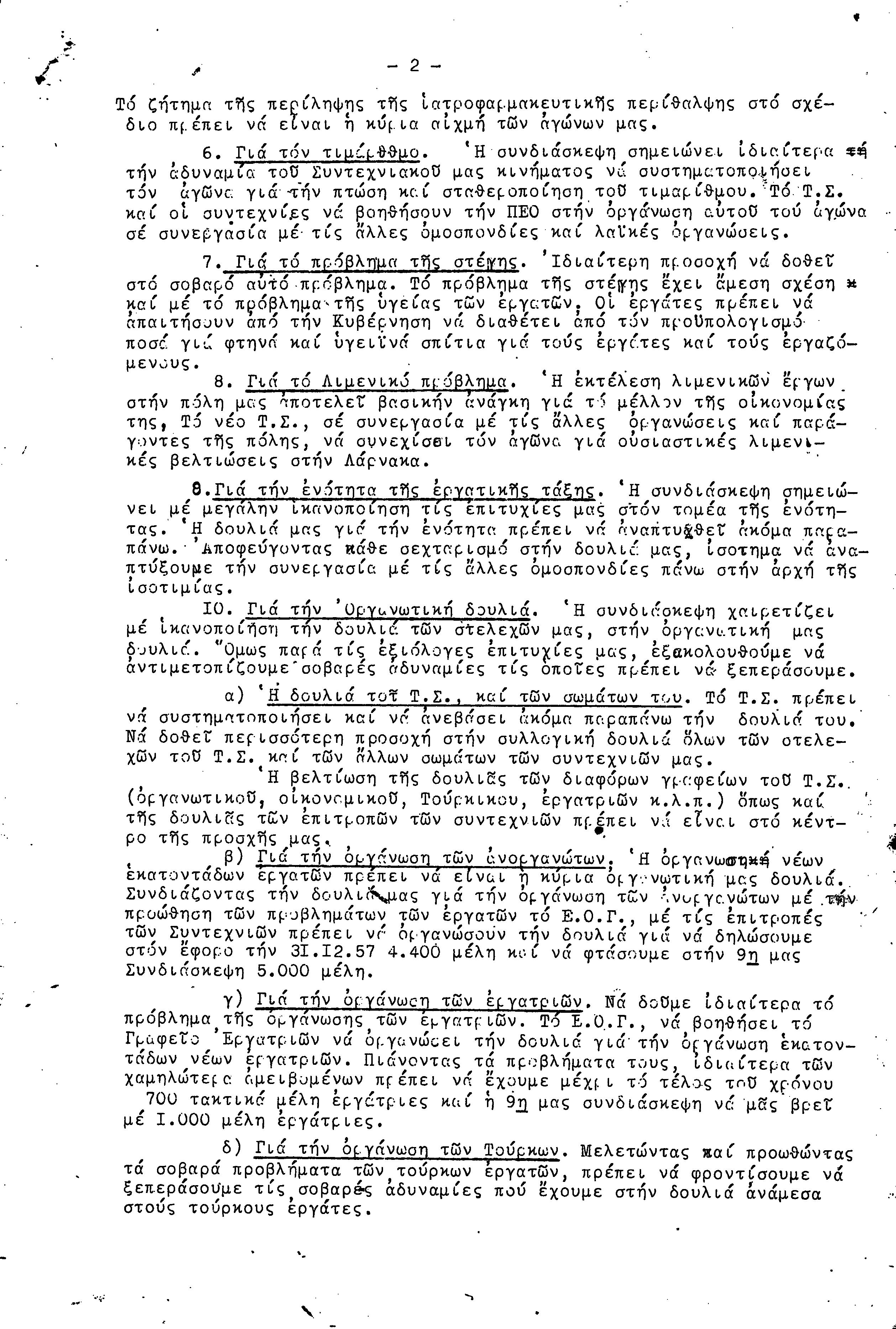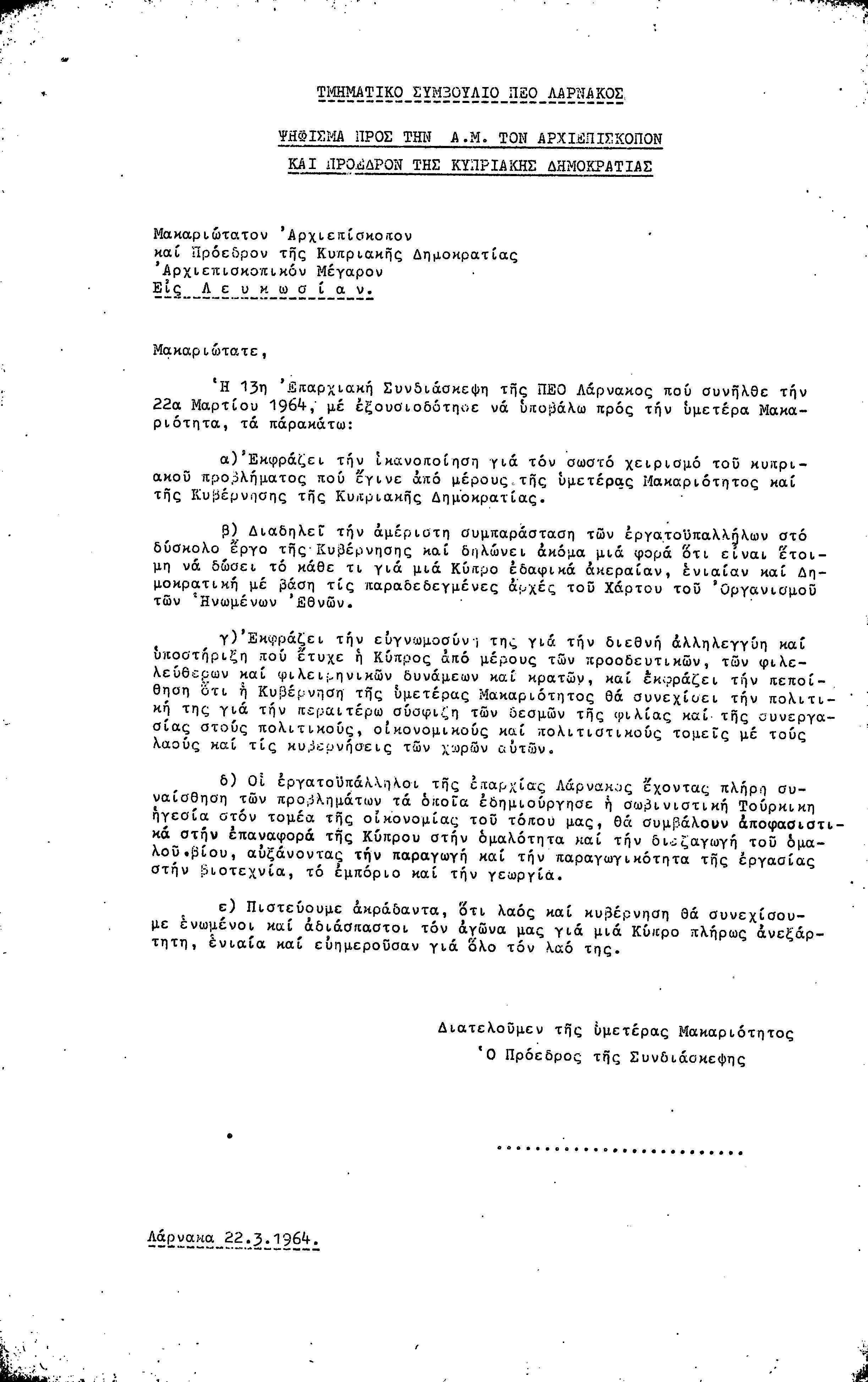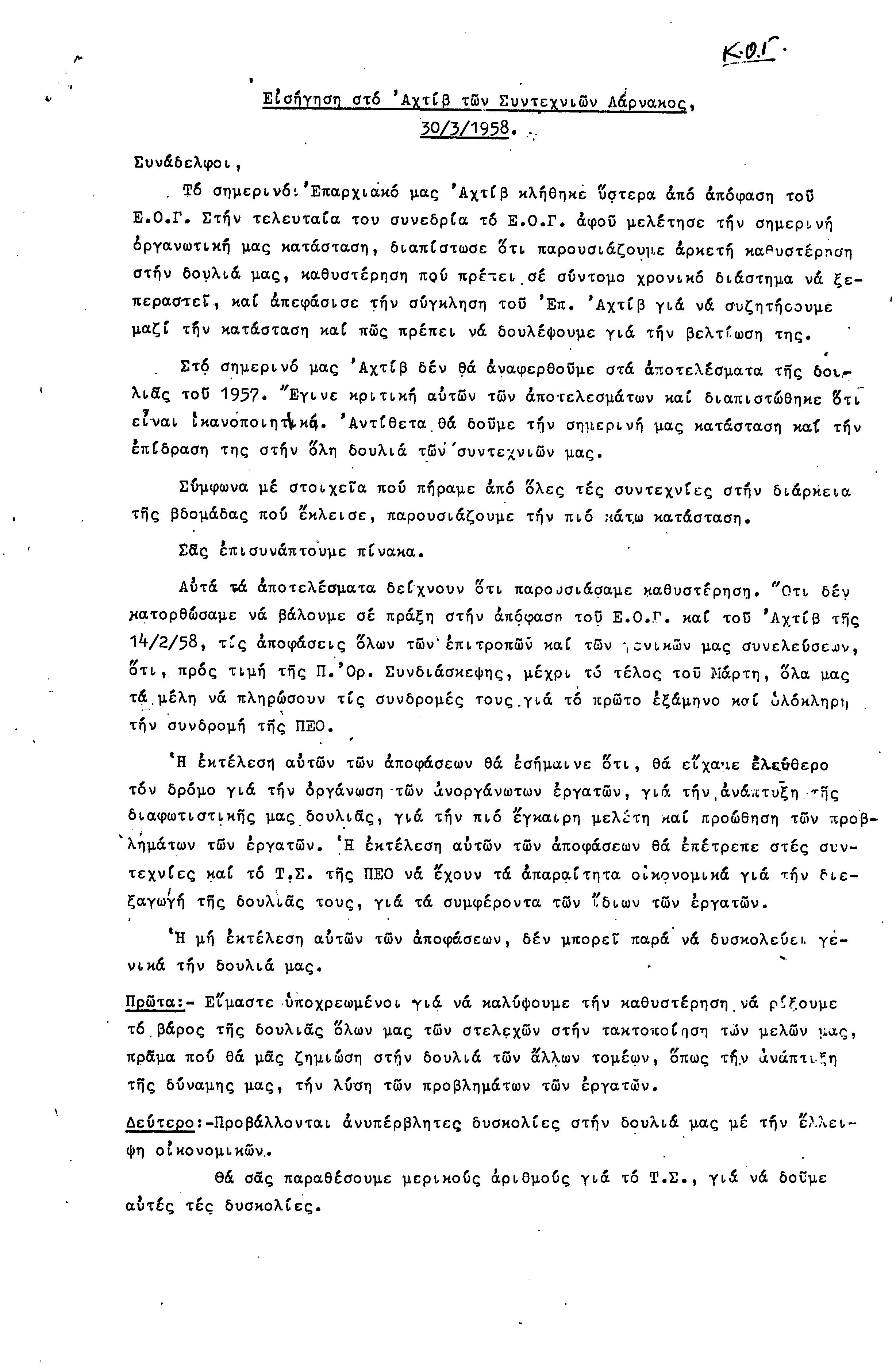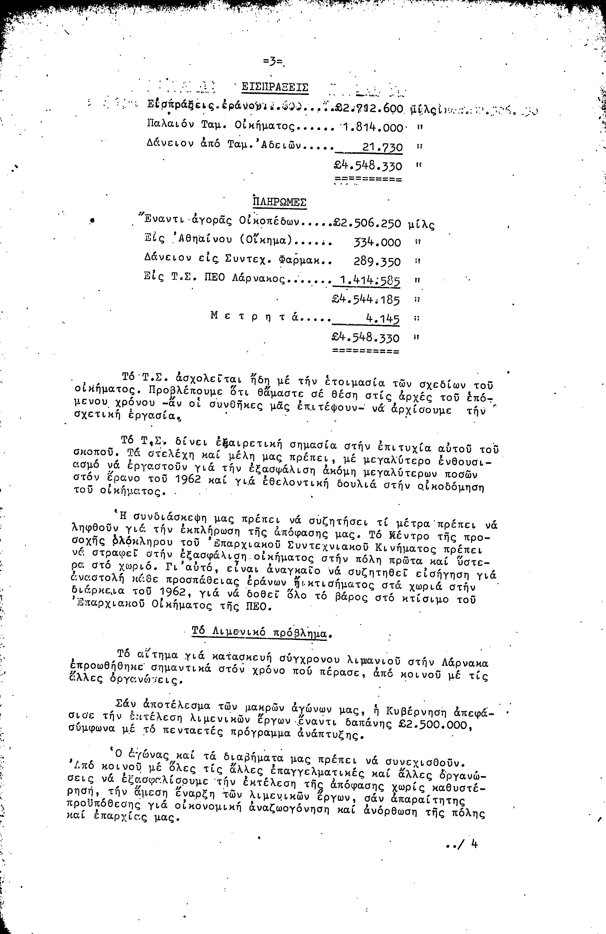 ΕΓΓΡΑΦΑ Τ.Σ. ΠΕΟ ΛΑΡΝΑΚΑΣ,1964 (ΟΡΓΑΝΩΤΙΚΟ ΠΛΑΝΟ)