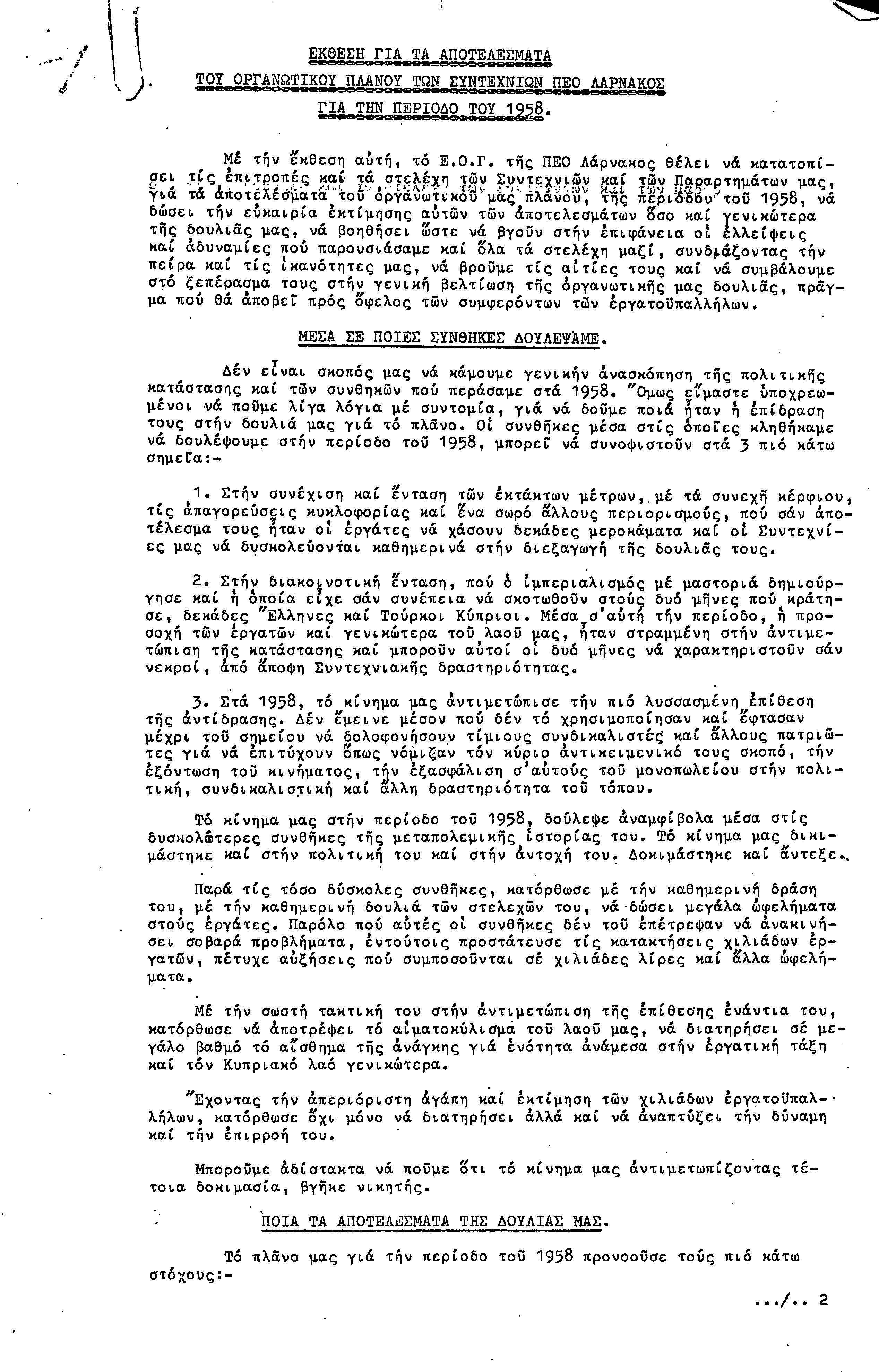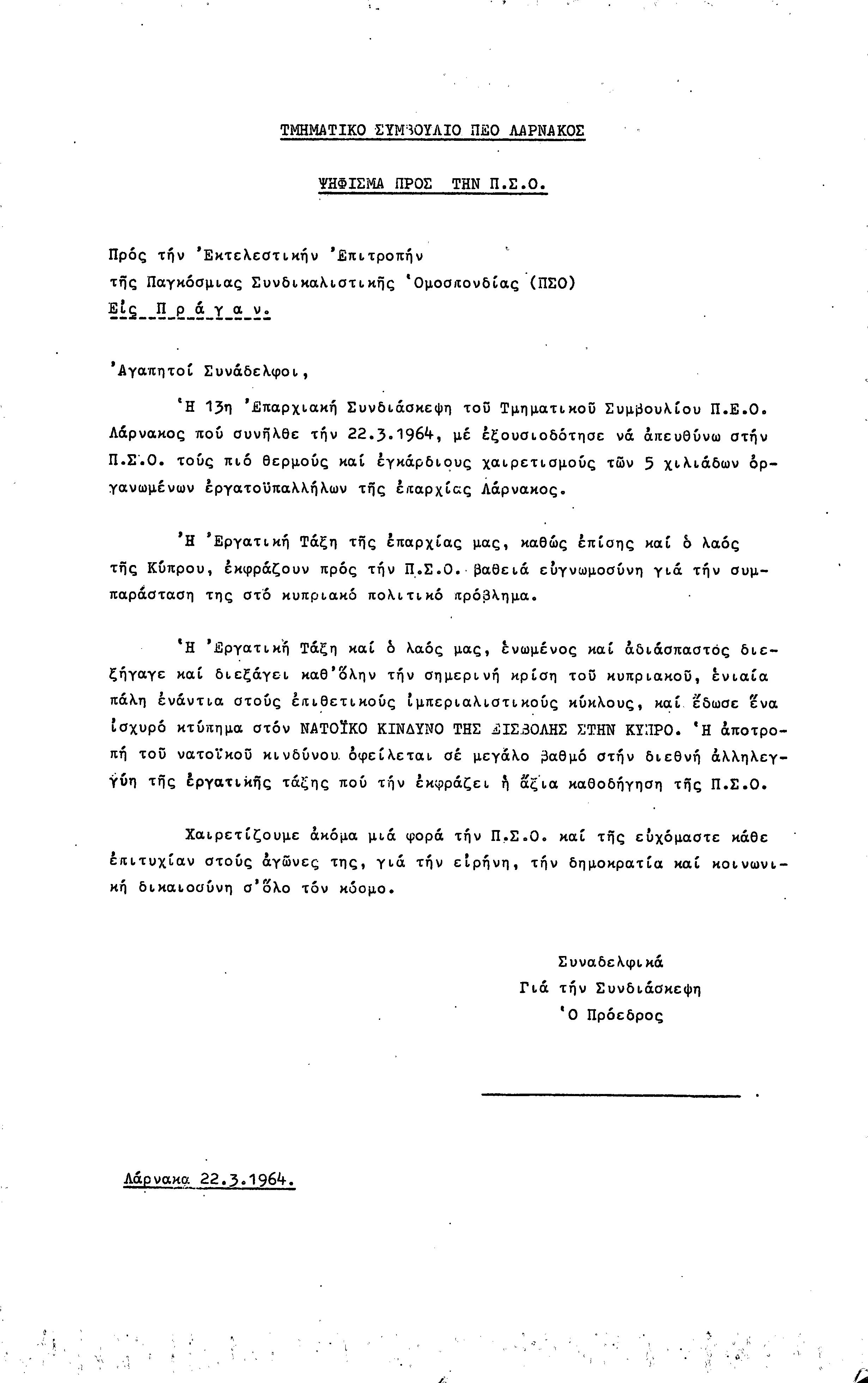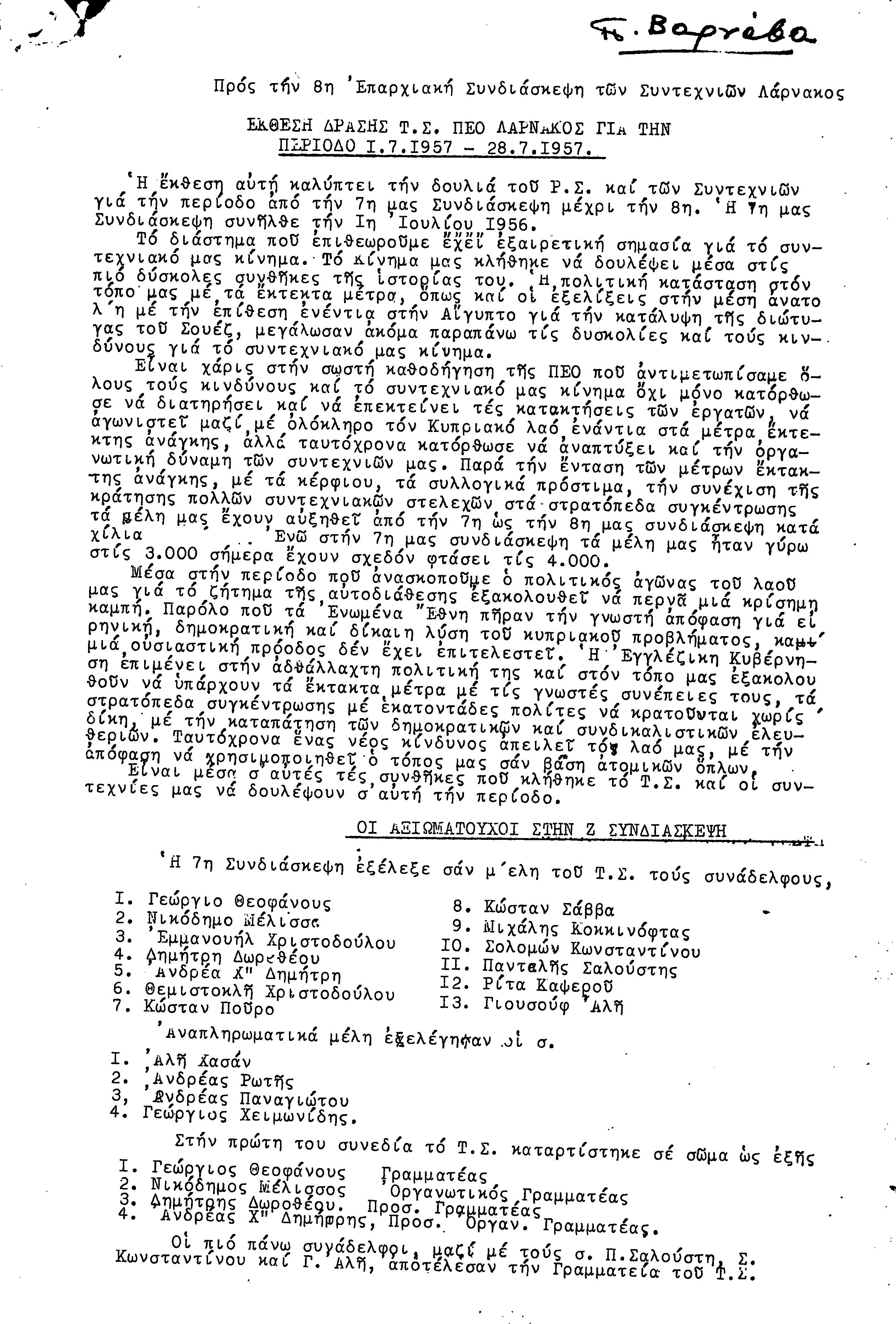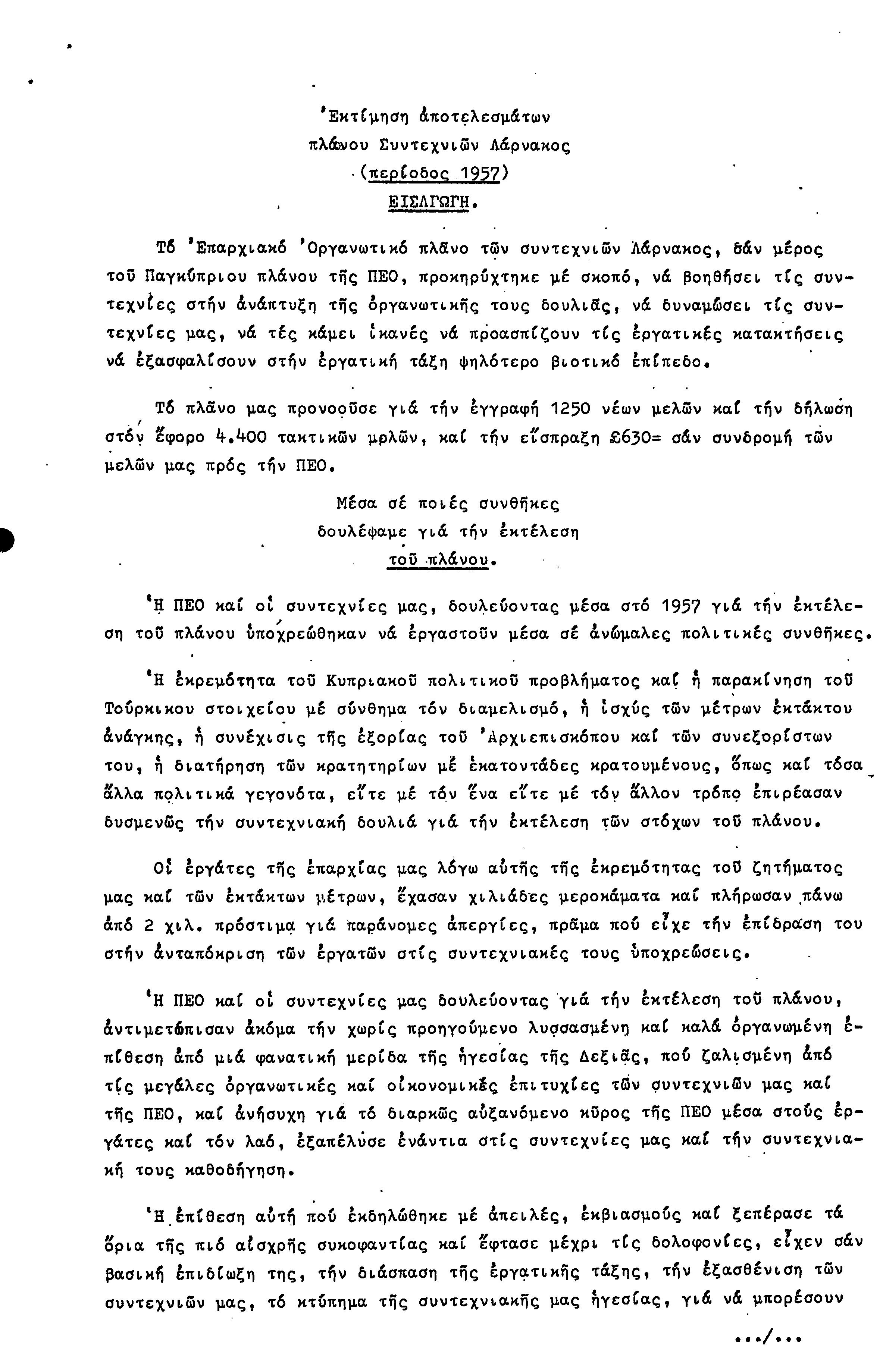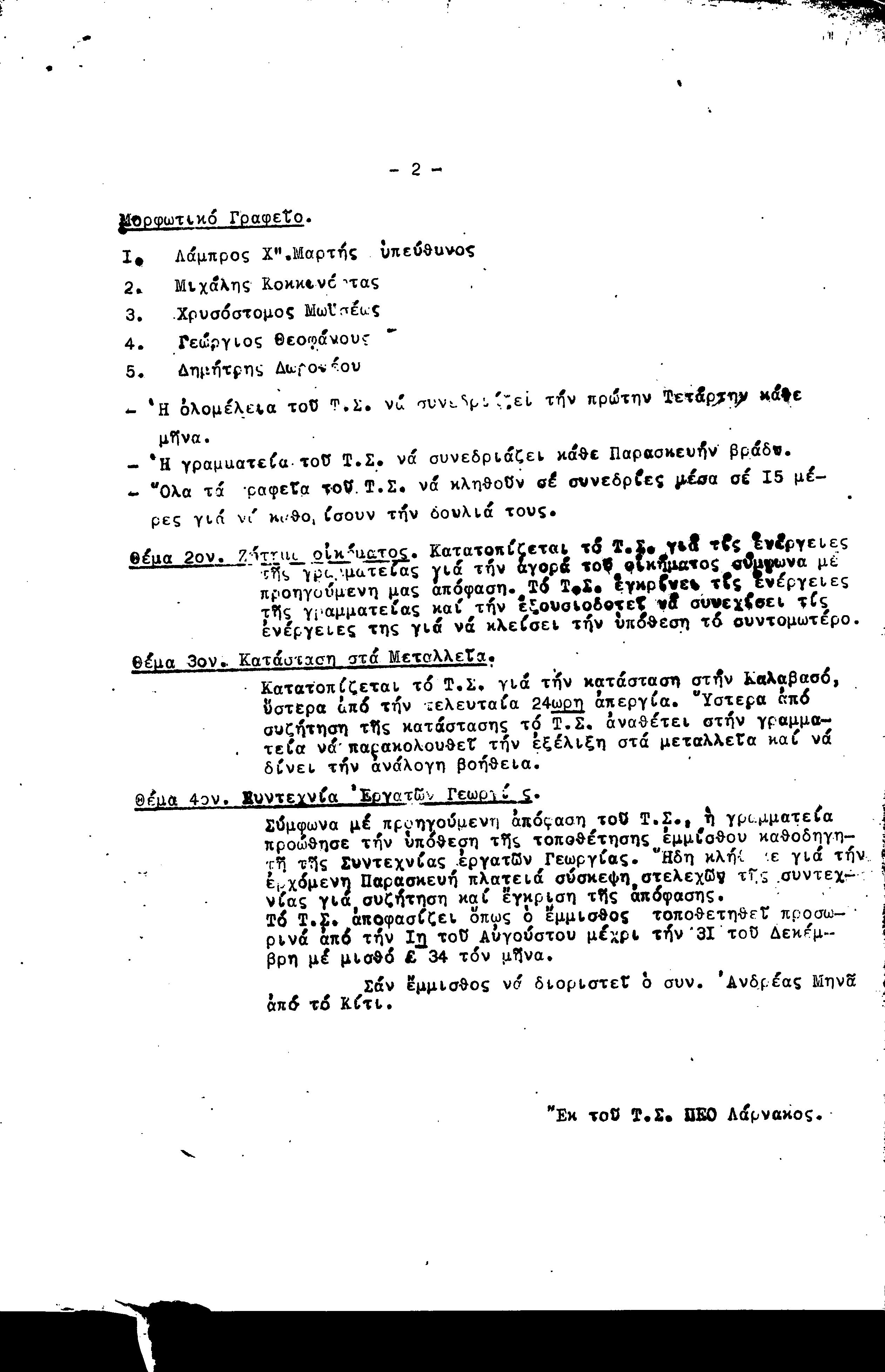 ΕΓΓΡΑΦΑ Τ.Σ. ΠΕΟ ΛΑΡΝΑΚΑΣ,1964 (ΟΡΓΑΝΩΤΙΚΟ ΠΛΑΝΟ)