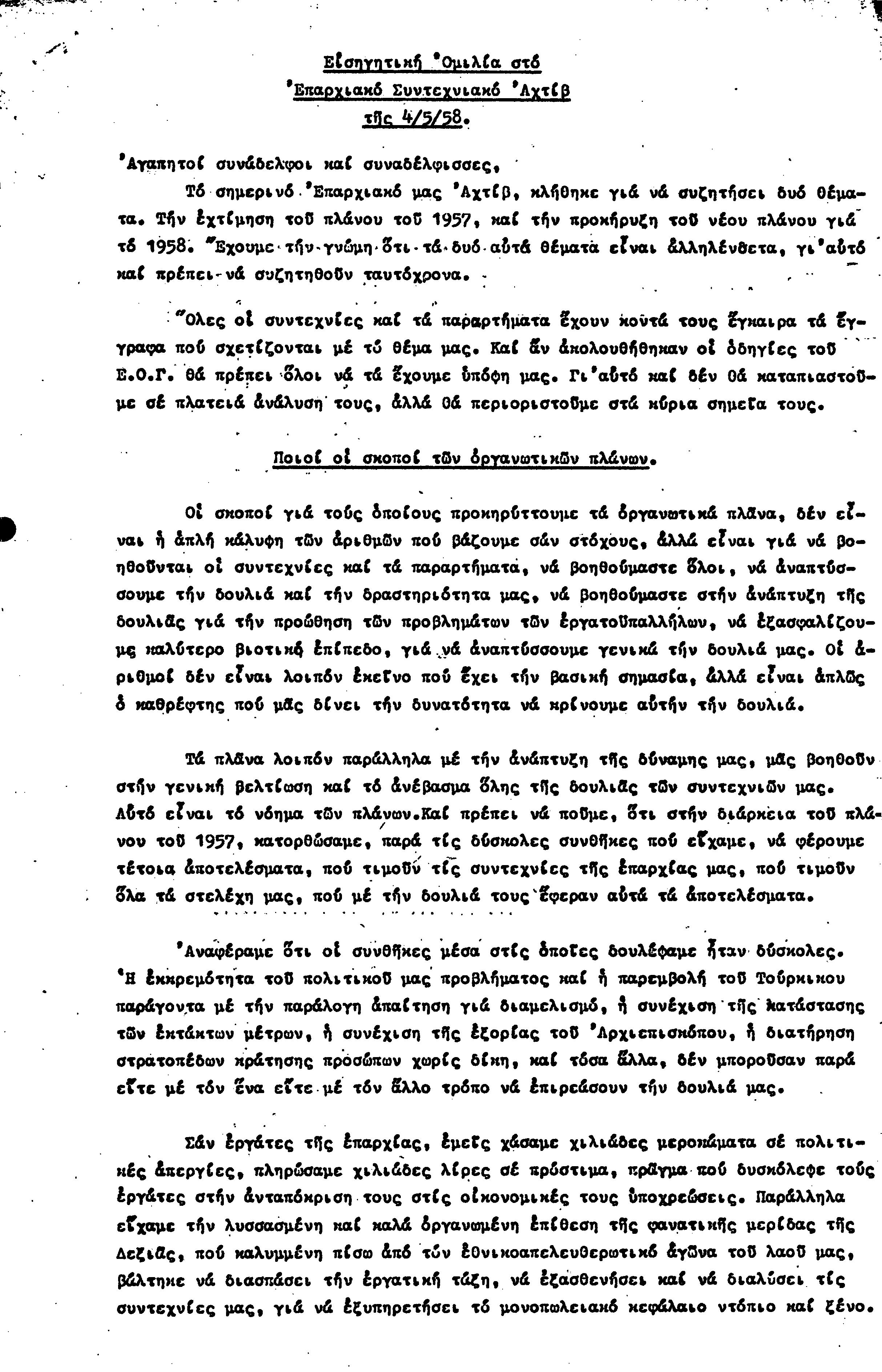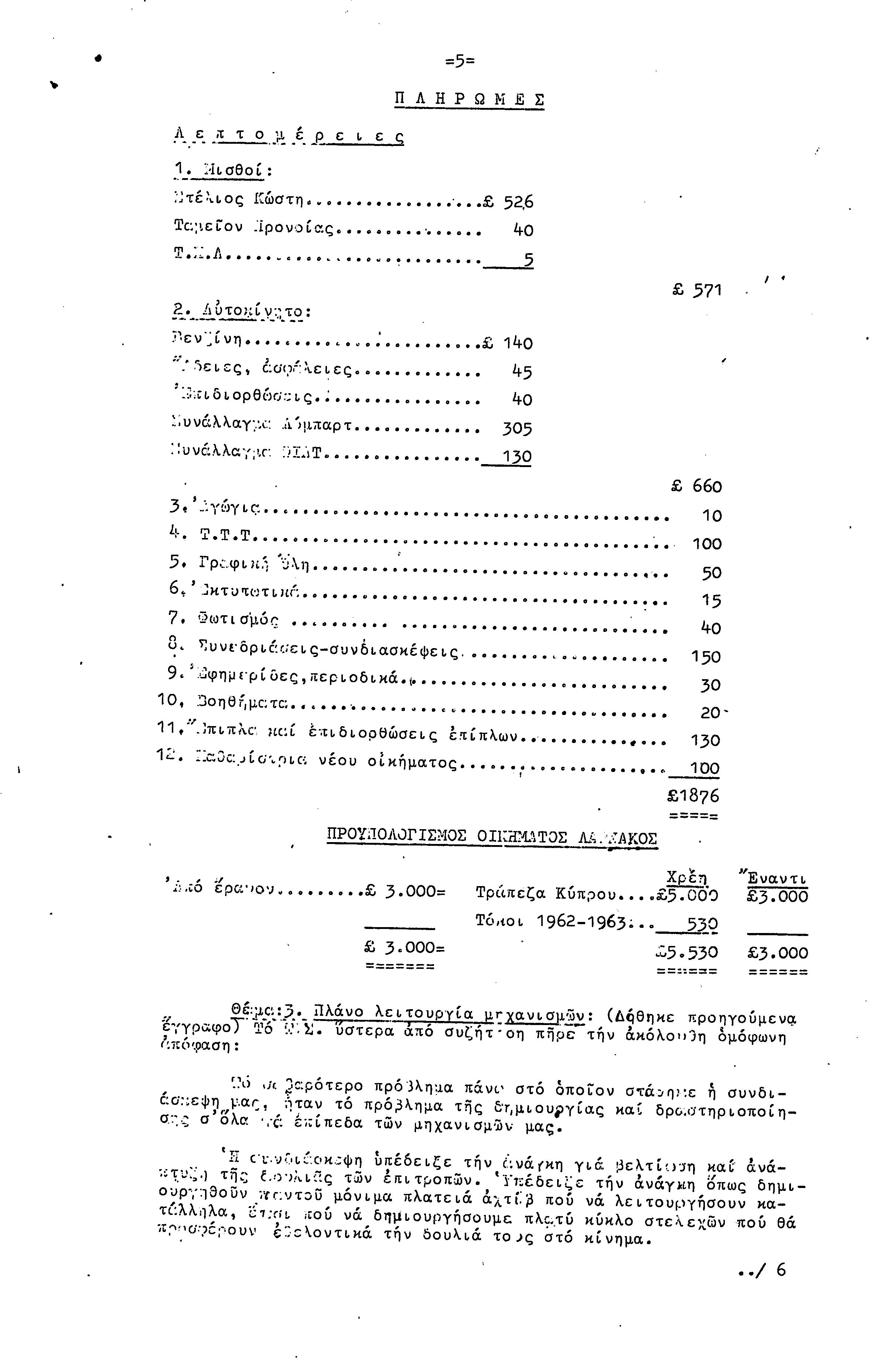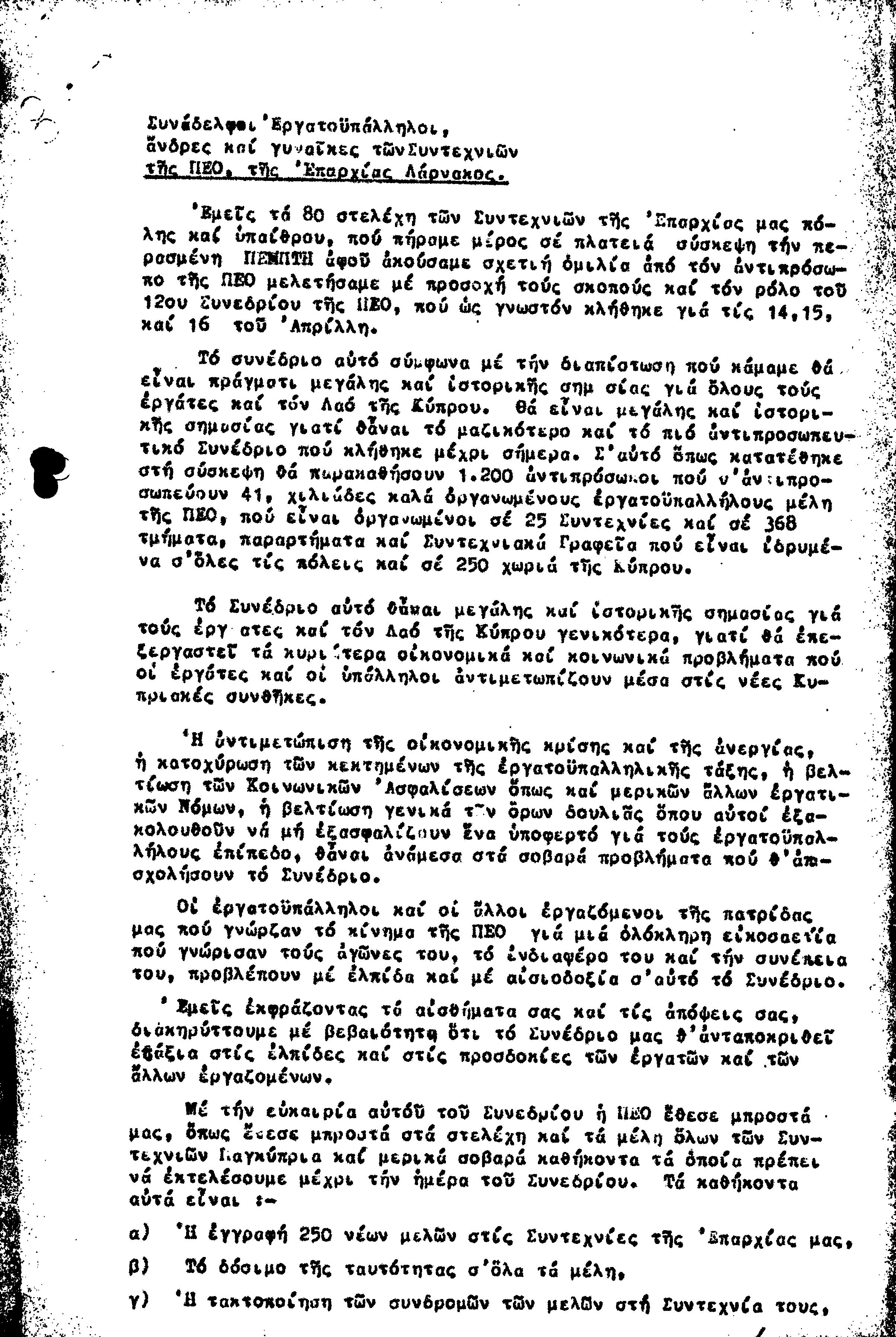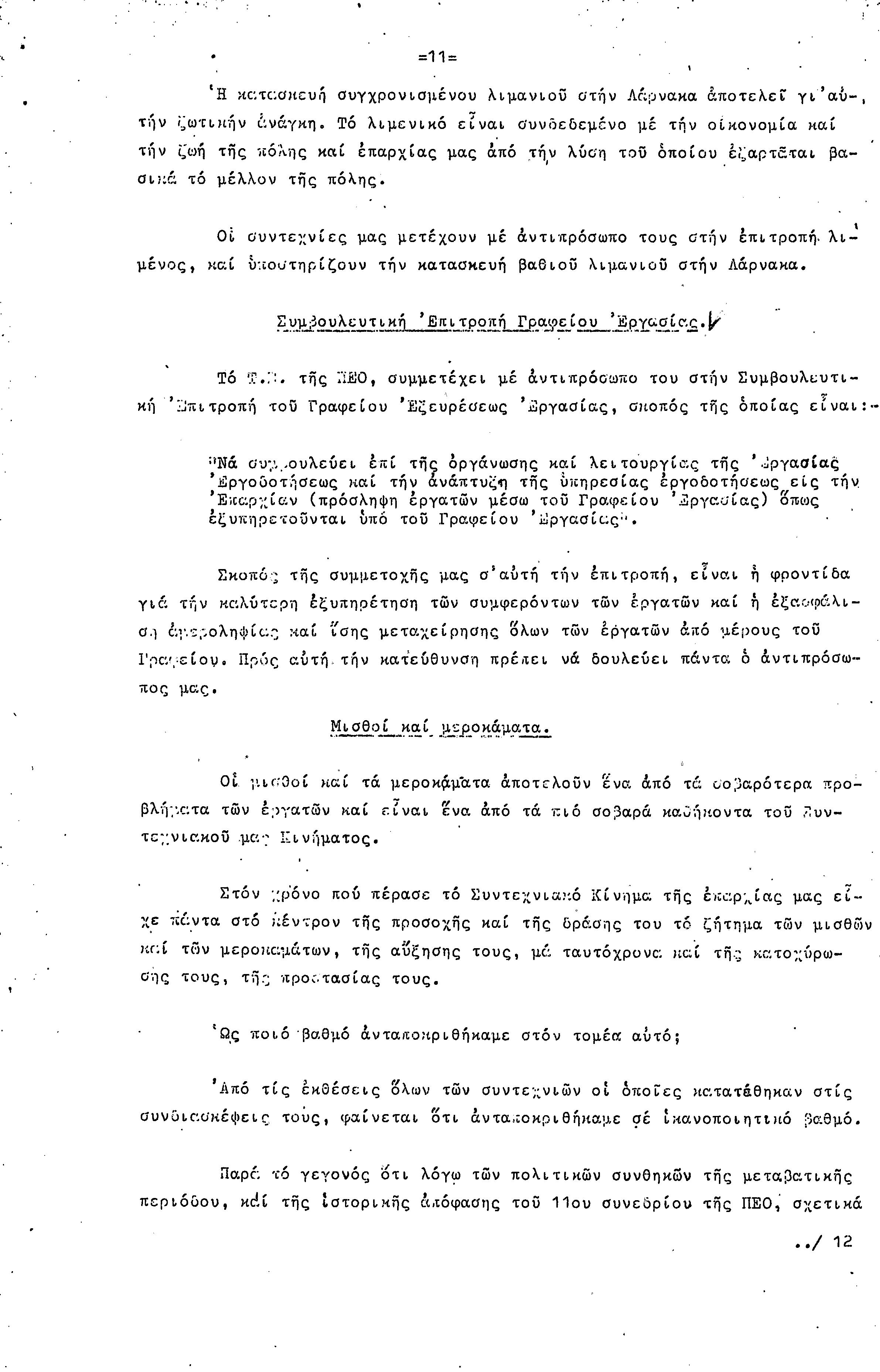 ΕΓΓΡΑΦΑ Τ.Σ. ΠΕΟ ΛΑΡΝΑΚΑΣ,1964 (ΟΡΓΑΝΩΤΙΚΟ ΠΛΑΝΟ)