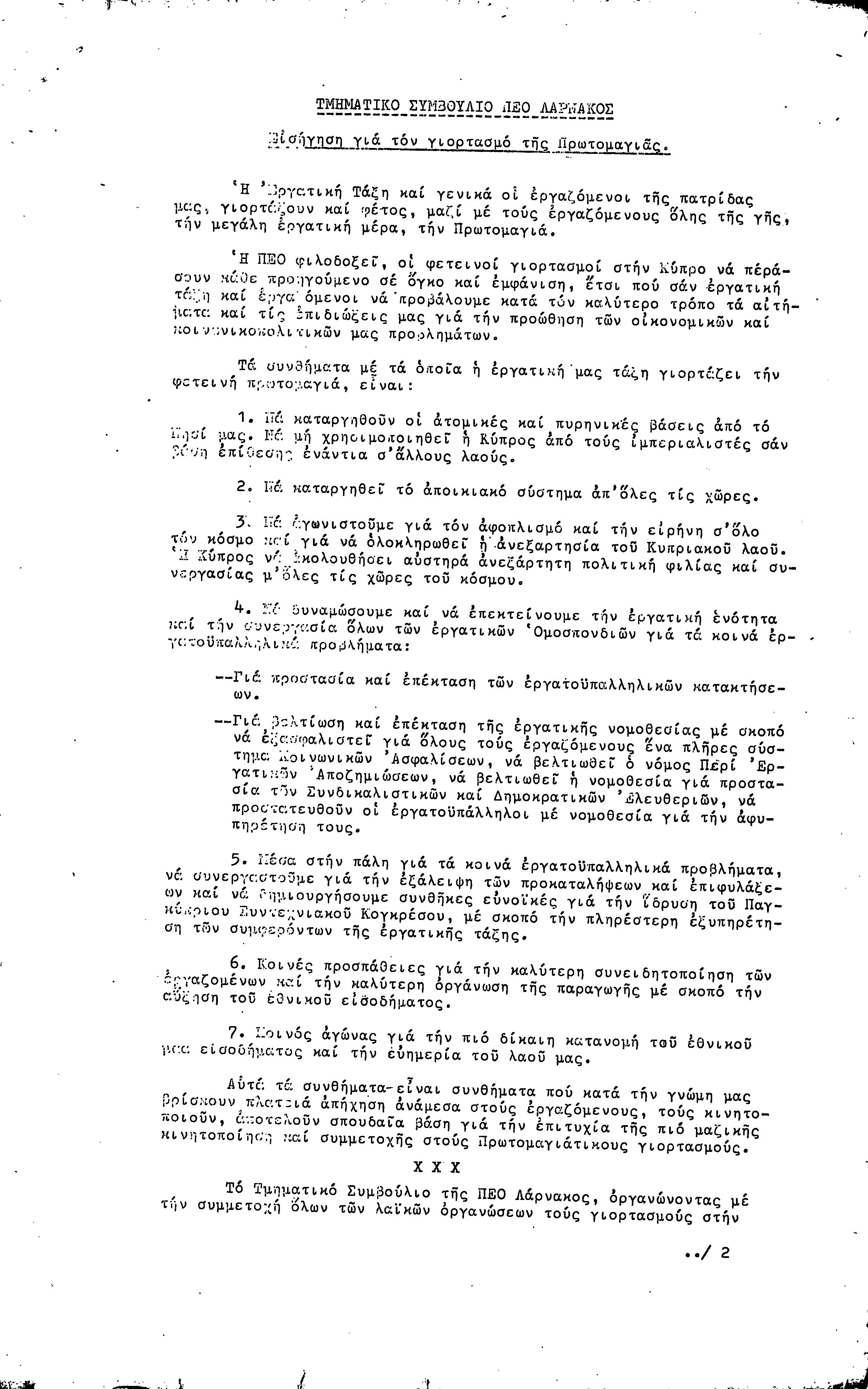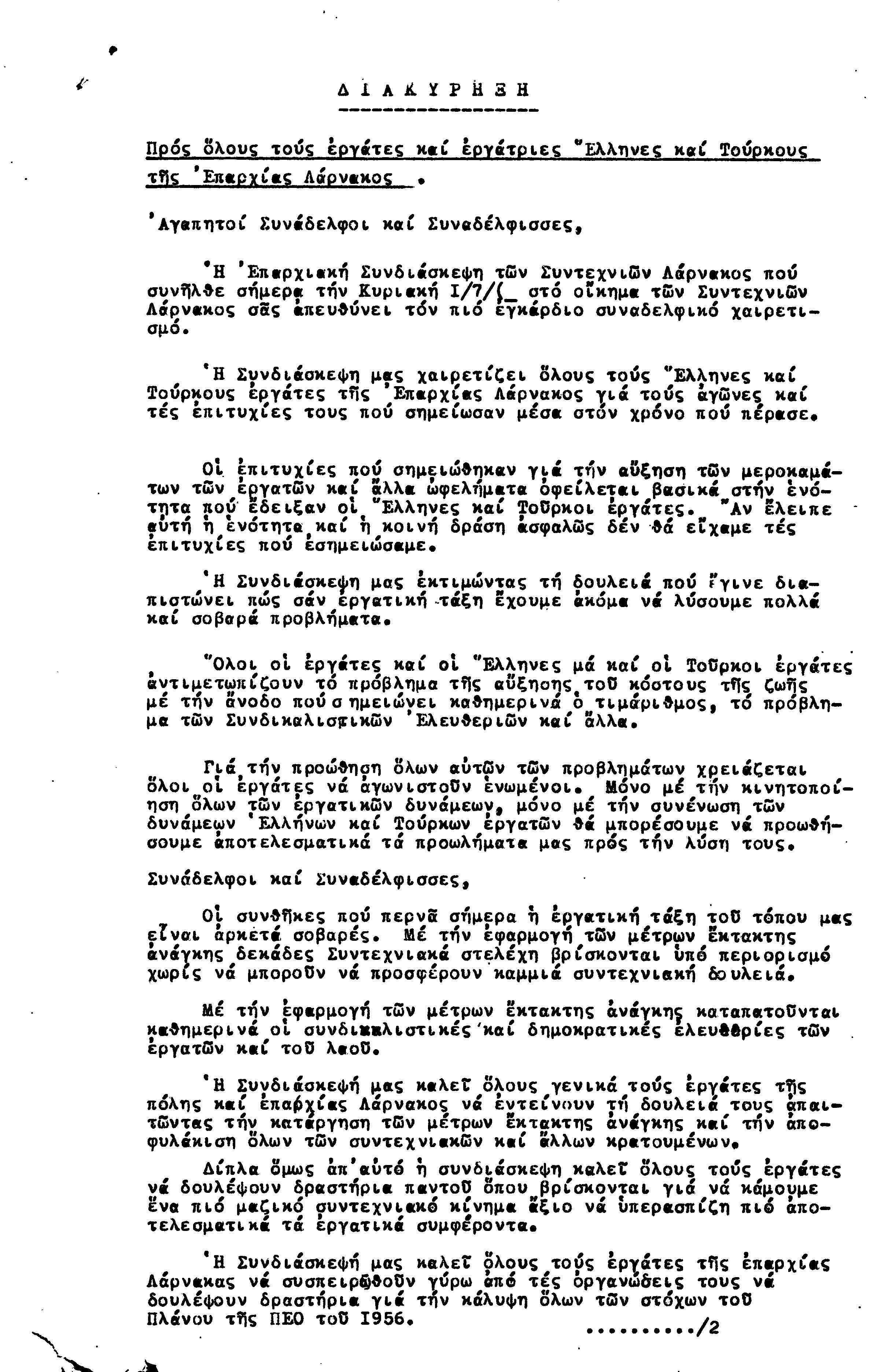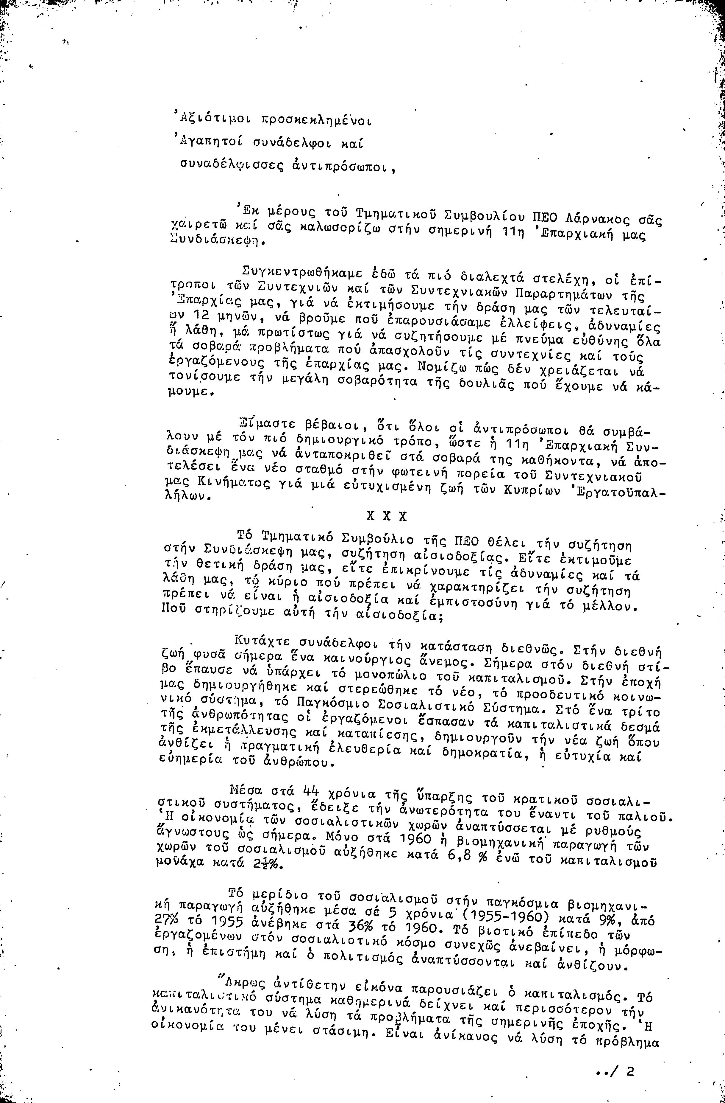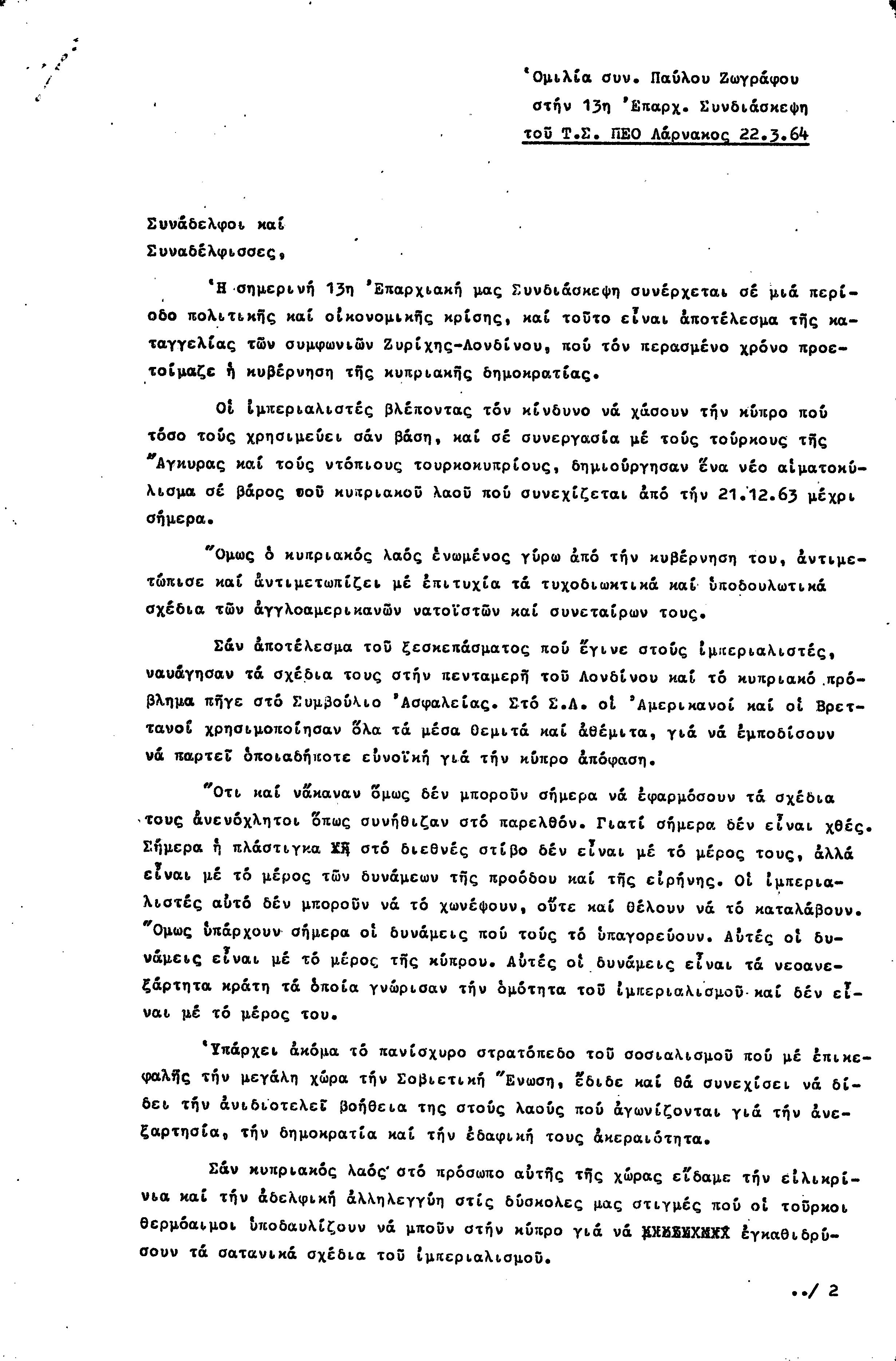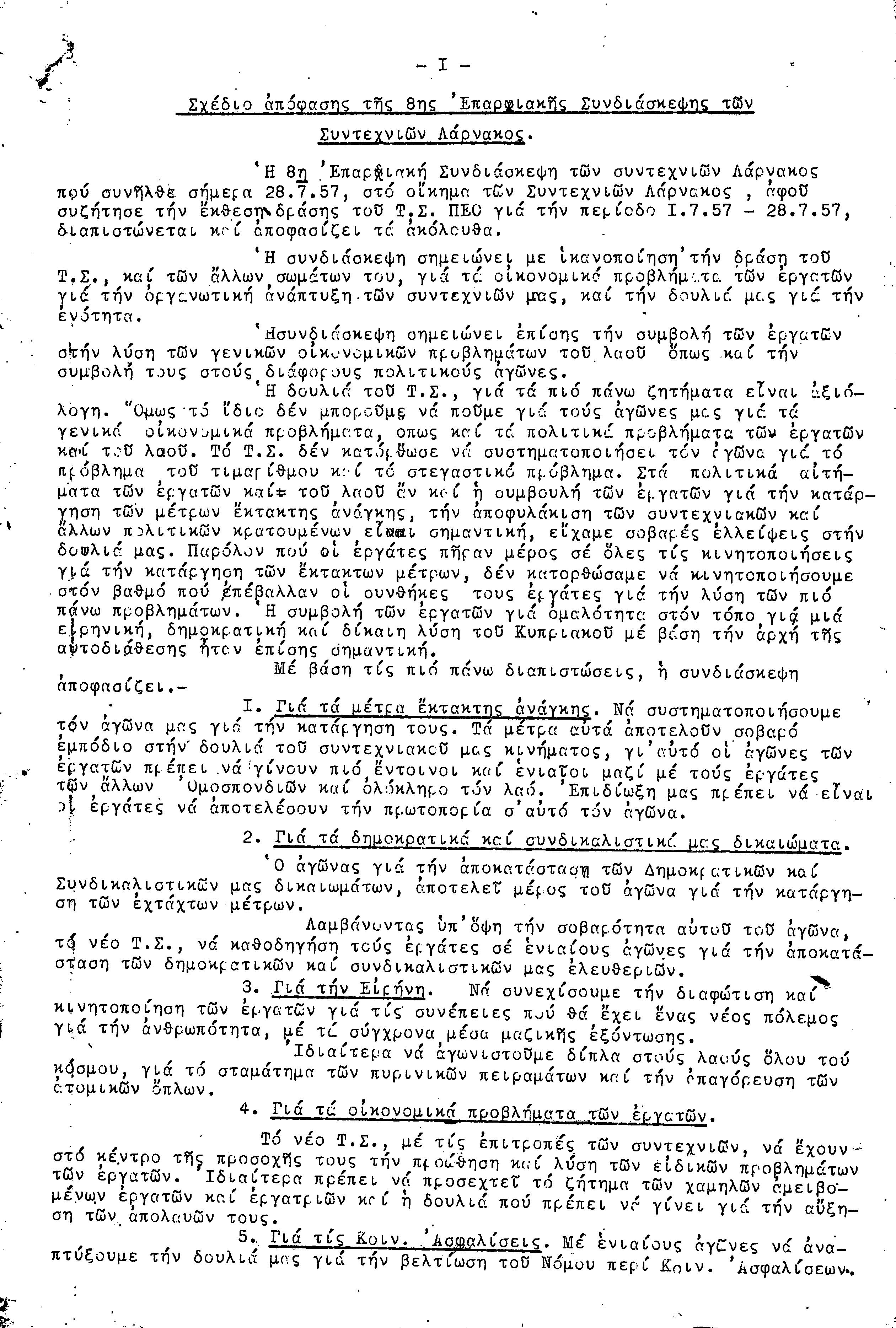 ΕΓΓΡΑΦΑ Τ.Σ. ΠΕΟ ΛΑΡΝΑΚΑΣ,1964 (ΟΡΓΑΝΩΤΙΚΟ ΠΛΑΝΟ)