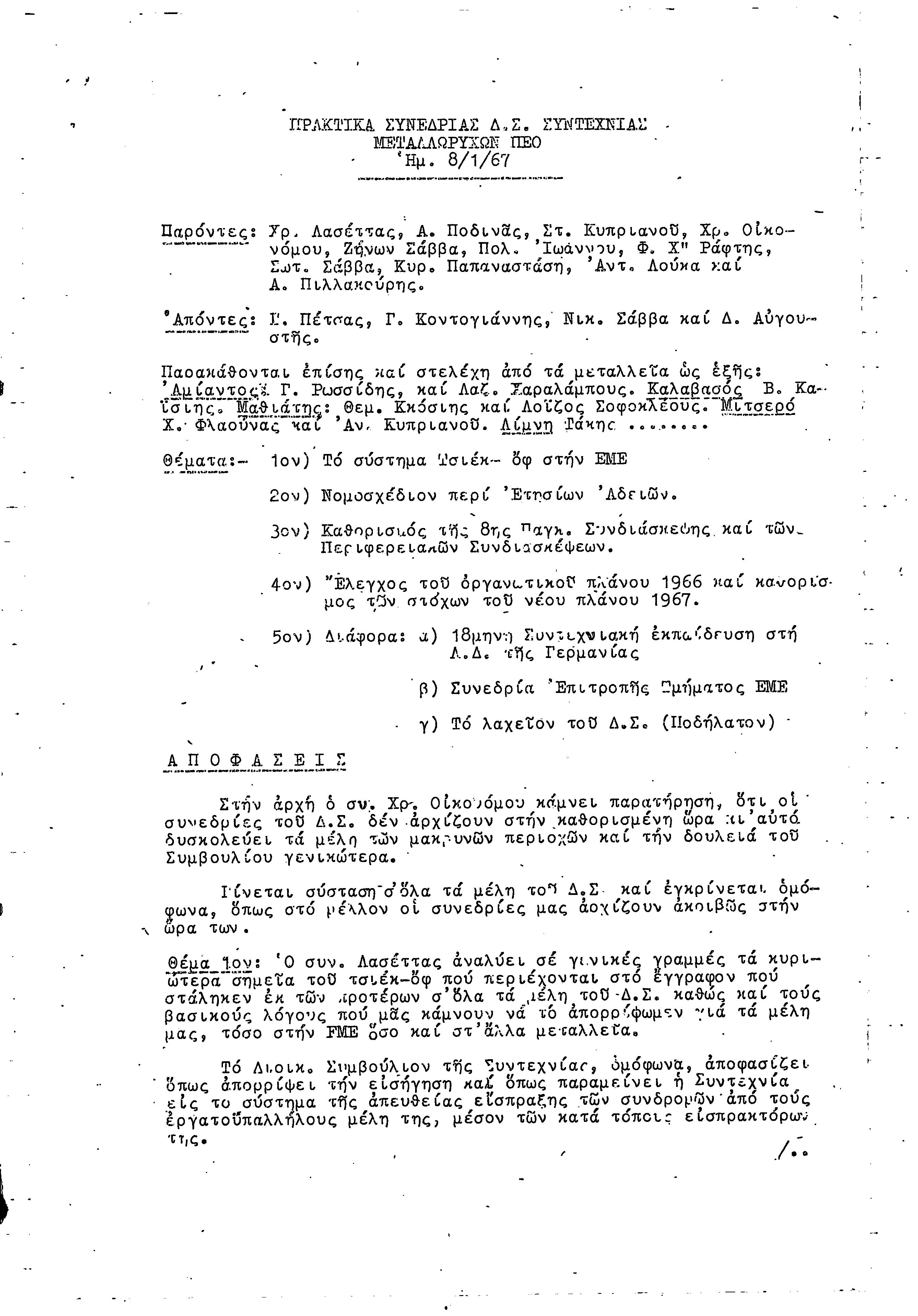 ΠΡΑΚΤΙΚΑ Δ.Σ. ΣΥΝΤΕΧΝΙΑΣ ΜΕΤΑΛΛΩΡΥΧΩΝ 1966-1967
