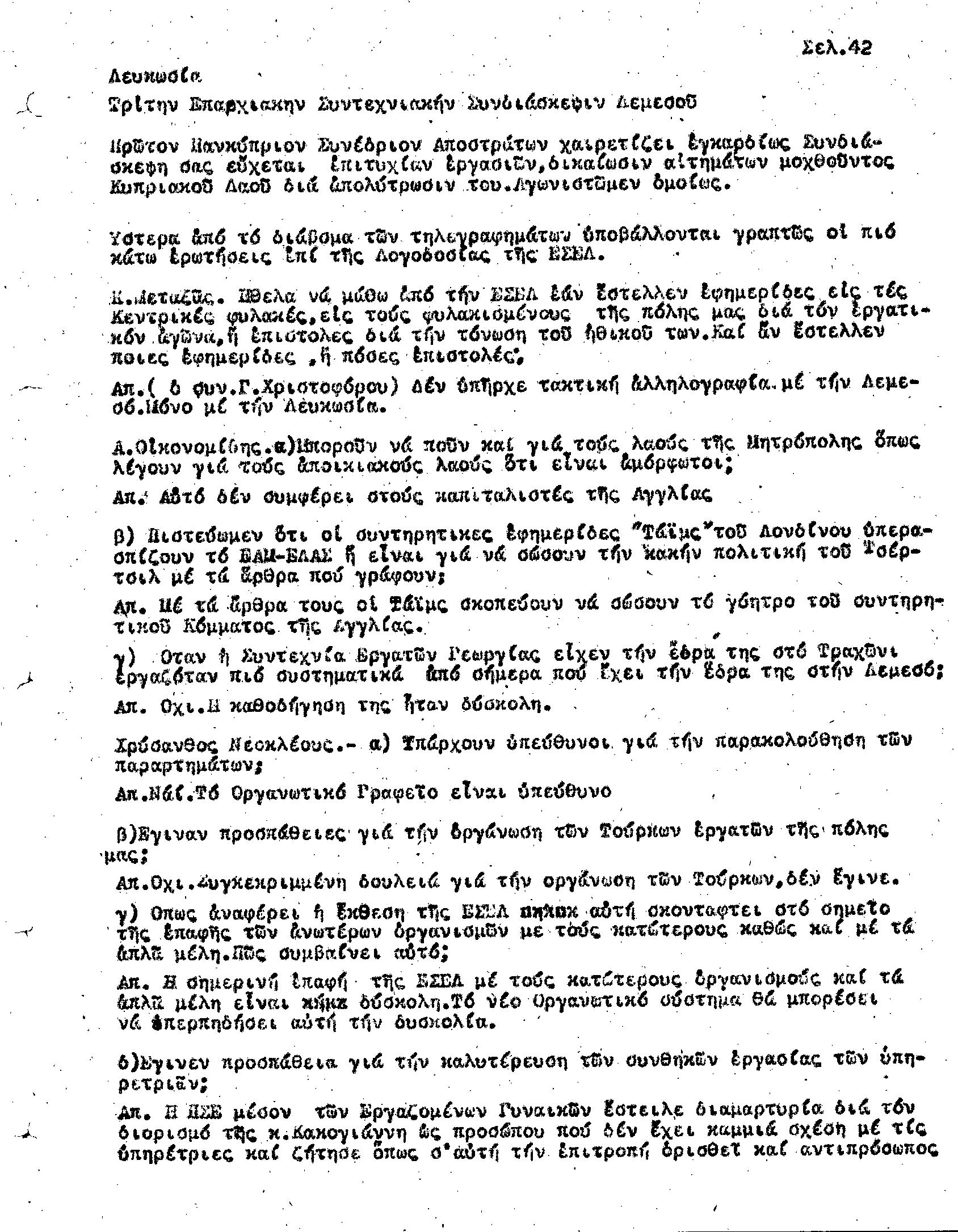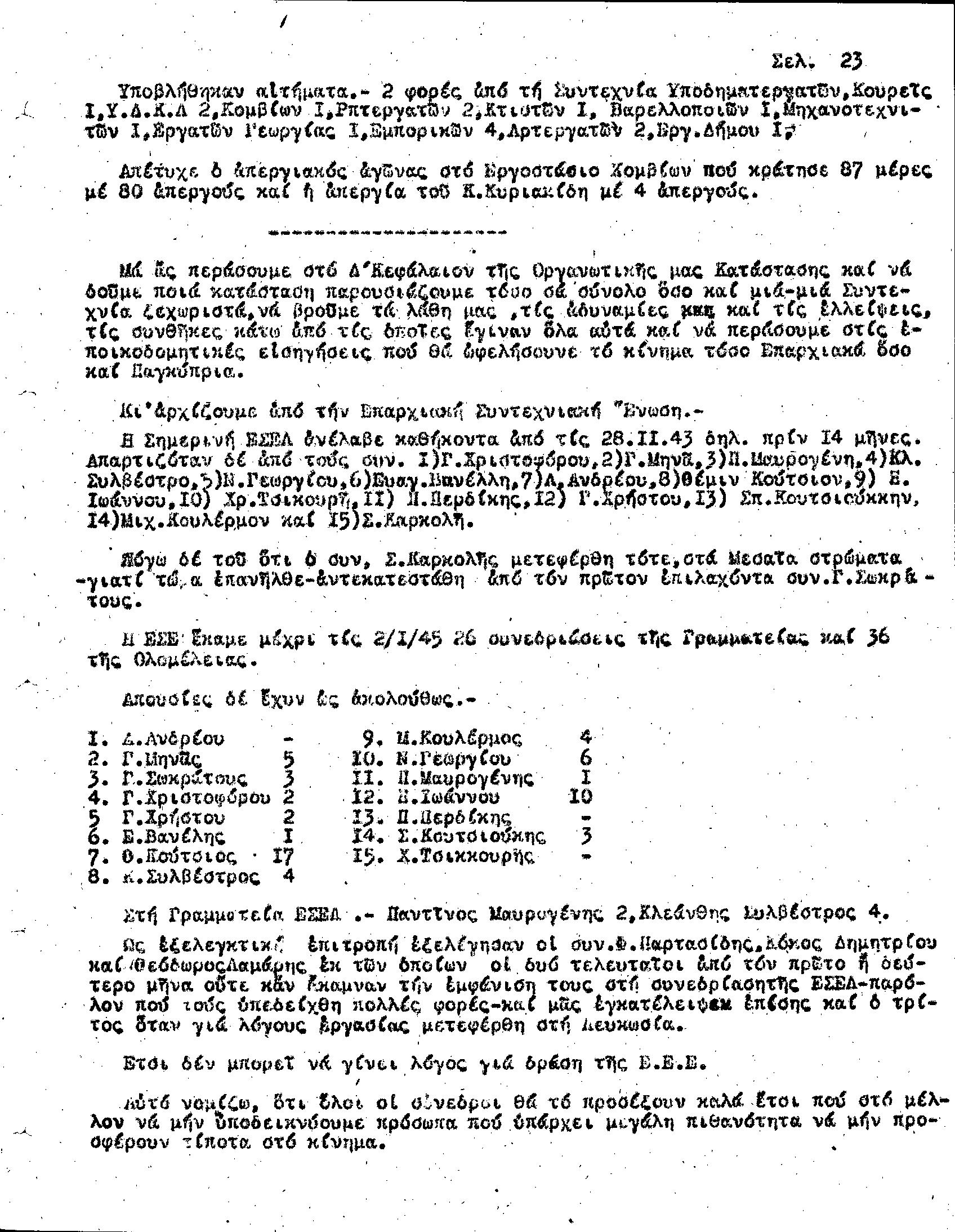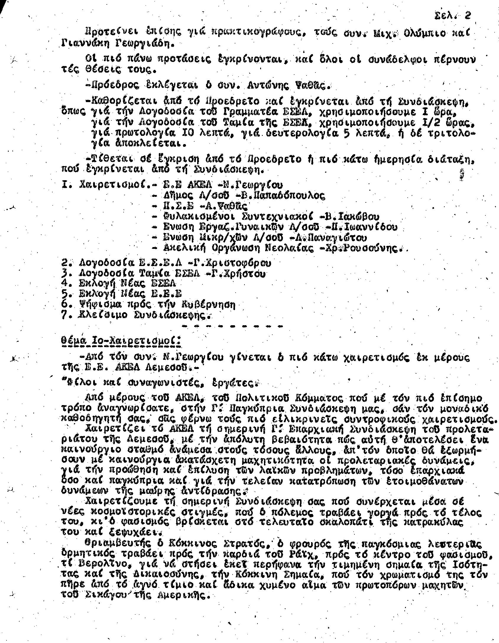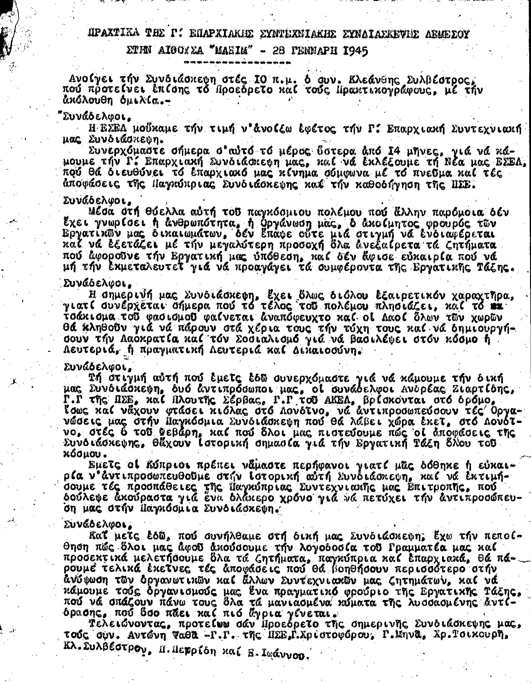 Γ' ΕΠΑΡΧΙΑΚΗ ΣΥΝΔΙΑΣΚΕΨΗ Τ.Σ. ΠΕΟ ΛΕΜΕΣΟΥ, 28.1.1945 (ΠΡΑΚΤΙΚΑ)