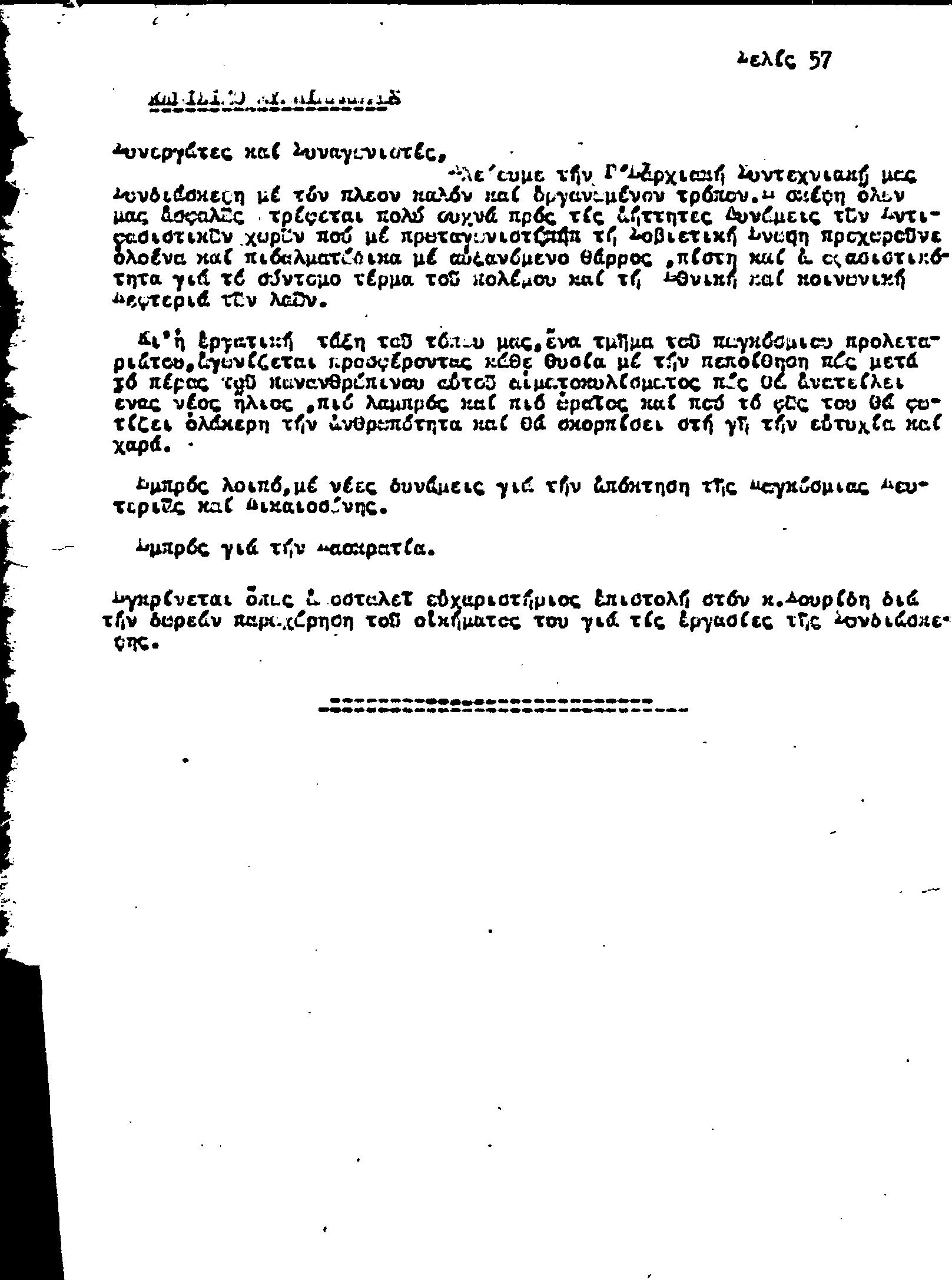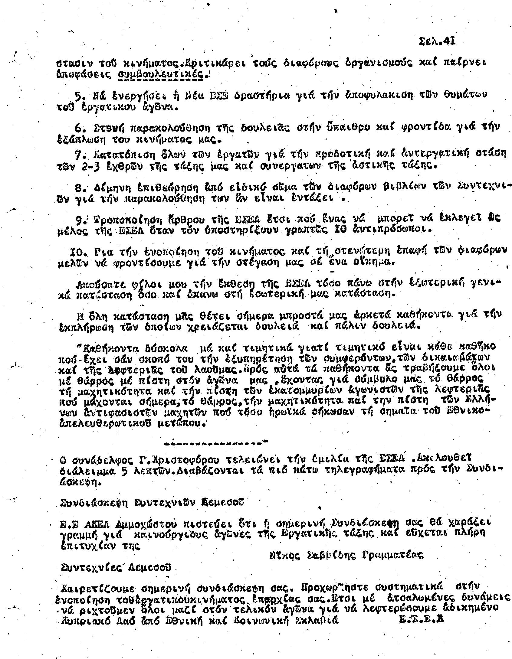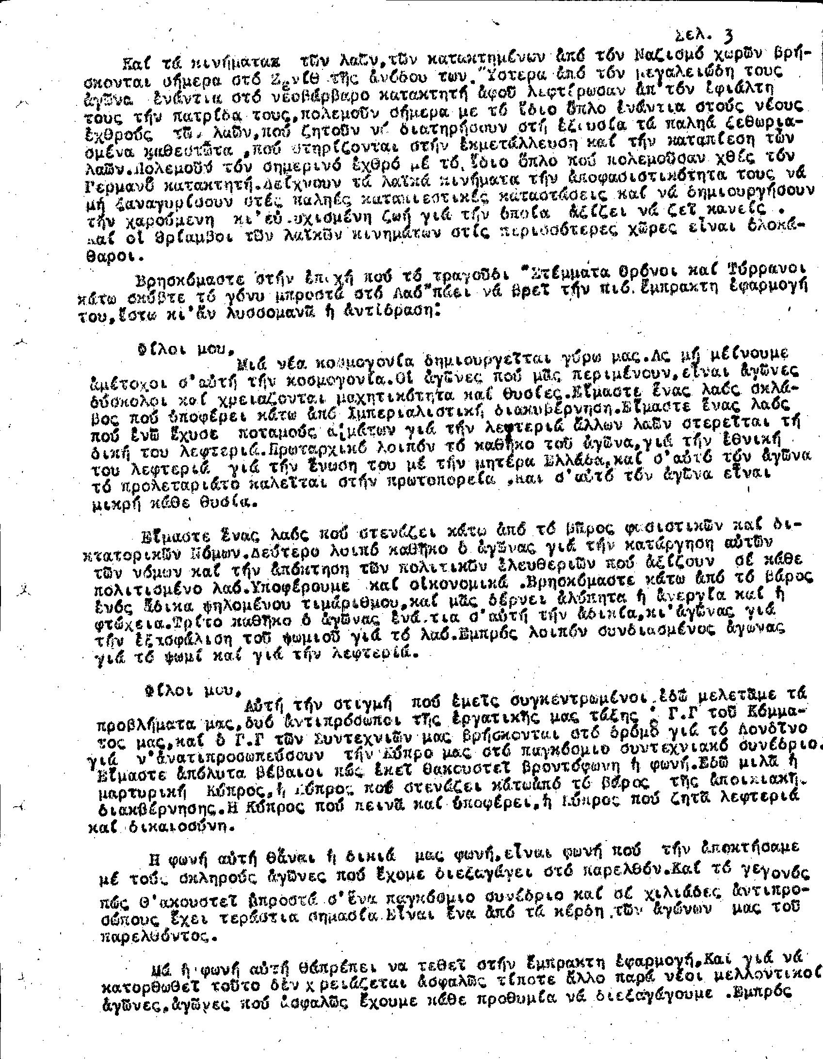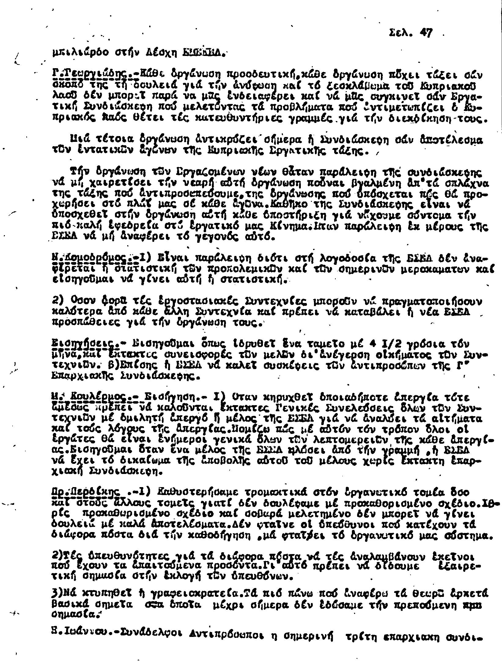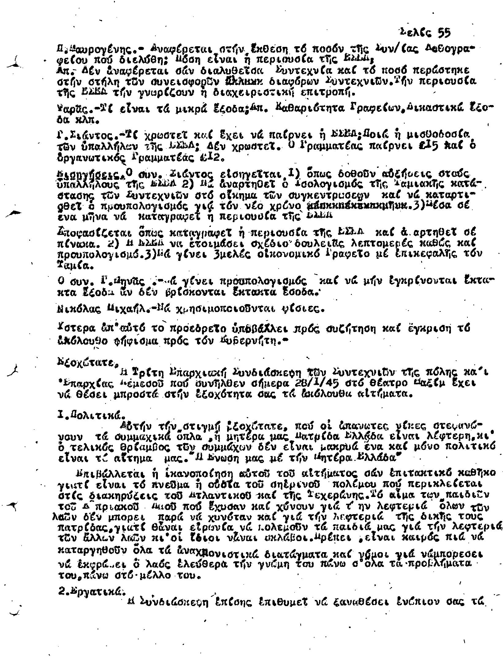 Γ' ΕΠΑΡΧΙΑΚΗ ΣΥΝΔΙΑΣΚΕΨΗ Τ.Σ. ΠΕΟ ΛΕΜΕΣΟΥ, 28.1.1945 (ΠΡΑΚΤΙΚΑ)