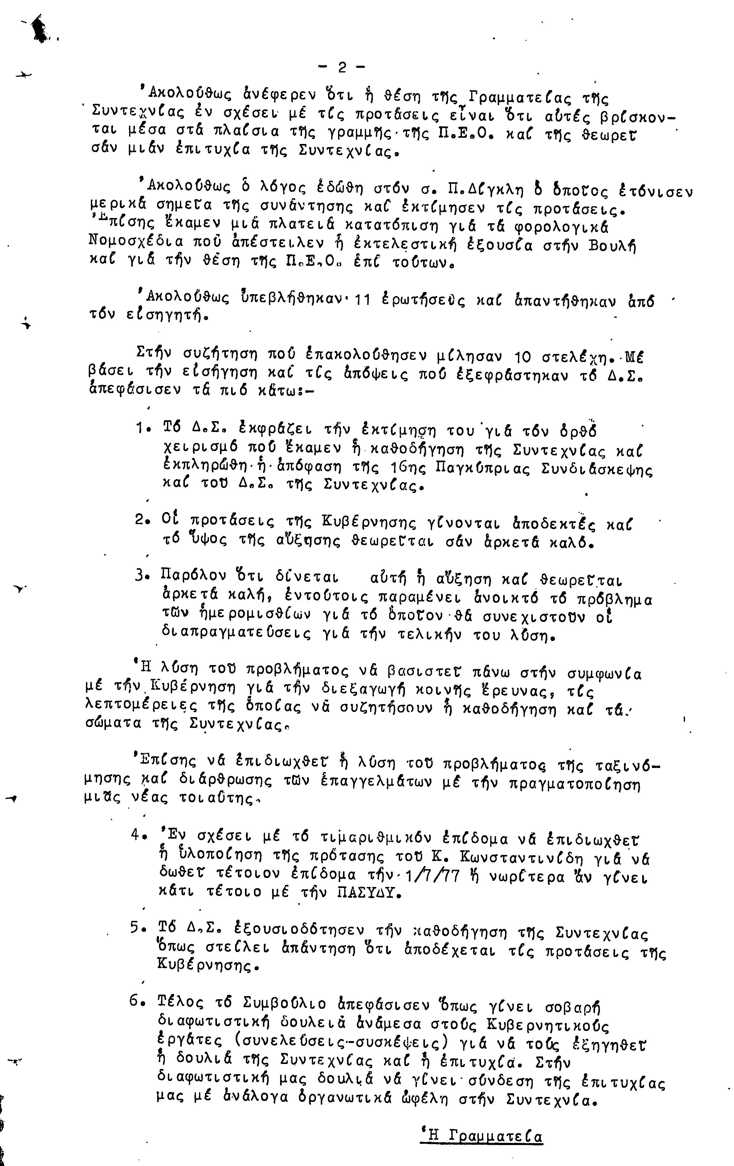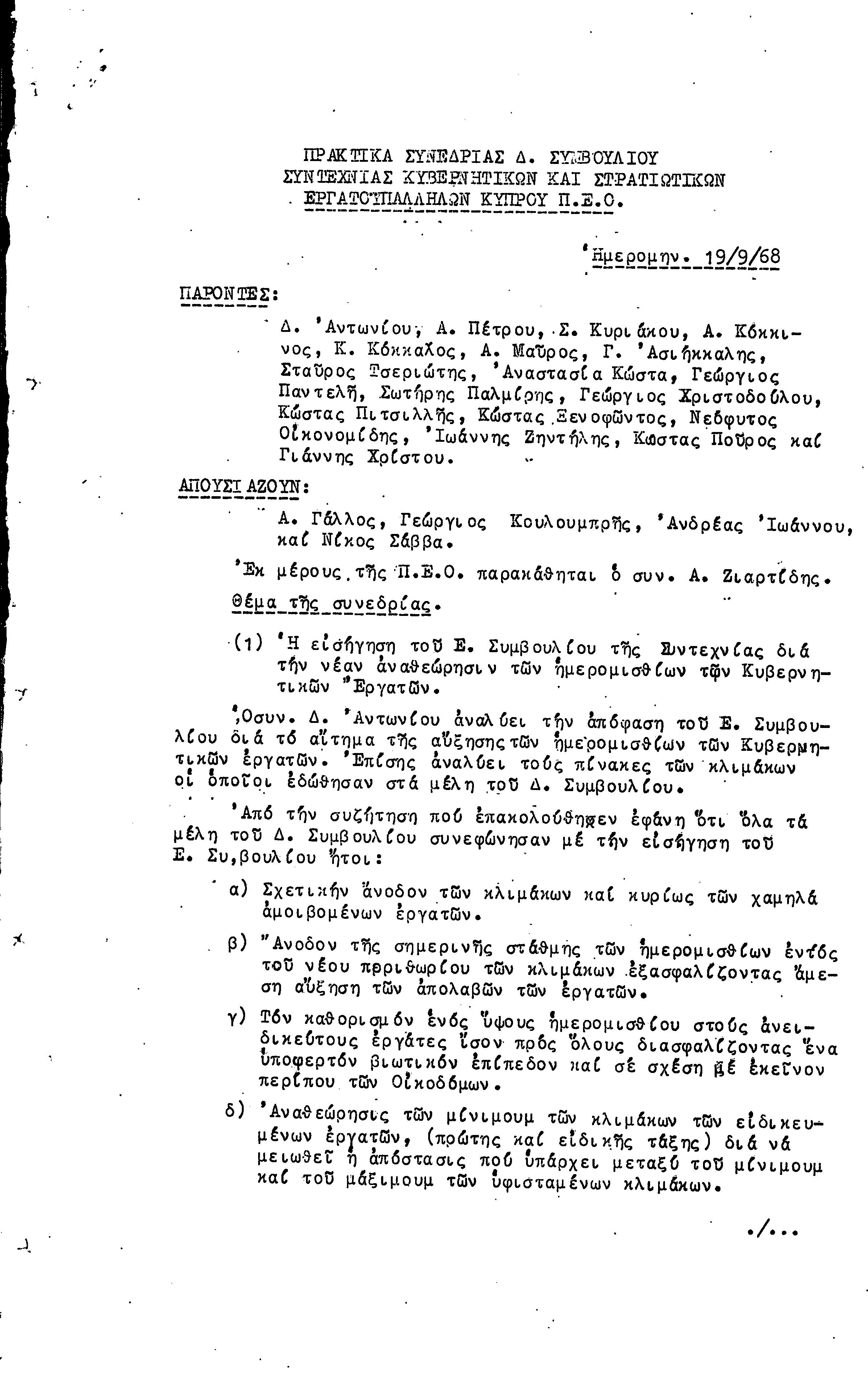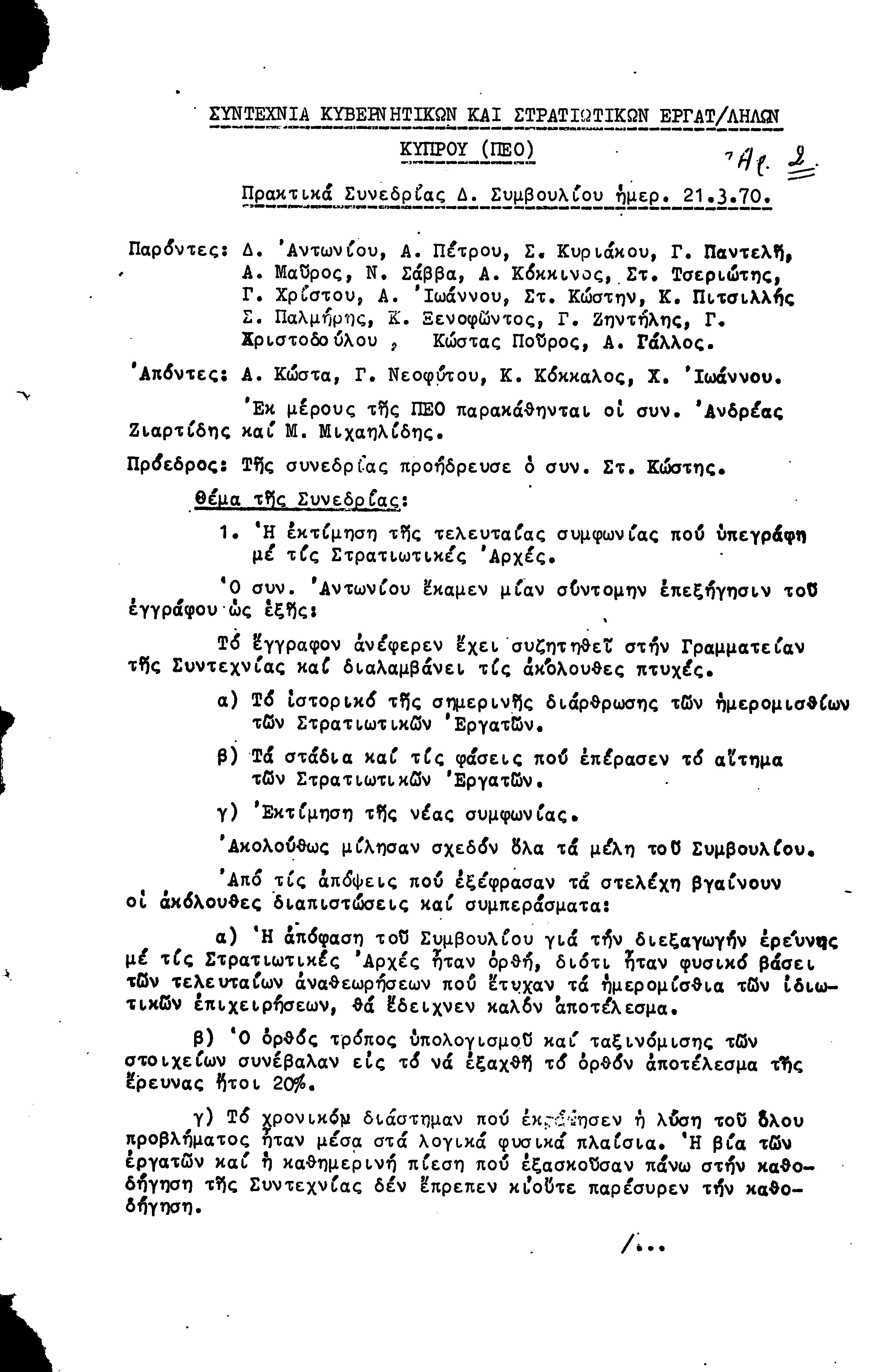 ΠΡΑΚΤΙΚΑ Δ.Σ. ΣΥΝΤΕΧΝΙΑΣ ΚΥΒΕΡΝΗΤΙΚΩΝ ΚΑΙ ΣΤΡΑΤΙΩΤΙΚΩΝ ΕΡΓΑΤΟΫΠΑΛΛΗΛΩΝ ΠΕΟ 1967-1981