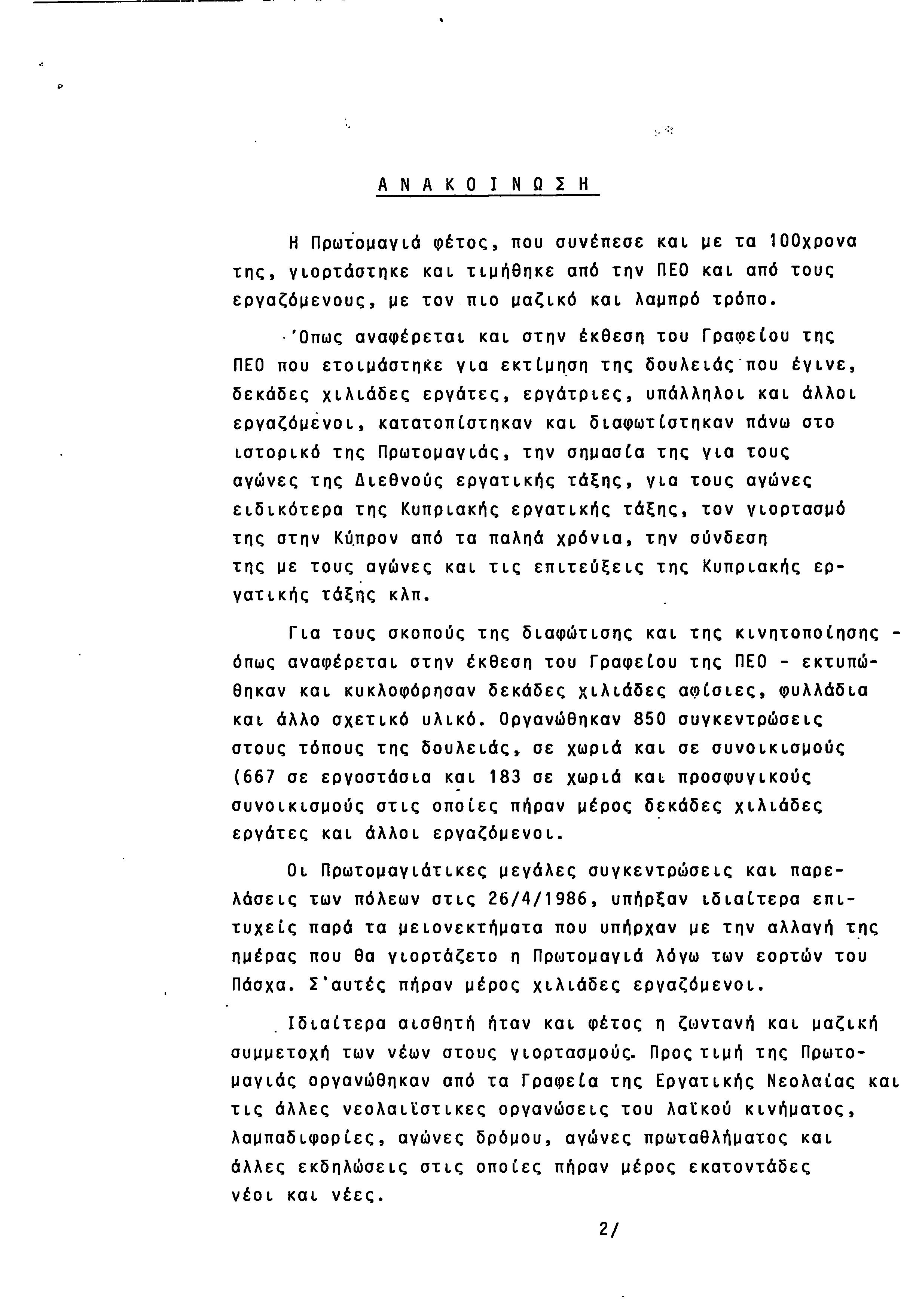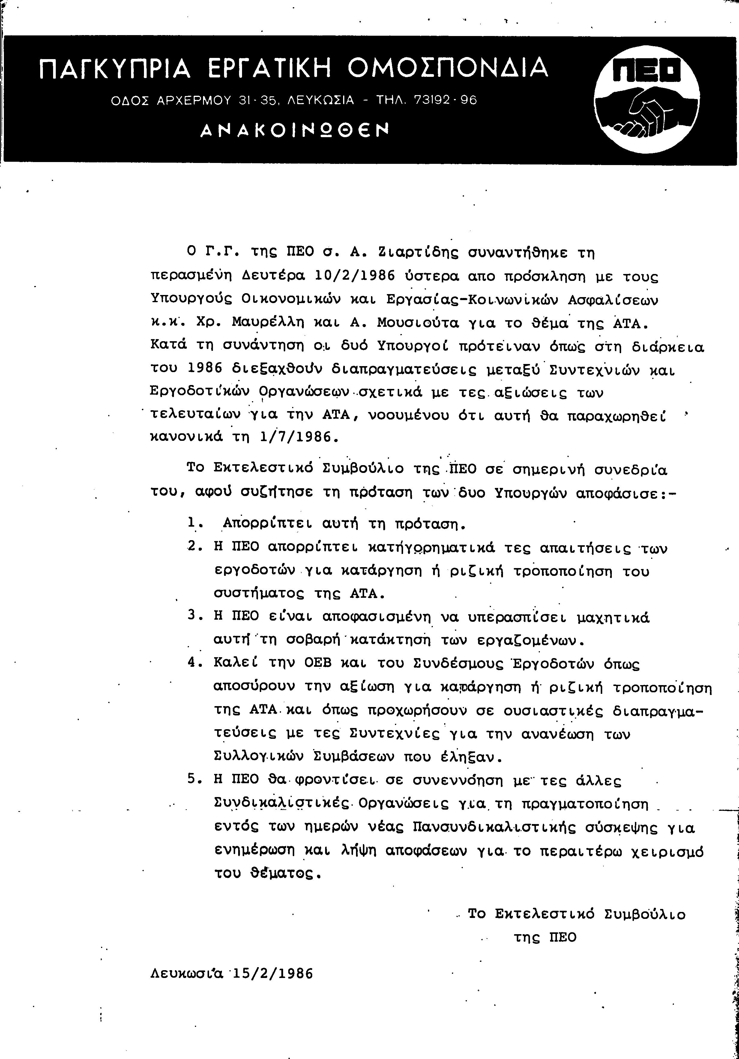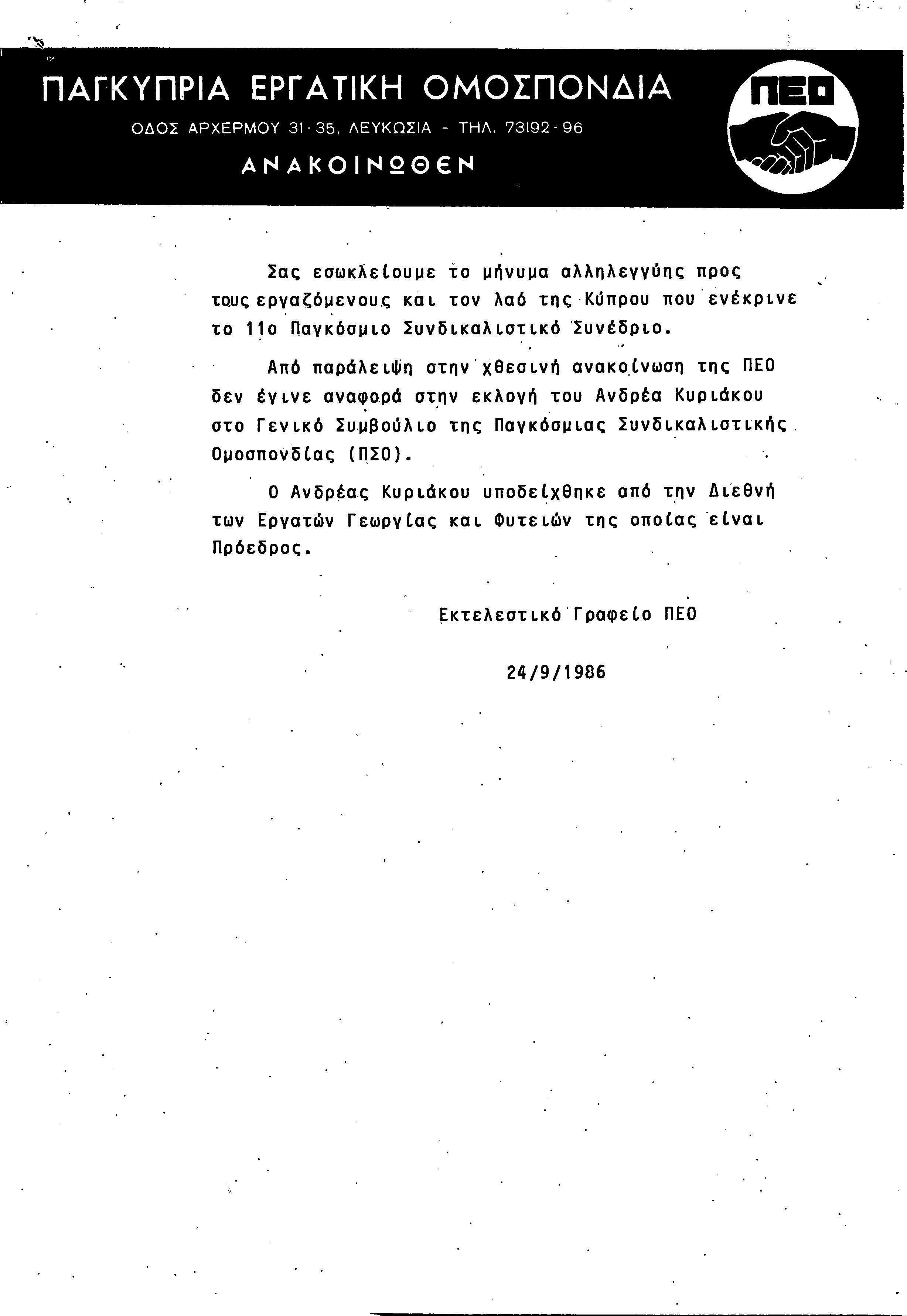 ΑΝΑΚΟΙΝΩΣΕΙΣ 01.1986-09.1986