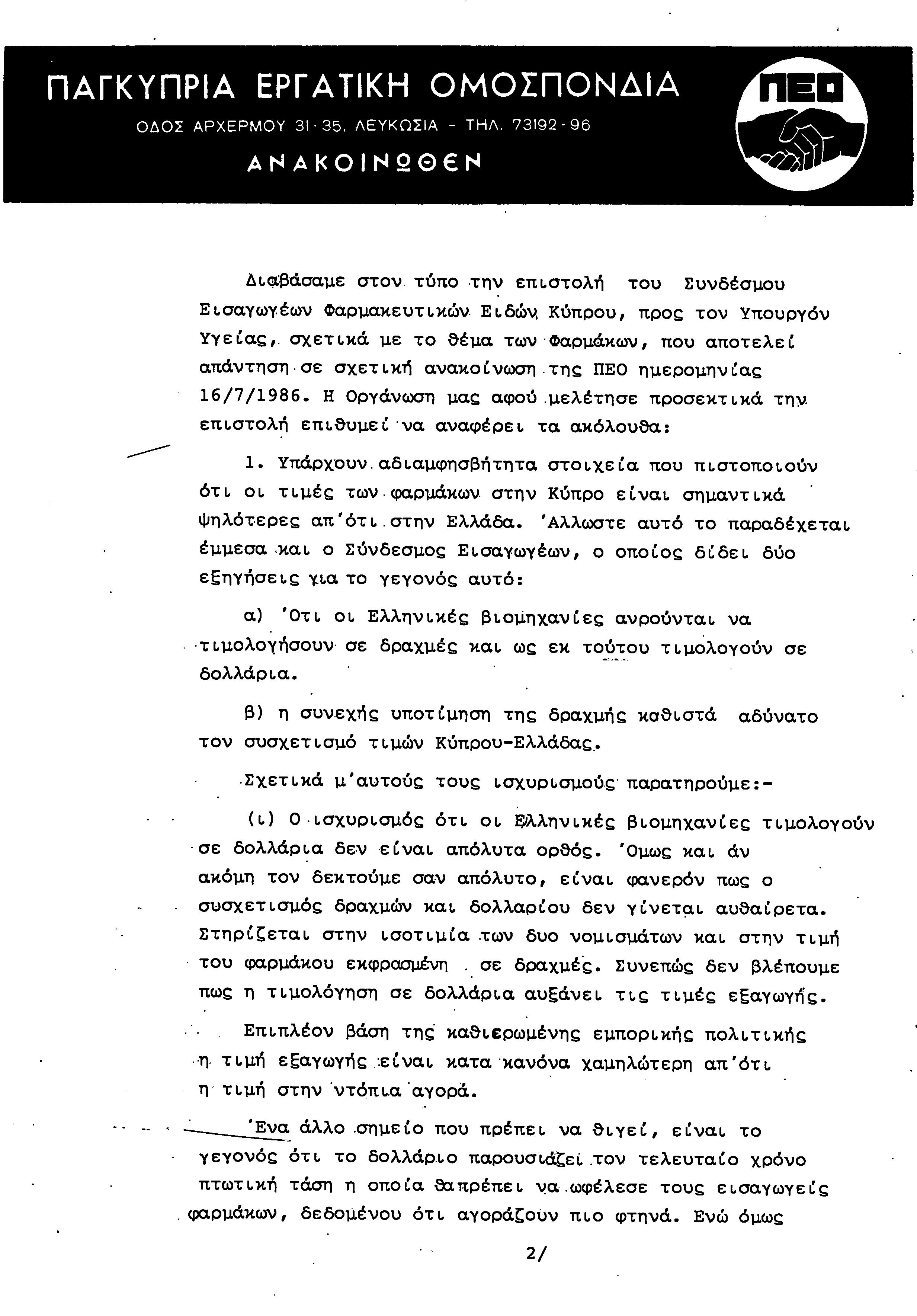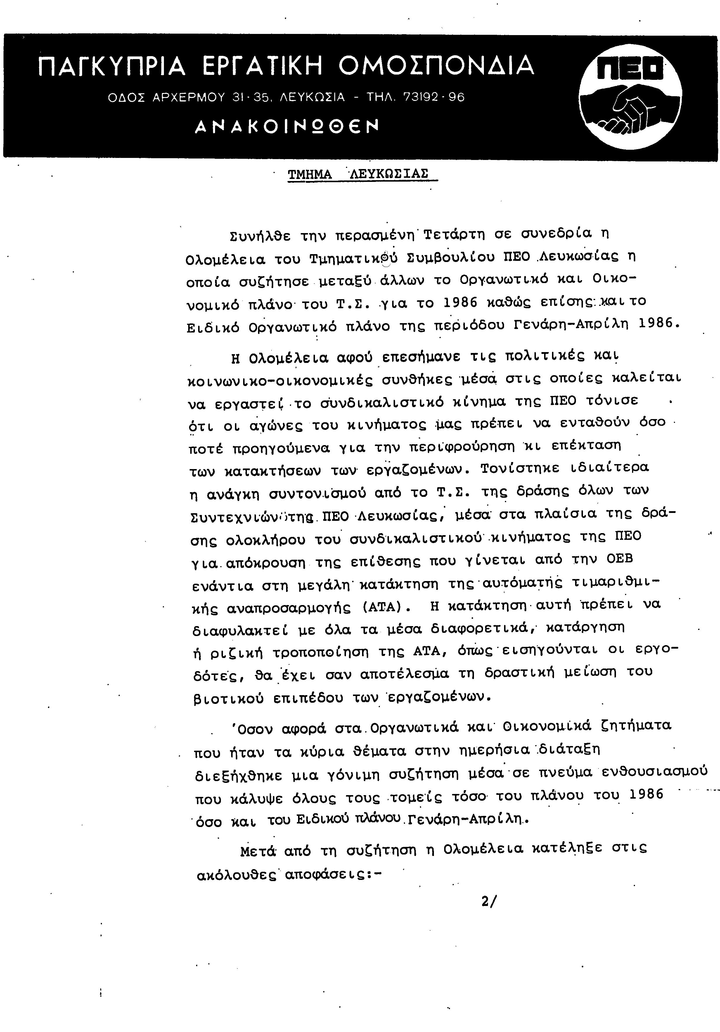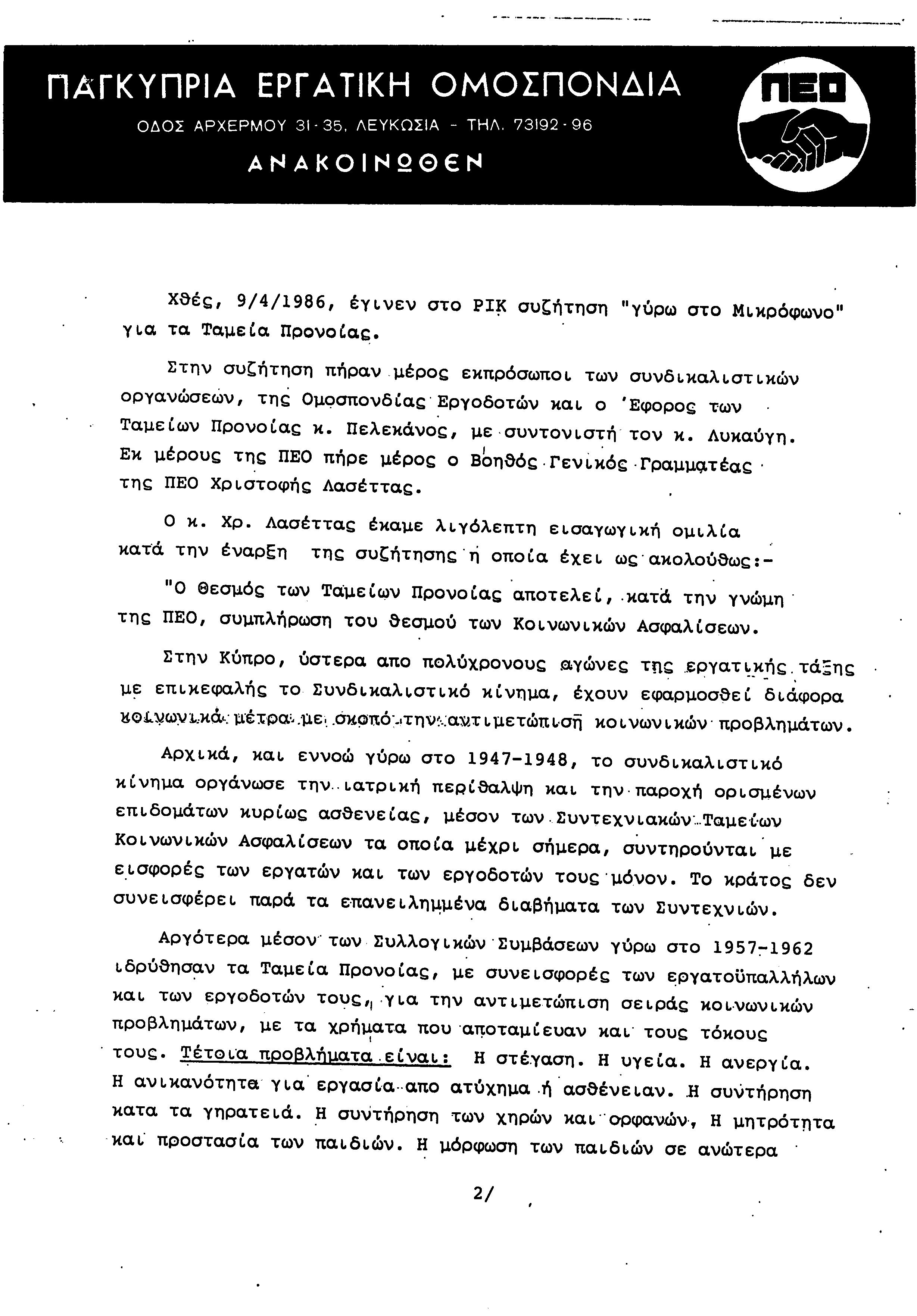 ΑΝΑΚΟΙΝΩΣΕΙΣ 01.1986-09.1986