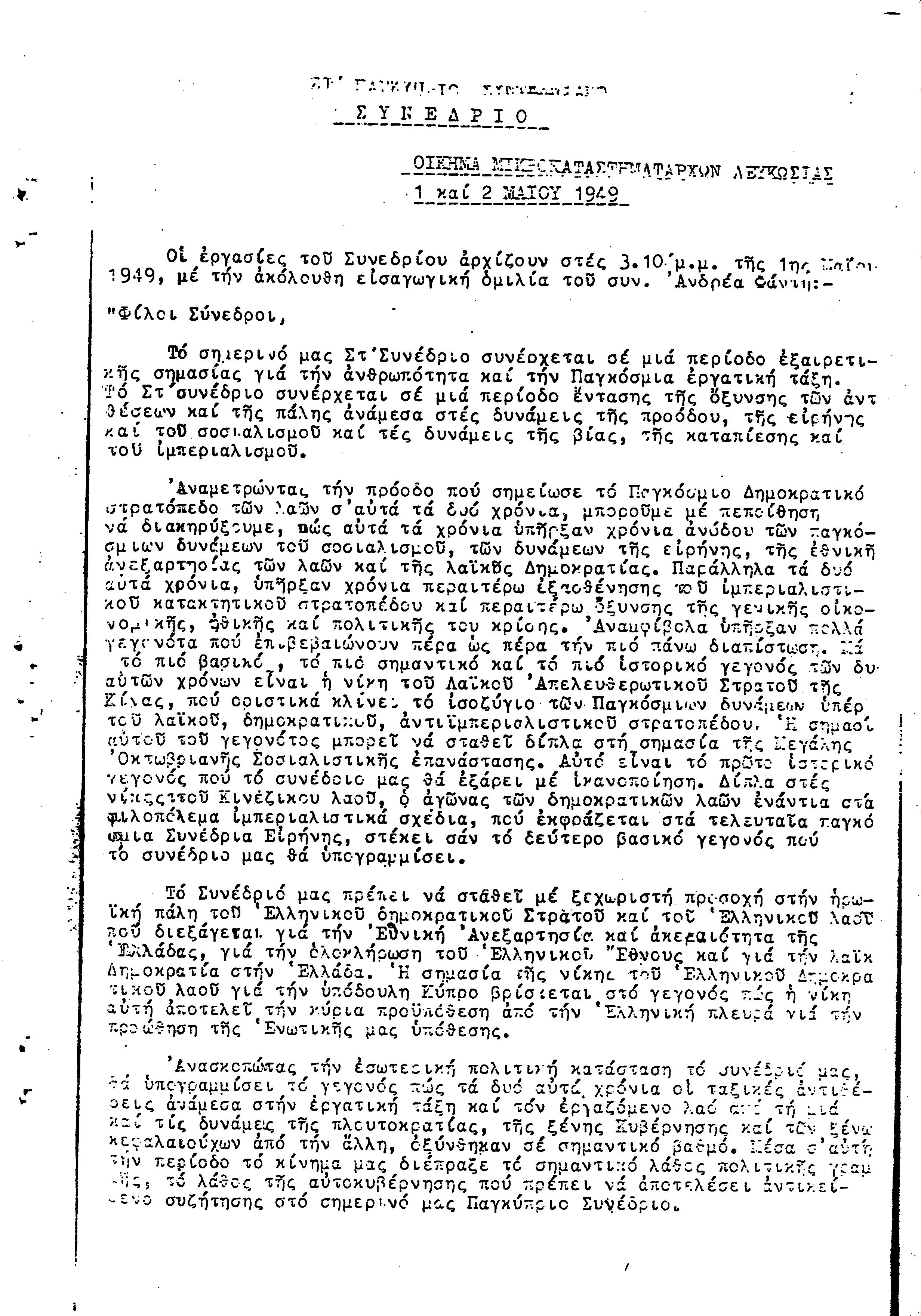ΣΤ΄ΠΑΓΚΥΠΡΙΟ ΣΥΝΤΕΧΝΙΑΚΟ ΣΥΝΕΔΡΙΟ, 1-2.05 1949 (ΠΡΑΚΤΙΚΑ)