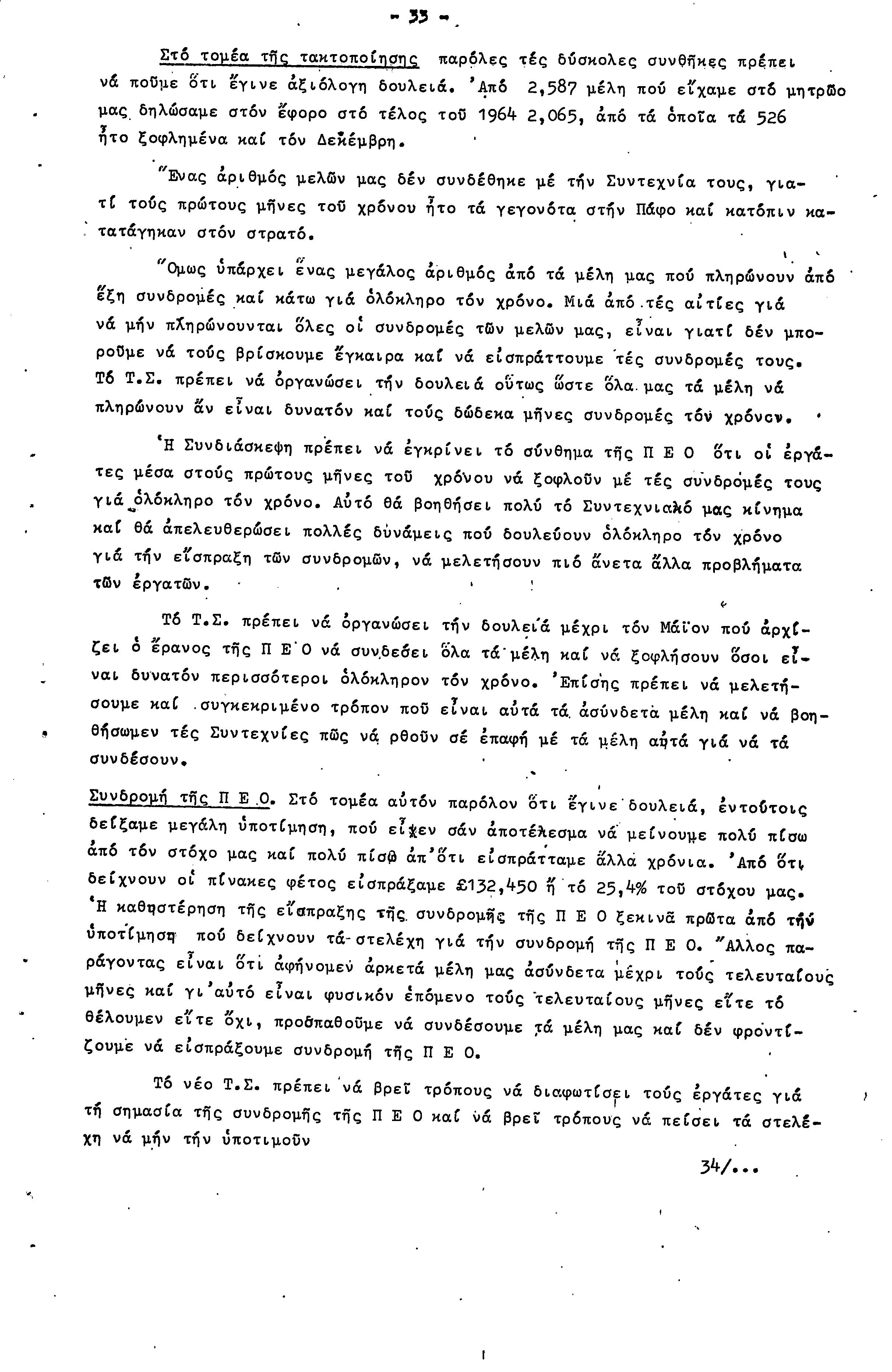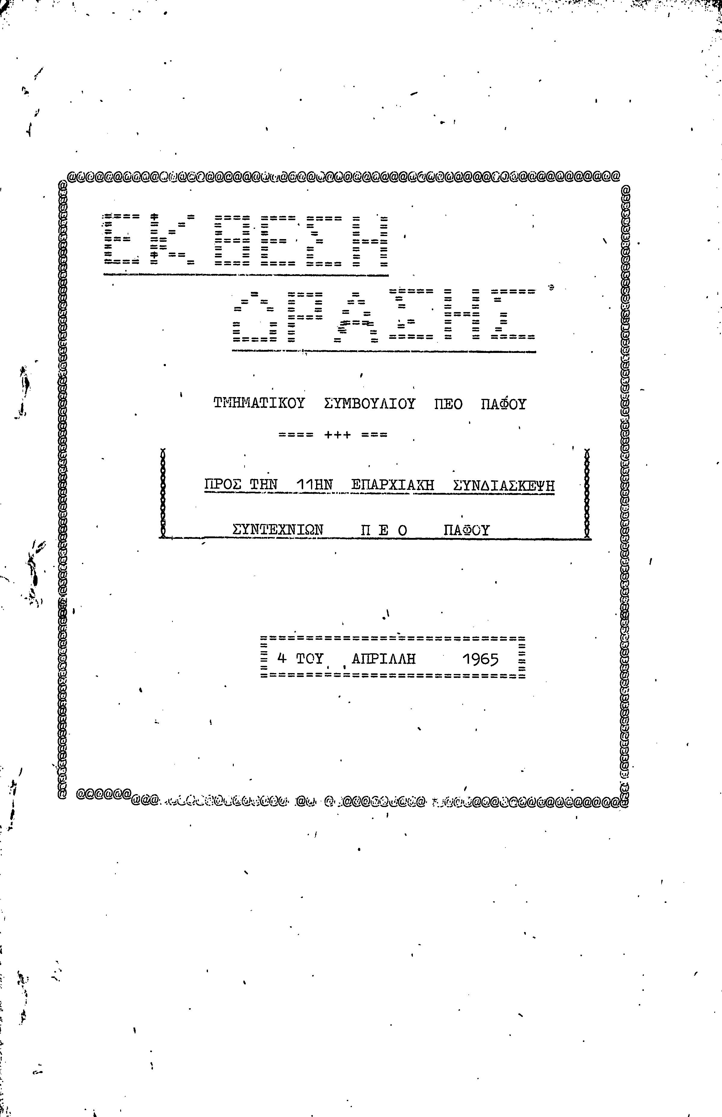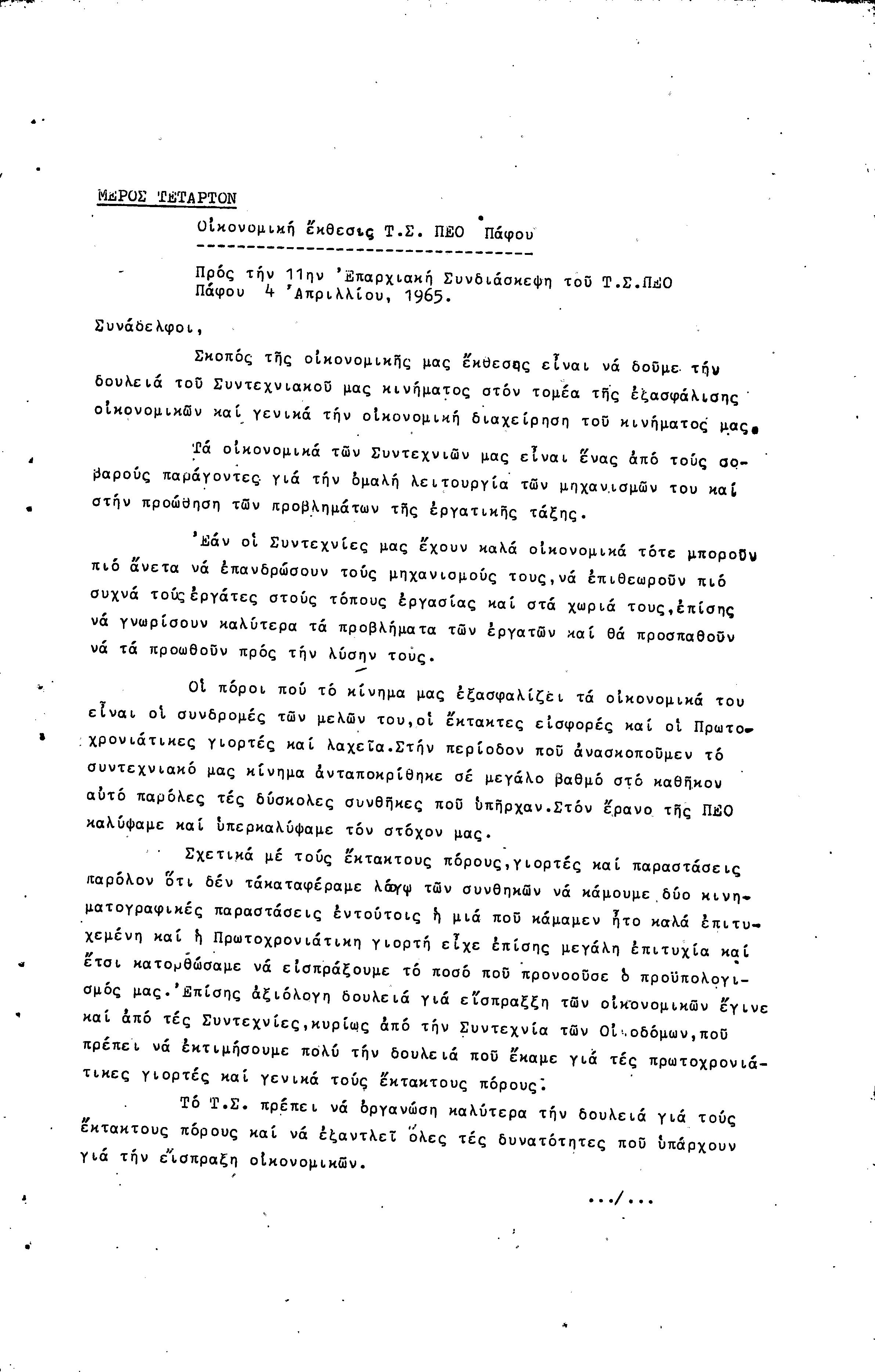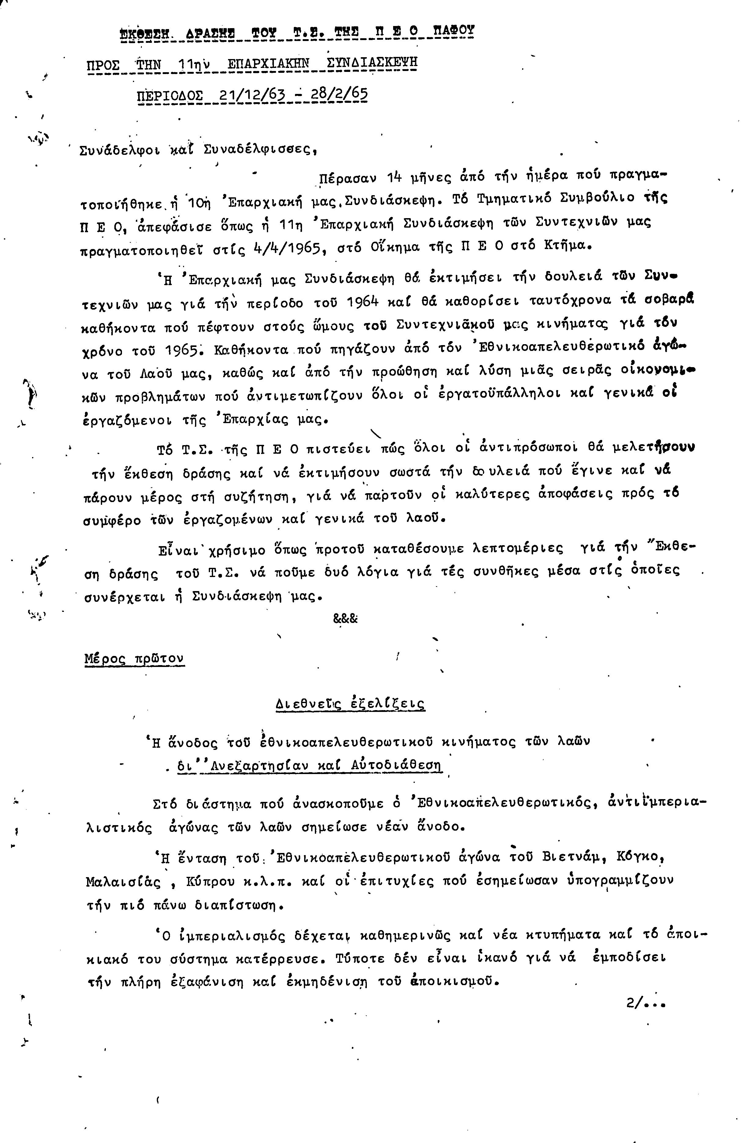 ΠΡΟΣ ΤΗΝ 11η ΕΠΑΡΧΙΑΚΗ ΣΥΝΔΙΑΣΚΕΨΗ Τ.Σ ΠΕΟ ΠΑΦΟΥ, 4.04.1965 (ΕΚΘΕΣΗ ΔΡΑΣΗΣ)