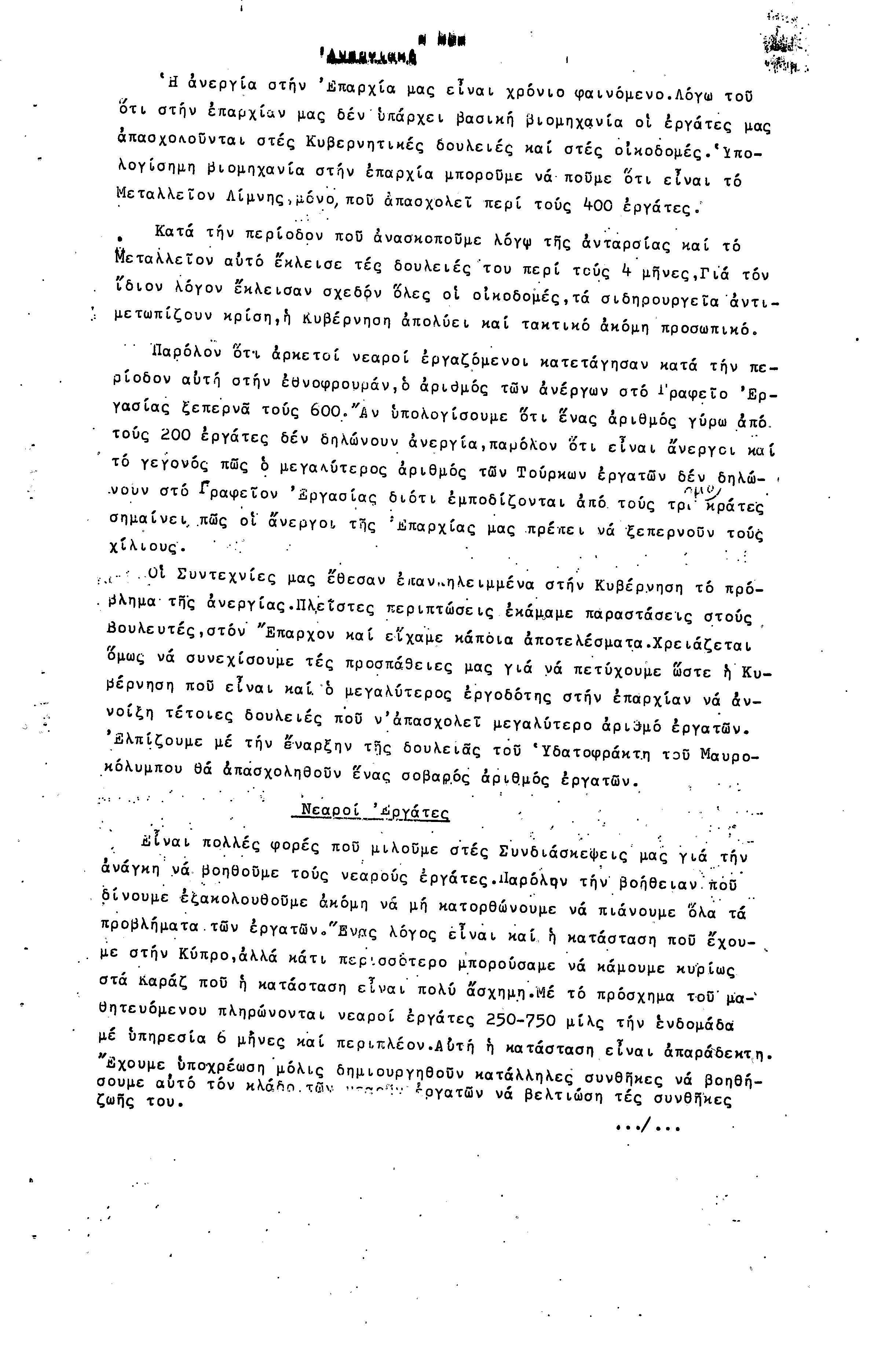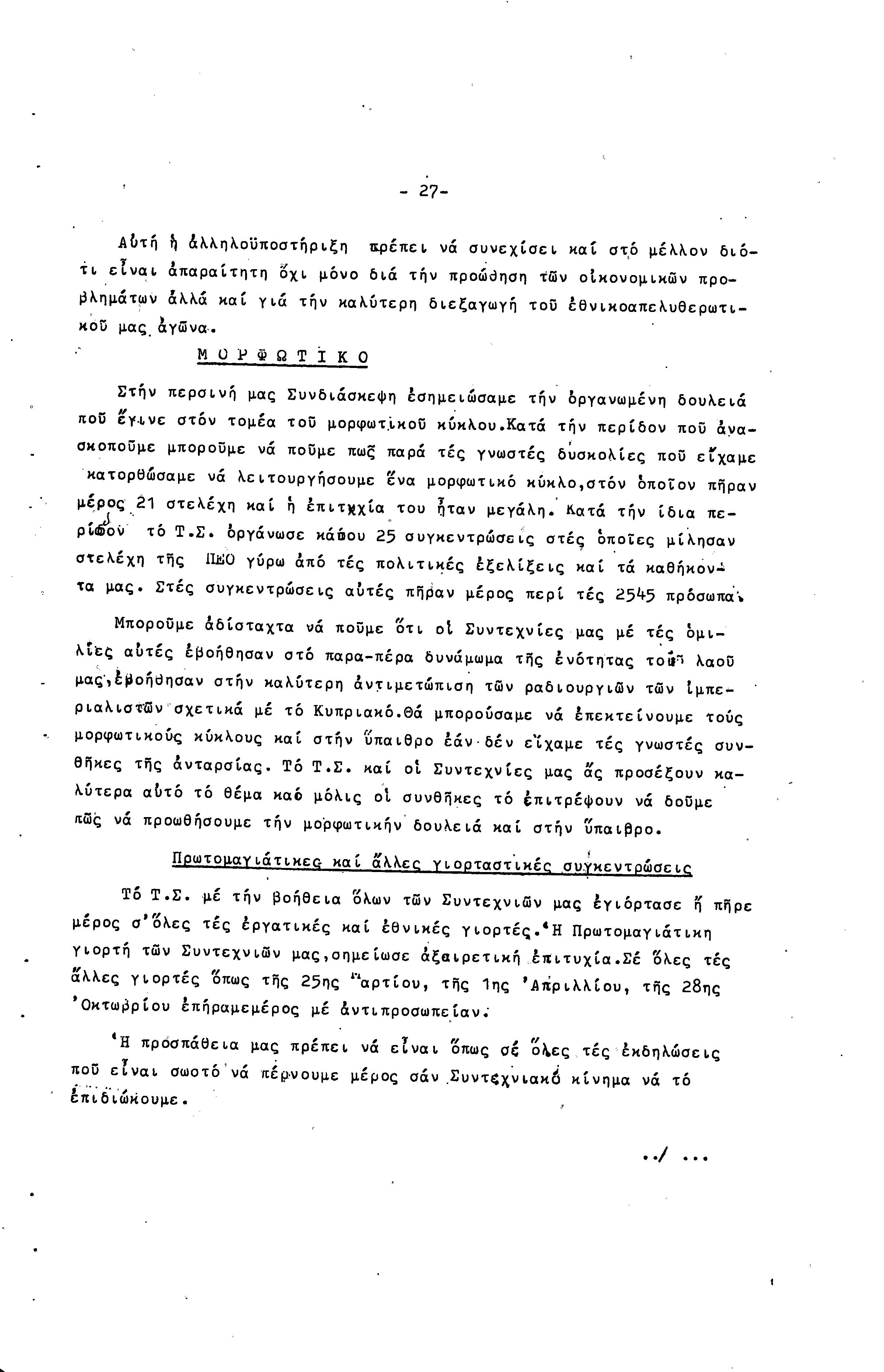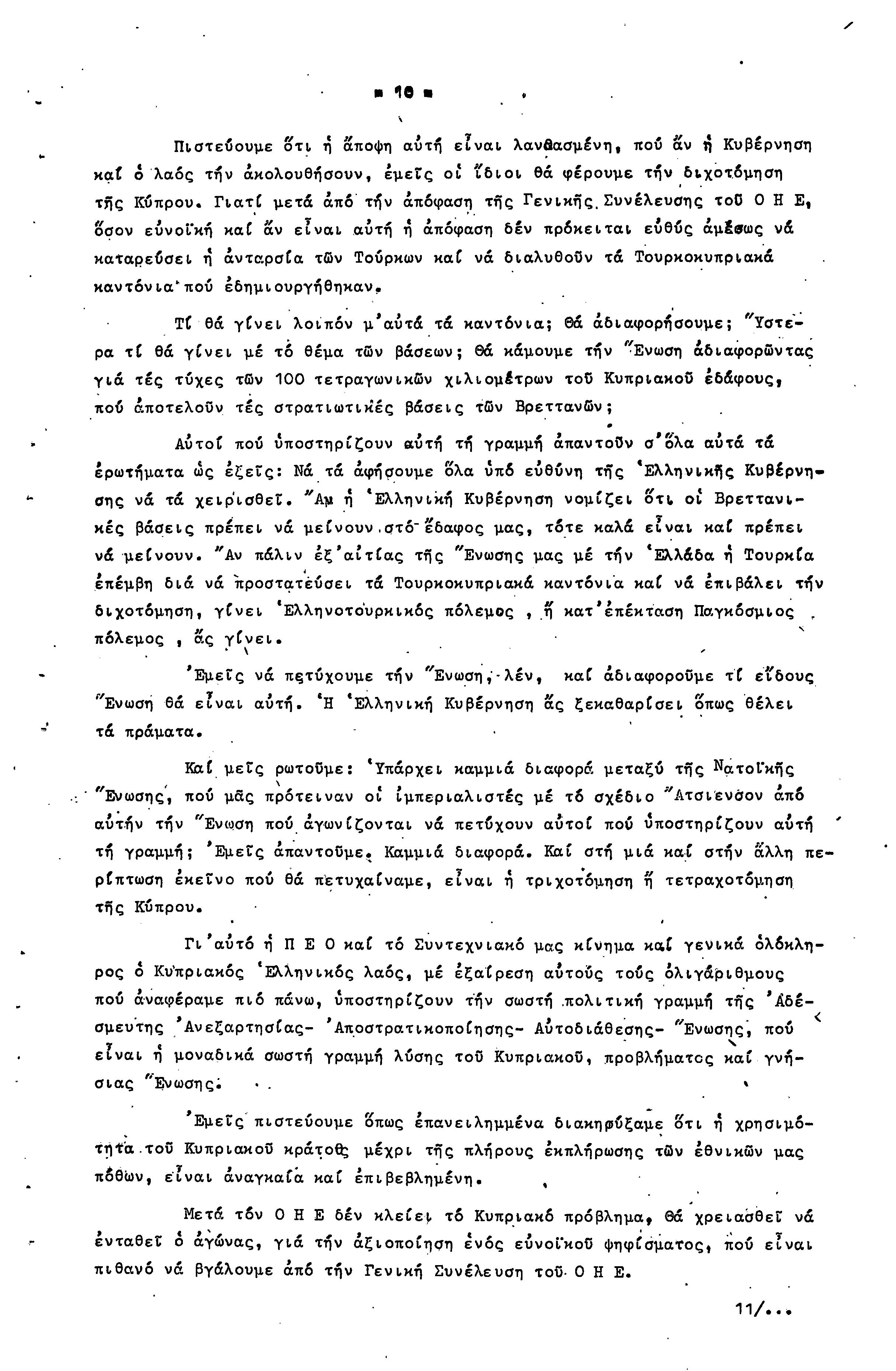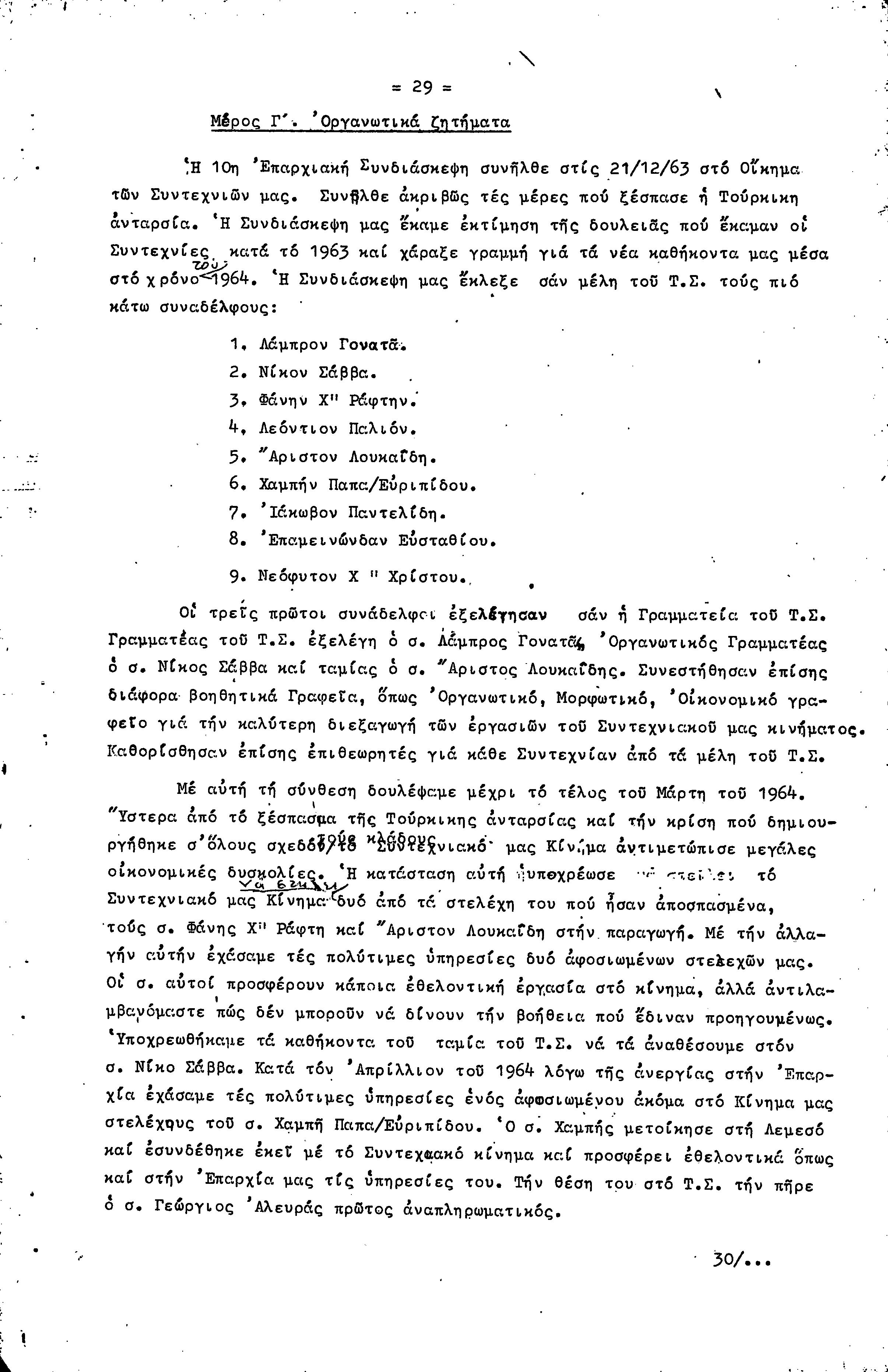 ΠΡΟΣ ΤΗΝ 11η ΕΠΑΡΧΙΑΚΗ ΣΥΝΔΙΑΣΚΕΨΗ Τ.Σ ΠΕΟ ΠΑΦΟΥ, 4.04.1965 (ΕΚΘΕΣΗ ΔΡΑΣΗΣ)