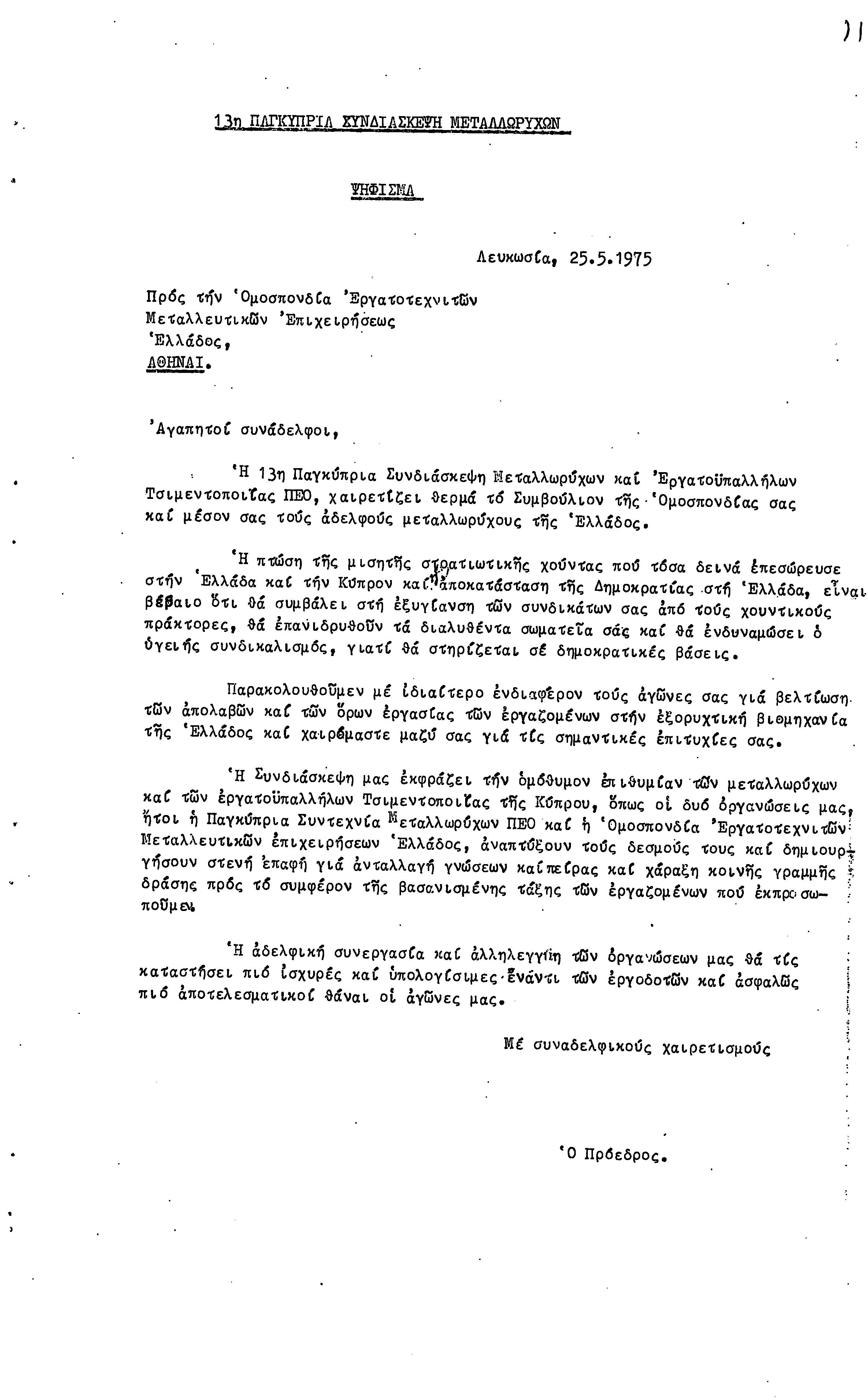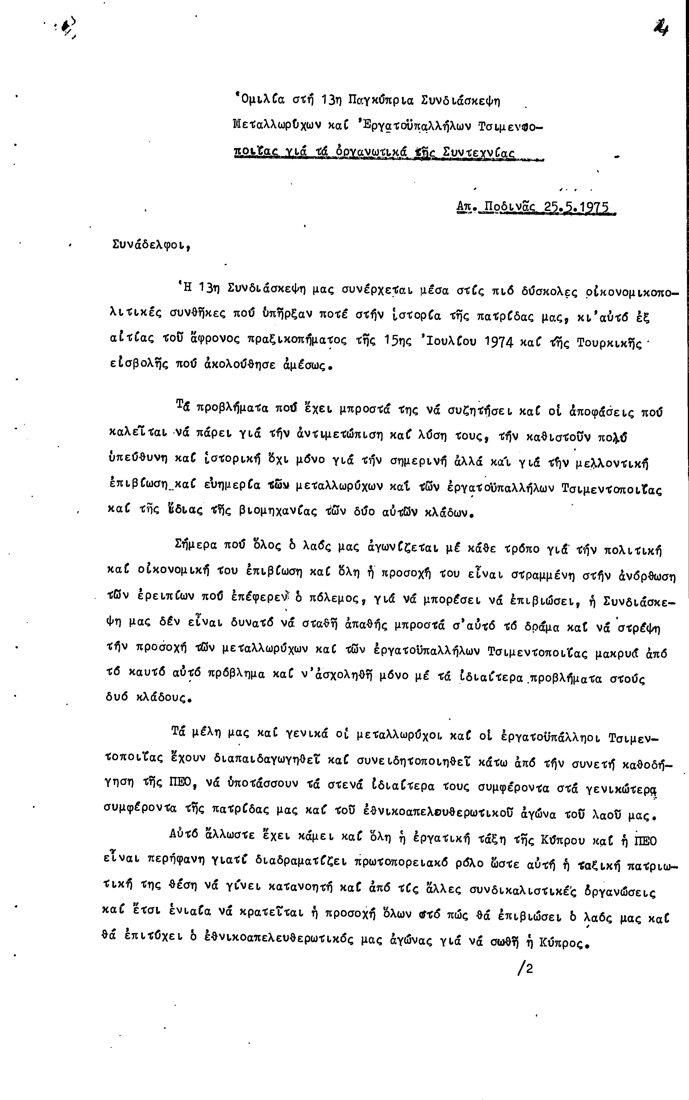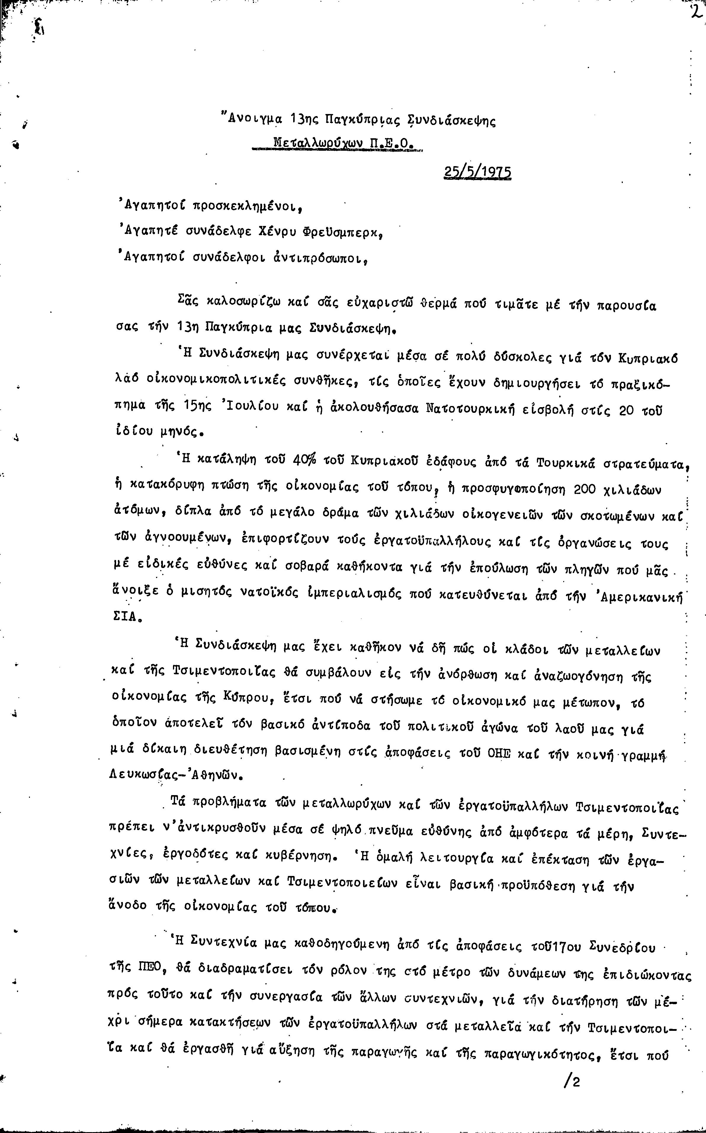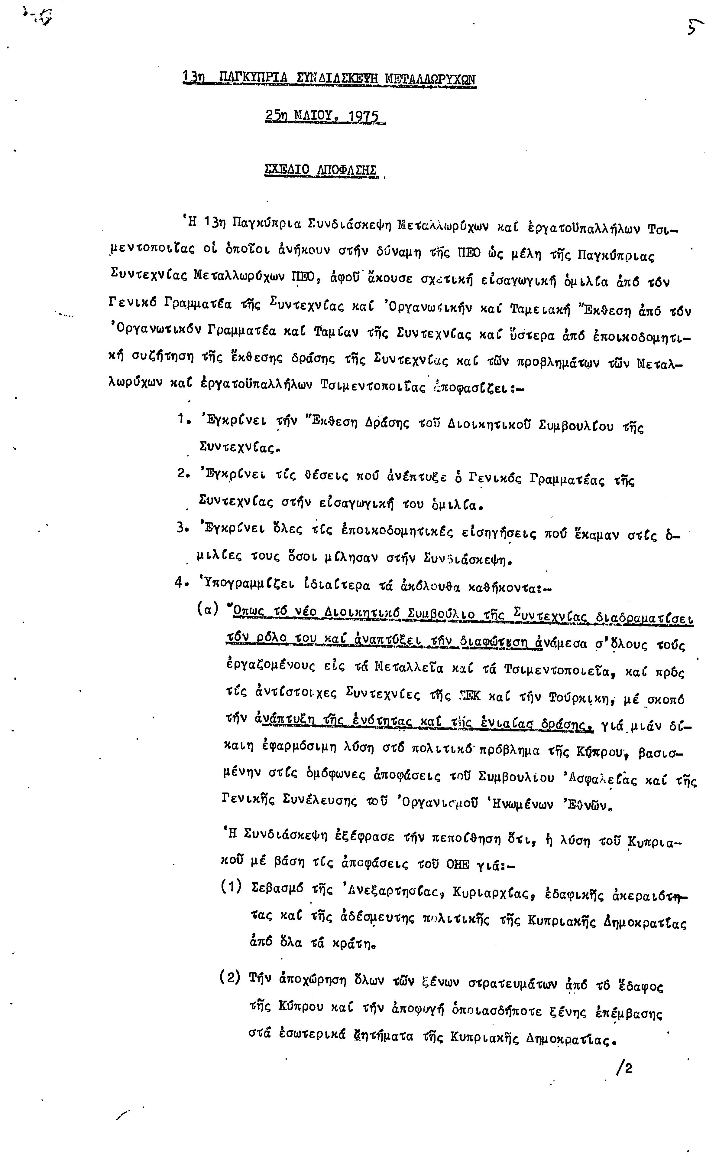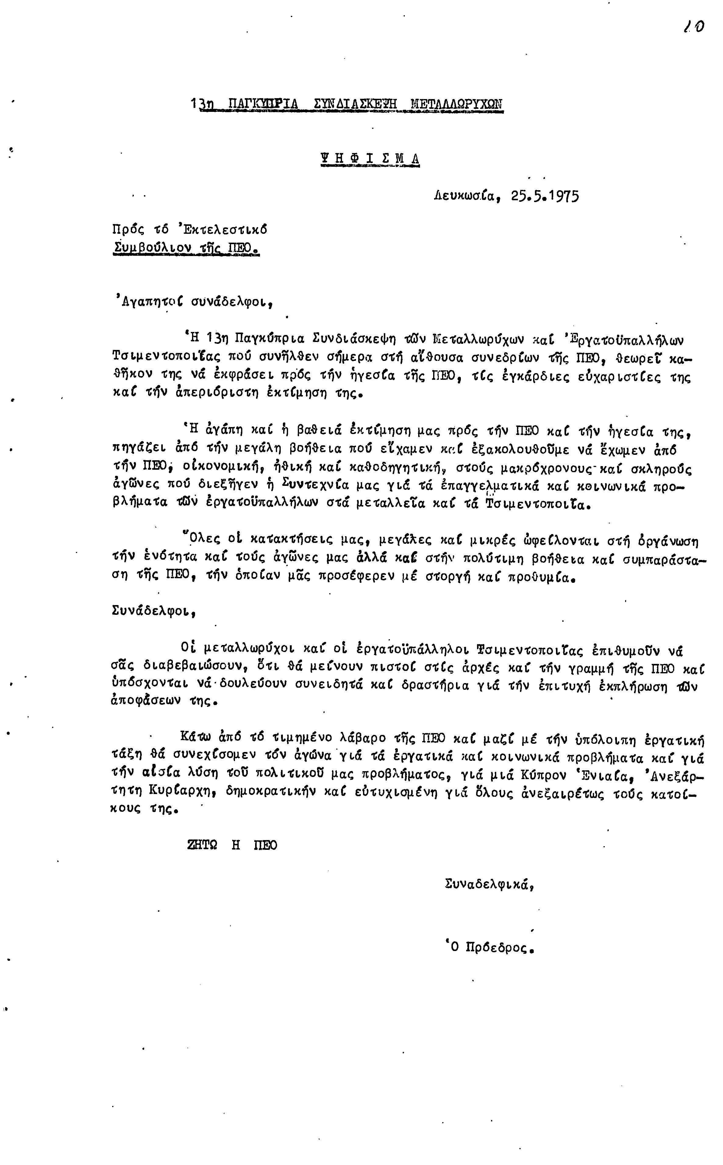ΠΡΑΚΤΙΚΑ 13ης ΣΥΝΔΙΑΣΚΕΨΗΣ ΜΕΤΑΛΛΩΡΥΧΩΝ ΠΕΟ 25.05. 1975 by Παγκύπρια Εργατική Ομοσπονδία - Issuu