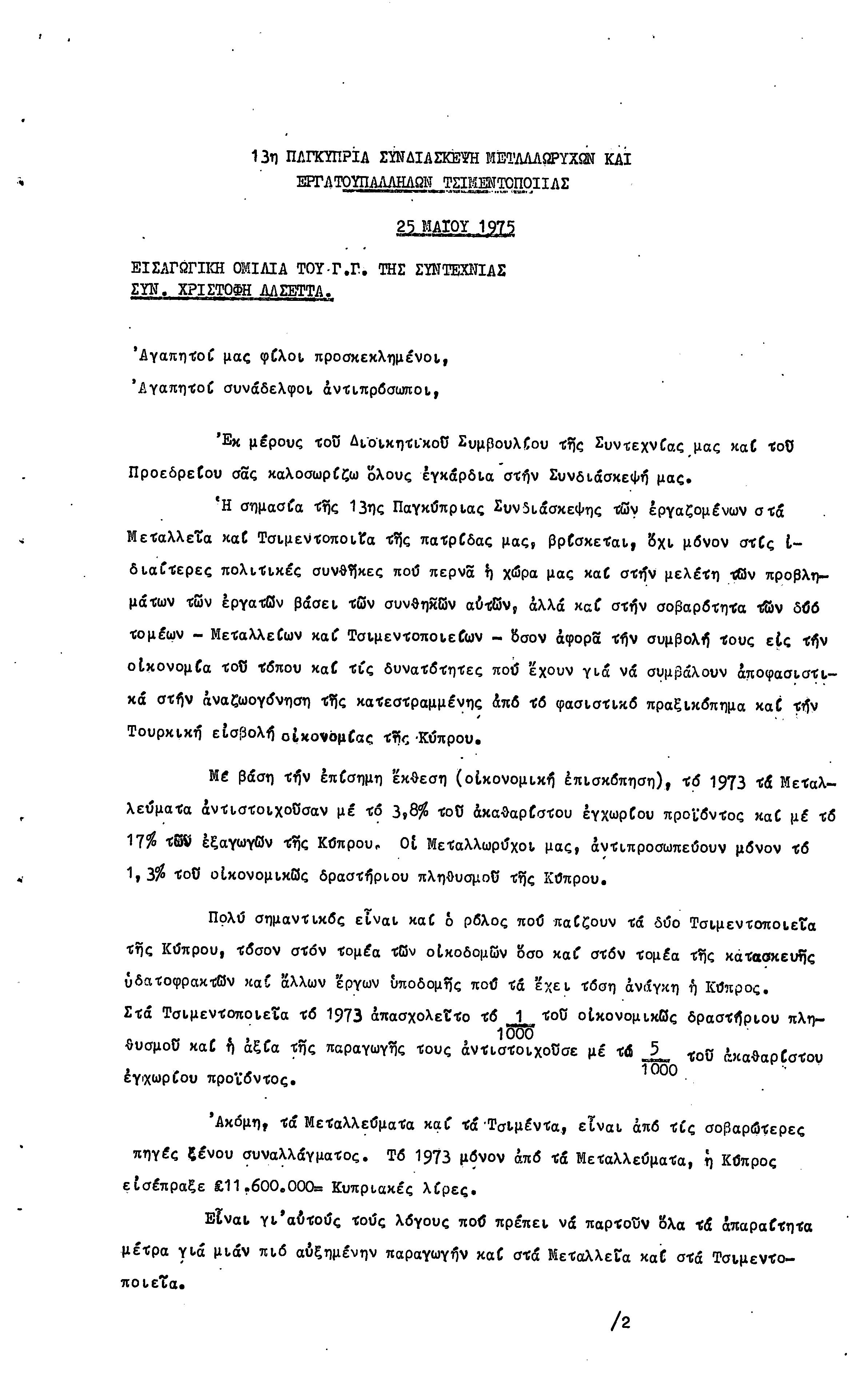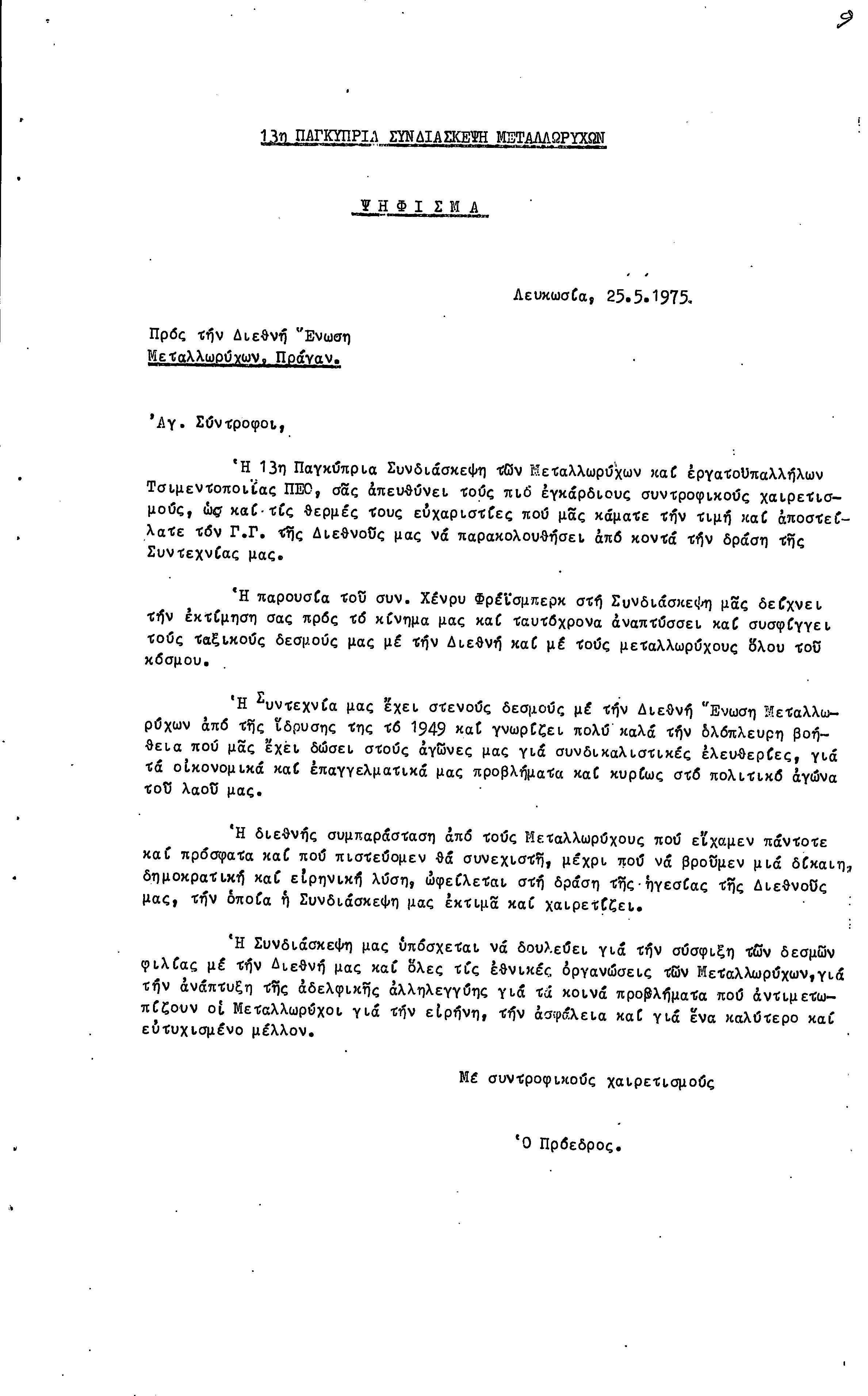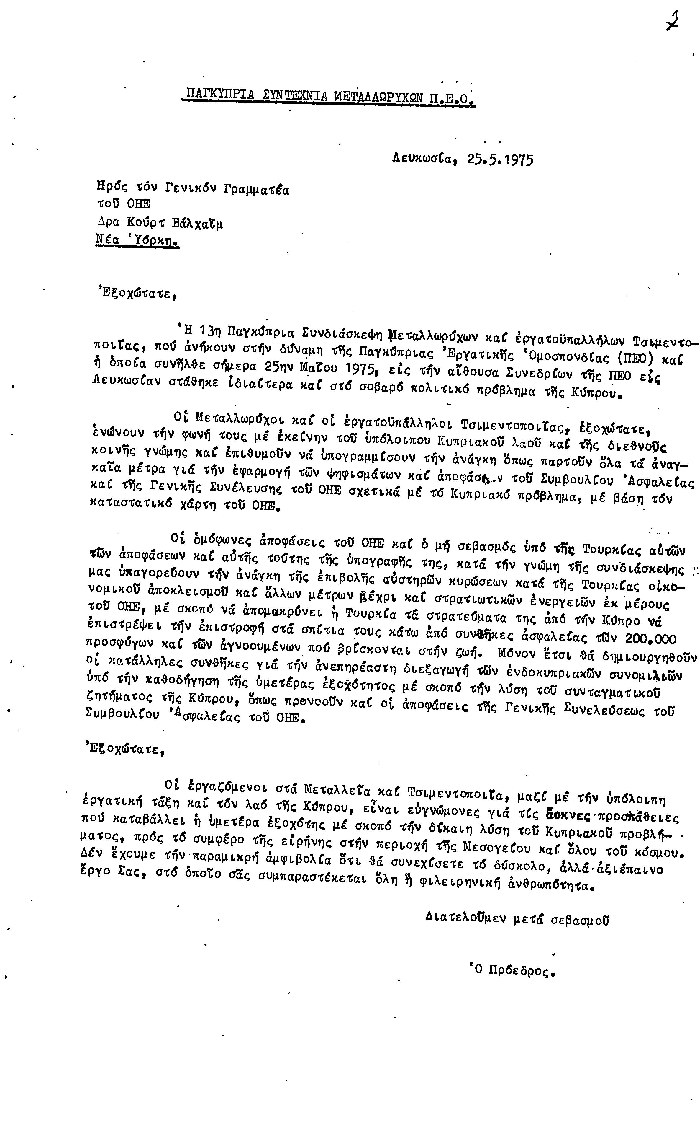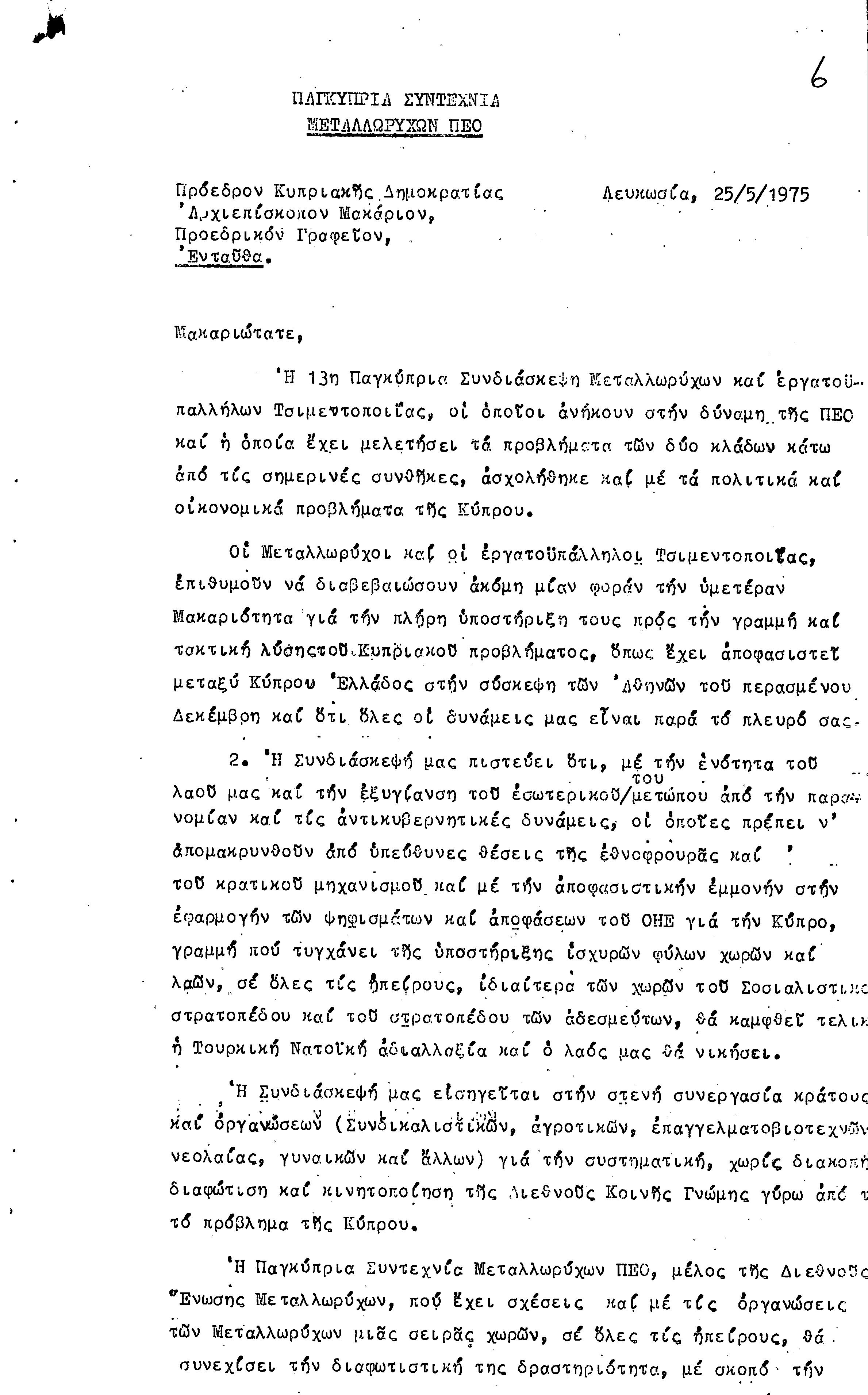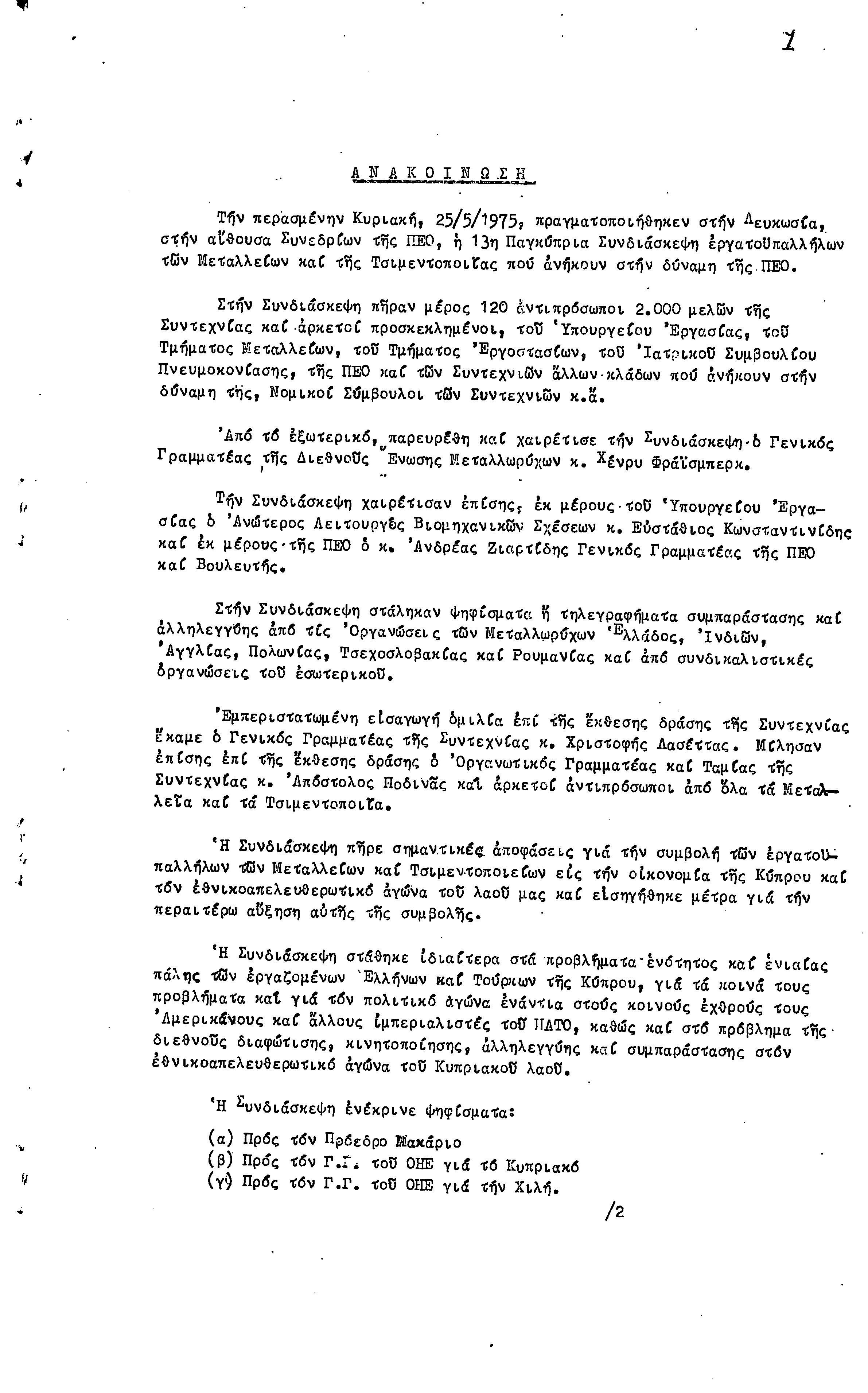 ΠΡΑΚΤΙΚΑ 13ης ΣΥΝΔΙΑΣΚΕΨΗΣ ΜΕΤΑΛΛΩΡΥΧΩΝ ΠΕΟ 25.05. 1975 by Παγκύπρια Εργατική Ομοσπονδία - Issuu