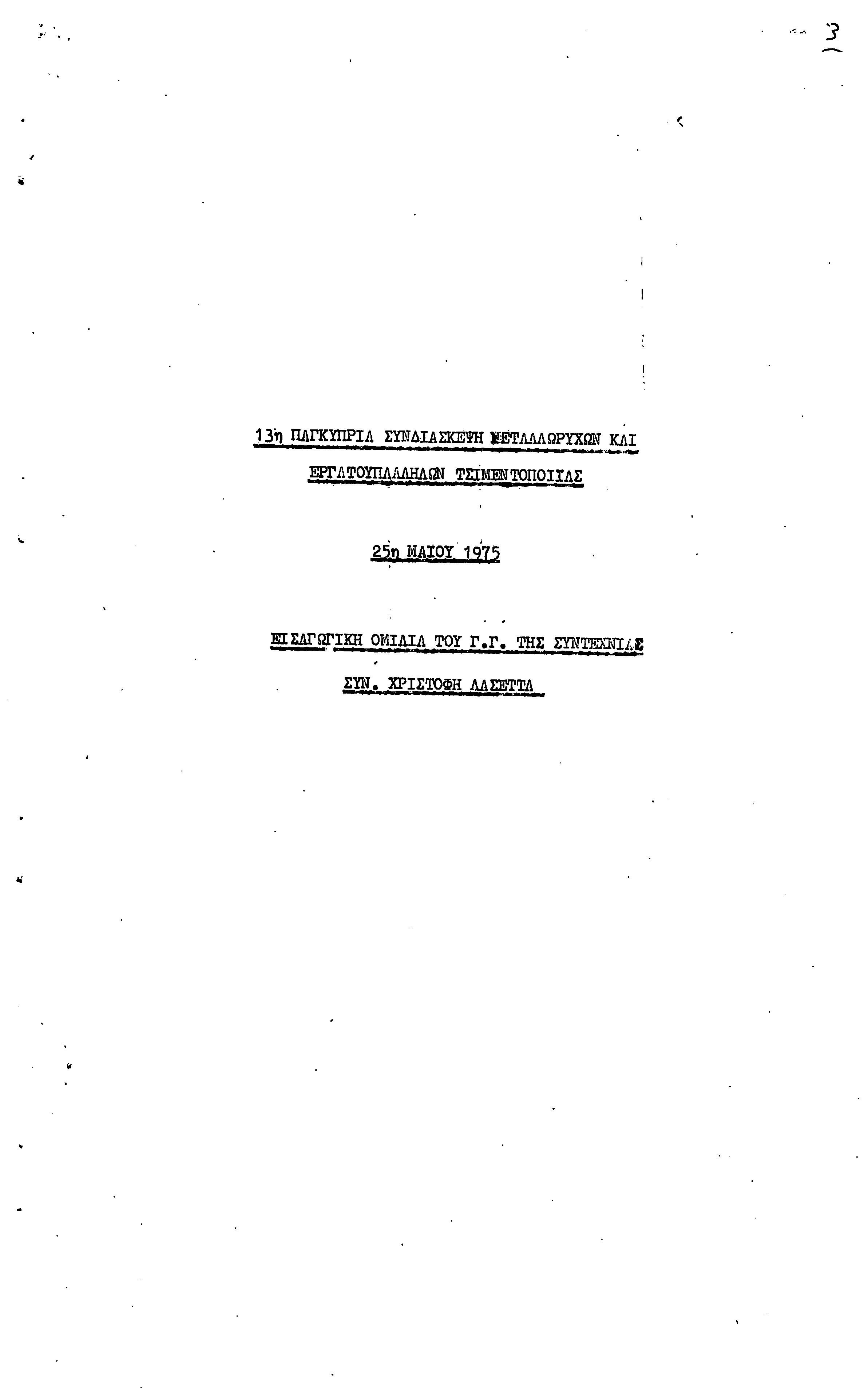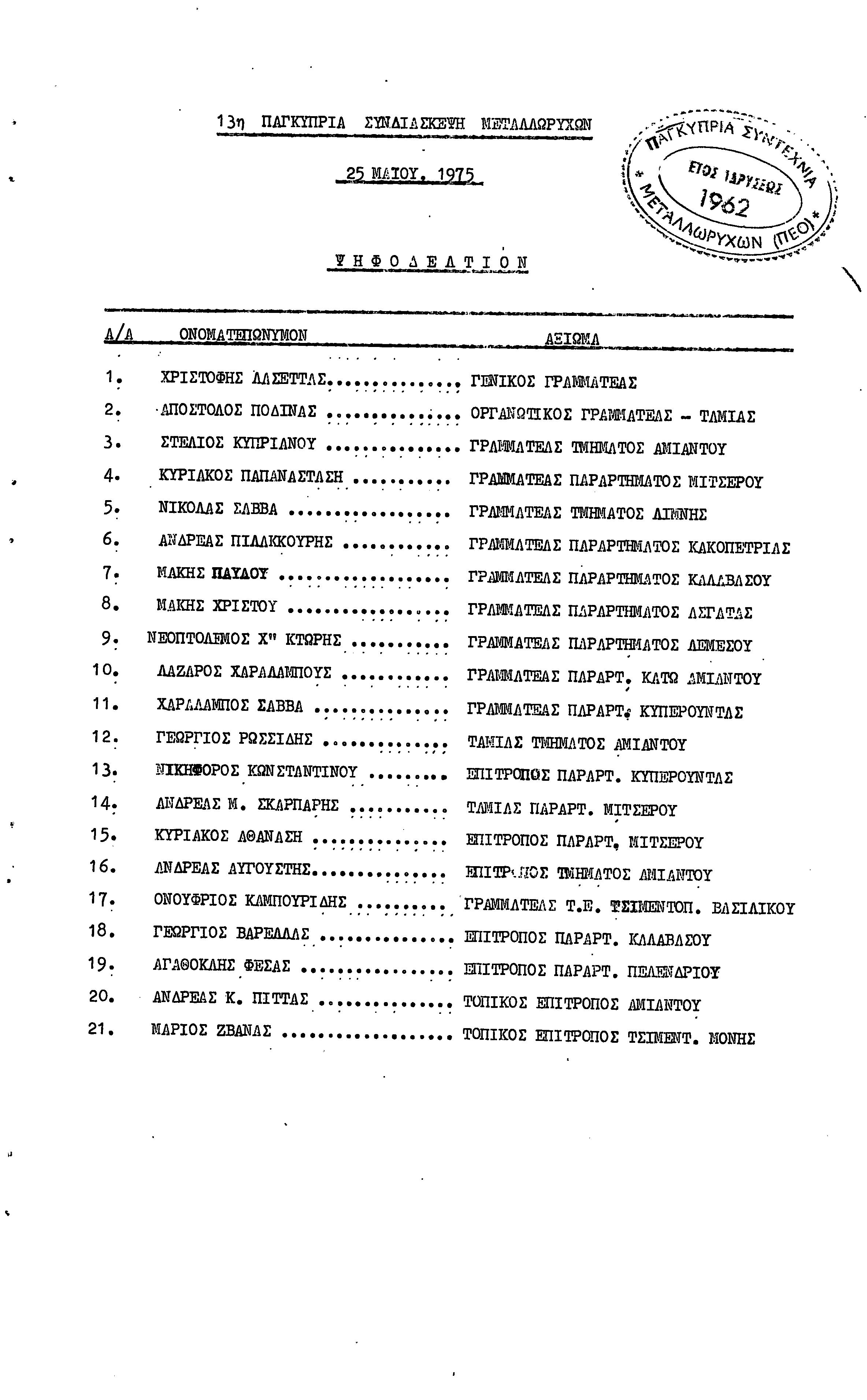 ΠΡΑΚΤΙΚΑ 13ης ΣΥΝΔΙΑΣΚΕΨΗΣ ΜΕΤΑΛΛΩΡΥΧΩΝ ΠΕΟ 25.05. 1975