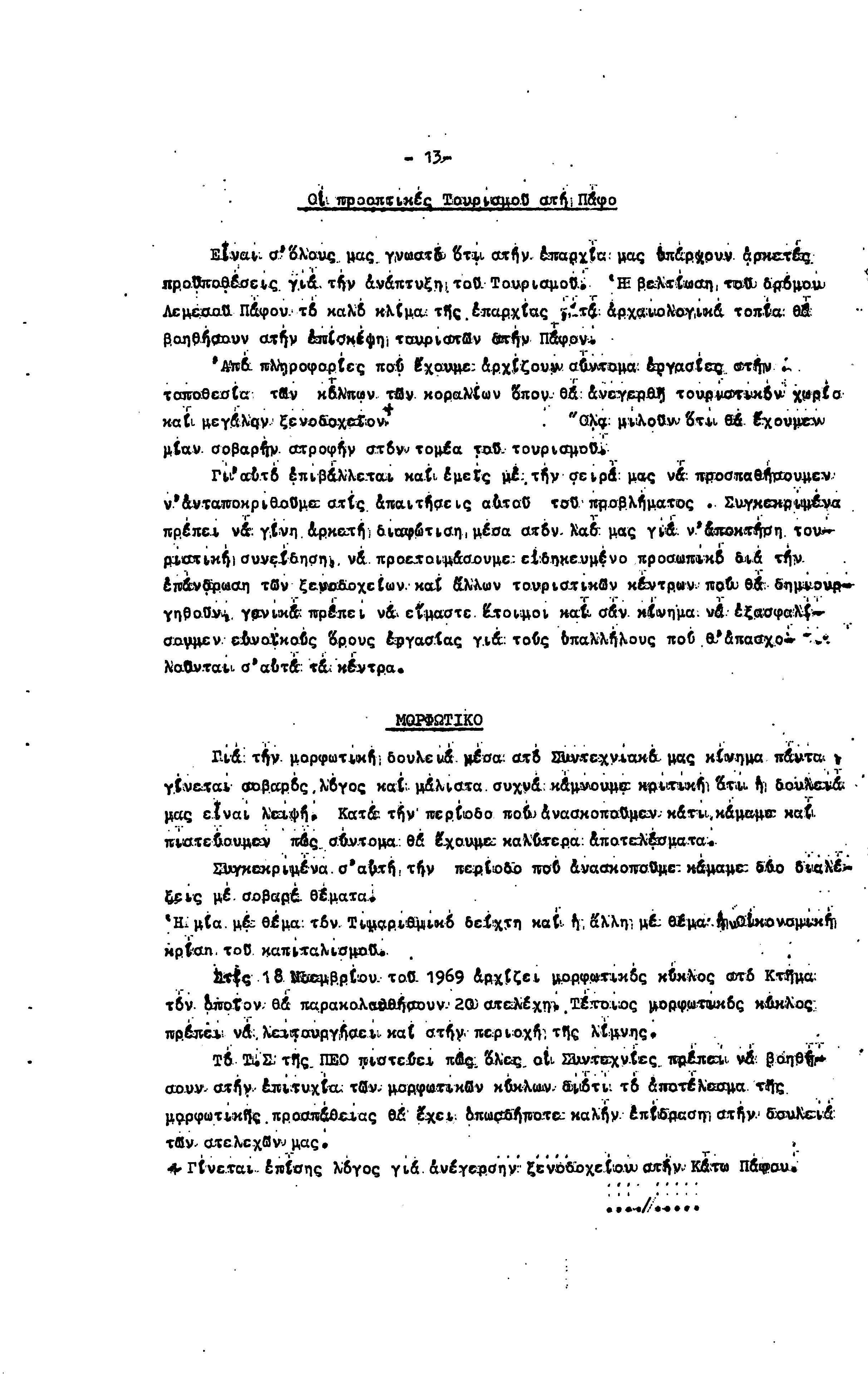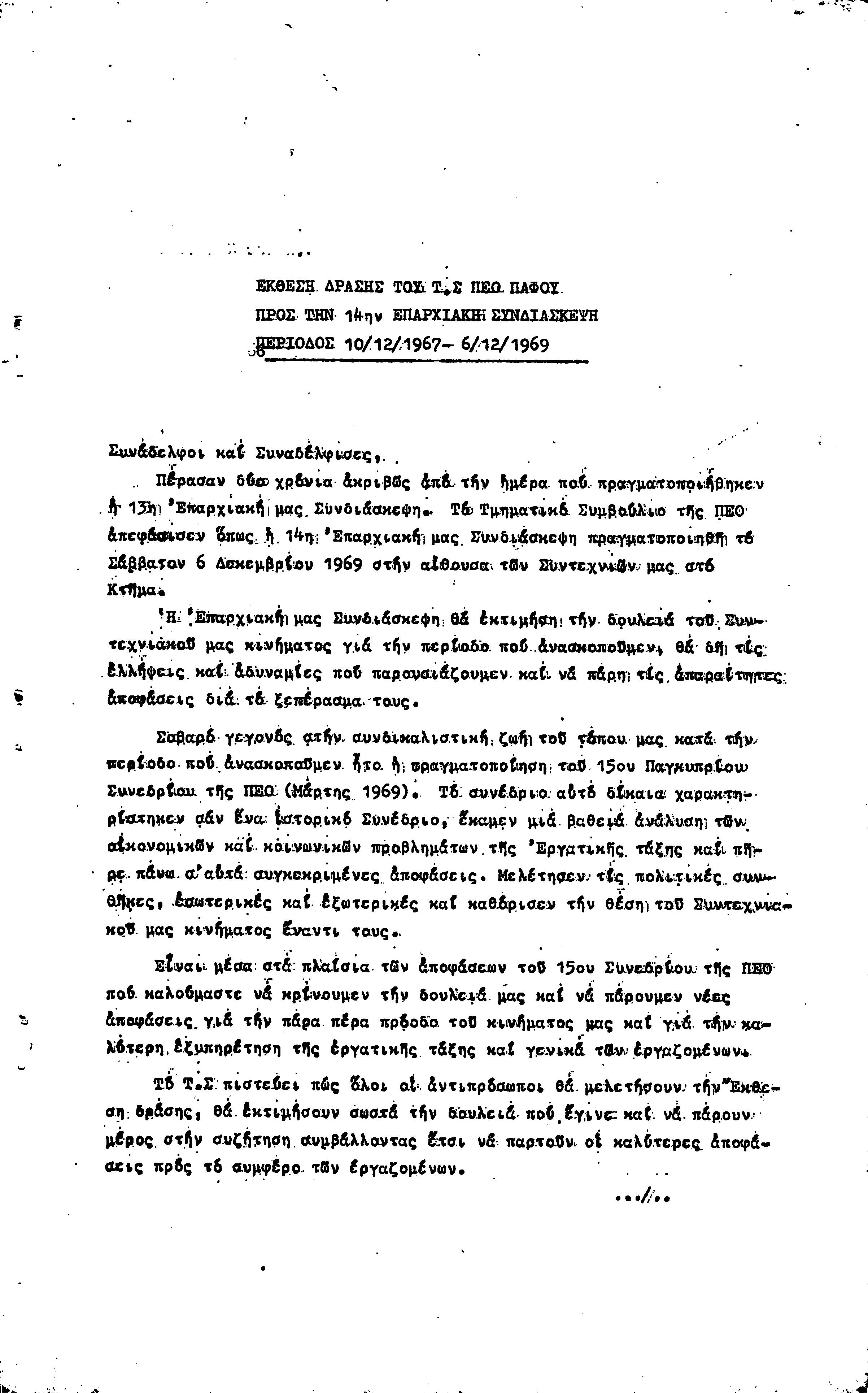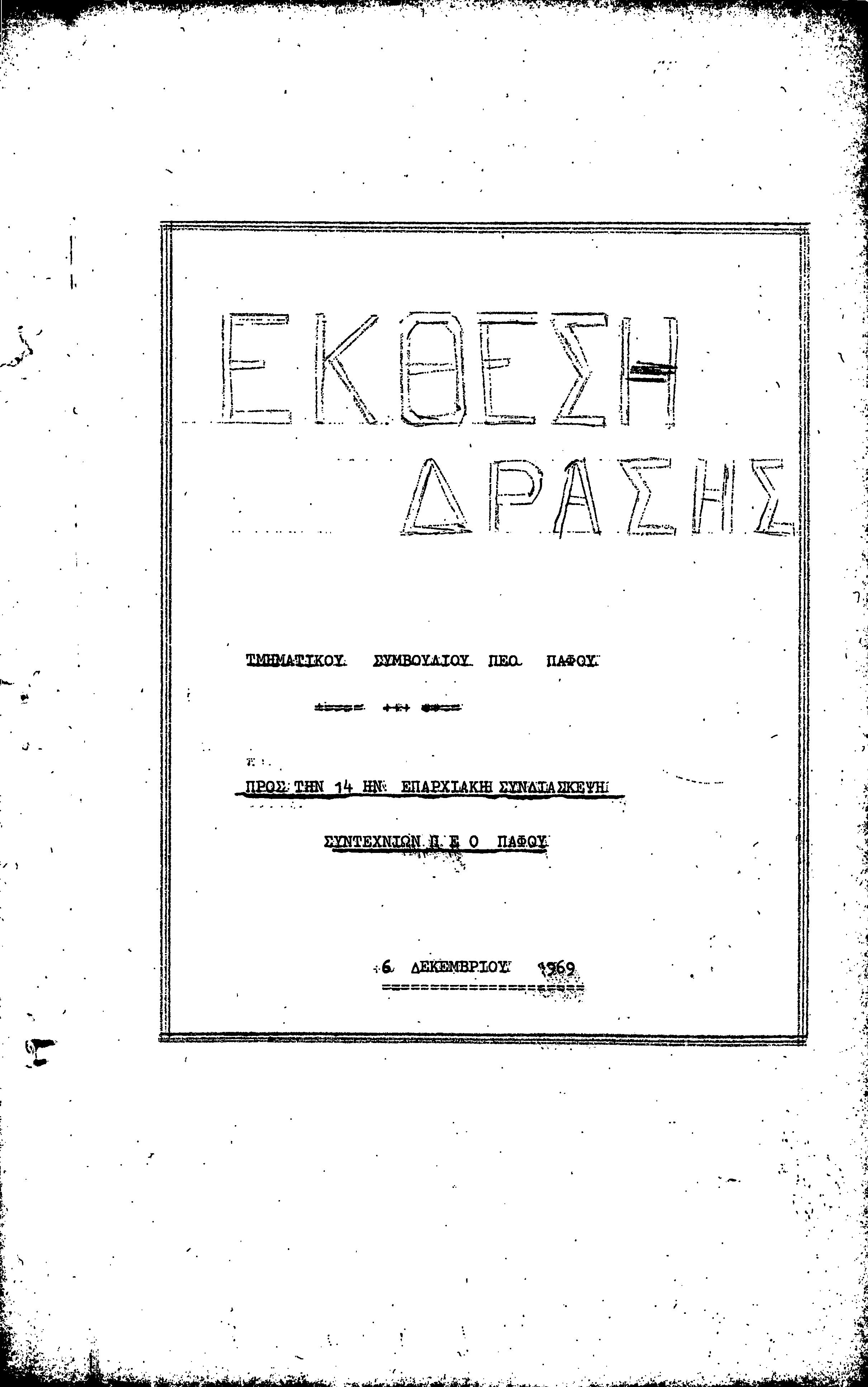 ΠΡΟΣ ΤΗΝ 14ην ΕΠΑΡΧΙΑΚΗ ΣΥΝΔΙΑΣΚΕΨΗ Τ.Σ. ΠΕΟ ΠΑΦΟΥ, 6.12.1969 ( ΕΚΘΕΣΗ ΔΡΑΣΗΣ)