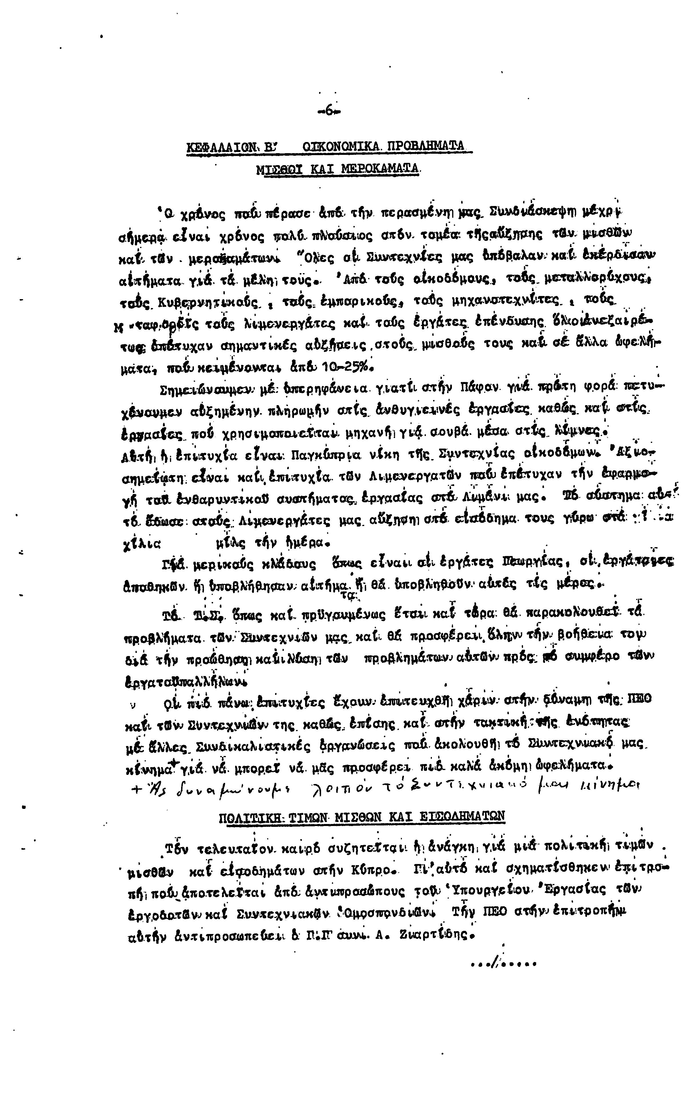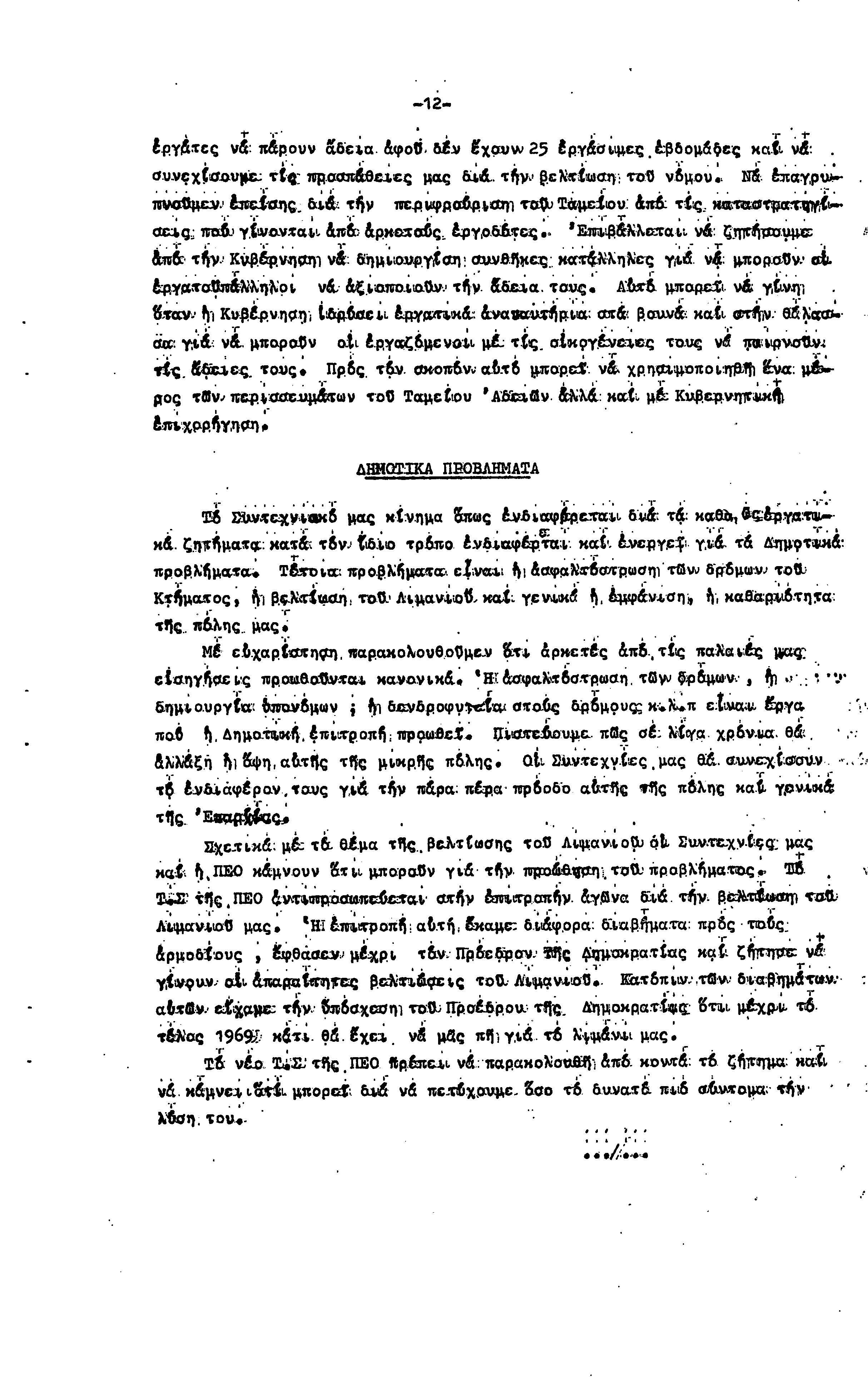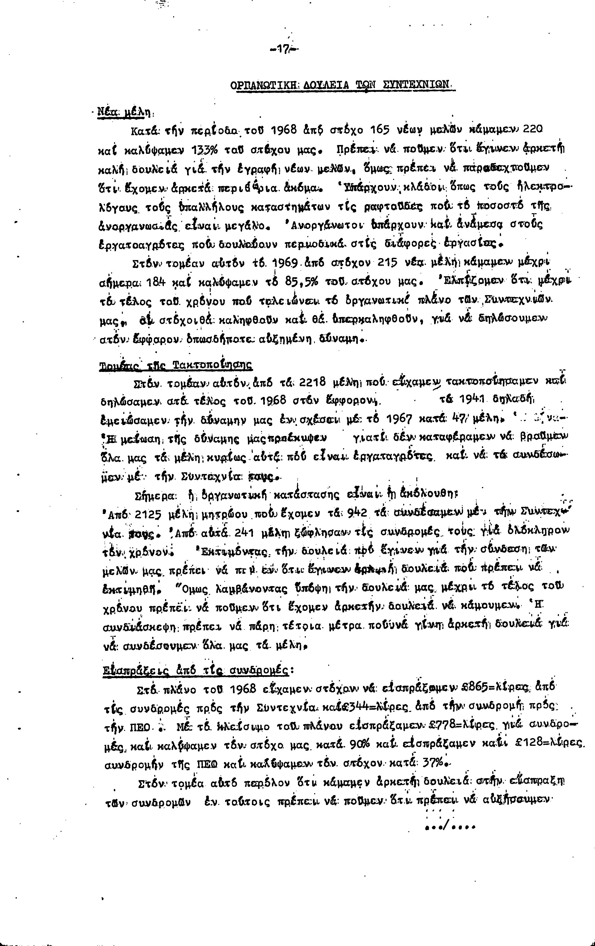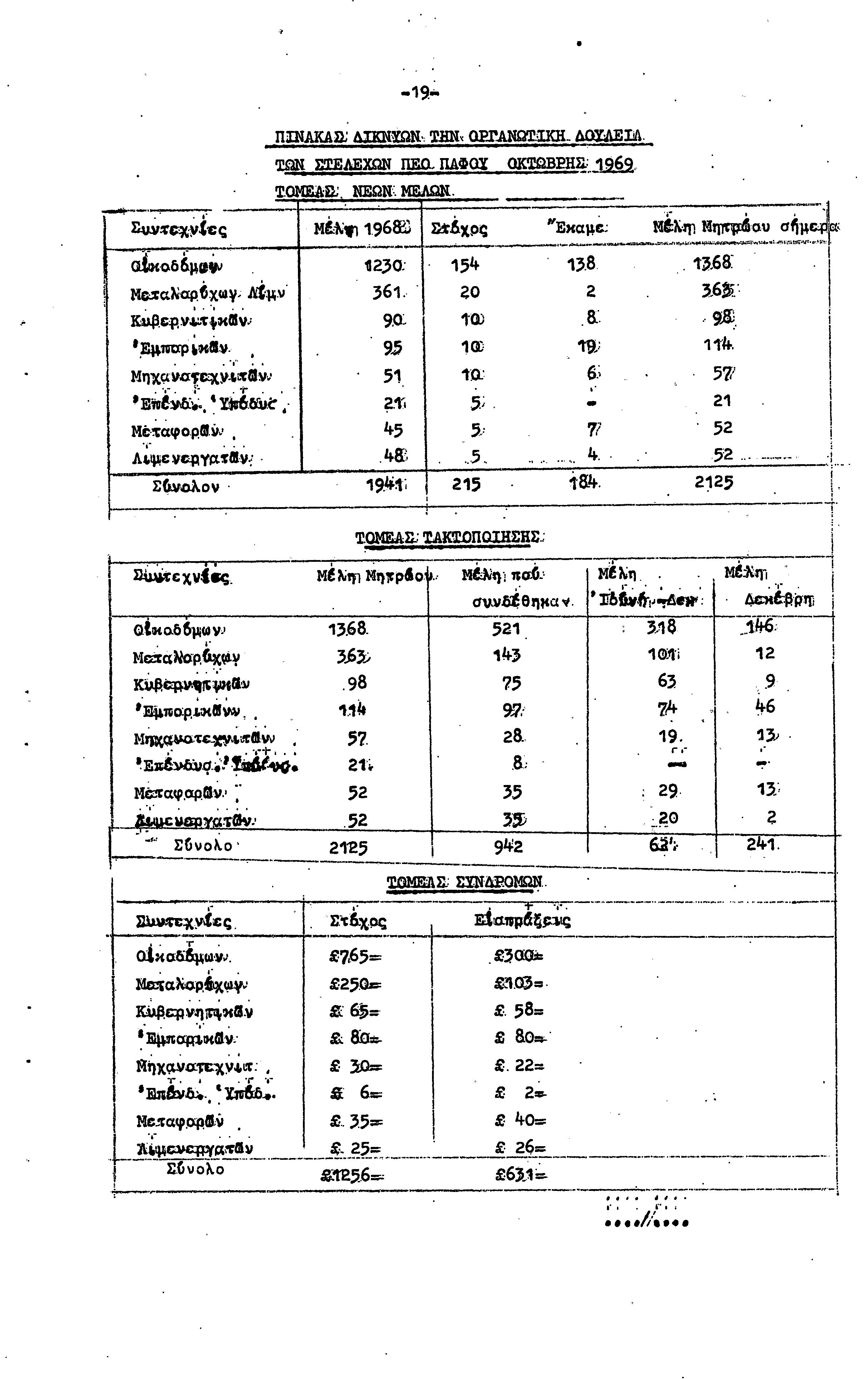 ΠΡΟΣ ΤΗΝ 14ην ΕΠΑΡΧΙΑΚΗ ΣΥΝΔΙΑΣΚΕΨΗ Τ.Σ. ΠΕΟ ΠΑΦΟΥ, 6.12.1969 ( ΕΚΘΕΣΗ ΔΡΑΣΗΣ)