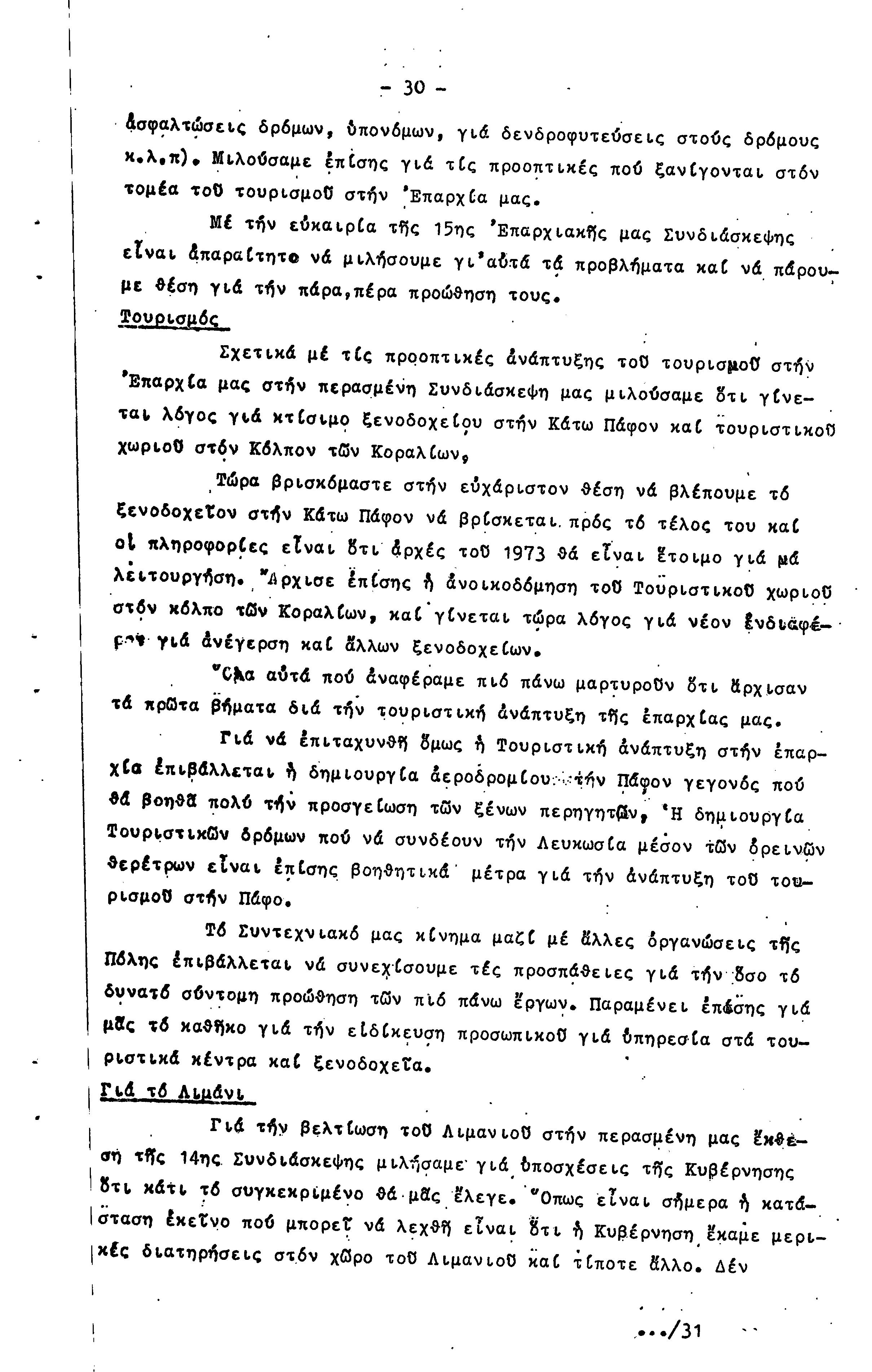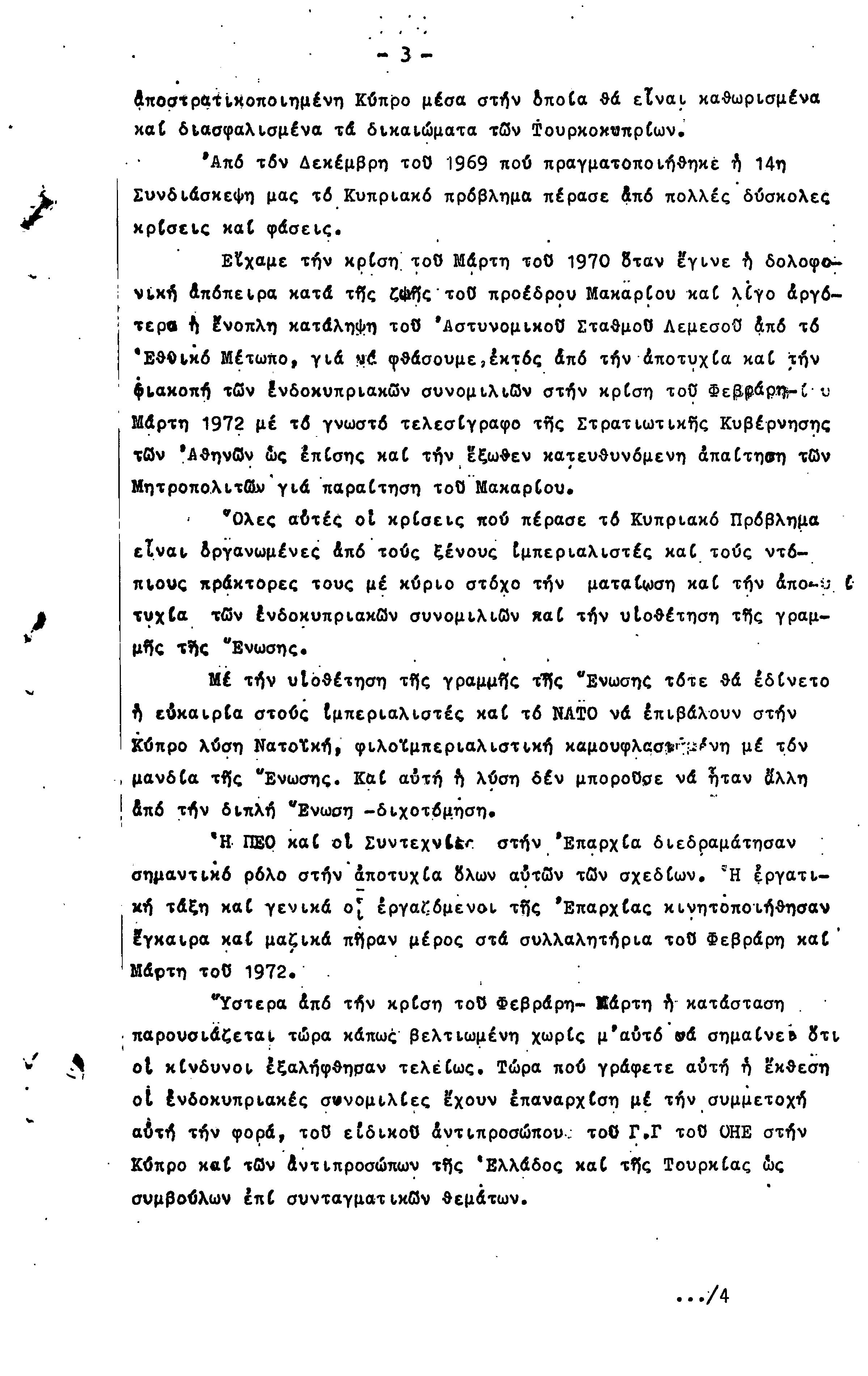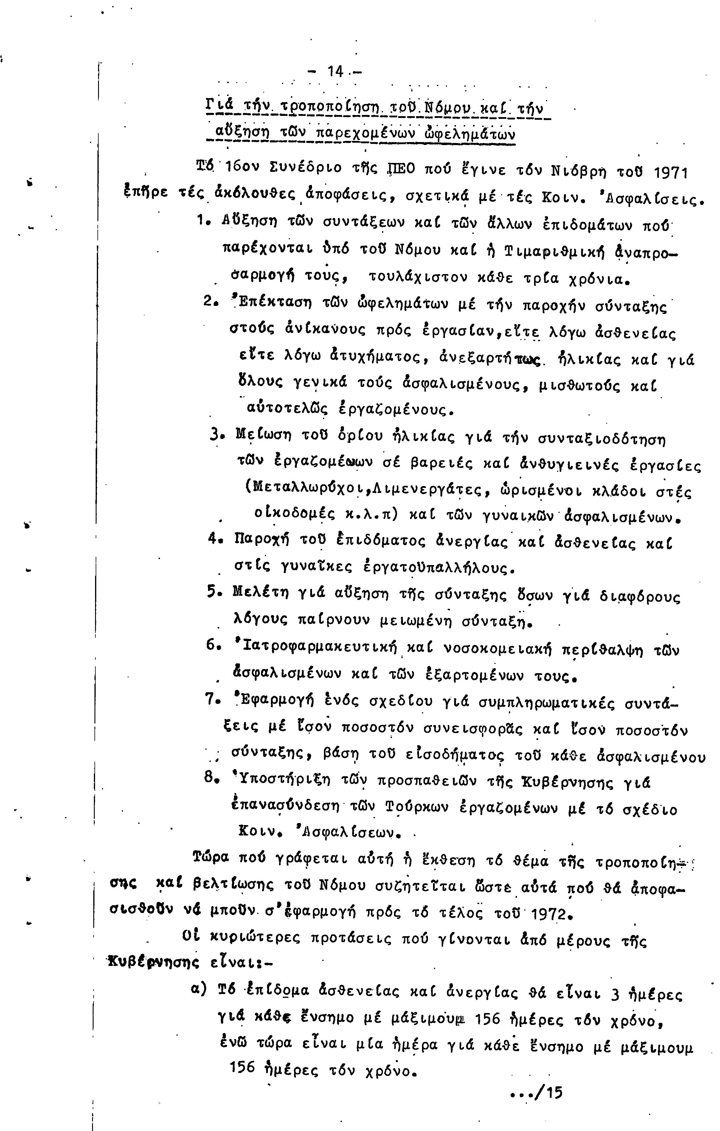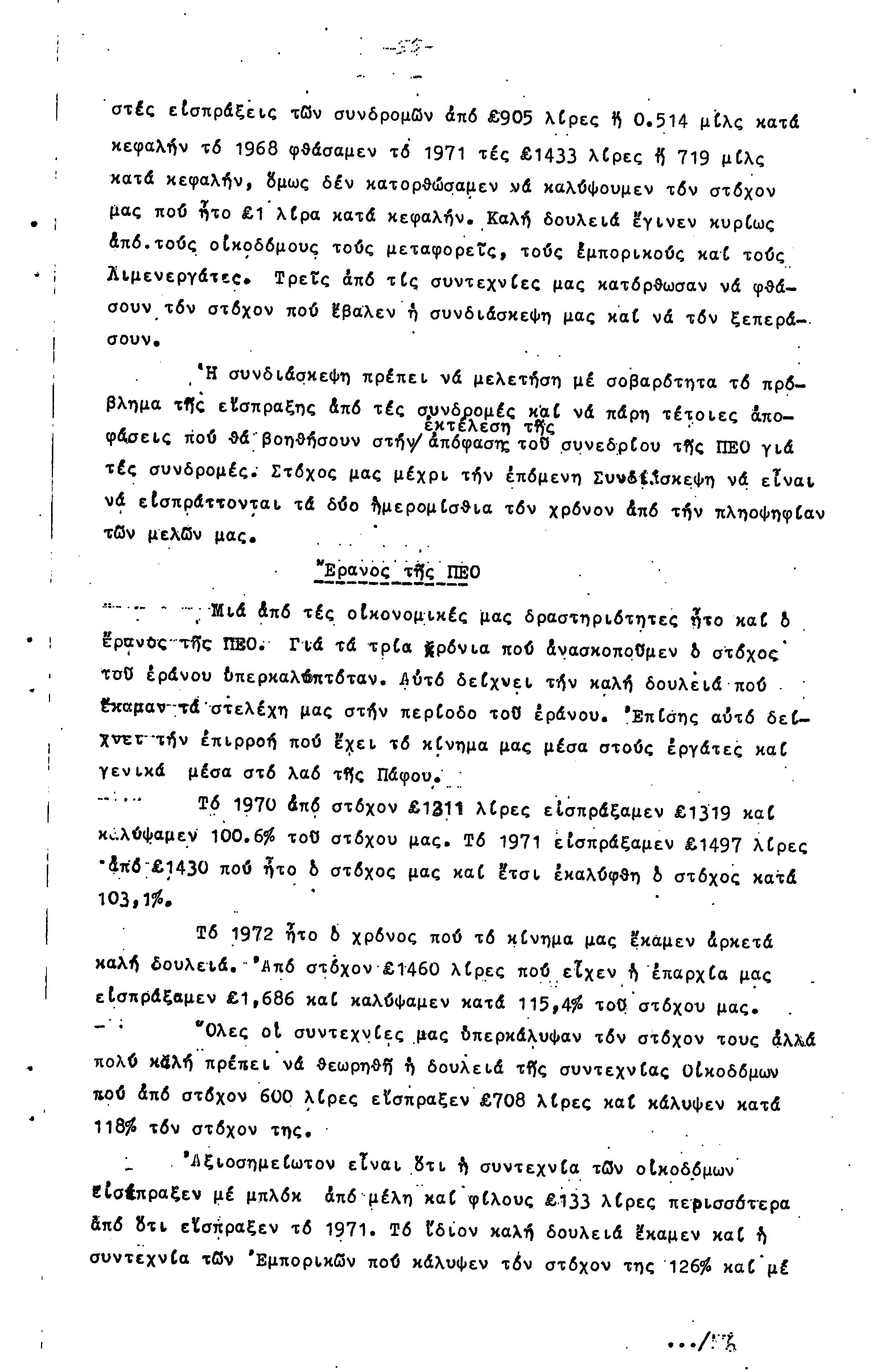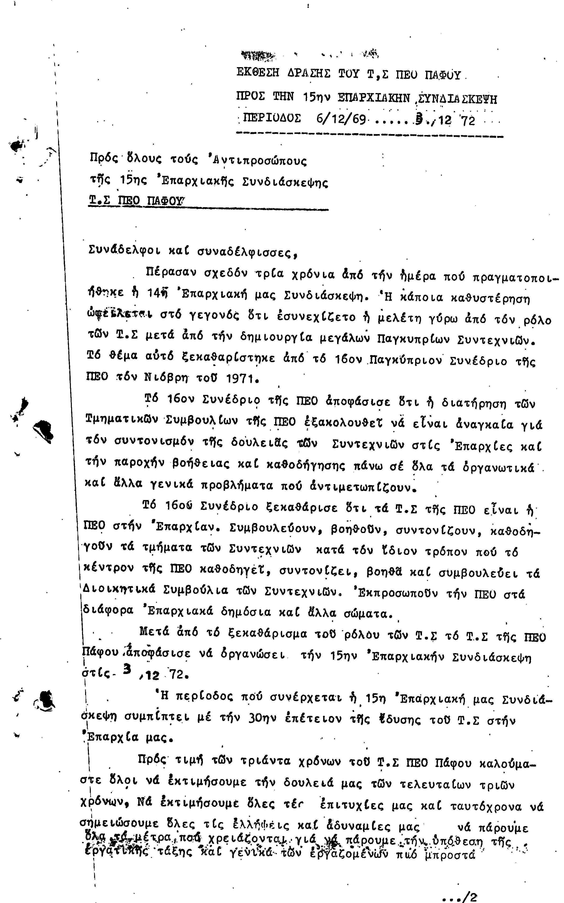 ΠΡΟΣ ΤΗΝ 15η ΕΠΑΡΧΙΑΚΗ ΣΥΝΔΙΑΣΚΕΨΗ Τ.Σ. ΠΕΟ ΠΑΦΟΥ, 1969-1972 ( ΕΚΘΕΣΗ ΔΡΑΣΗΣ)