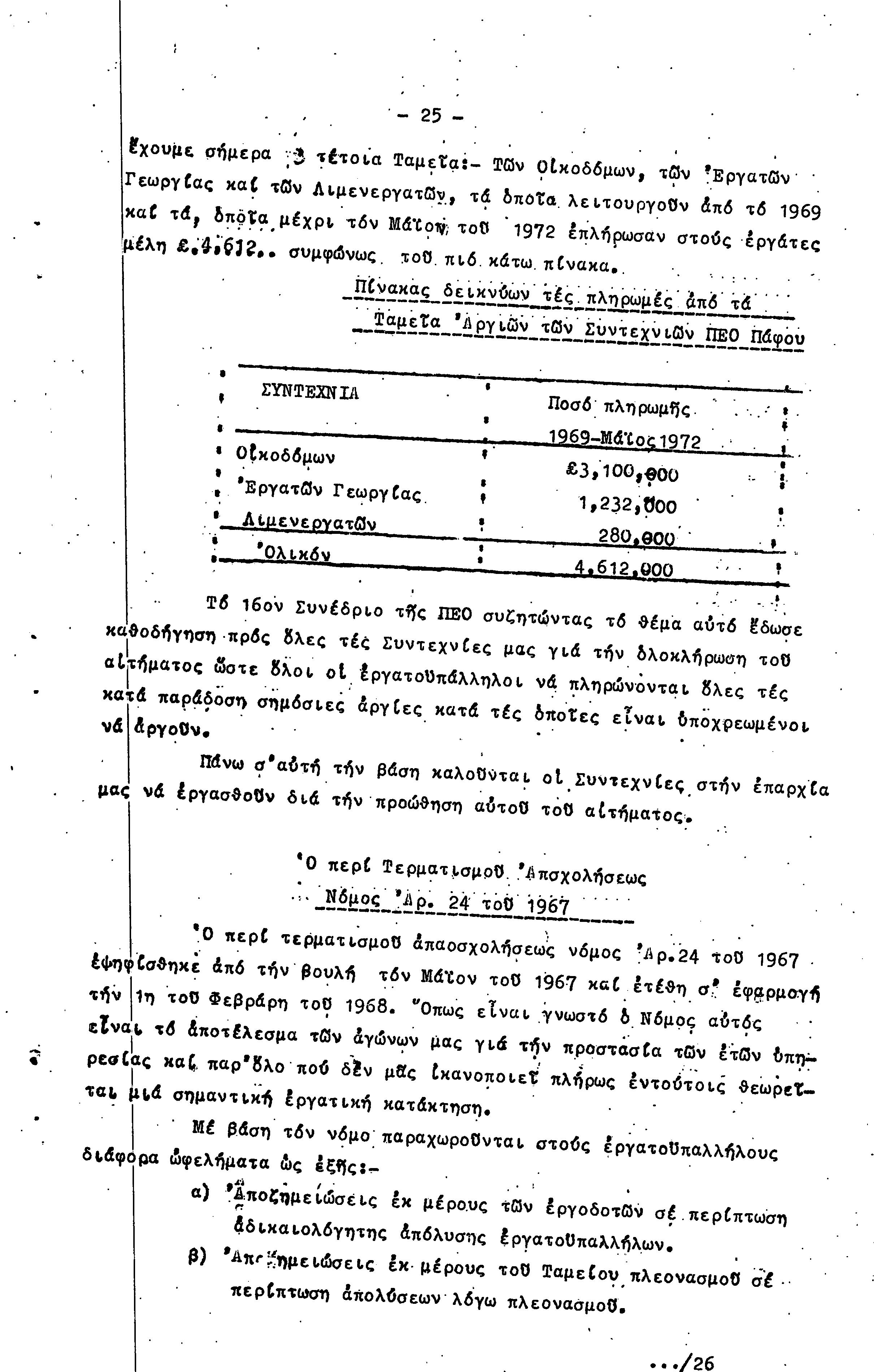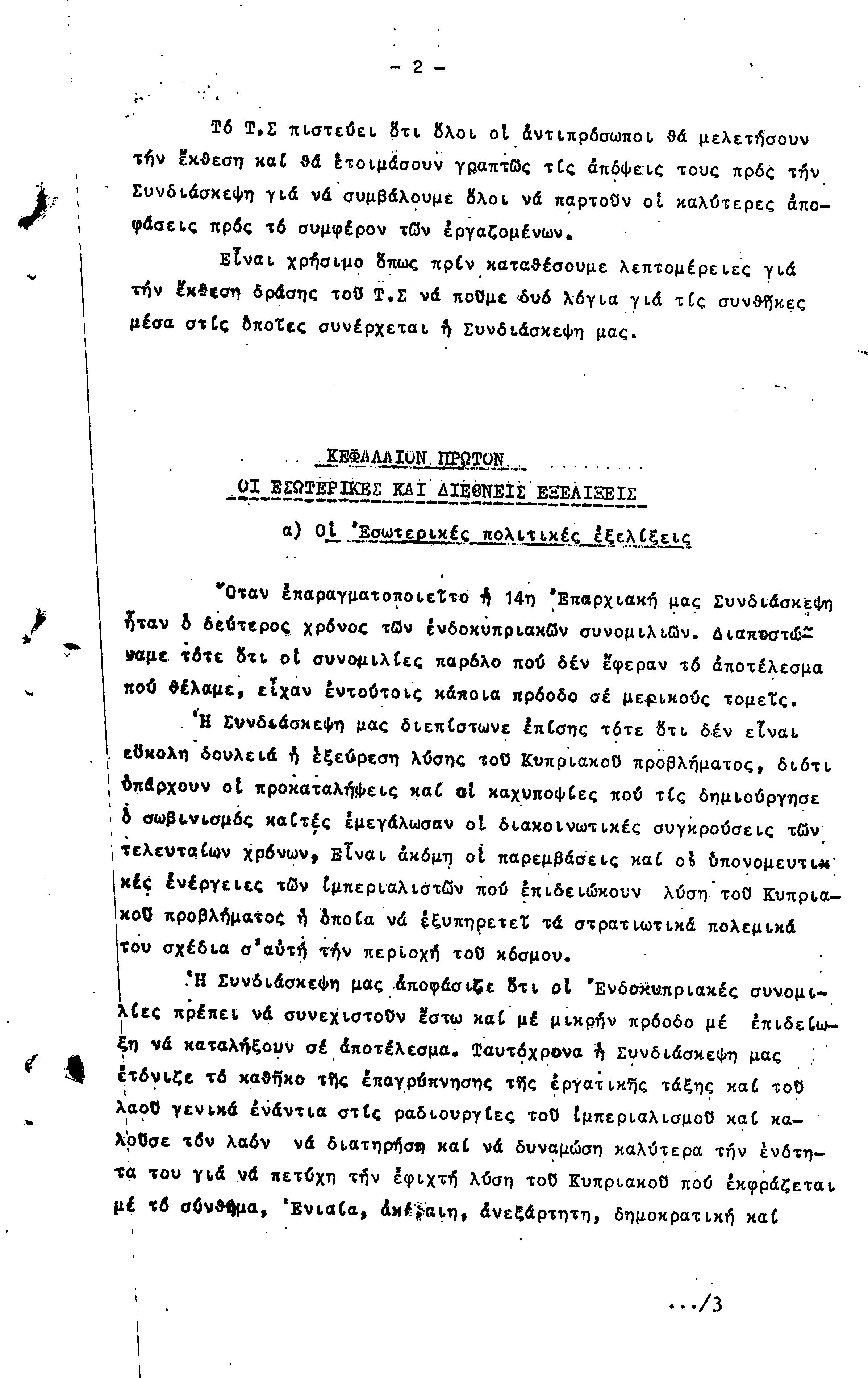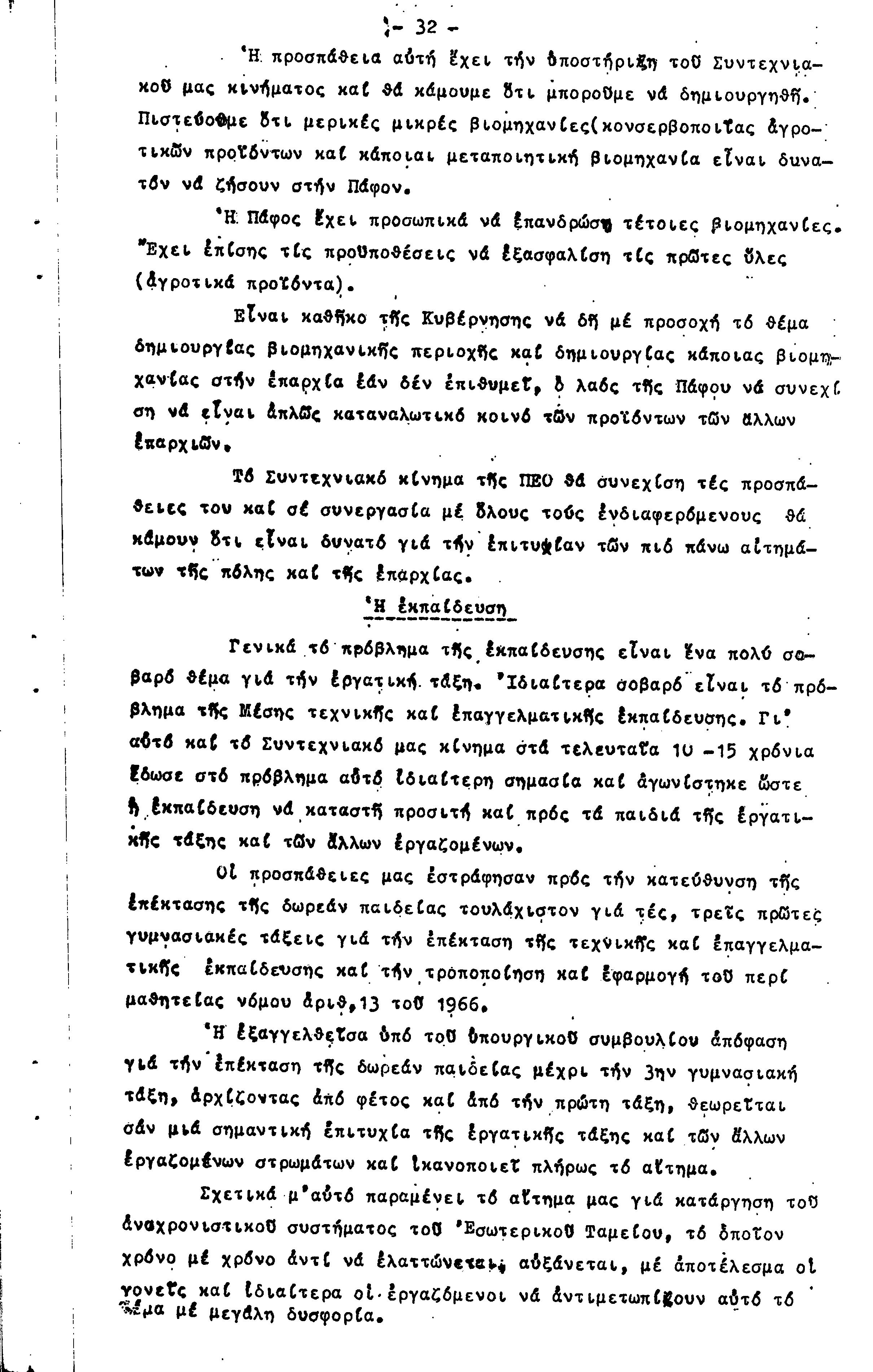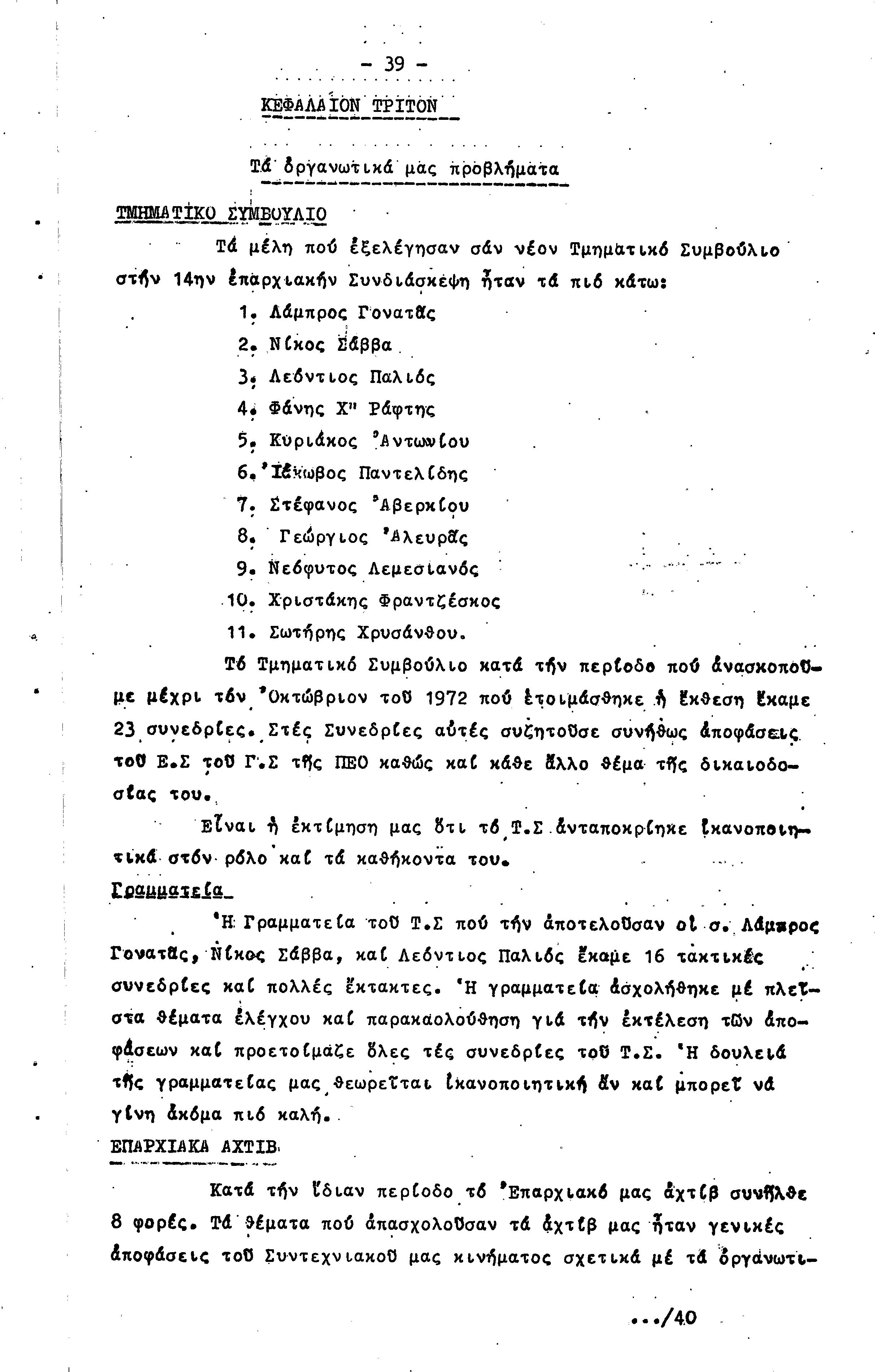 ΠΡΟΣ ΤΗΝ 15η ΕΠΑΡΧΙΑΚΗ ΣΥΝΔΙΑΣΚΕΨΗ Τ.Σ. ΠΕΟ ΠΑΦΟΥ, 1969-1972 ( ΕΚΘΕΣΗ ΔΡΑΣΗΣ)