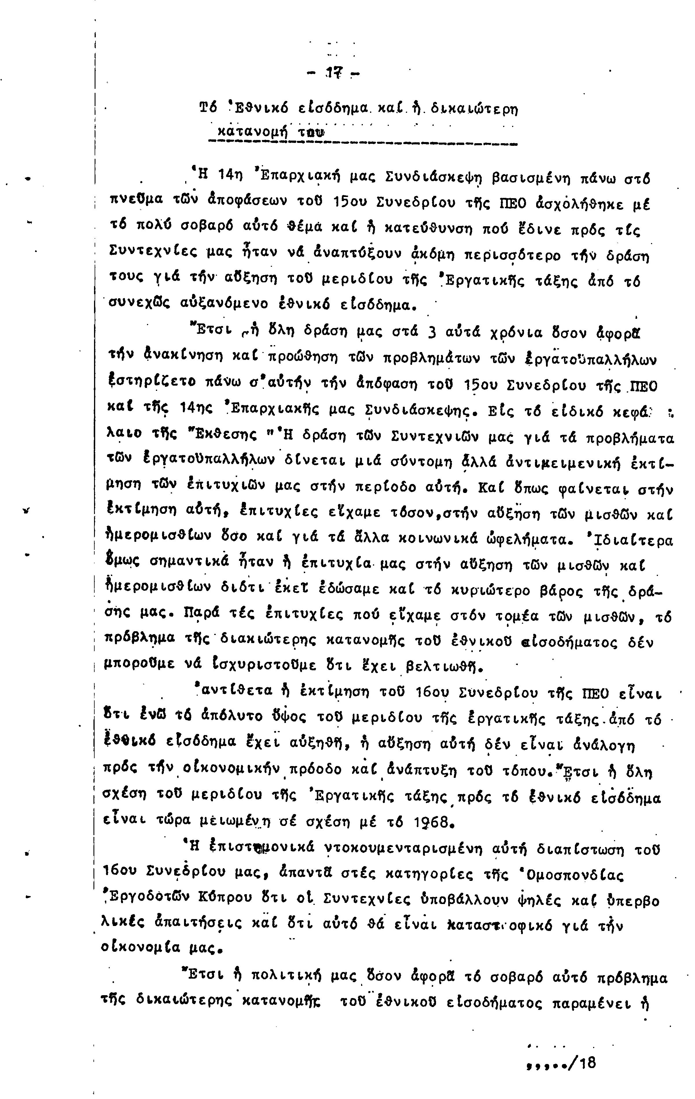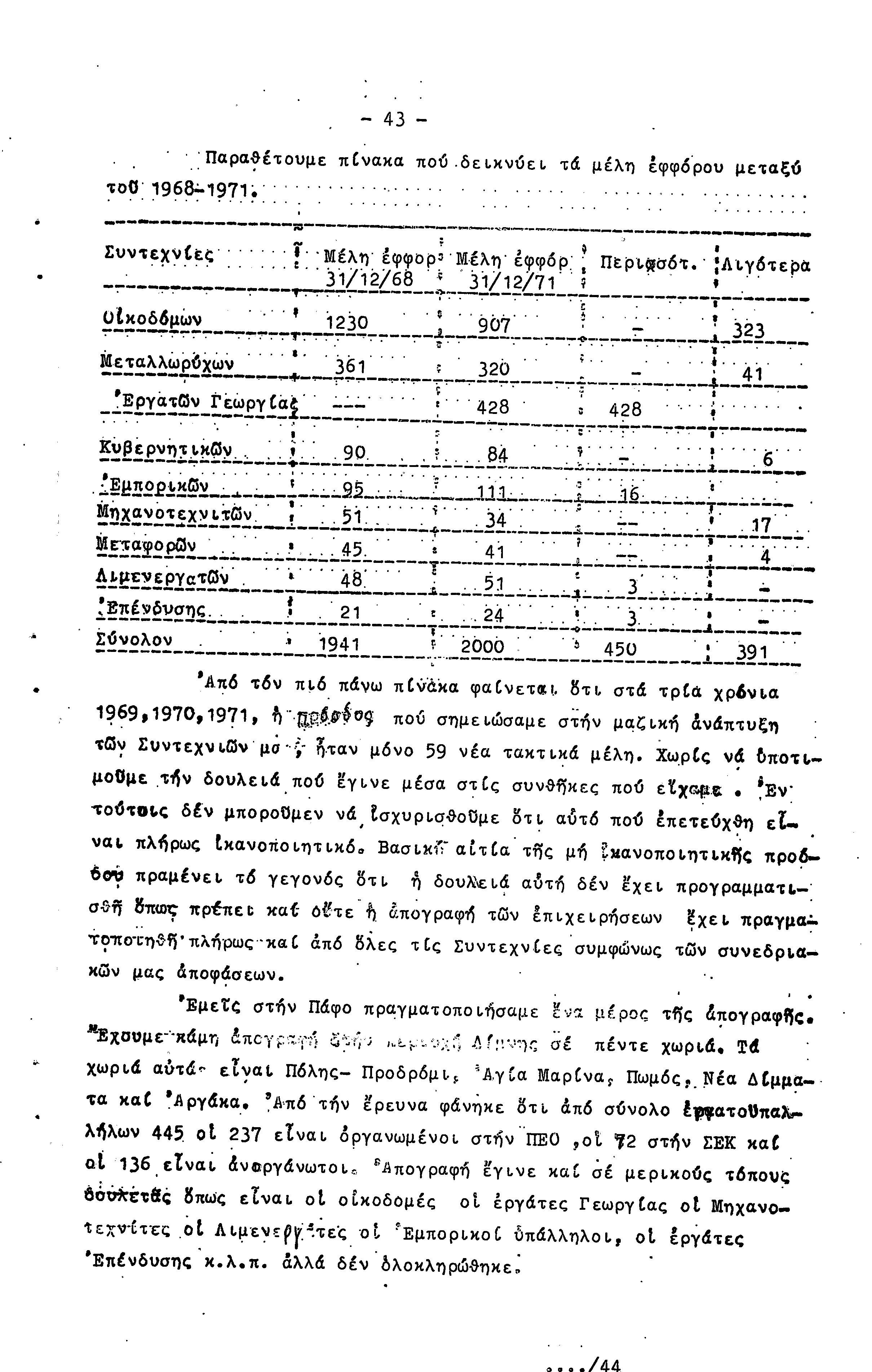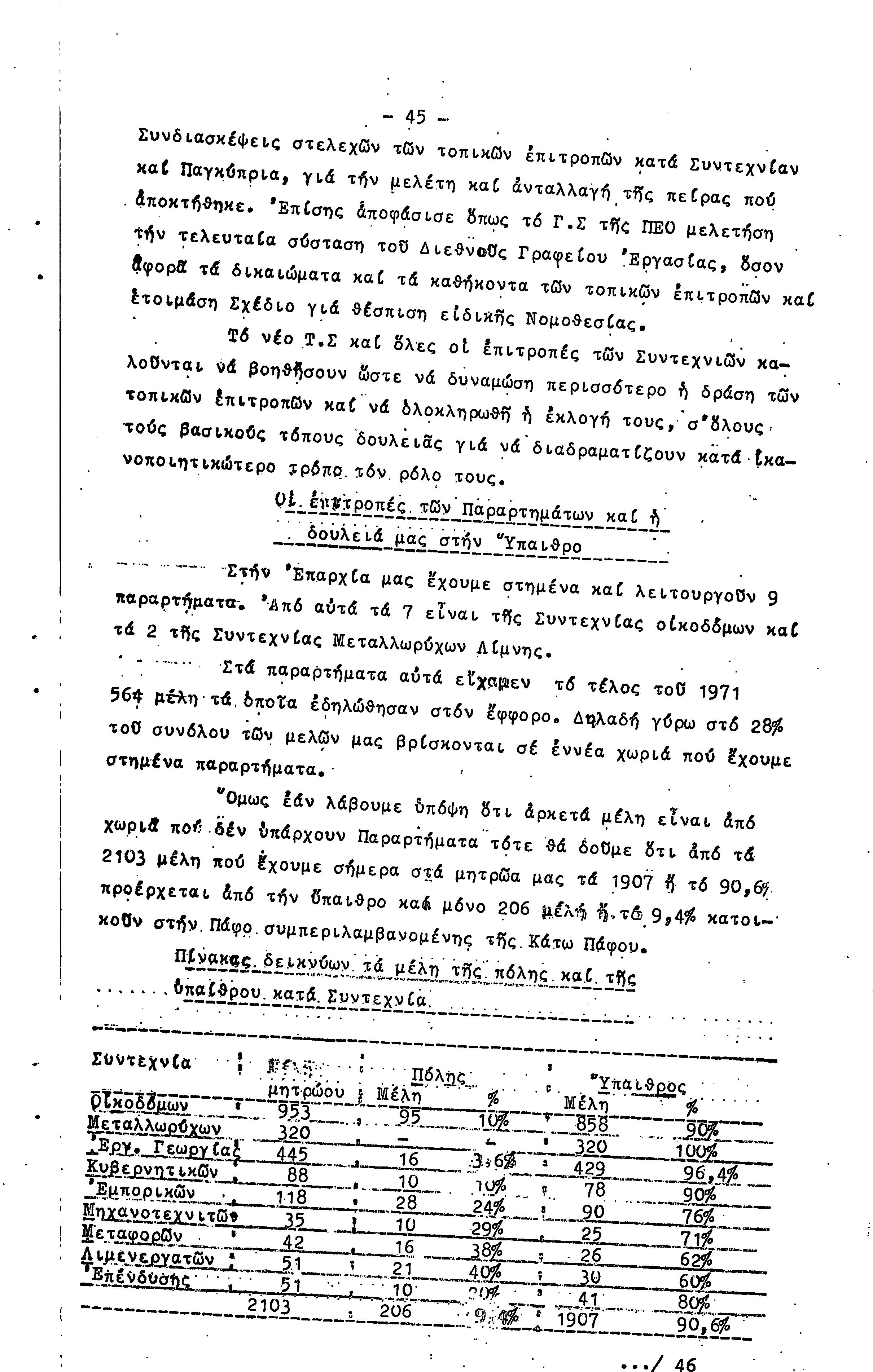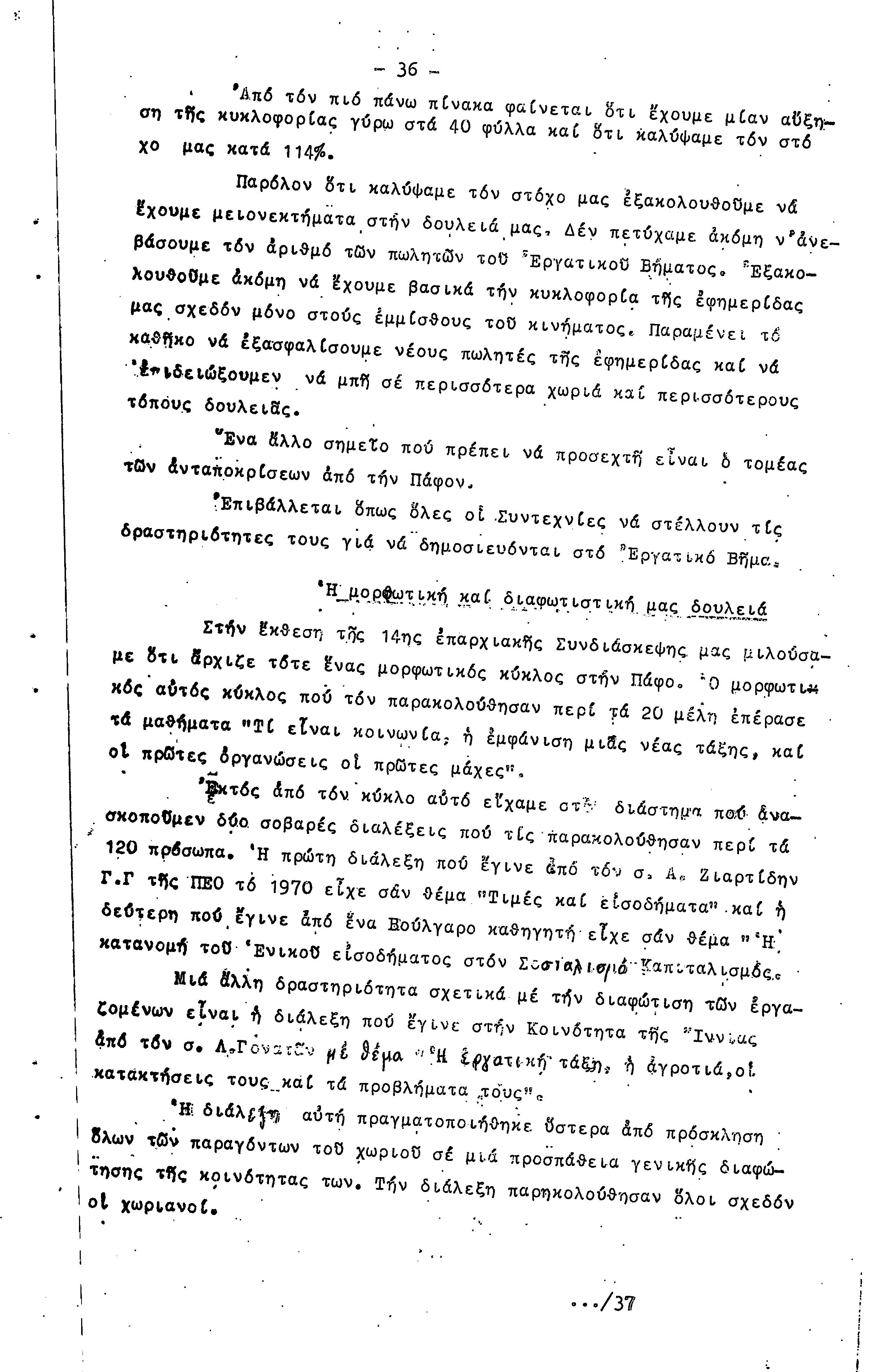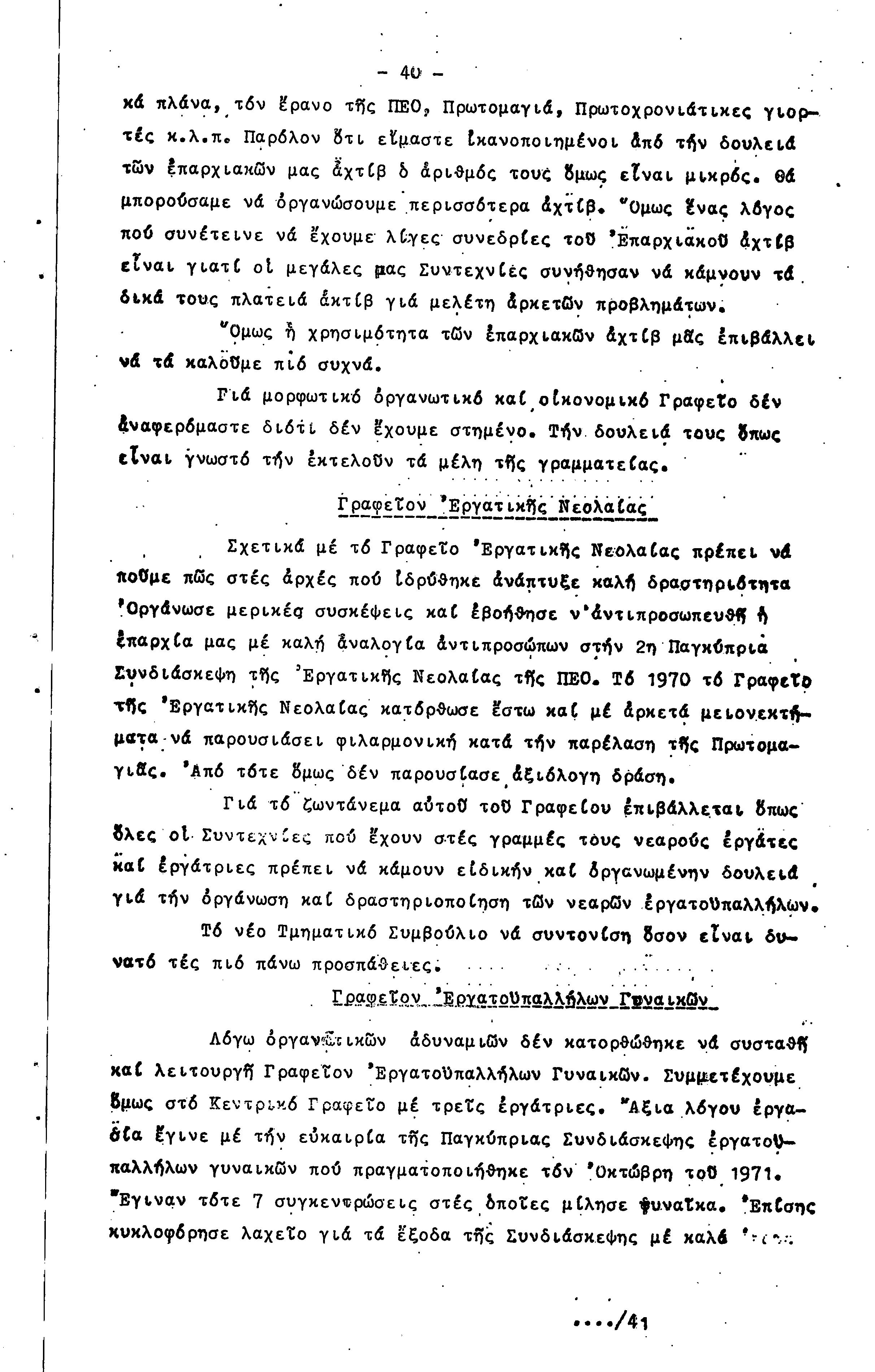 ΠΡΟΣ ΤΗΝ 15η ΕΠΑΡΧΙΑΚΗ ΣΥΝΔΙΑΣΚΕΨΗ Τ.Σ. ΠΕΟ ΠΑΦΟΥ, 1969-1972 ( ΕΚΘΕΣΗ ΔΡΑΣΗΣ)