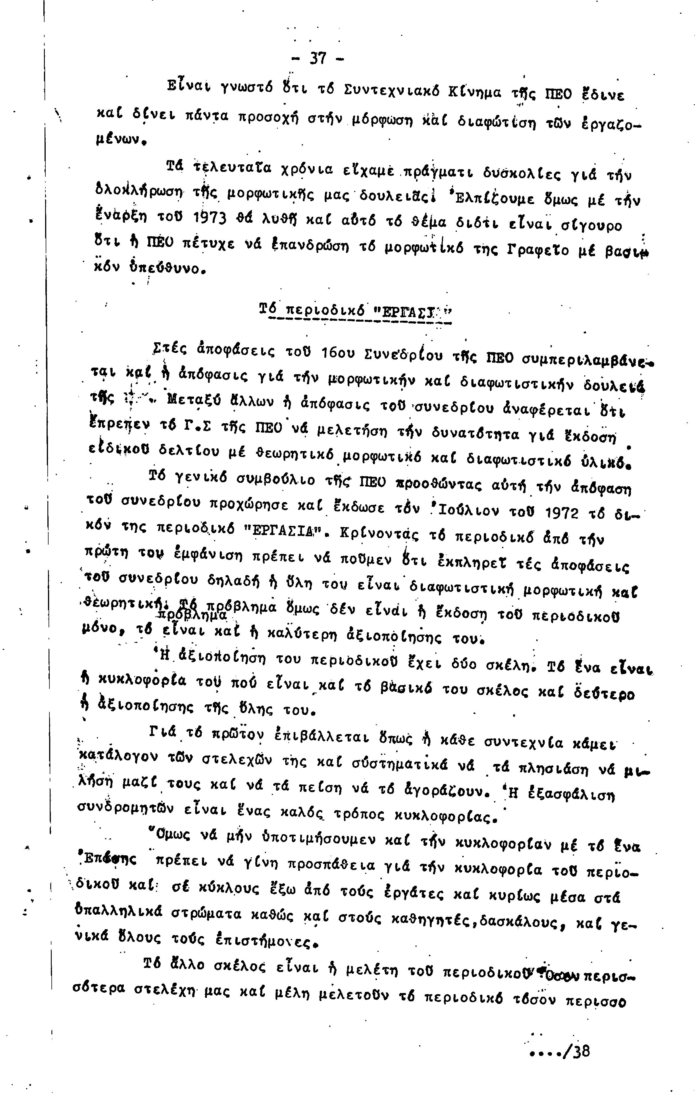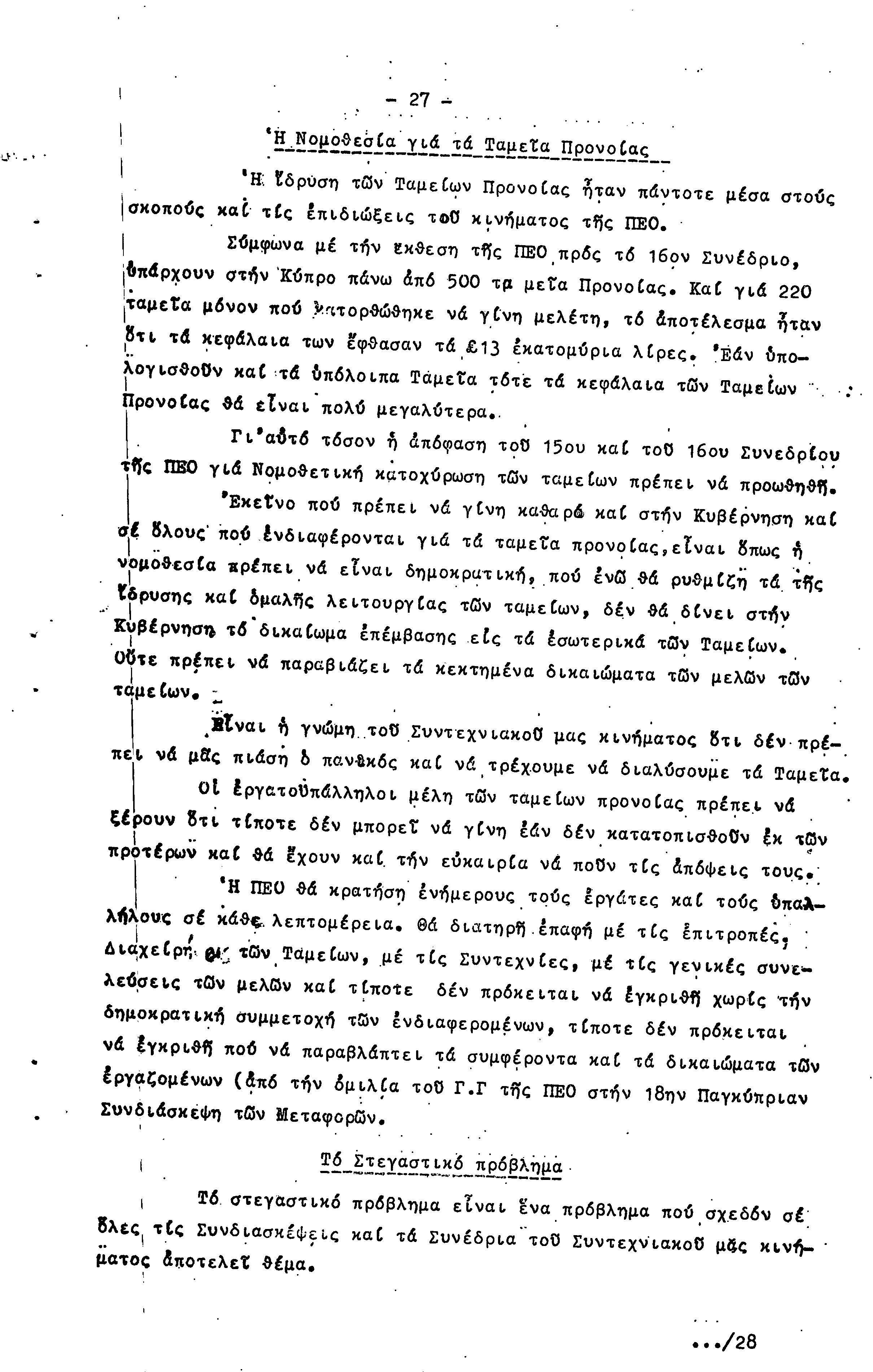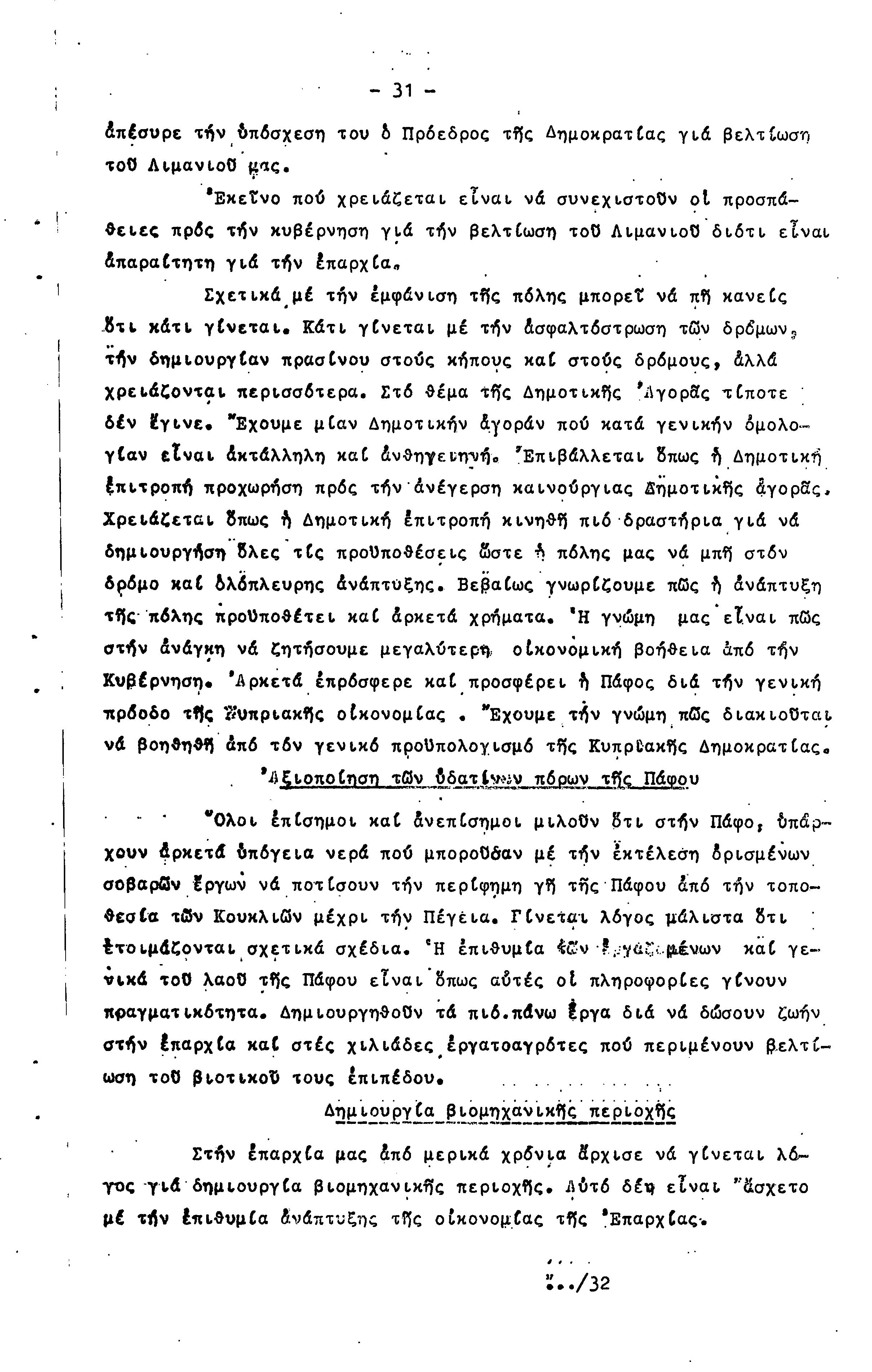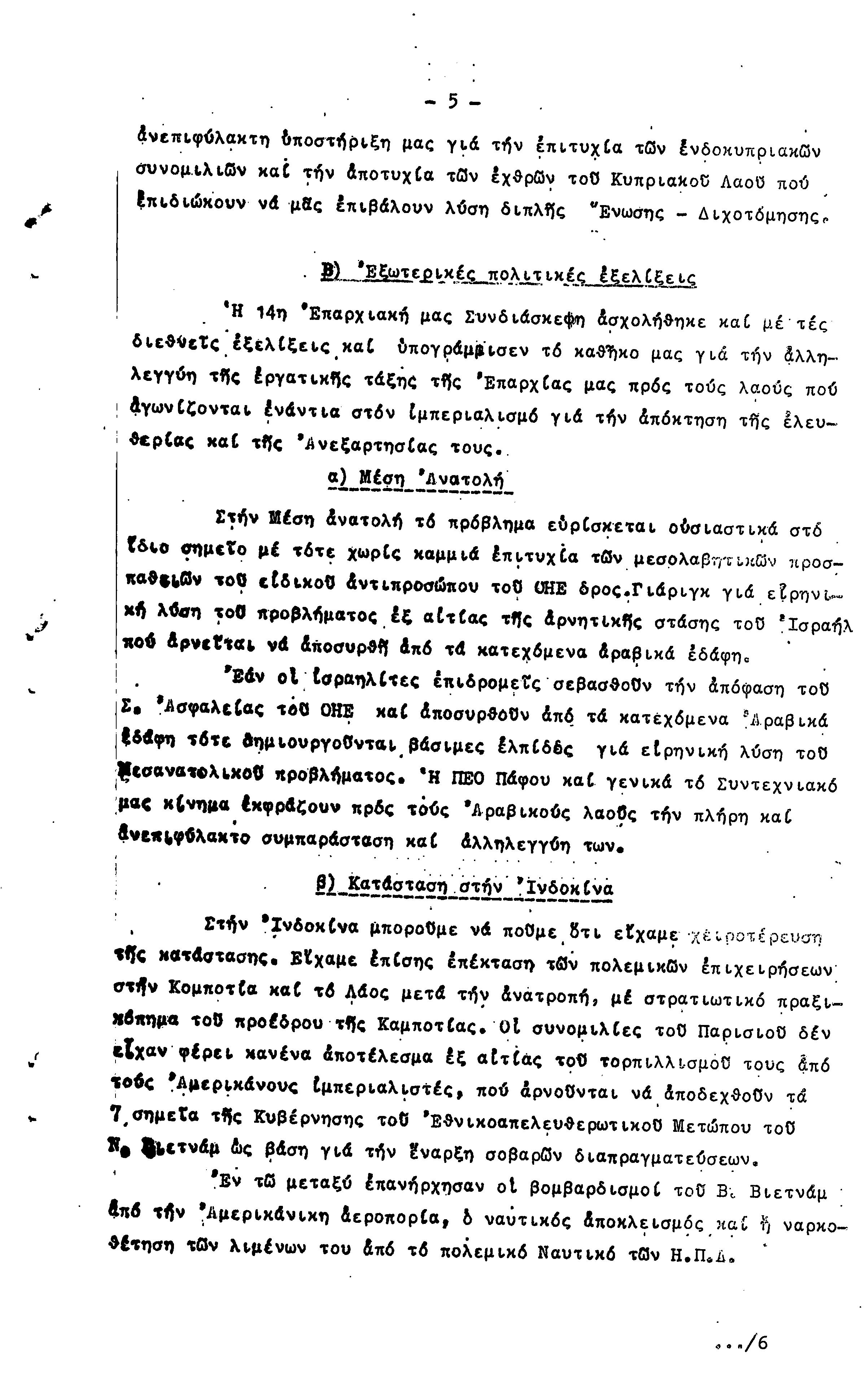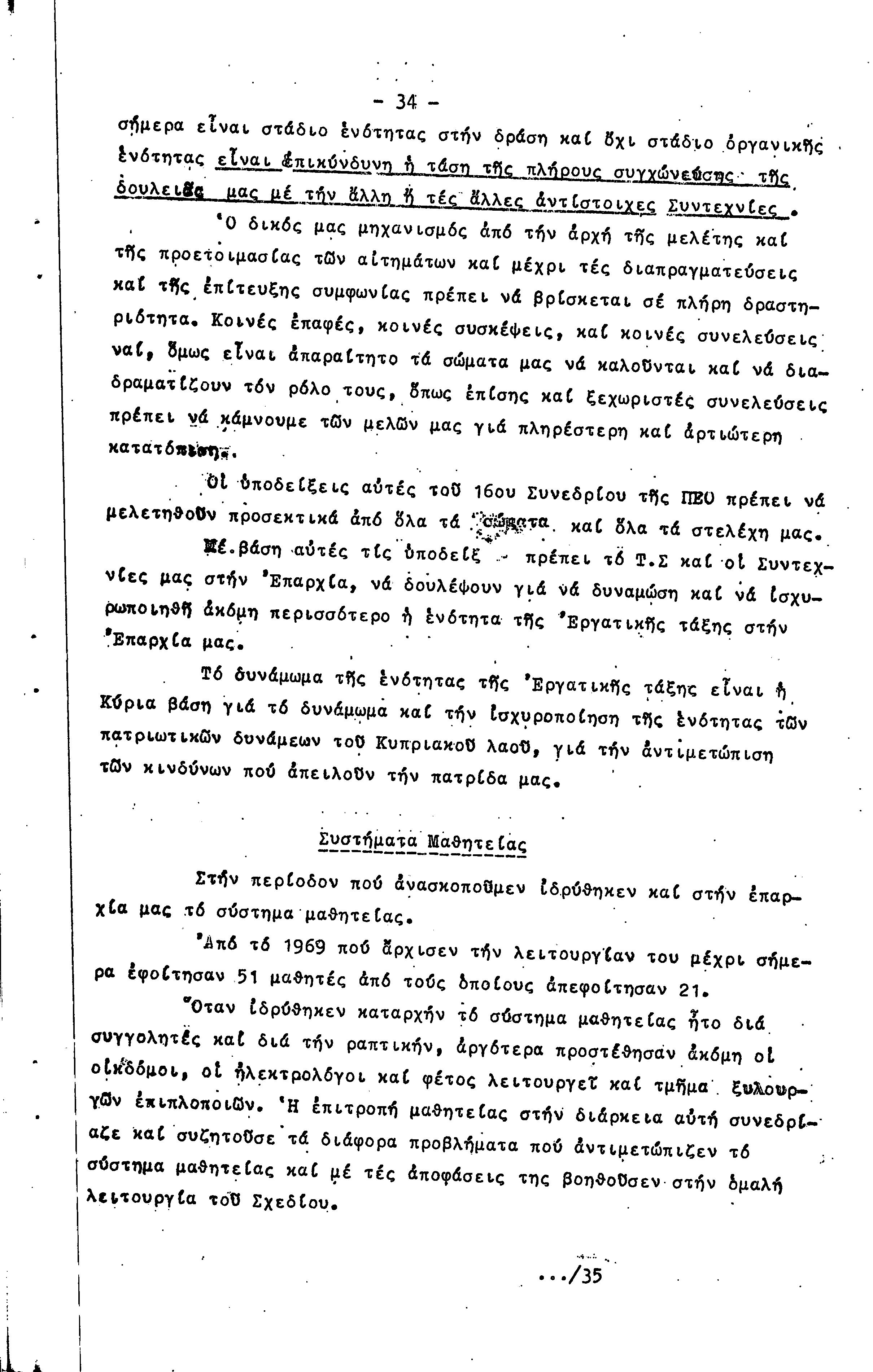 ΠΡΟΣ ΤΗΝ 15η ΕΠΑΡΧΙΑΚΗ ΣΥΝΔΙΑΣΚΕΨΗ Τ.Σ. ΠΕΟ ΠΑΦΟΥ, 1969-1972 ( ΕΚΘΕΣΗ ΔΡΑΣΗΣ)