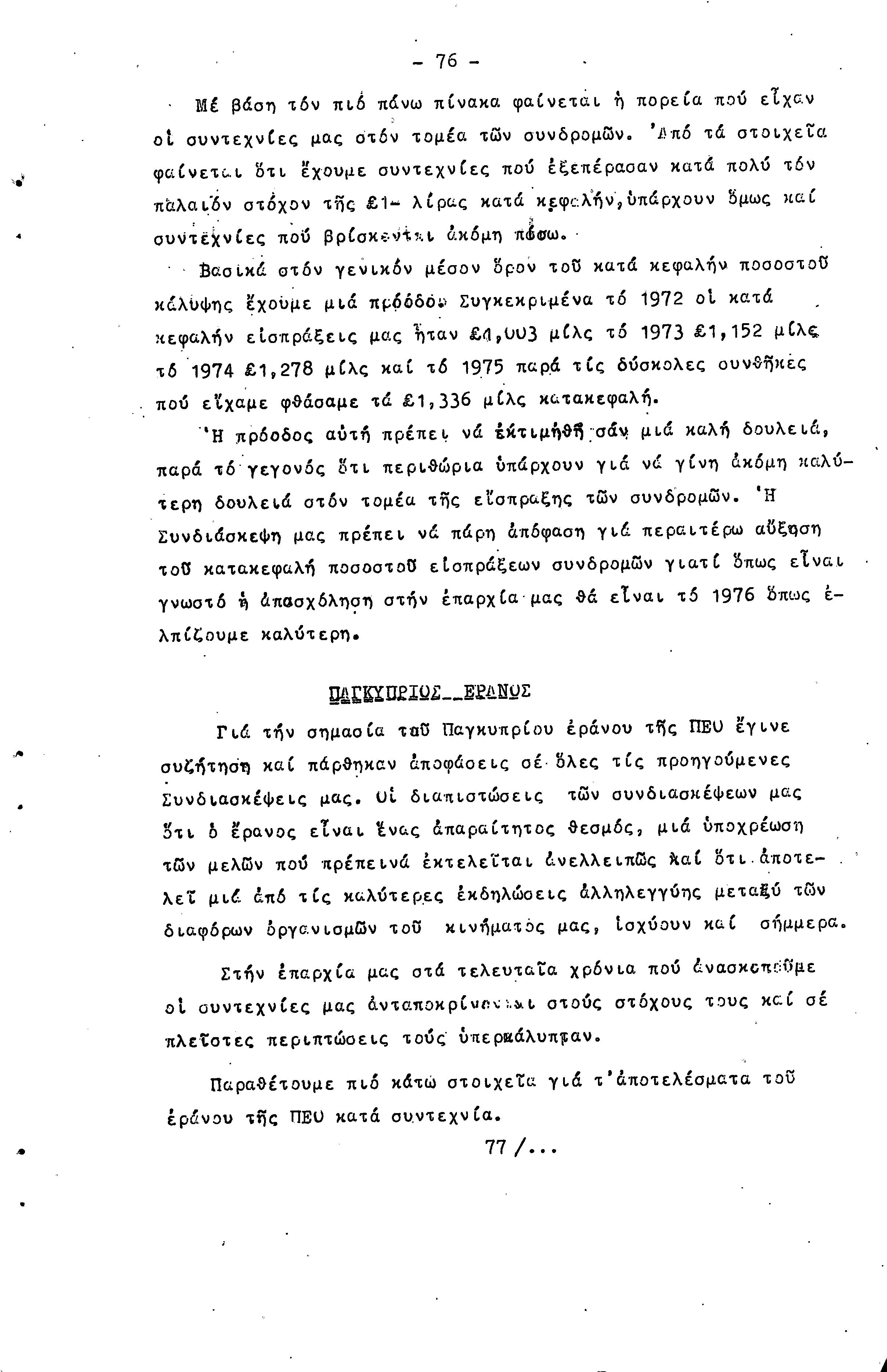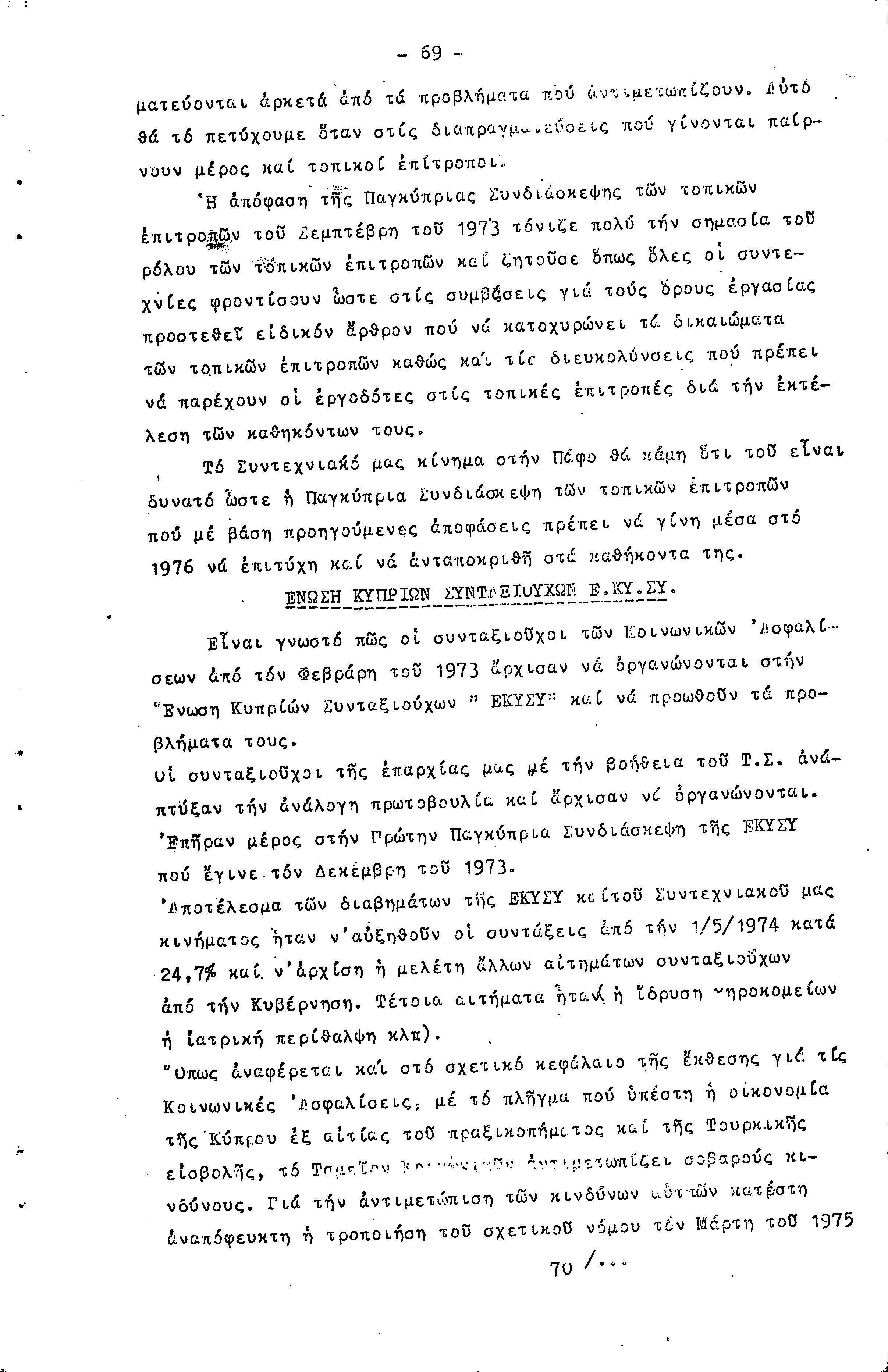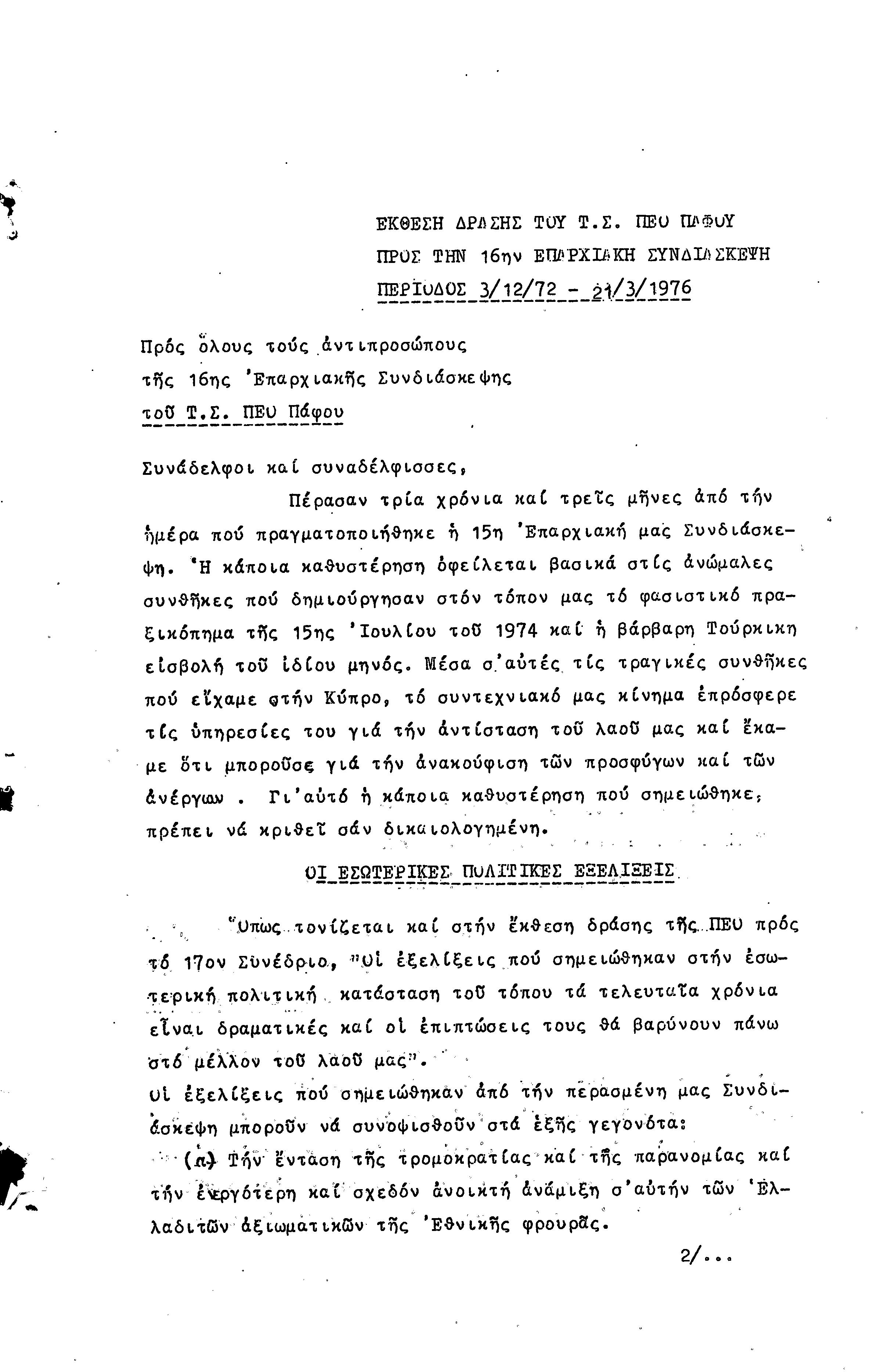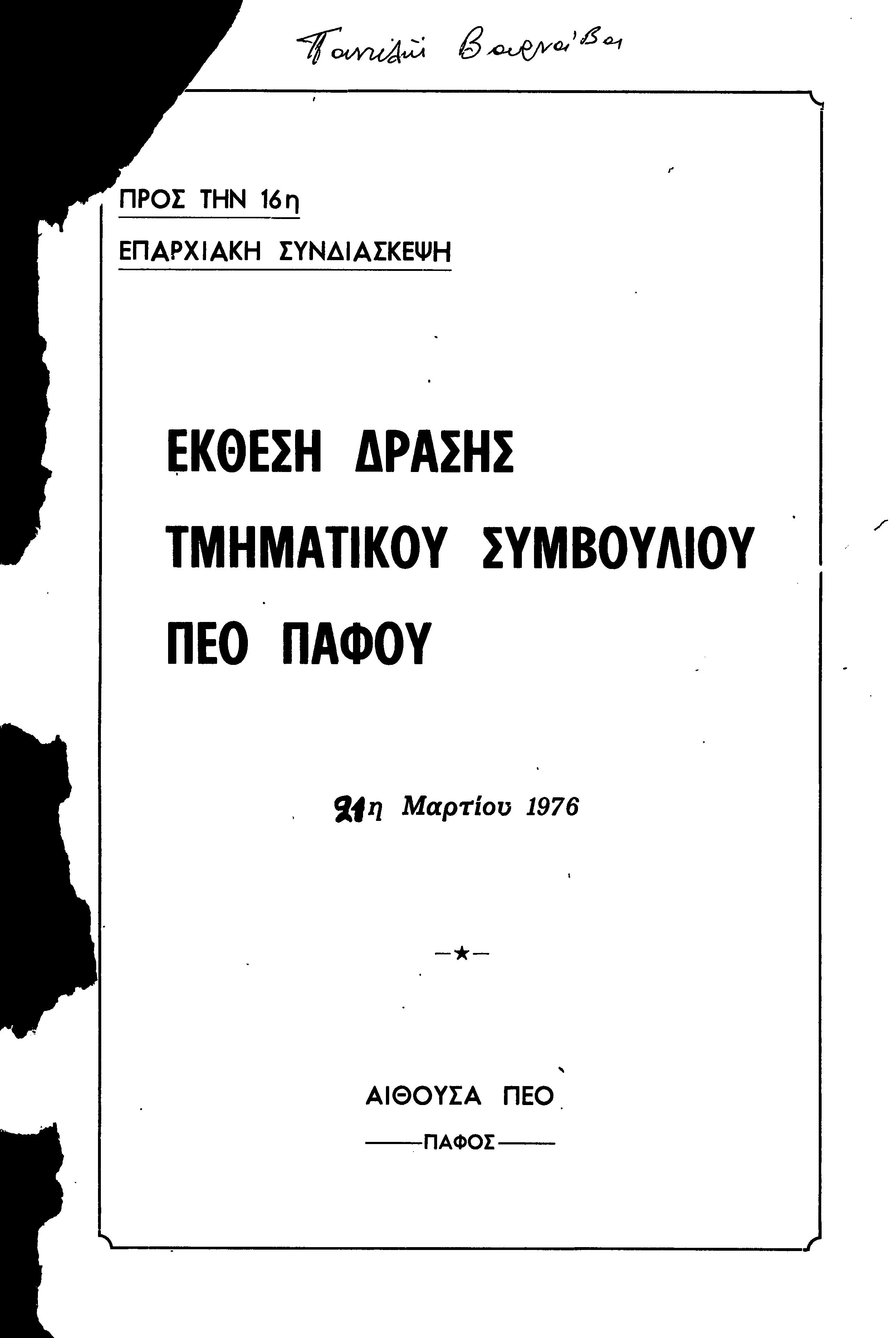 ΠΡΟΣ ΤΗΝ 16η ΕΠΑΡΧΙΑΚΗ ΣΥΝΔΙΑΣΚΕΨΗ Τ.Σ. ΠΕΟ ΠΑΦΟΥ, 21.03.1976 ( ΕΚΘΕΣΗ ΔΡΑΣΗΣ)