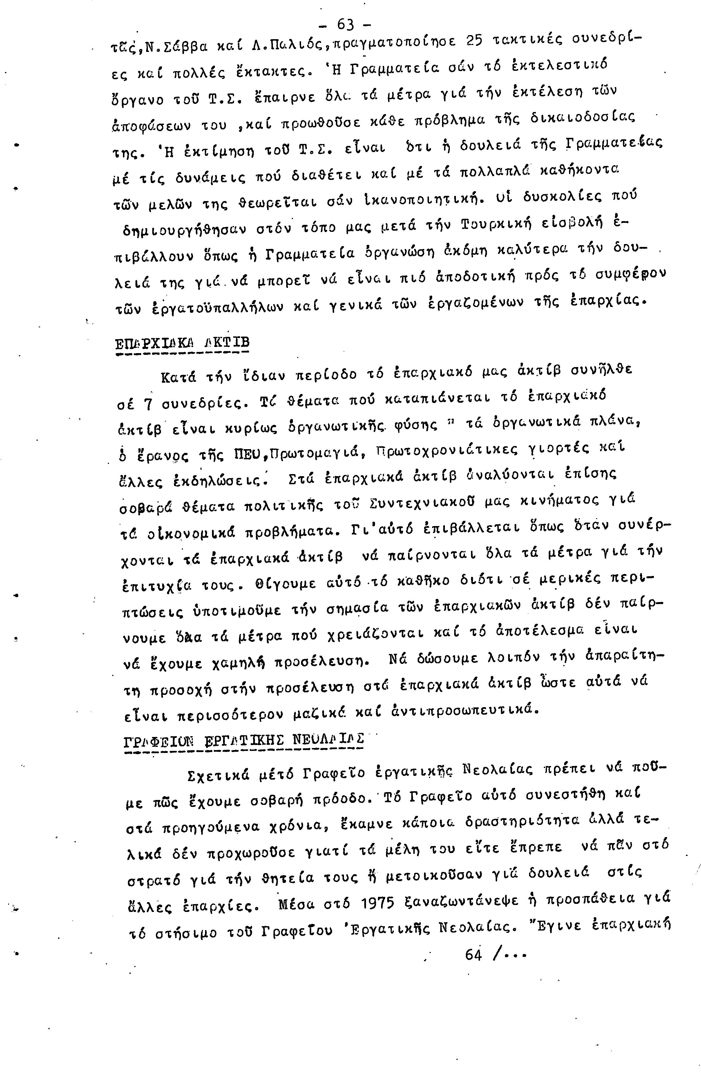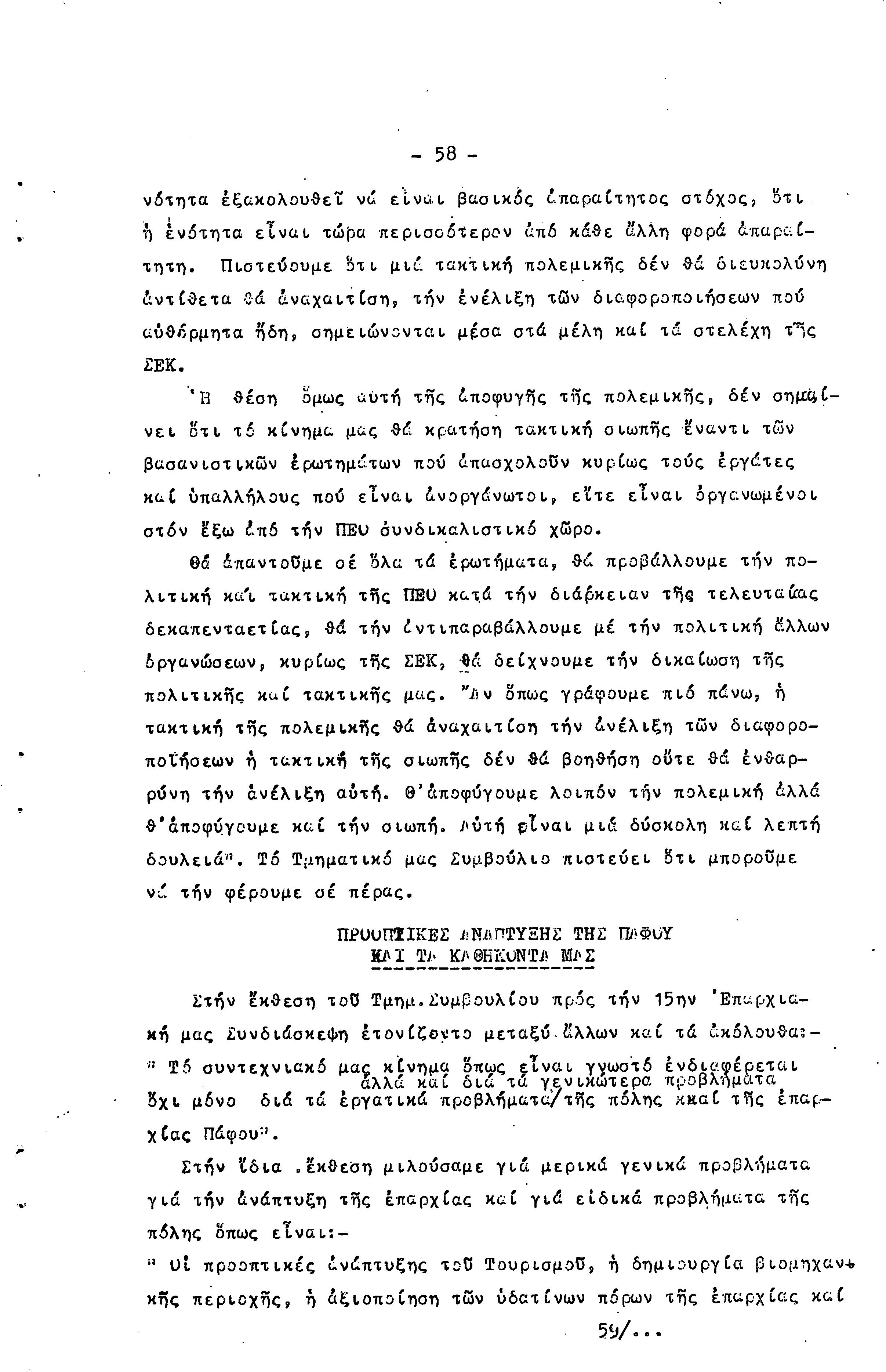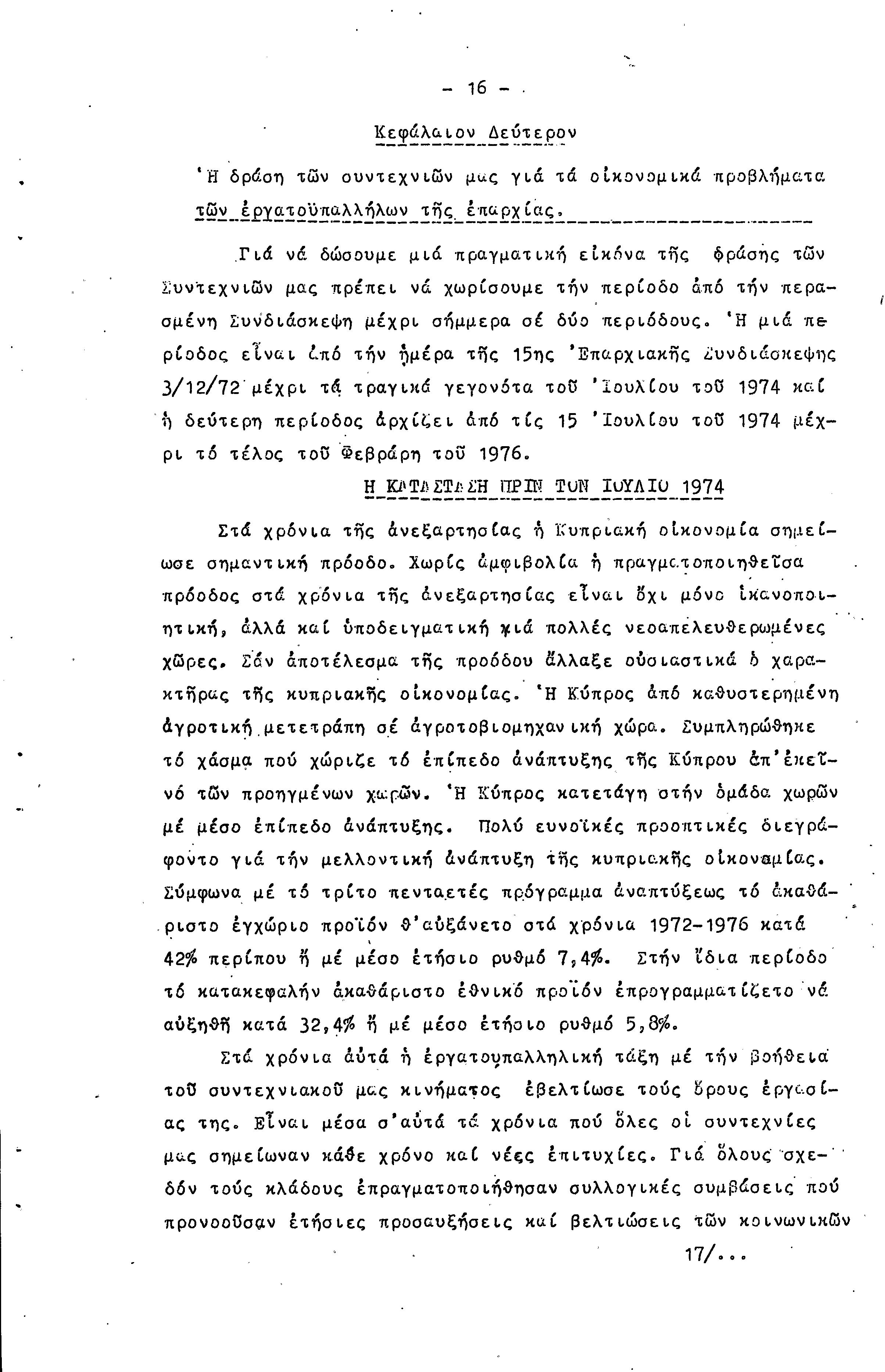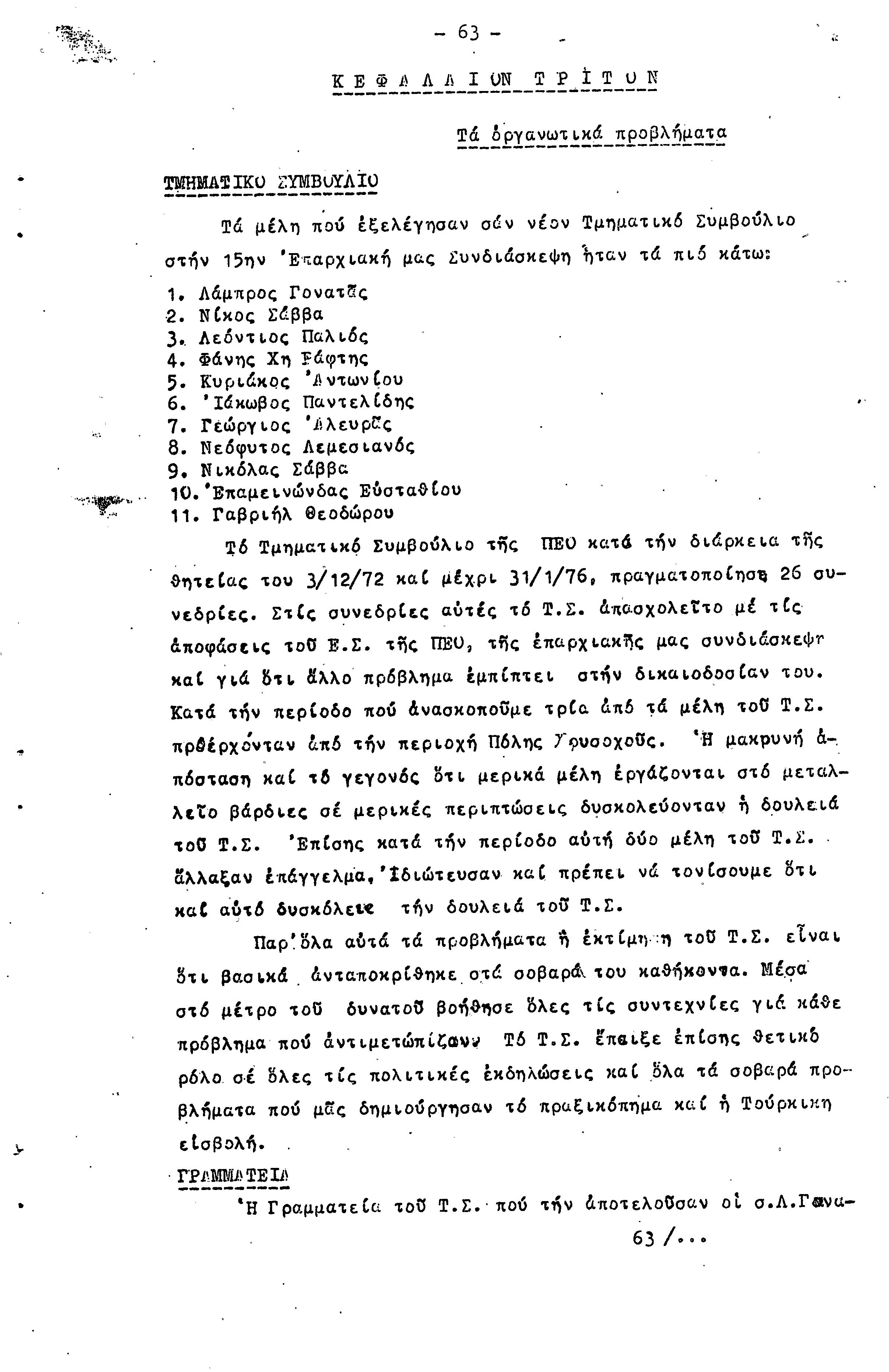 ΠΡΟΣ ΤΗΝ 16η ΕΠΑΡΧΙΑΚΗ ΣΥΝΔΙΑΣΚΕΨΗ Τ.Σ. ΠΕΟ ΠΑΦΟΥ, 21.03.1976 ( ΕΚΘΕΣΗ ΔΡΑΣΗΣ)