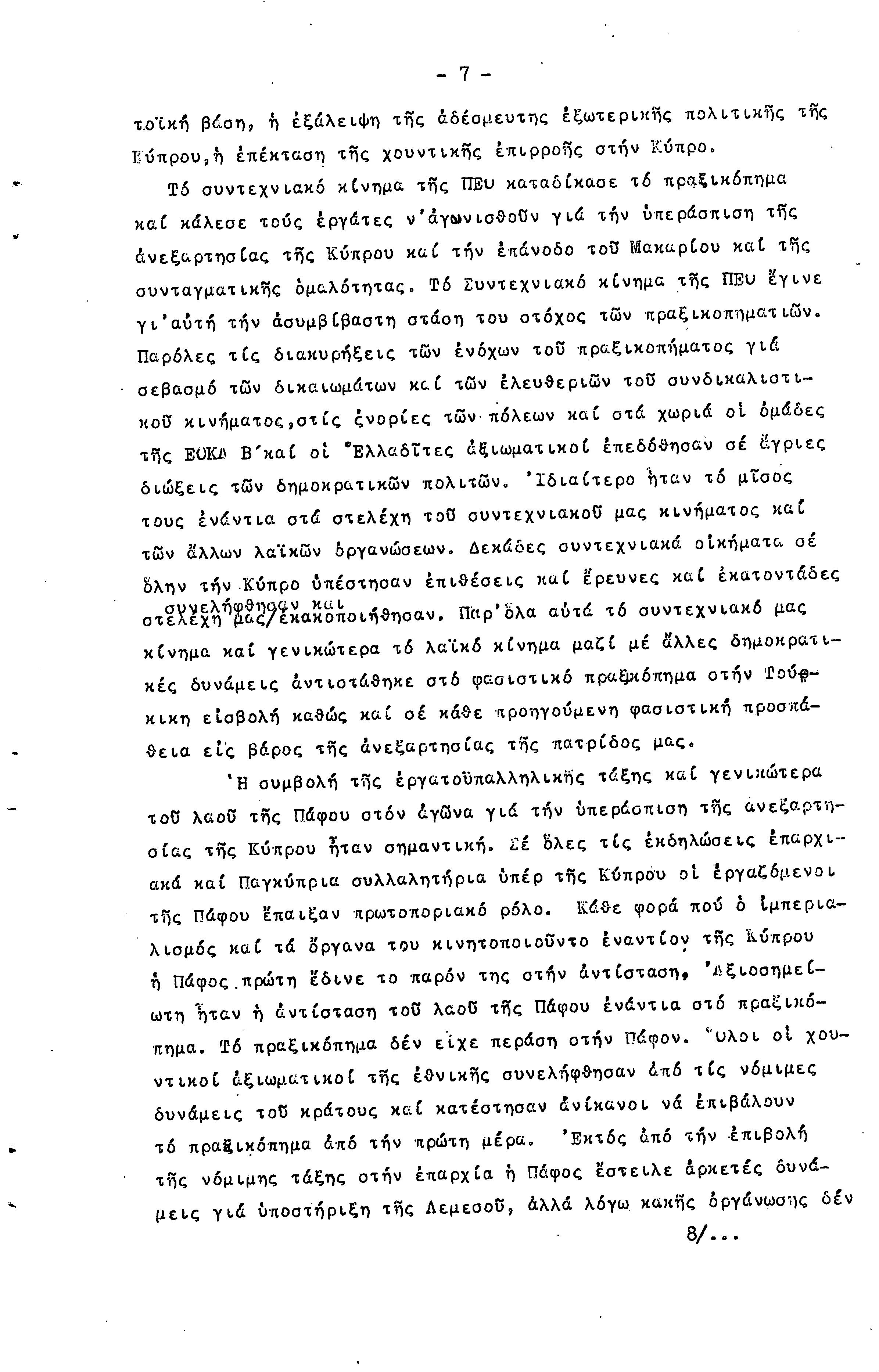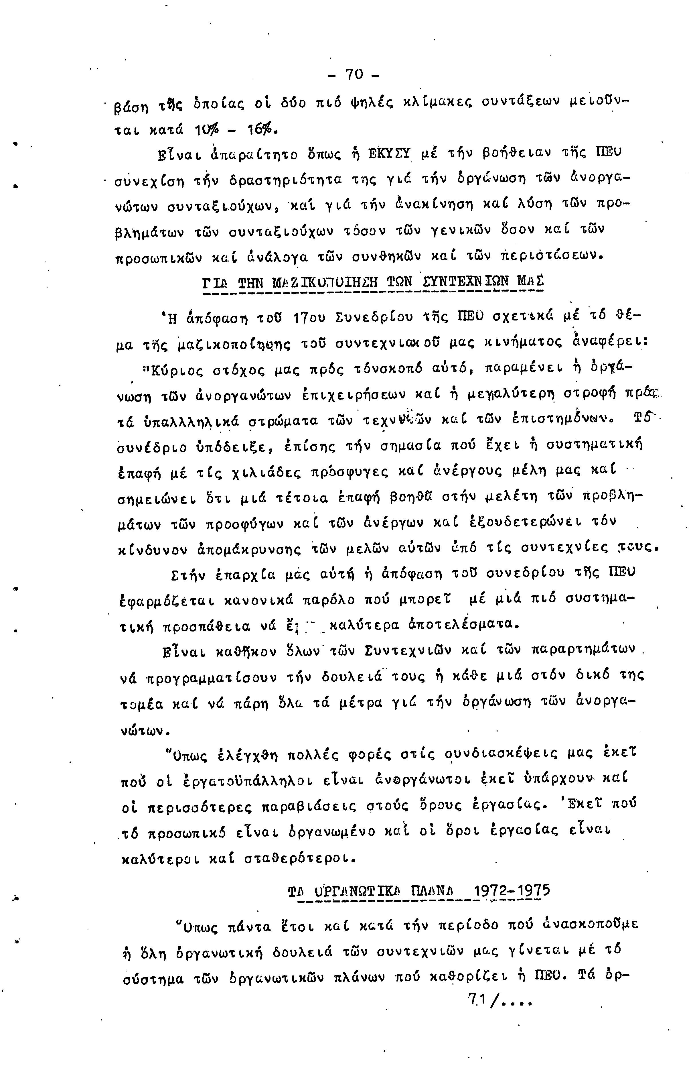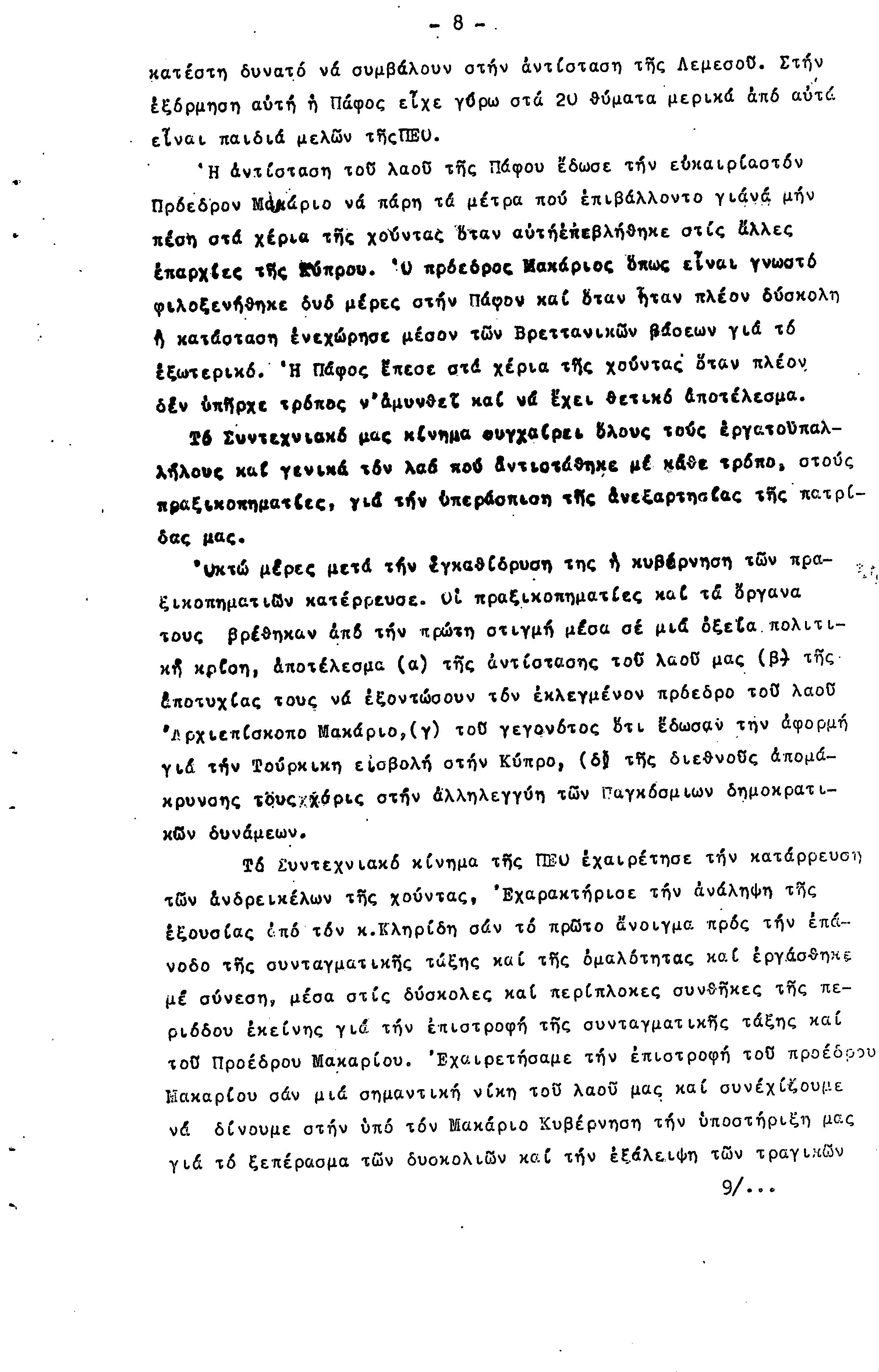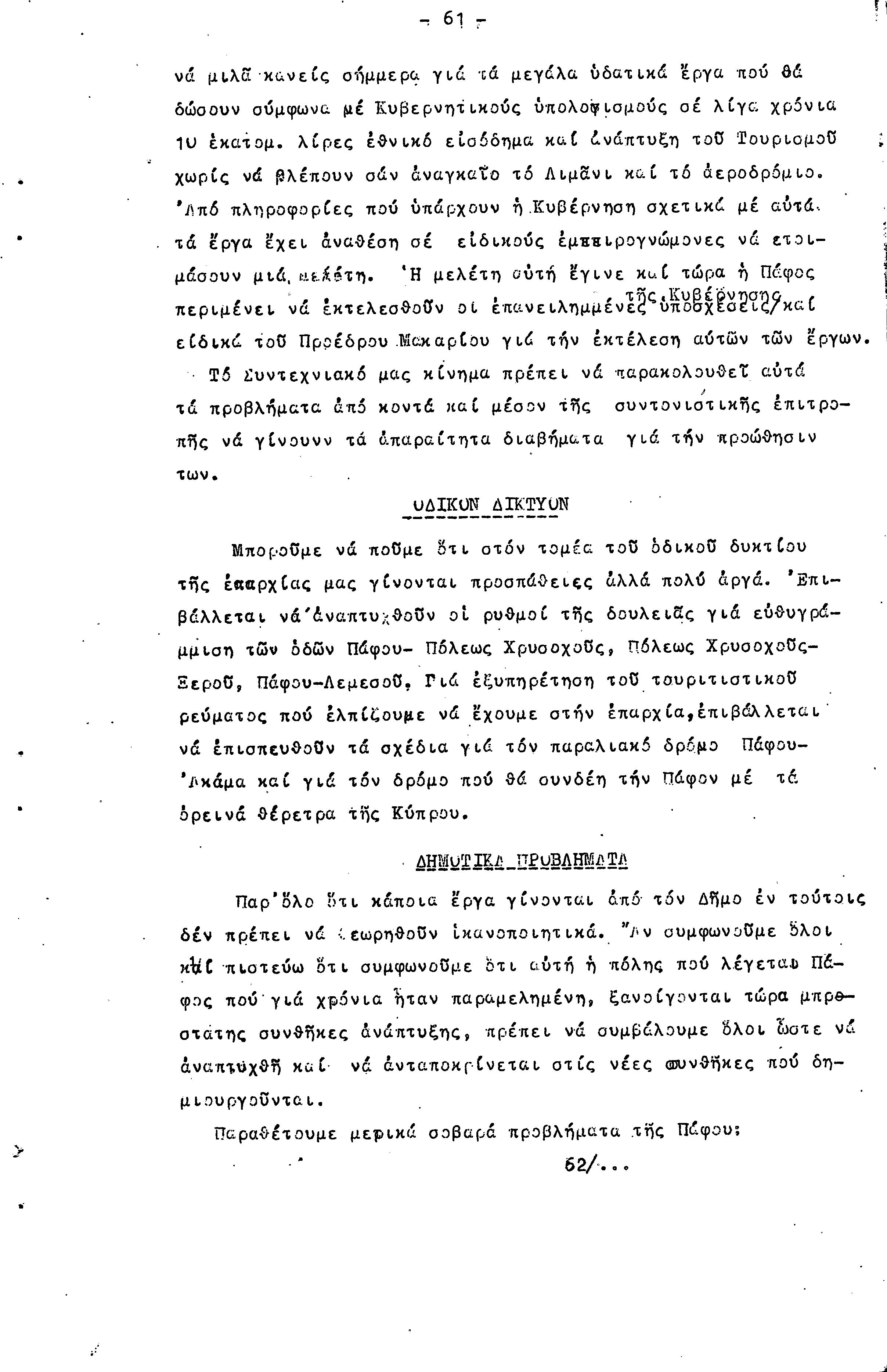 ΠΡΟΣ ΤΗΝ 16η ΕΠΑΡΧΙΑΚΗ ΣΥΝΔΙΑΣΚΕΨΗ Τ.Σ. ΠΕΟ ΠΑΦΟΥ, 21.03.1976 ( ΕΚΘΕΣΗ ΔΡΑΣΗΣ)