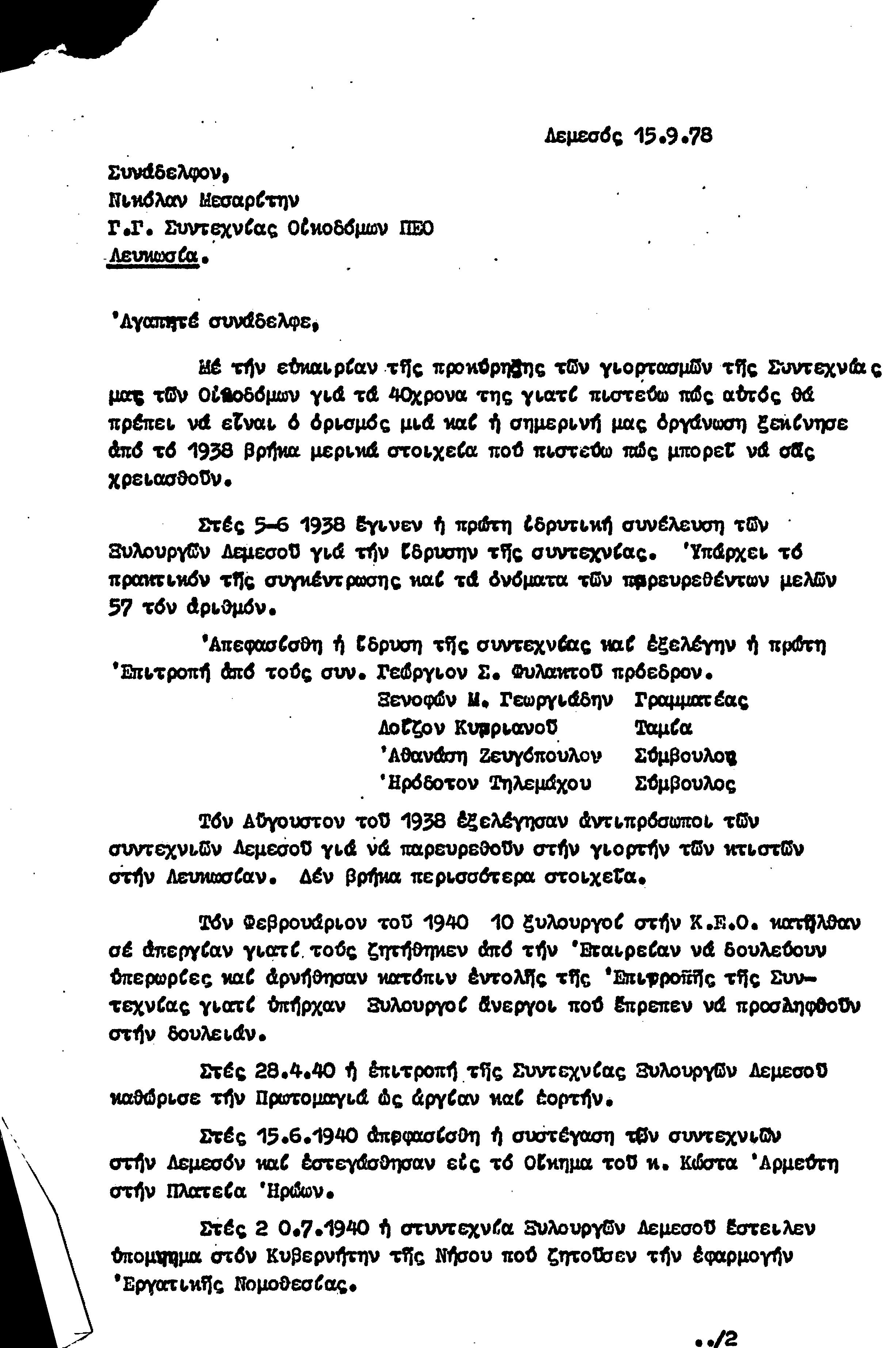 ΙΣΤΟΡΙΚΟΙ ΑΓΩΝΕΣ ΚΑΙ ΕΓΓΡΑΦΑ ΣΥΝΤΕΧΝΙΑΣ ΟΙΚΟΔΟΜΩΝ 1978