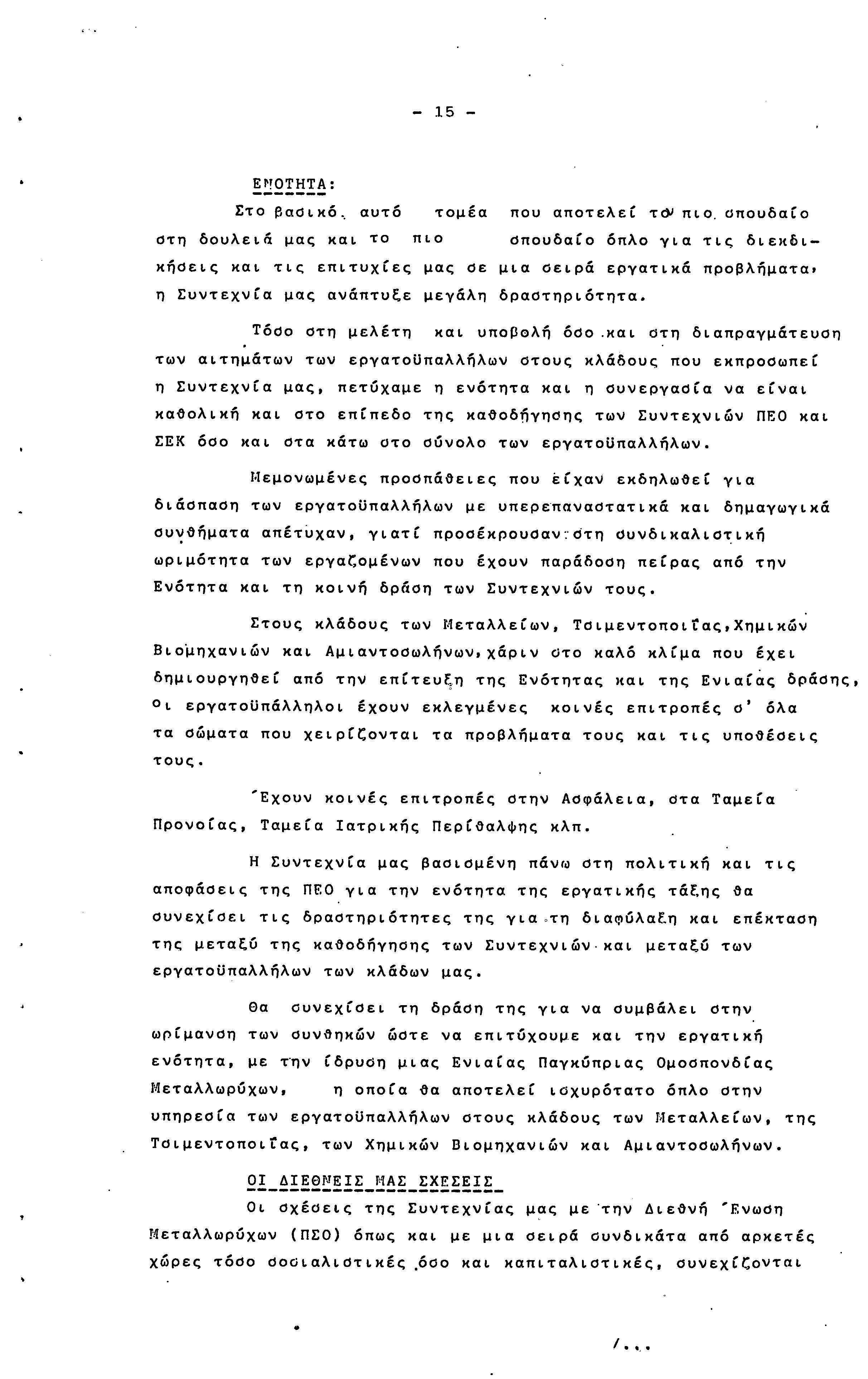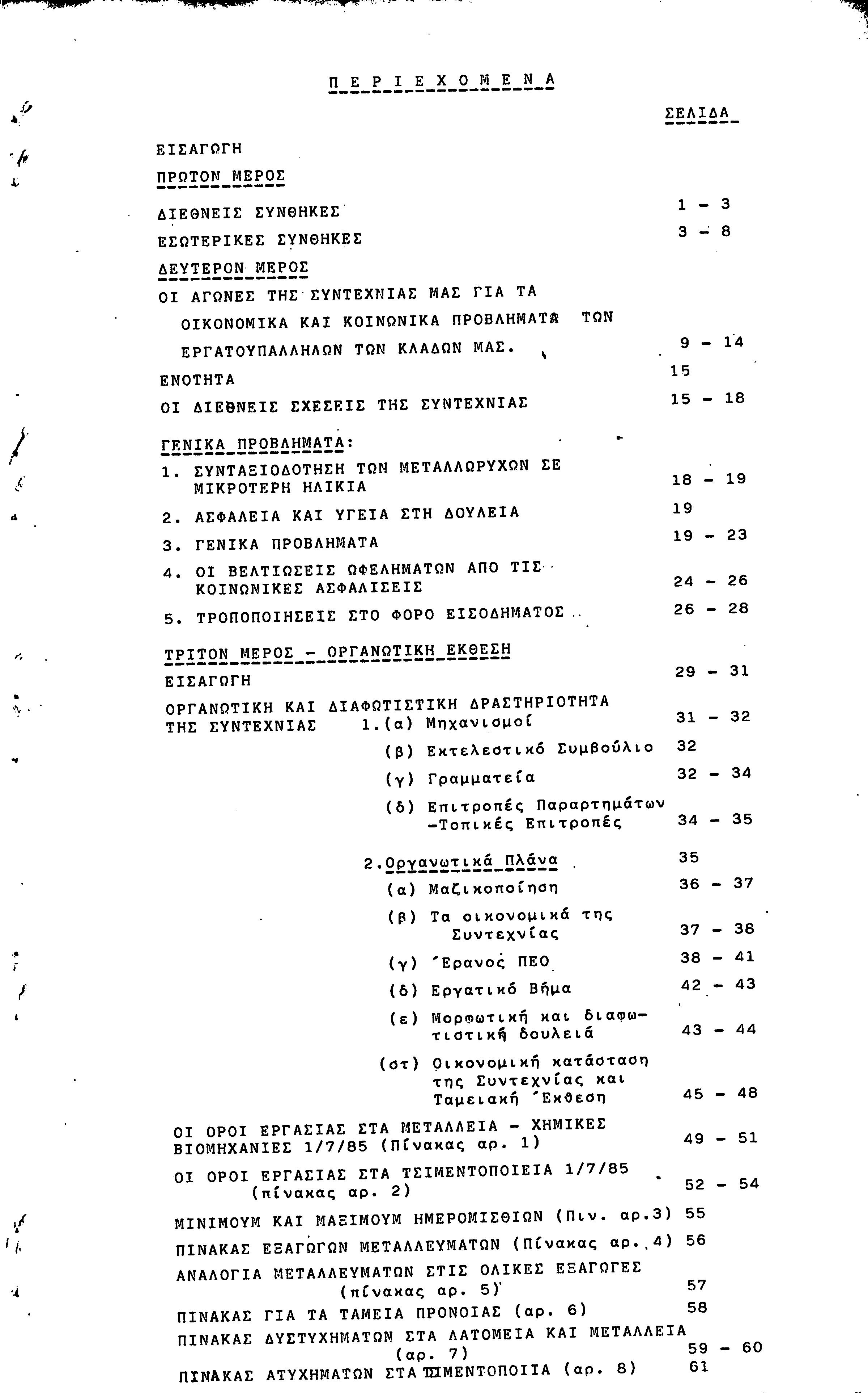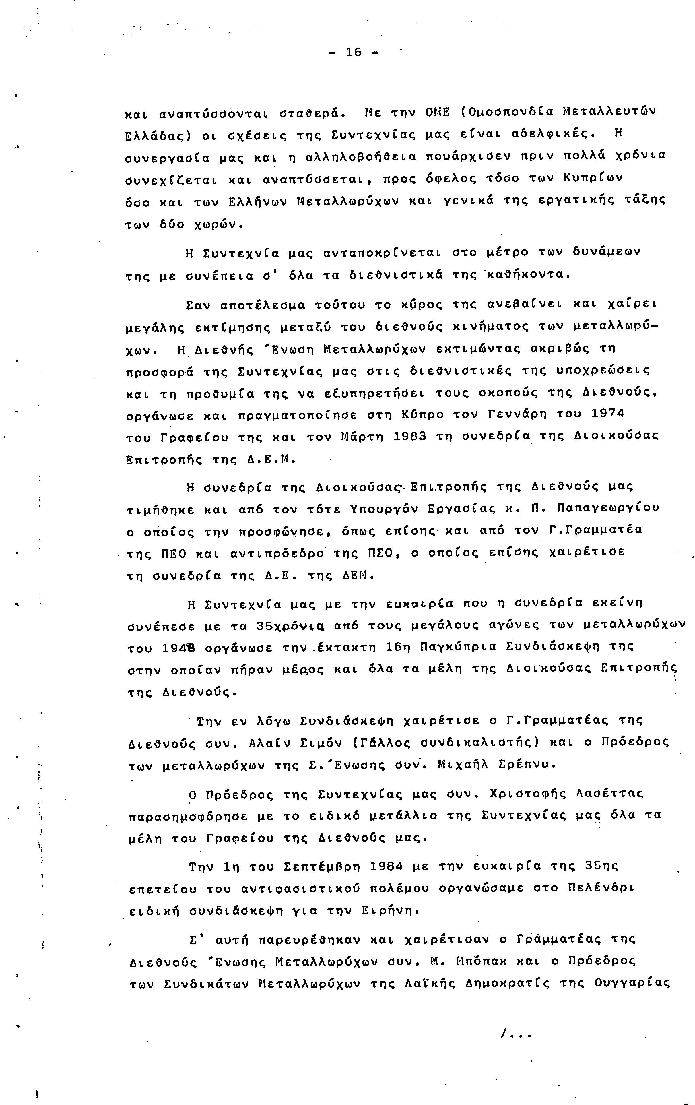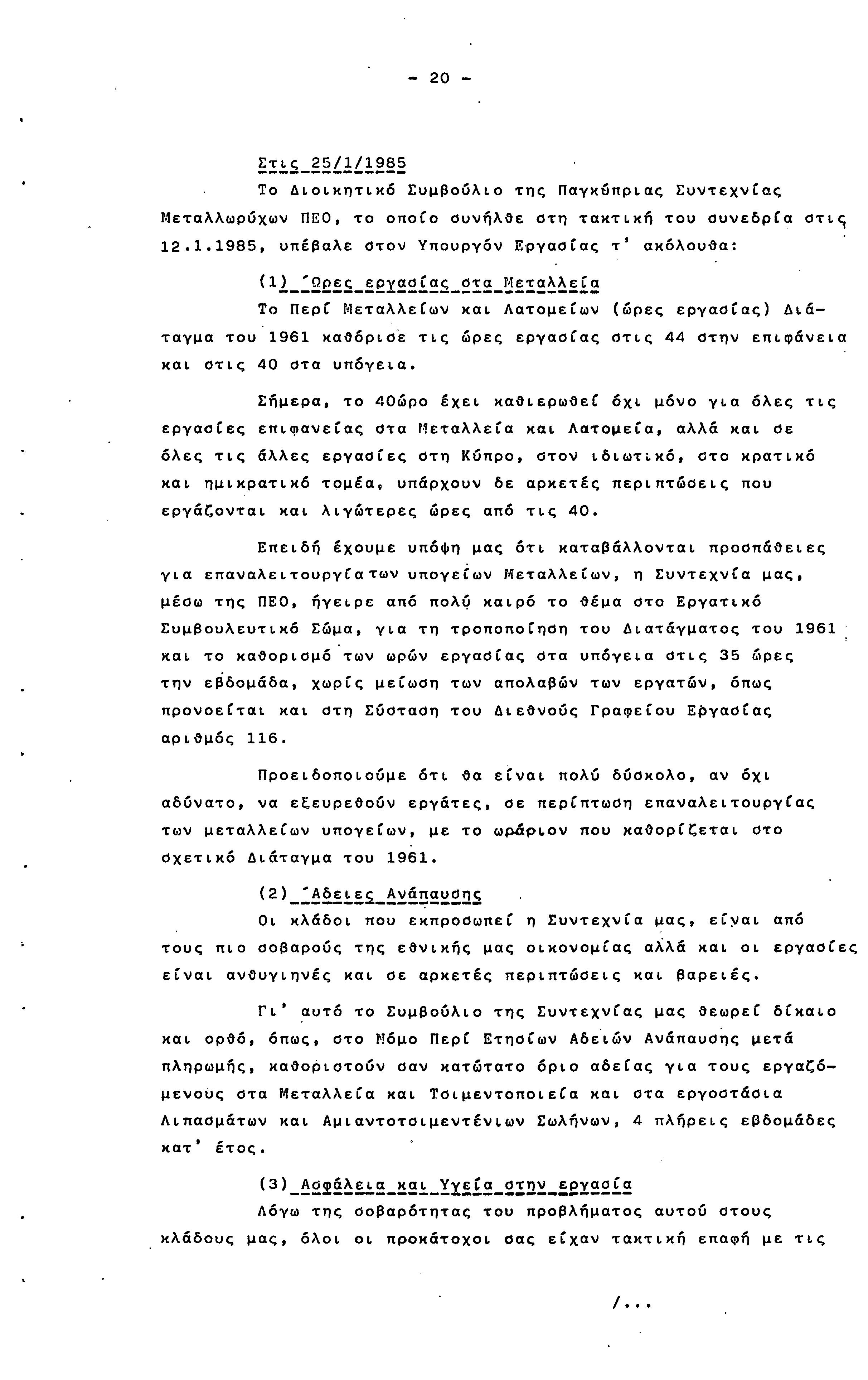 ΕΚΘΕΣΗ ΔΡΑΣΗΣ ΠΡΟΣ ΤΗΝ 17Η ΠΑΓΚΥΠΡΙΑ ΣΥΝΔΙΑΣΚΕΨΗ ΜΕΤΑΛΛΩΡΥΧΩΝ- 9.11.1985