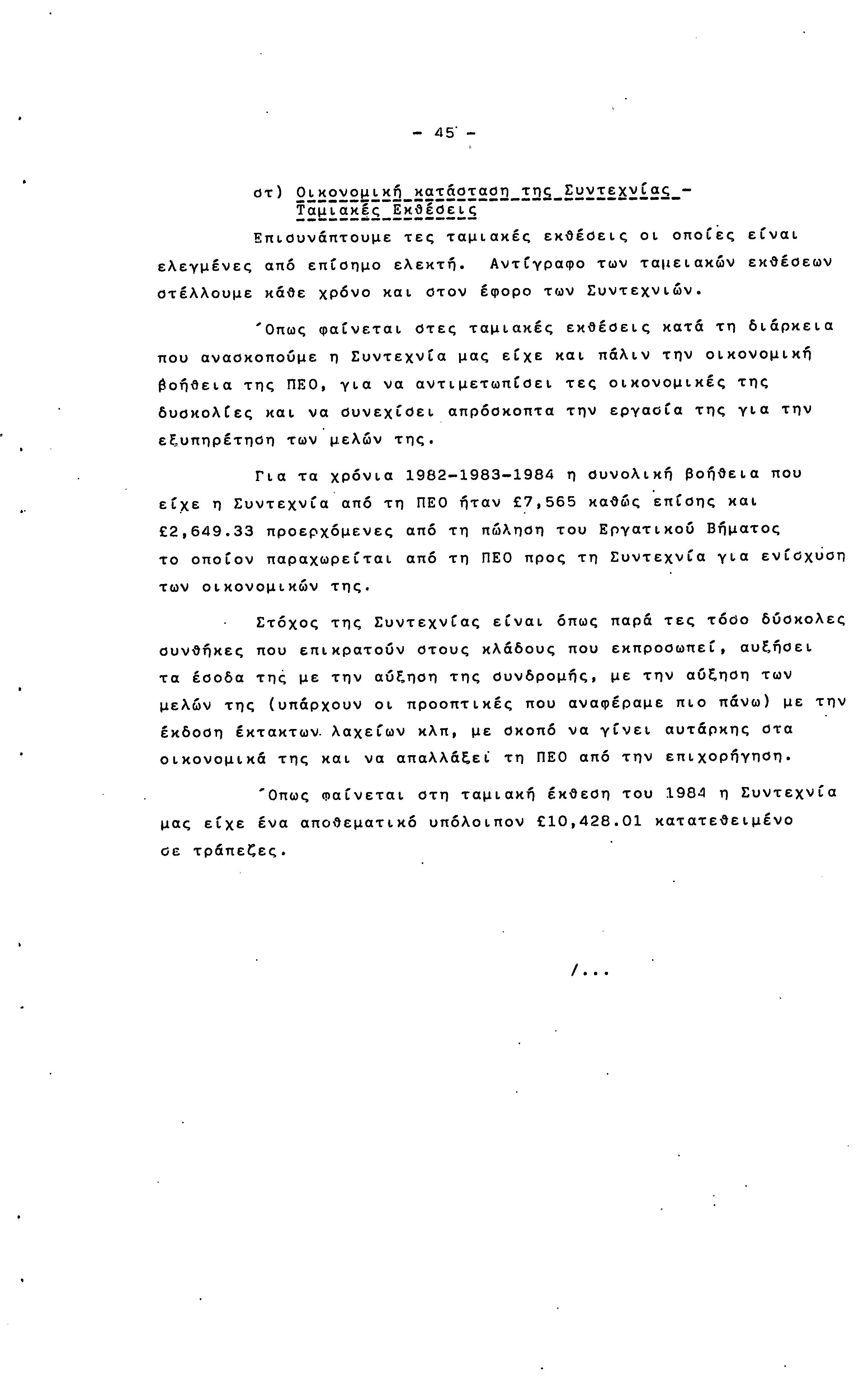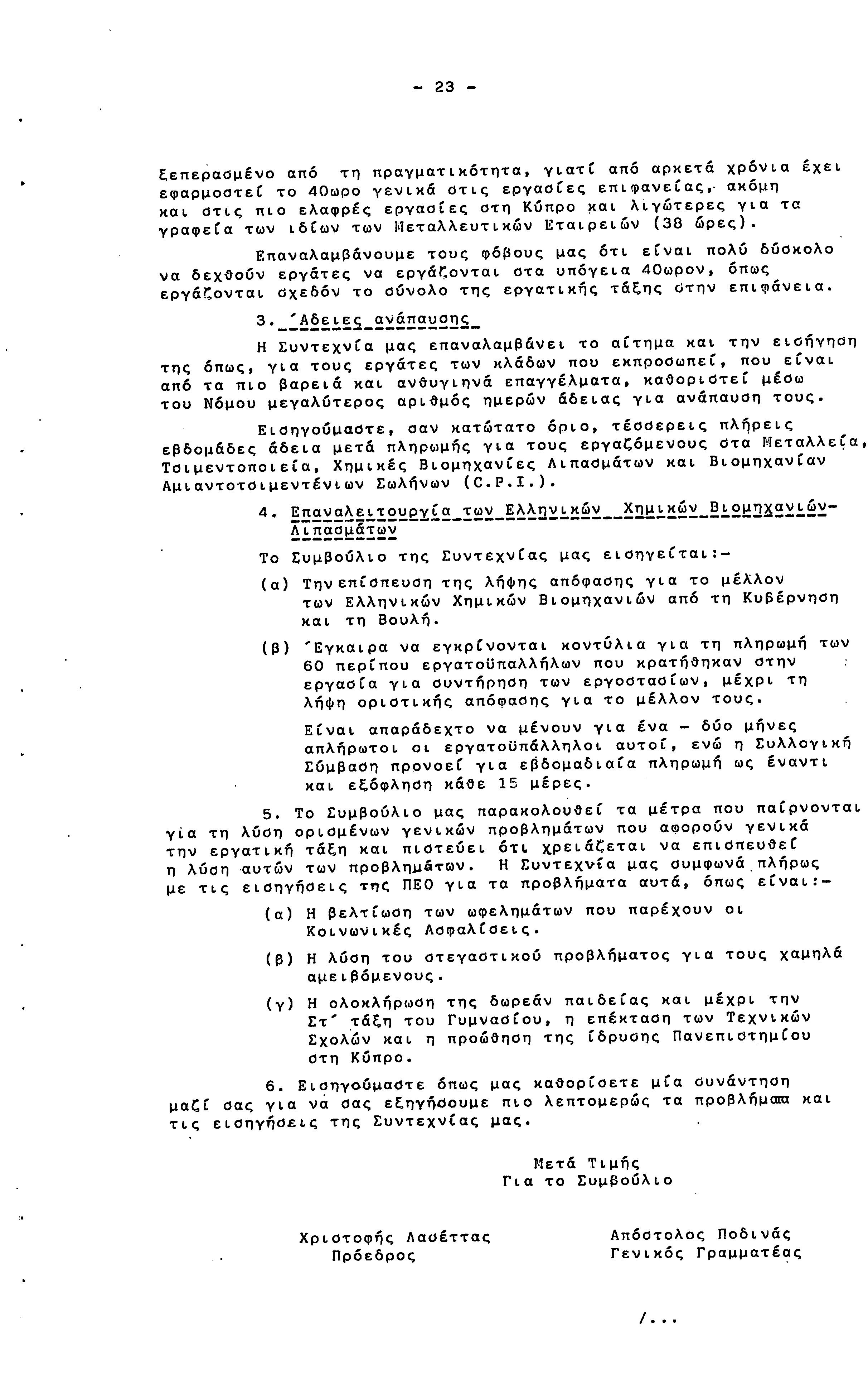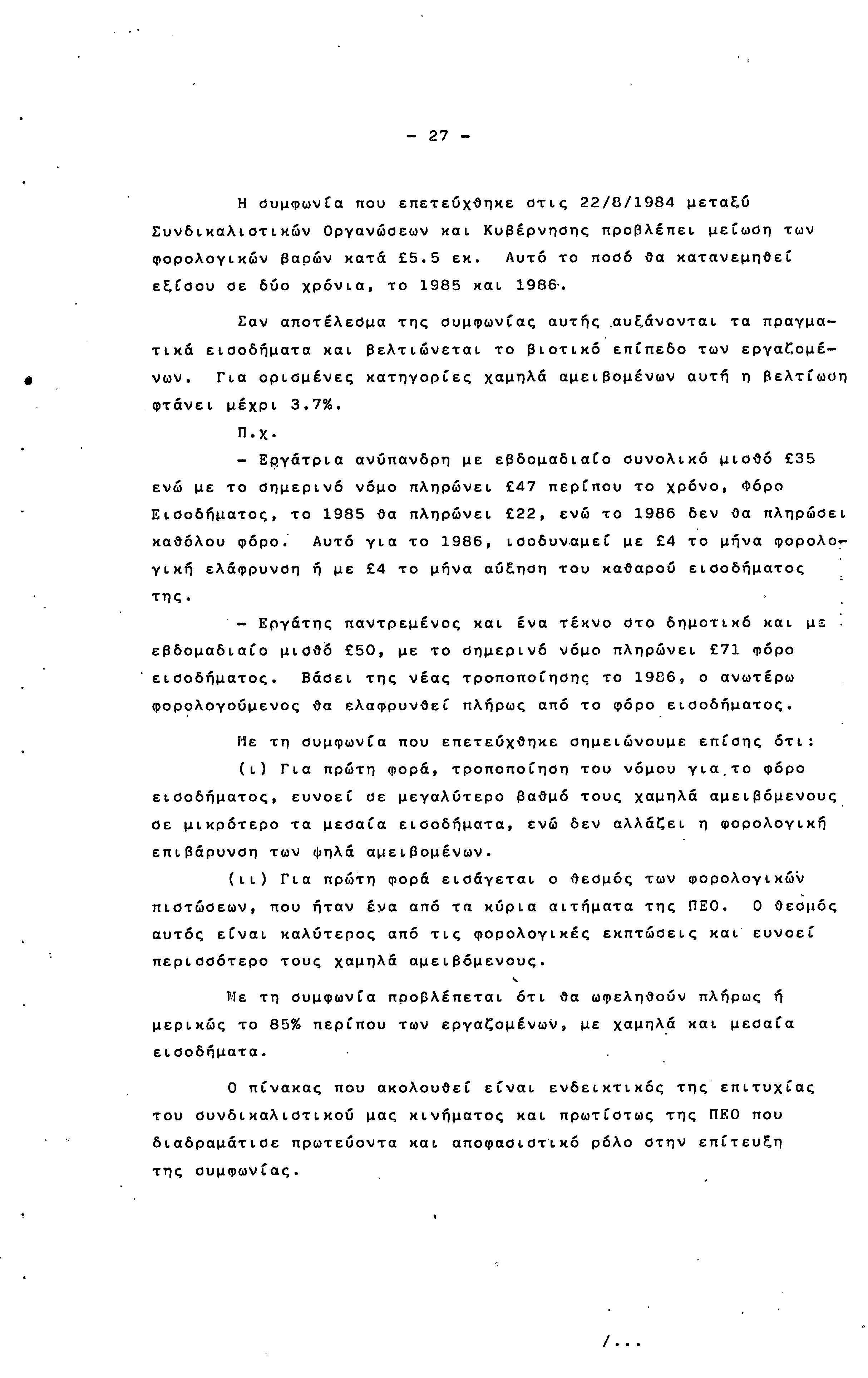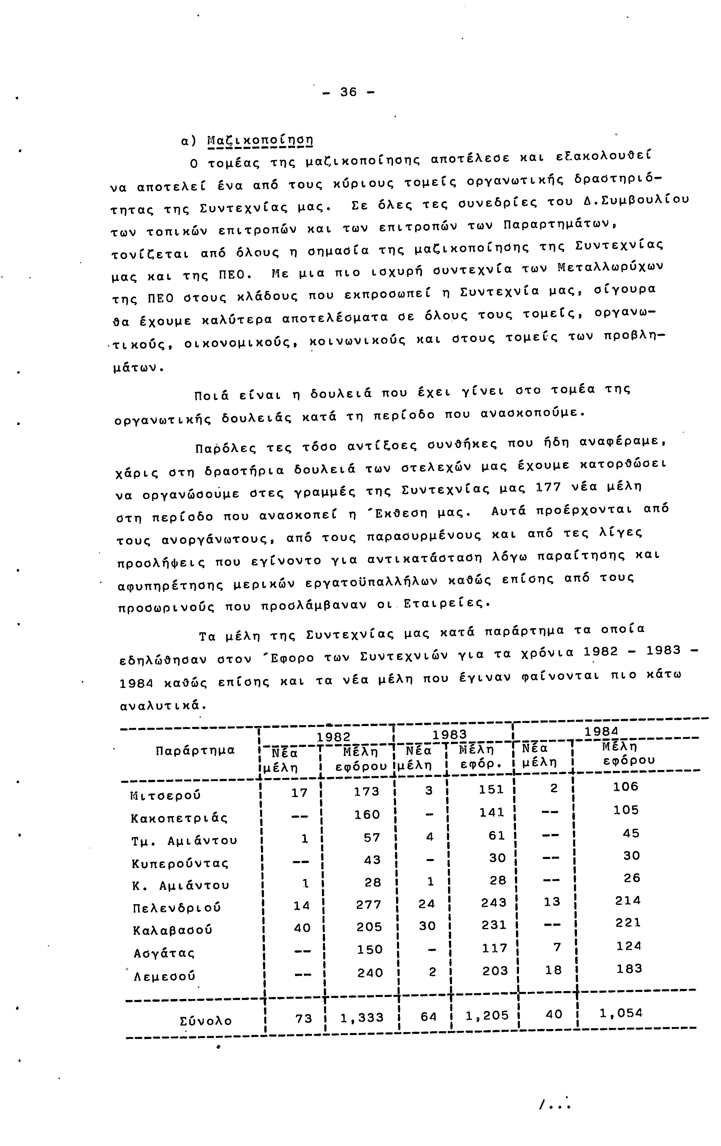 ΕΚΘΕΣΗ ΔΡΑΣΗΣ ΠΡΟΣ ΤΗΝ 17Η ΠΑΓΚΥΠΡΙΑ ΣΥΝΔΙΑΣΚΕΨΗ ΜΕΤΑΛΛΩΡΥΧΩΝ- 9.11.1985