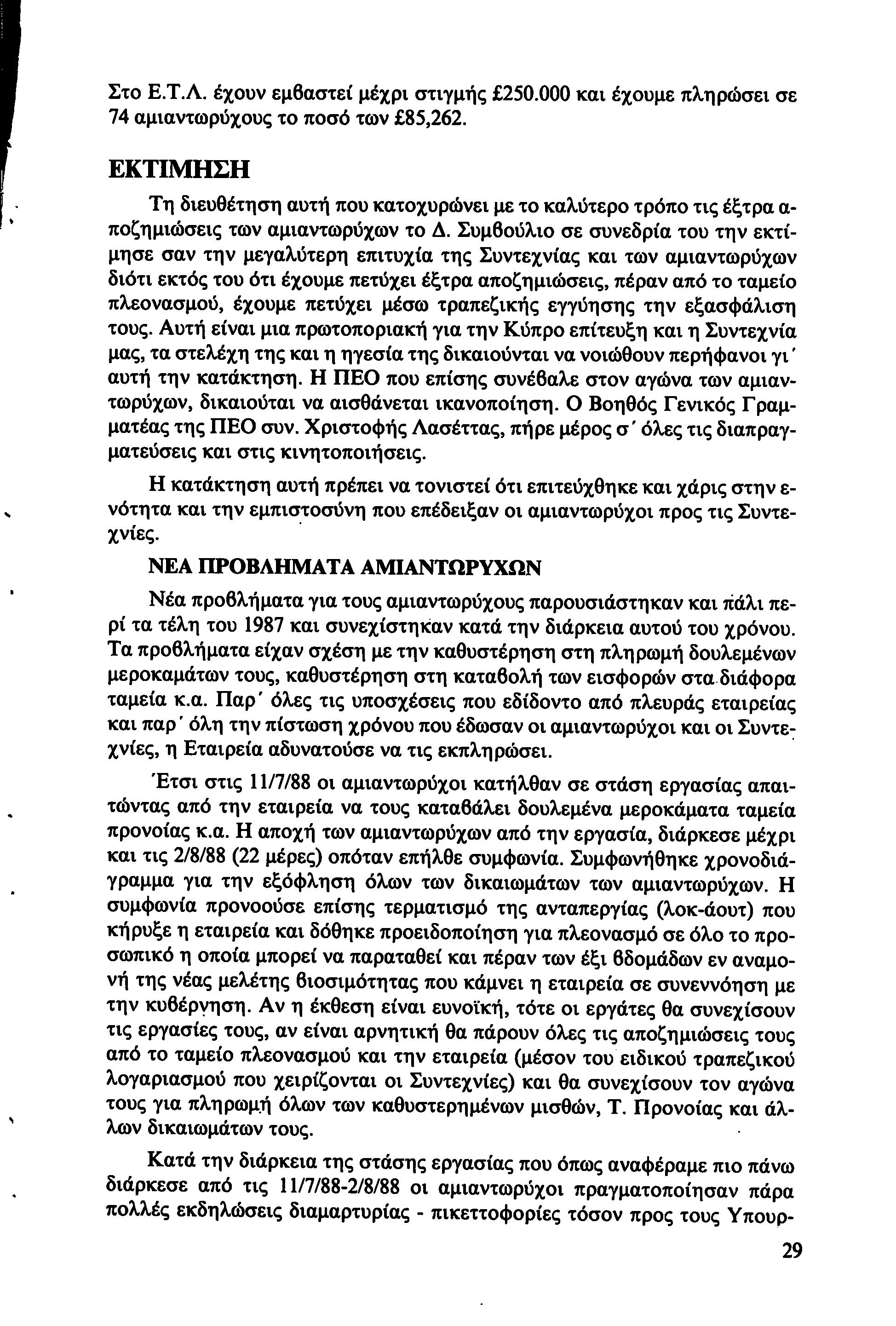 ΕΚΘΕΣΗ ΔΡΑΣΗΣ ΠΡΟΣ ΤΗΝ 18η ΣΥΝΔΙΑΣΚΕΨΗ ΠΑΓΚΥΠΡΙΑΣ ΣΥΝΤΕΧΝΙΑΣ ΜΕΤΑΛΛΩΡΥΧΩΝ ΠΕΟ- 5 ΝΟΕΜΒΡΙΟΥ 1988