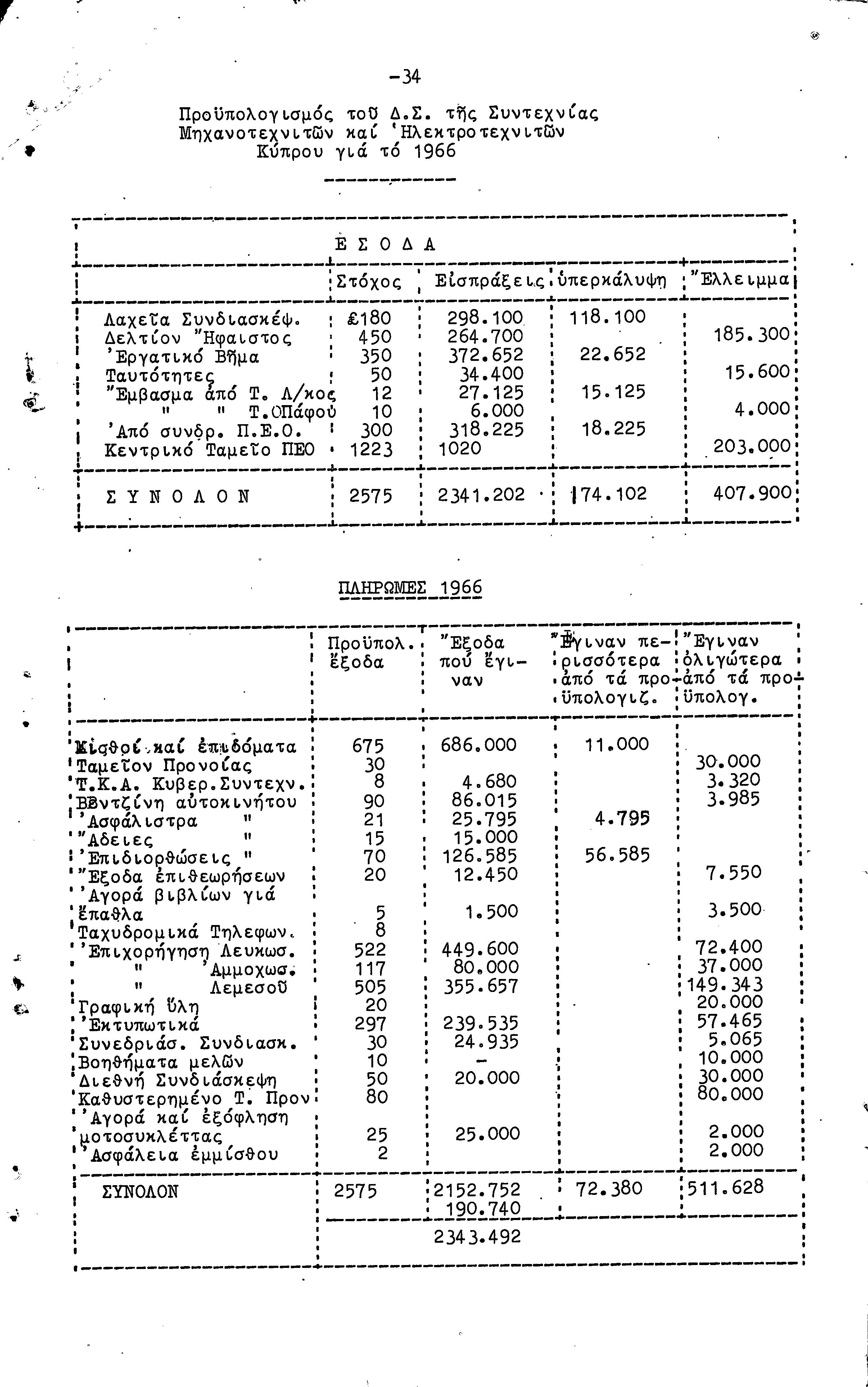 ΕΚΘΕΣΗ ΔΡΑΣΗΣ ΠΡΟΣ ΤΗΝ 18Η ΠΑΓΚΥΠΡΙΑ ΣΥΝΔΙΑΣΚΕΨΗ ΣΥΝΤΕΧΝΙΑΣ ΜΗΧΑΝΟΤΕΧΝΙΤΩΝ ΚΑΙ ΗΛΕΚΤΡΟΤΕΧΝΙΤΩΝ ,1966