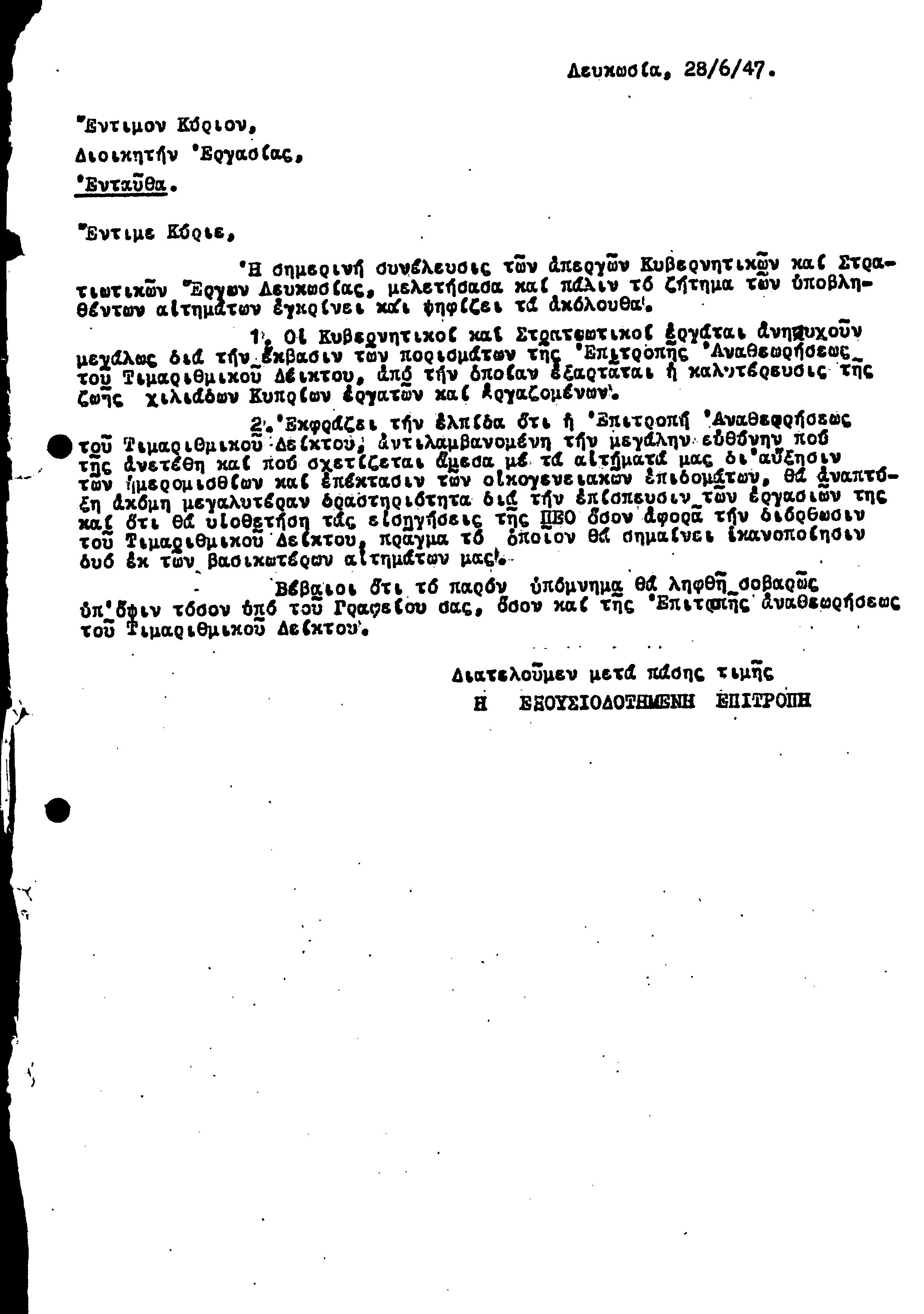 ΥΠΟΜΝΗΜΑΤΑ ΣΥΝΤΕΧΝΙΩΝ ΠΡΟΣ ΤΗΝ ΚΥΒΕΡΝΗΣΗ 1943-1950