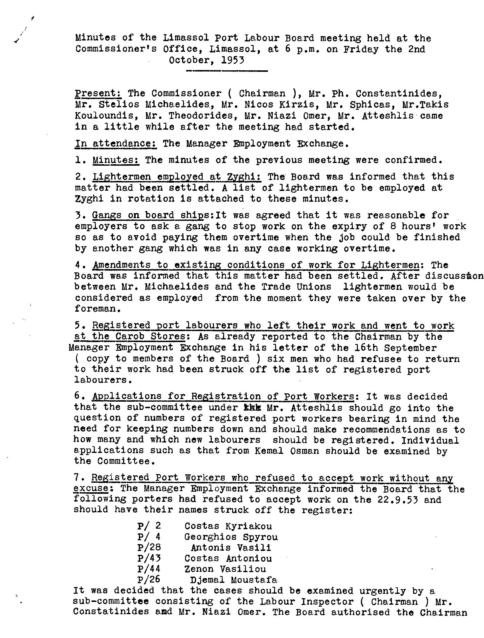 ΣΥΝΤΕΧΝΙΑ ΑΧΘΟΦΟΡΩΝ ΚΑΙ ΛΙΜΕΝΕΡΓΑΤΩΝ ΚΥΠΡΟΥ 1945-1958