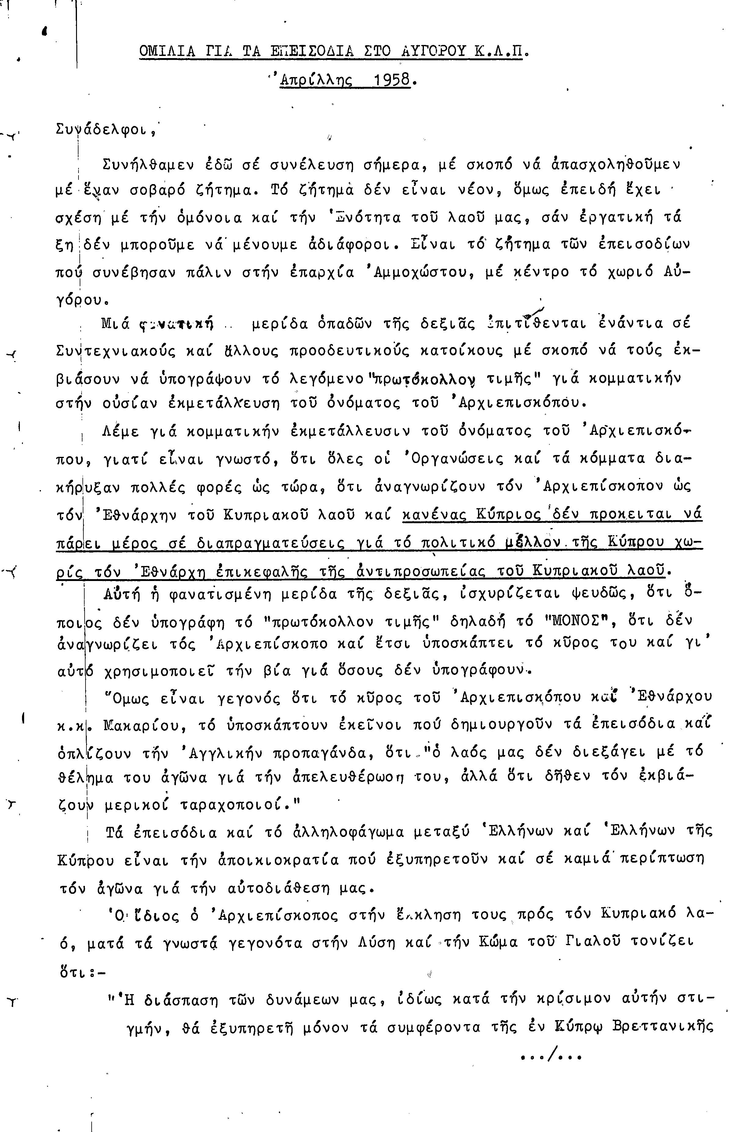 ΟΜΙΛΙΕΣ 1950-1960