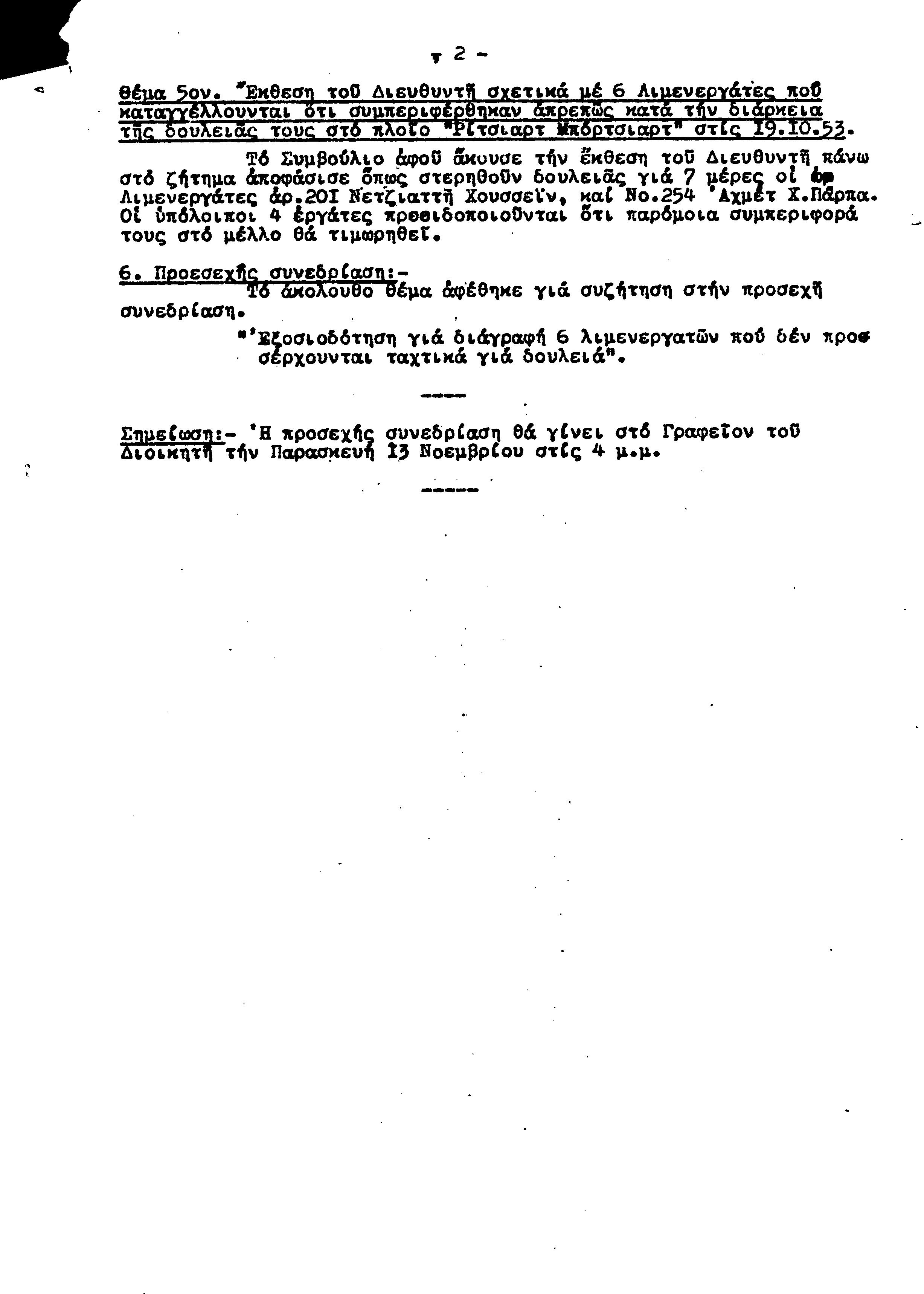 ΠΡΑΚΤΙΚΑ ΣΥΝΤΕΧΝΙΑΣ ΛΙΜΕΝΕΡΓΑΤΩΝ 1952-1958