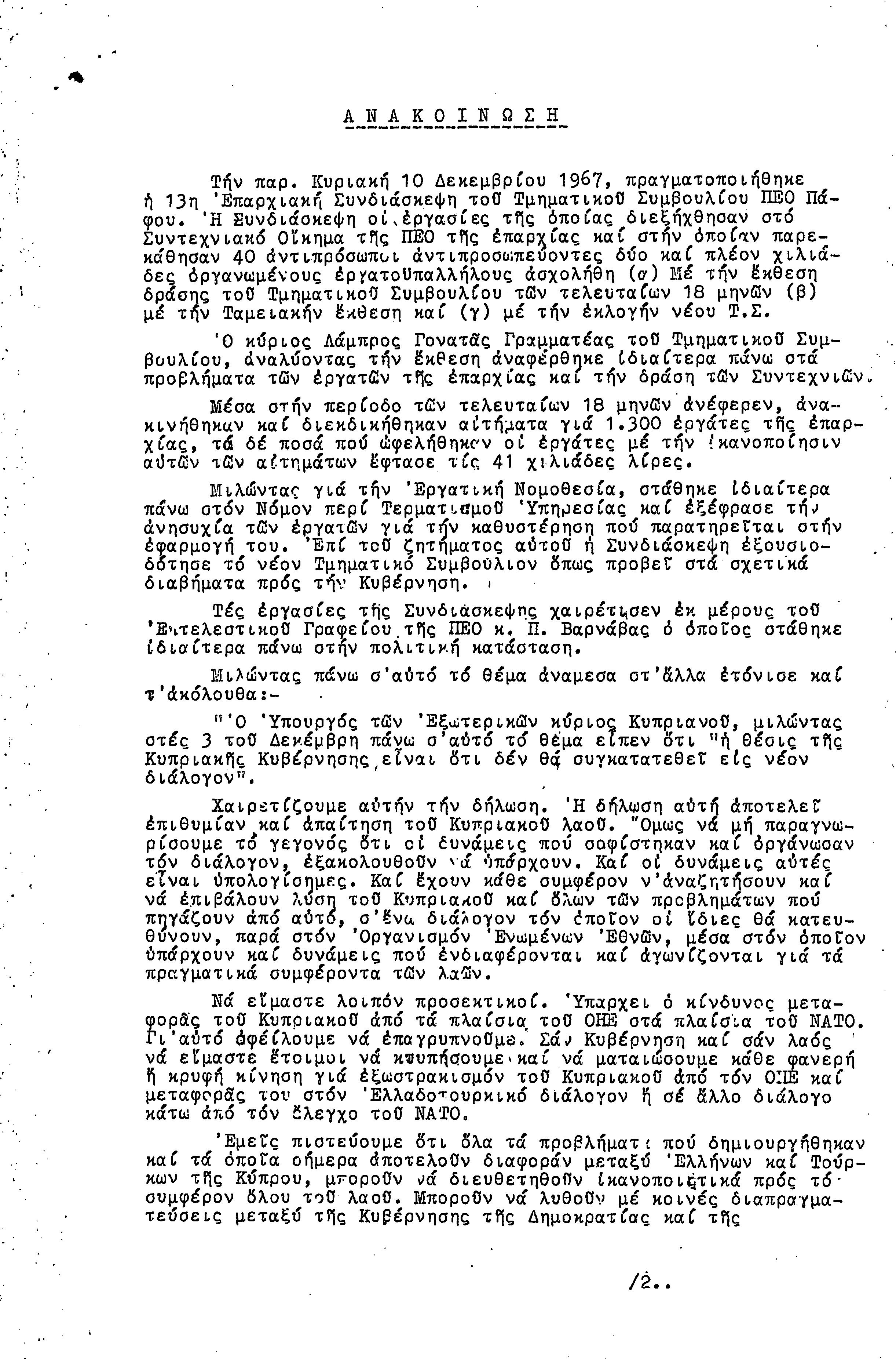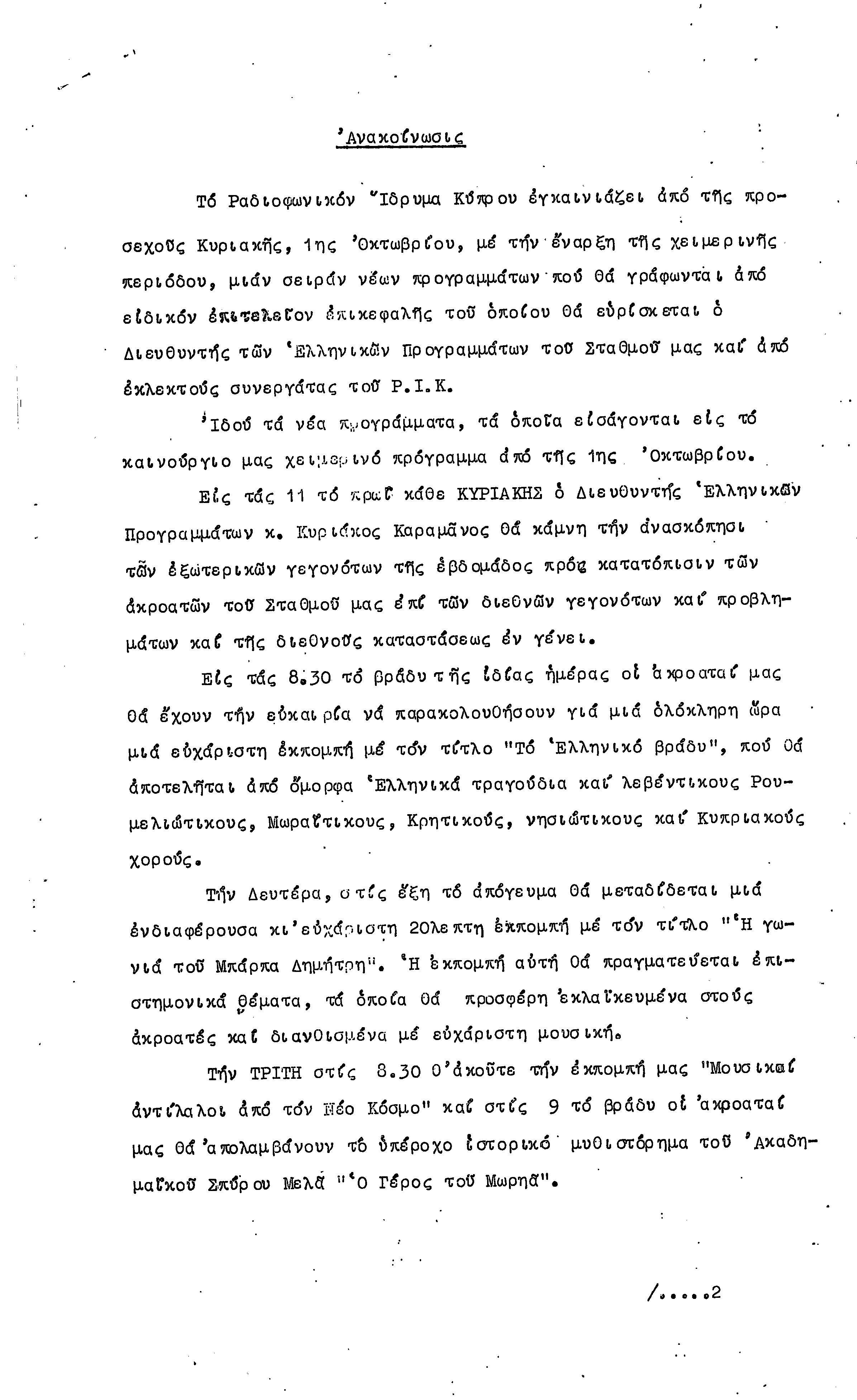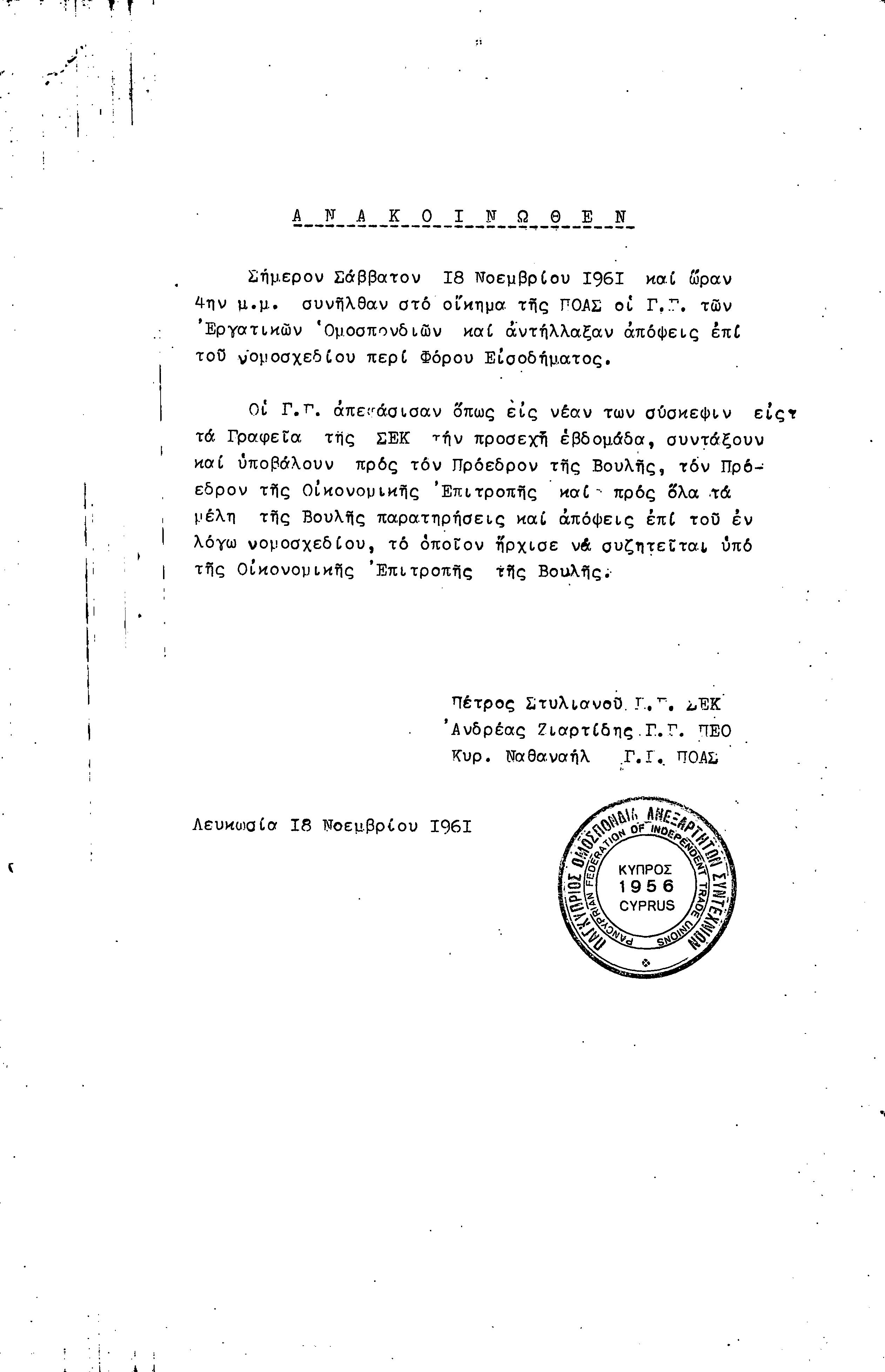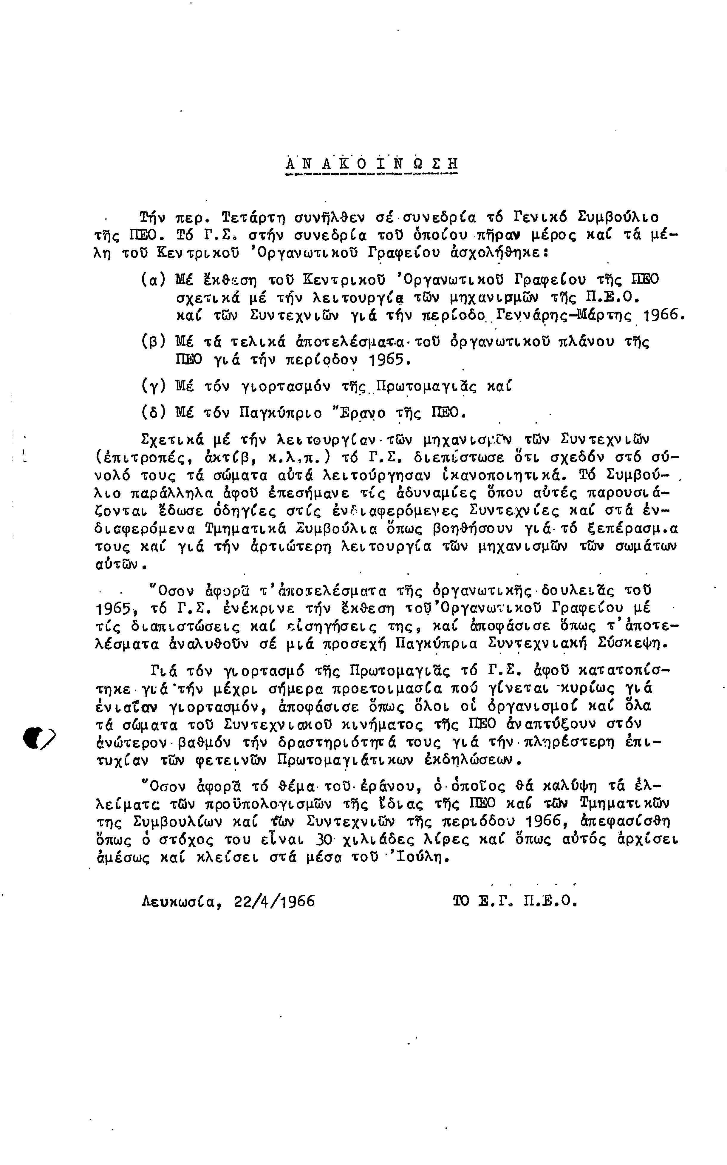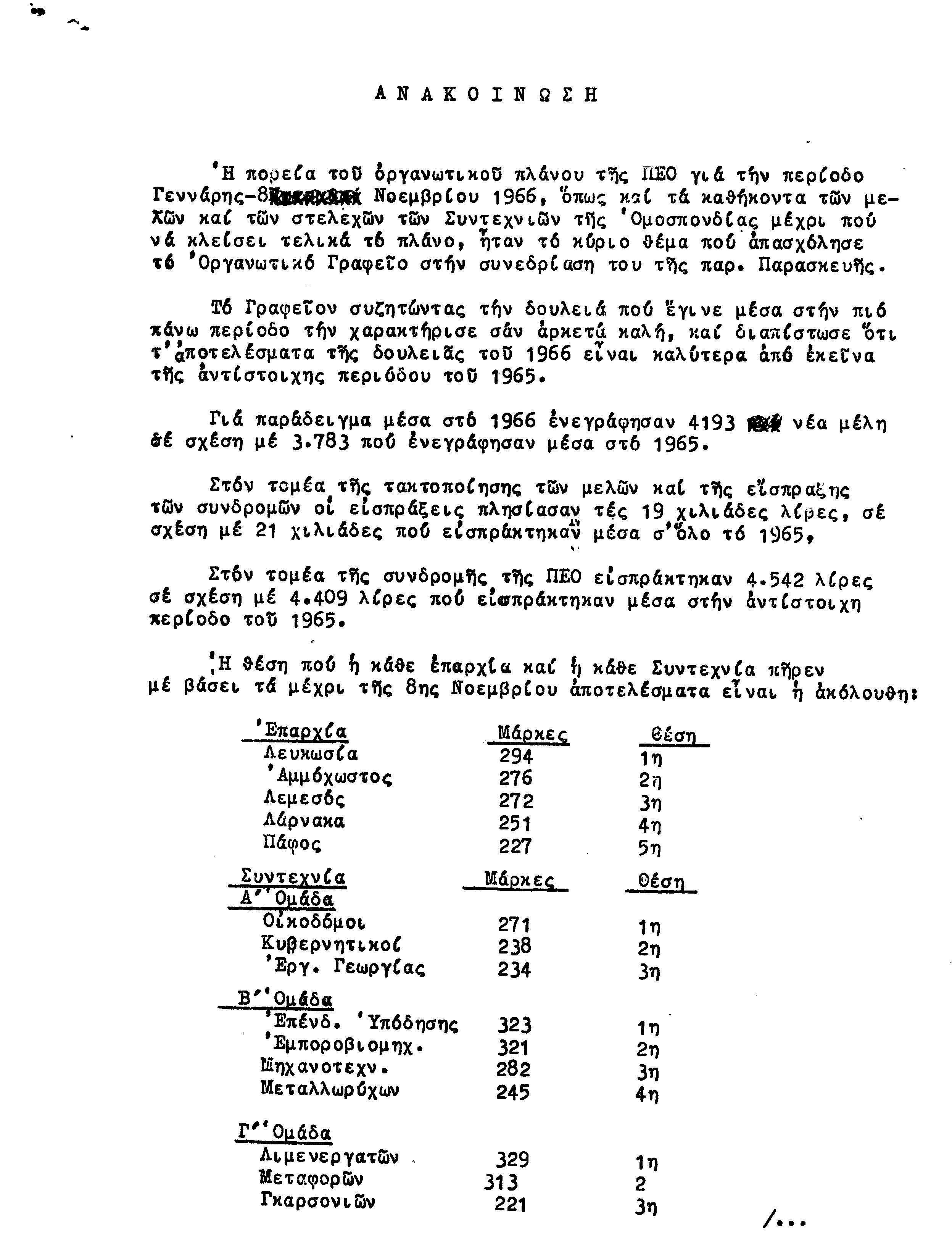 ΑΝΑΚΟΙΝΩΣΕΙΣ 1956-1971