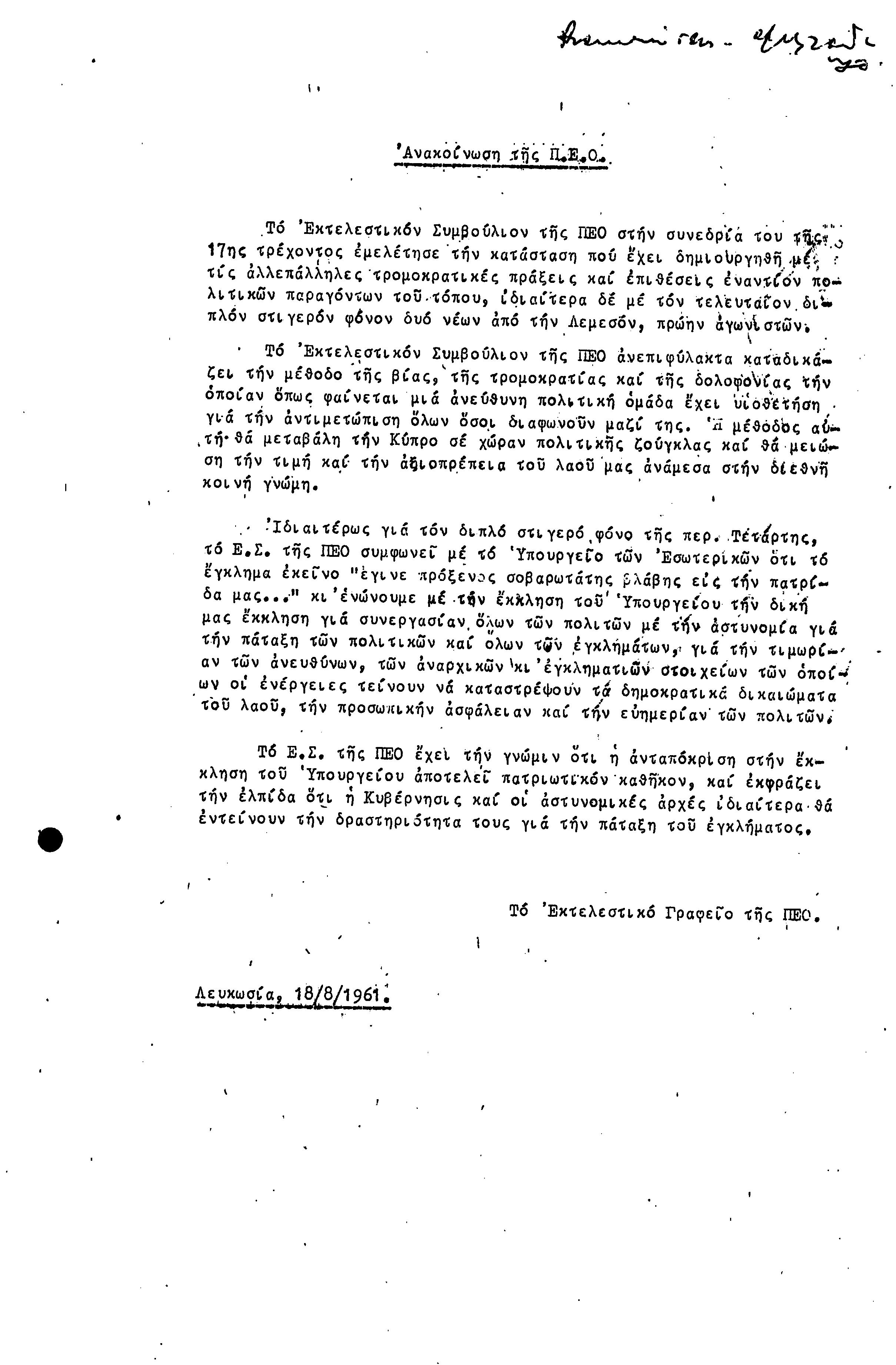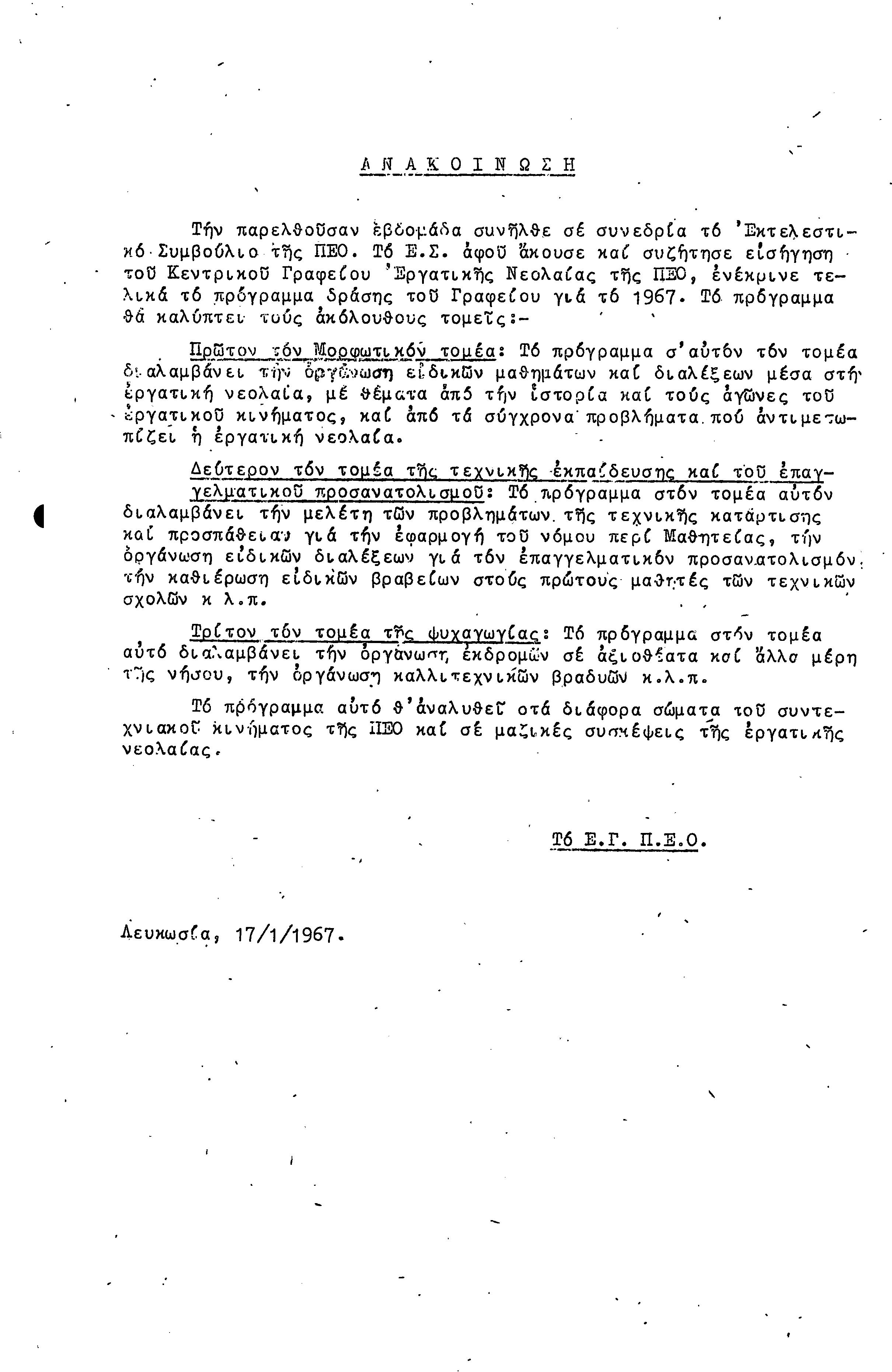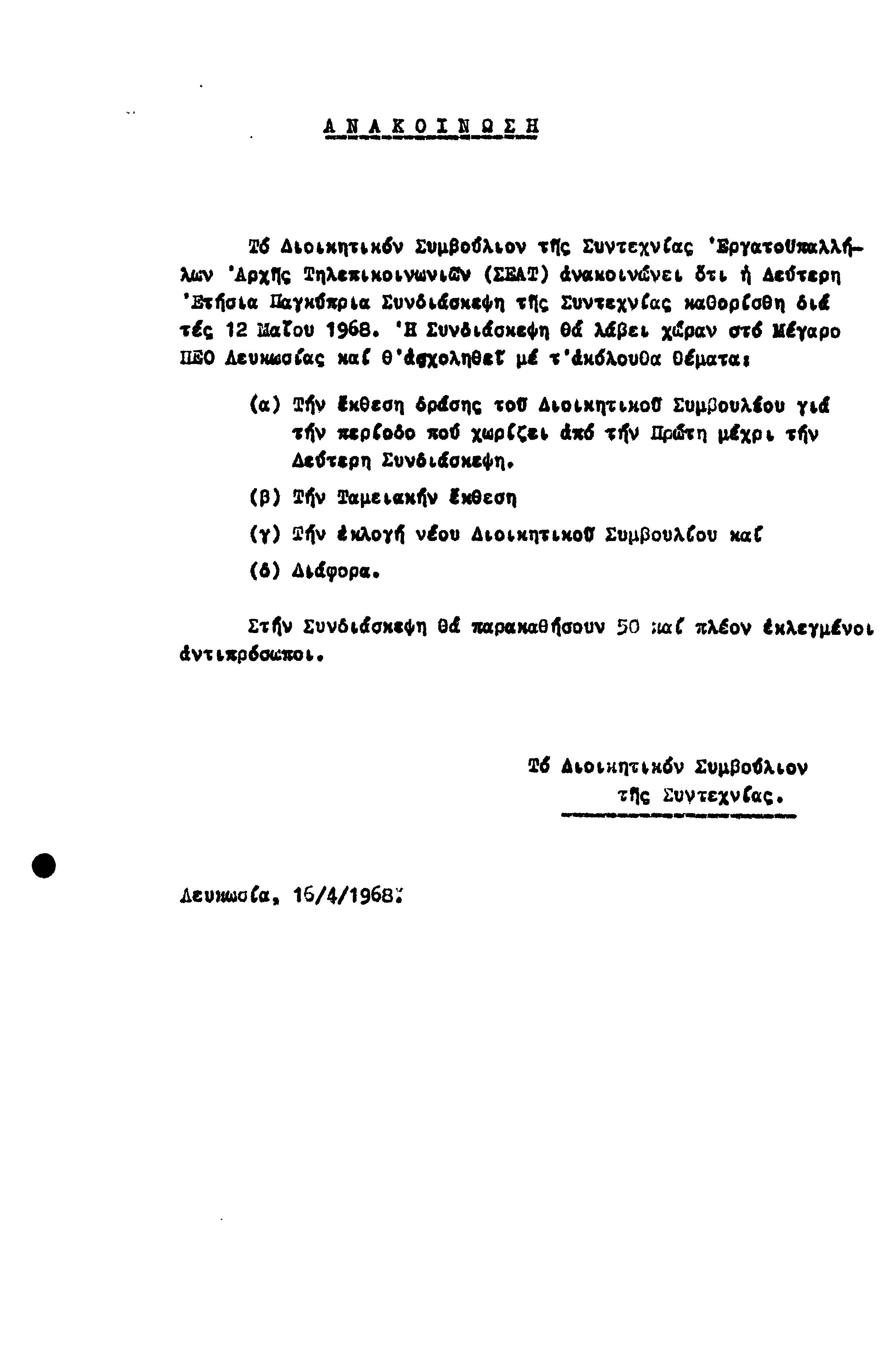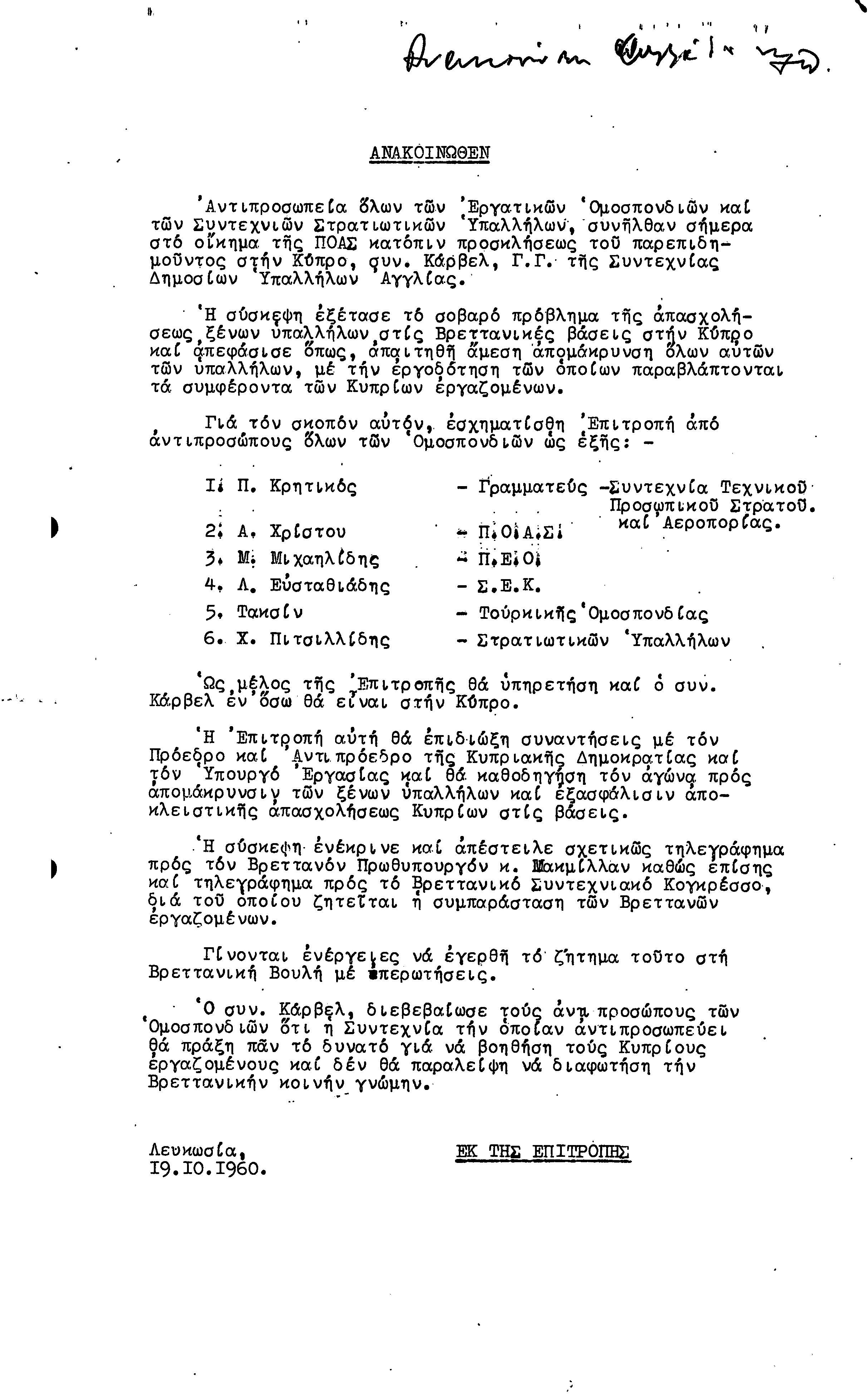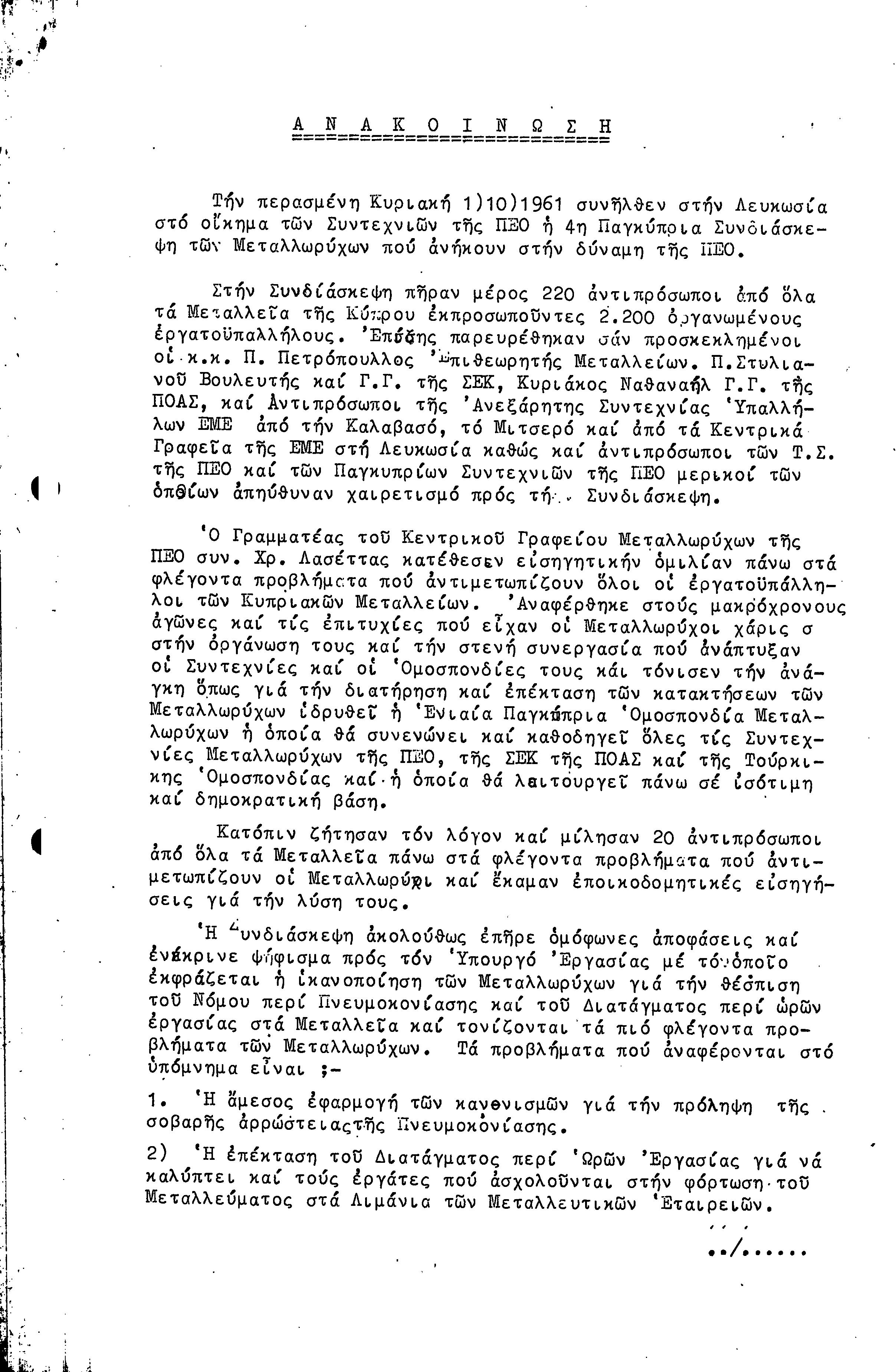 ΑΝΑΚΟΙΝΩΣΕΙΣ 1956-1971