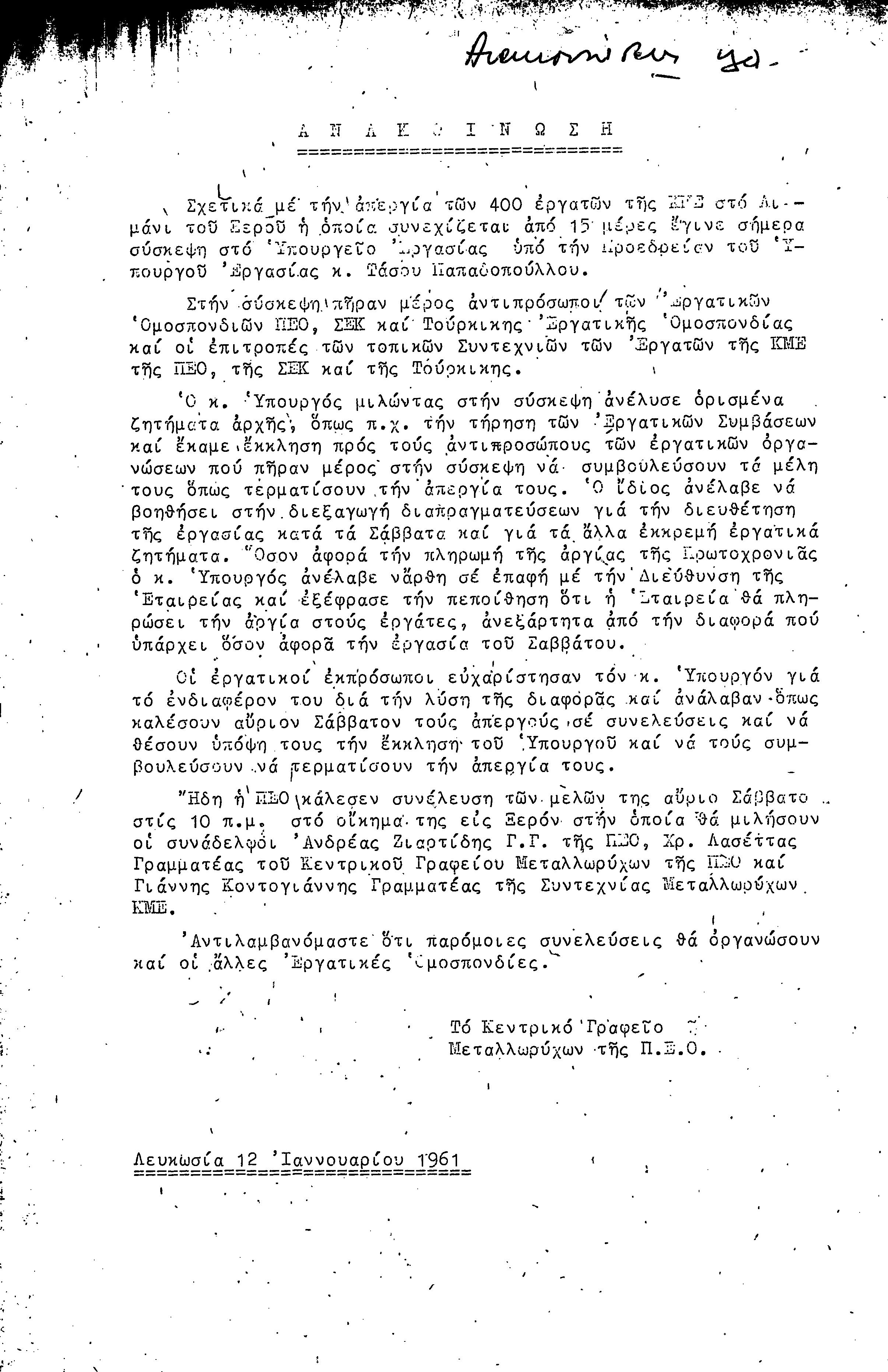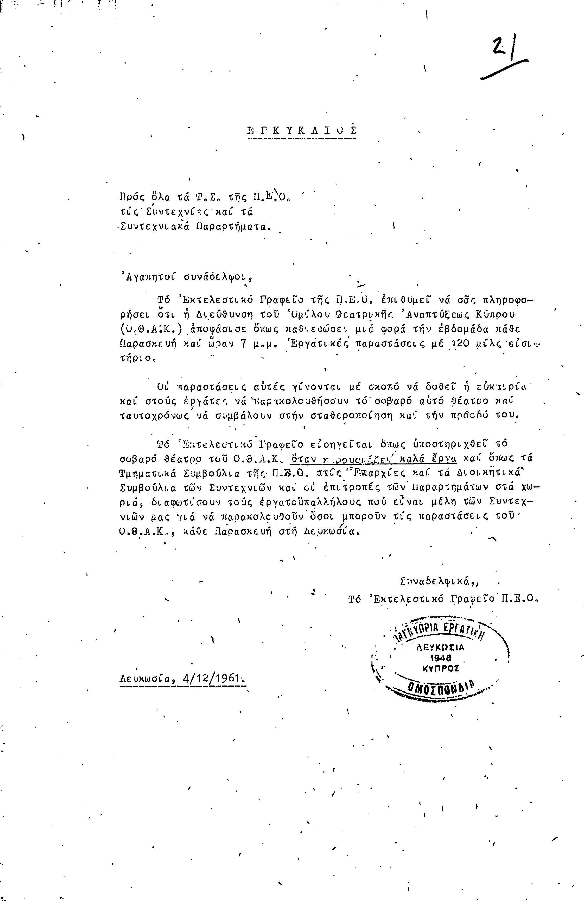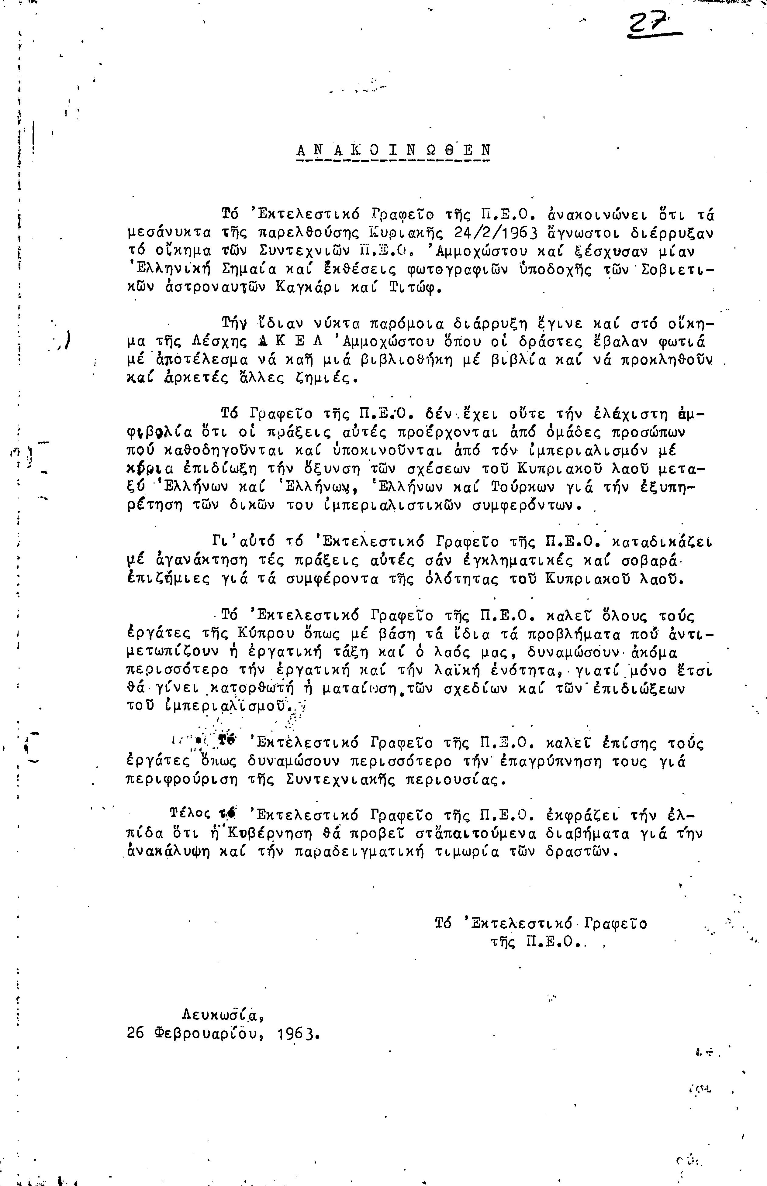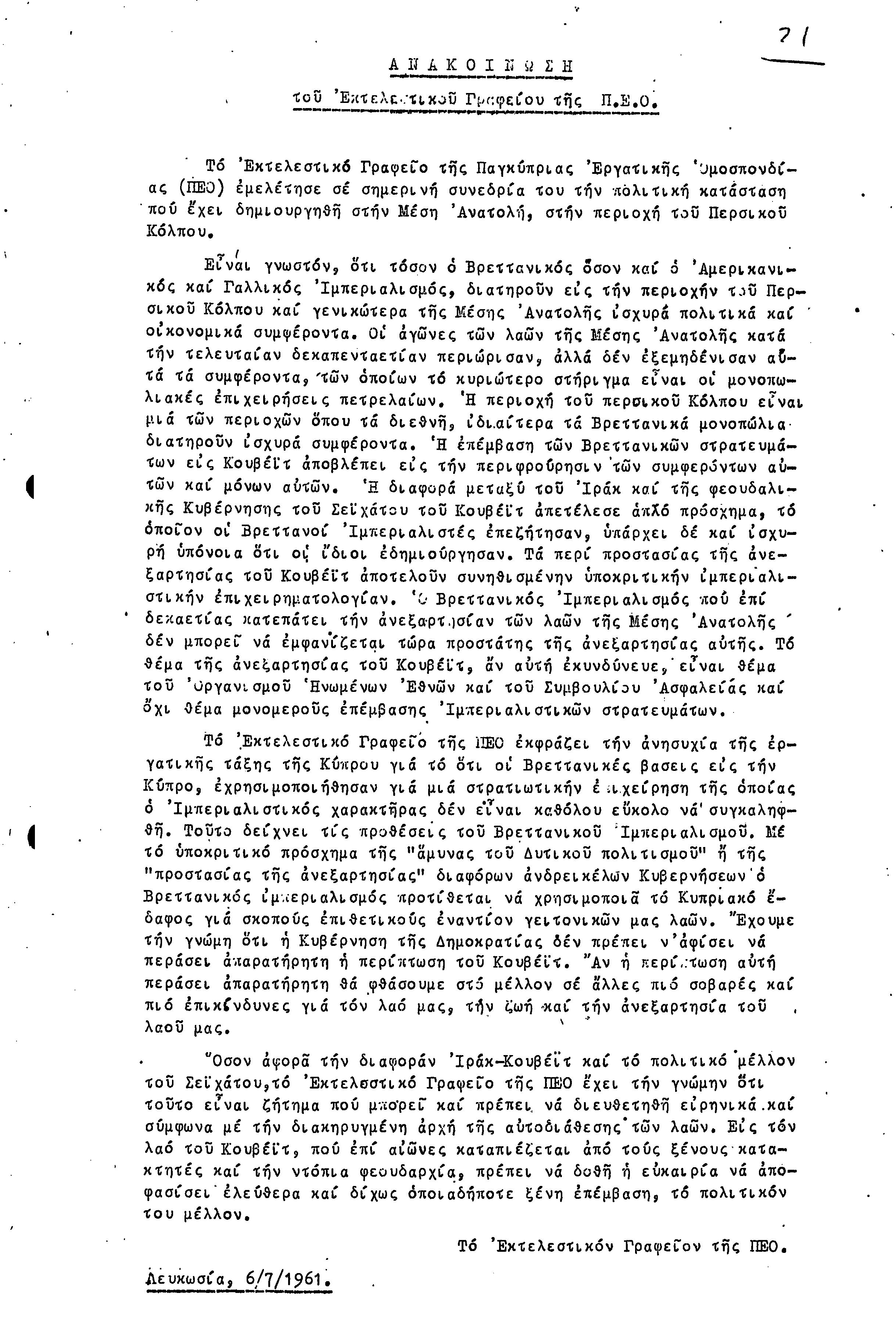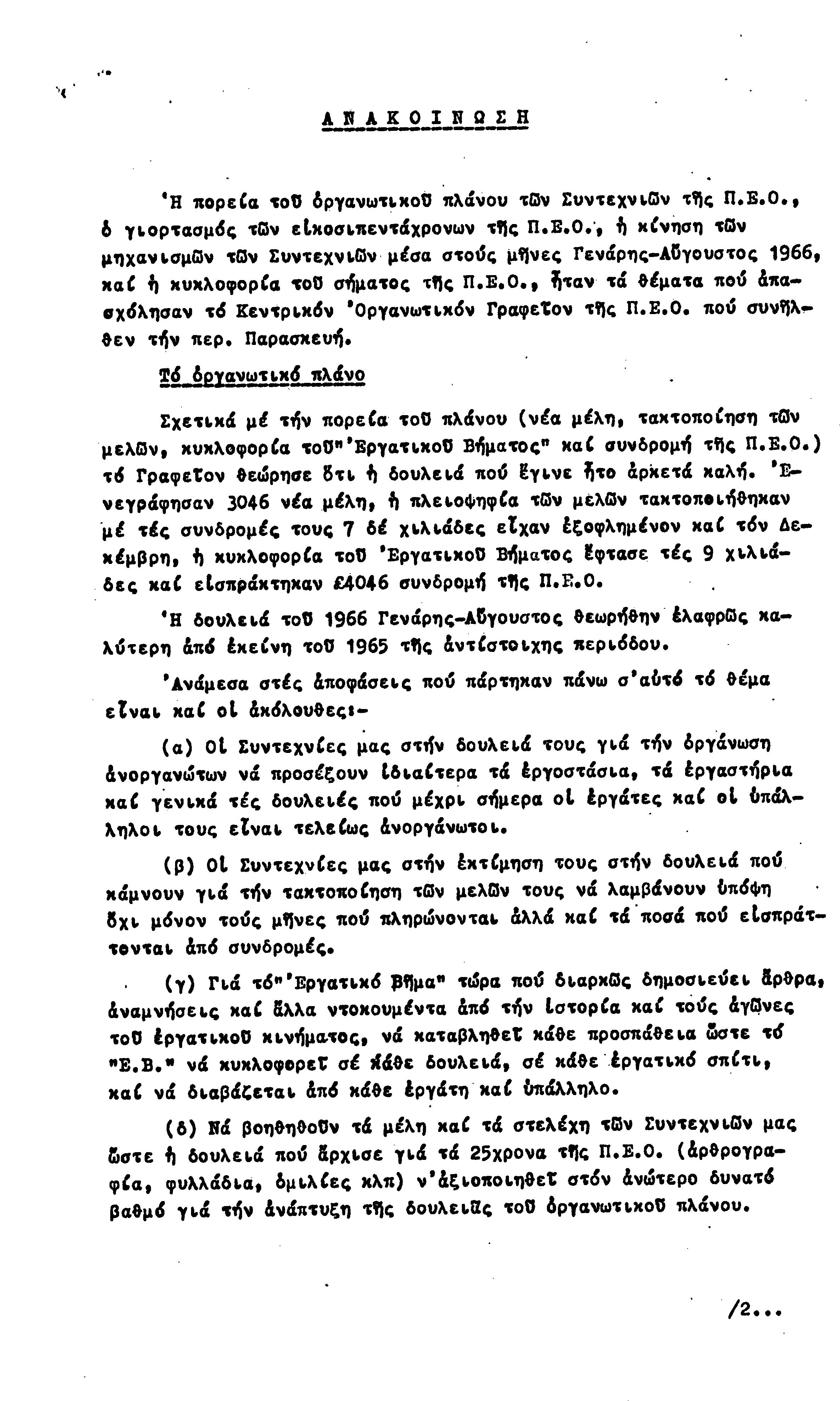 ΑΝΑΚΟΙΝΩΣΕΙΣ 1956-1971