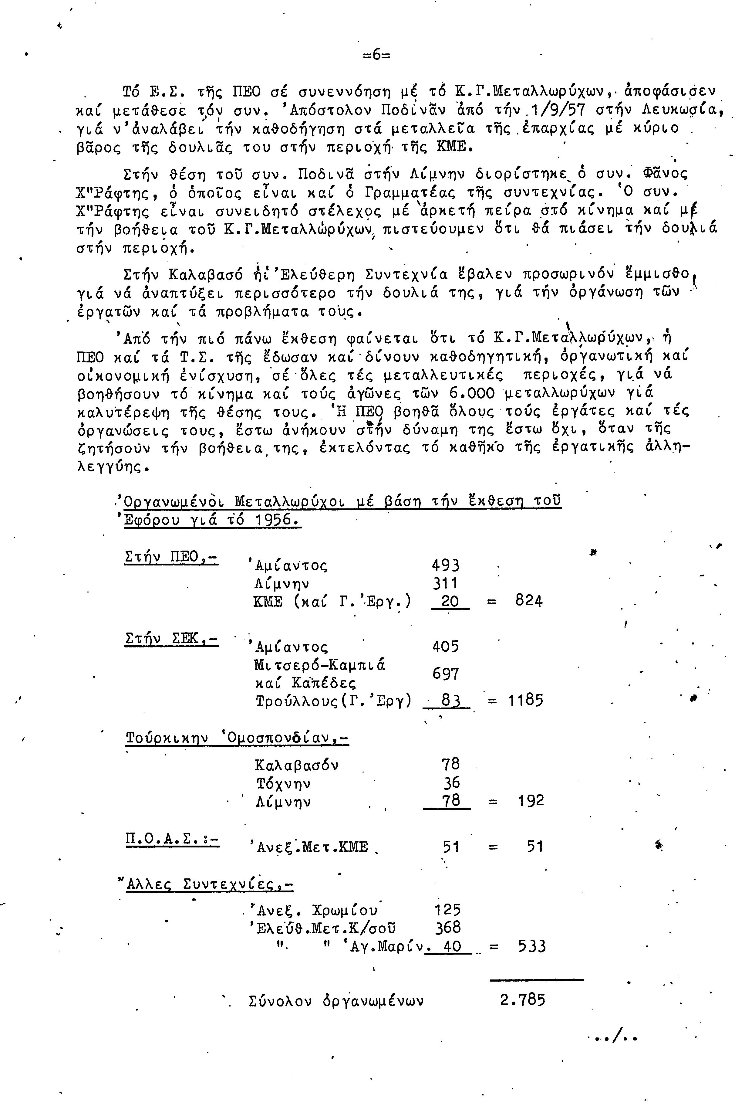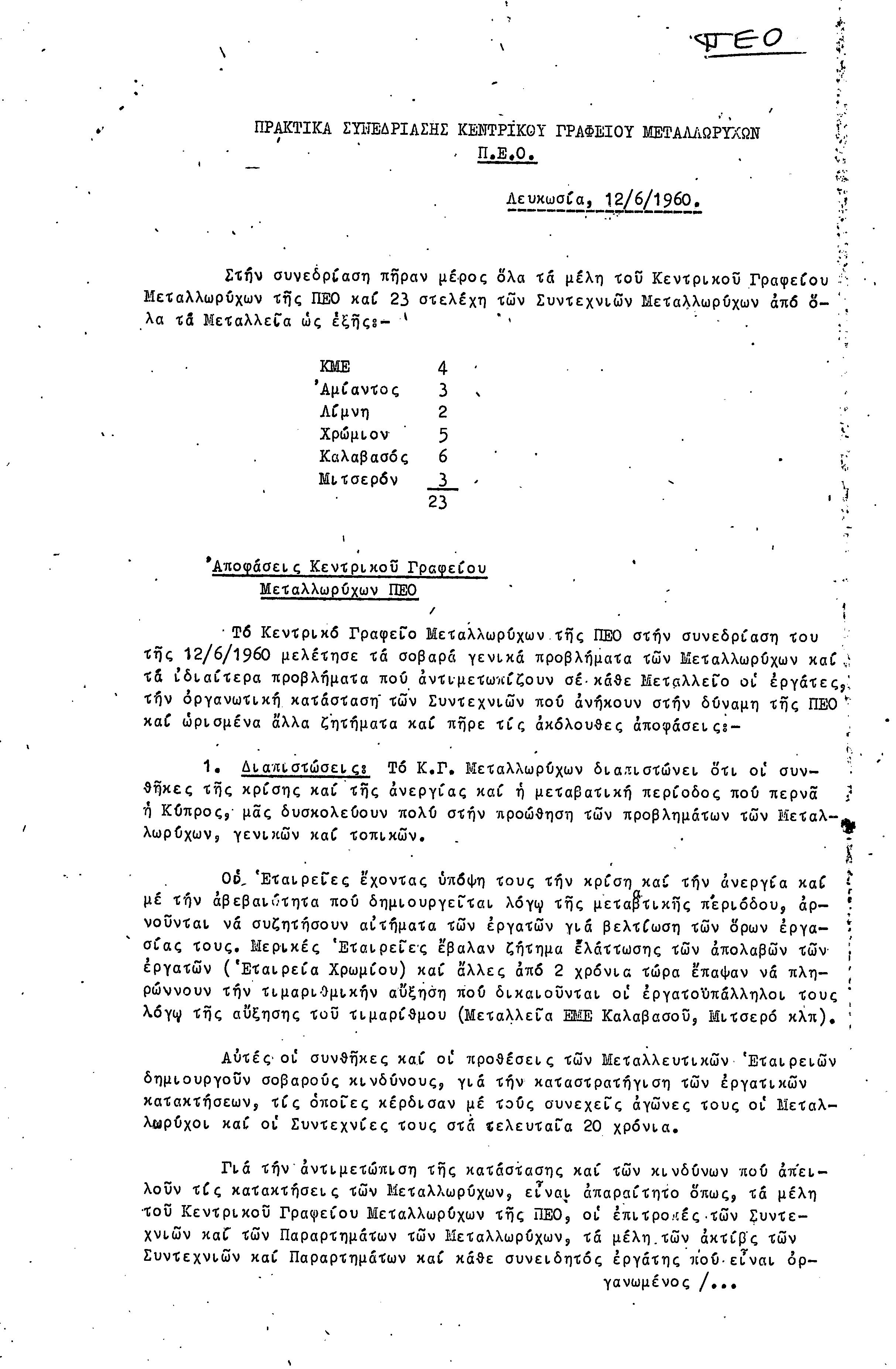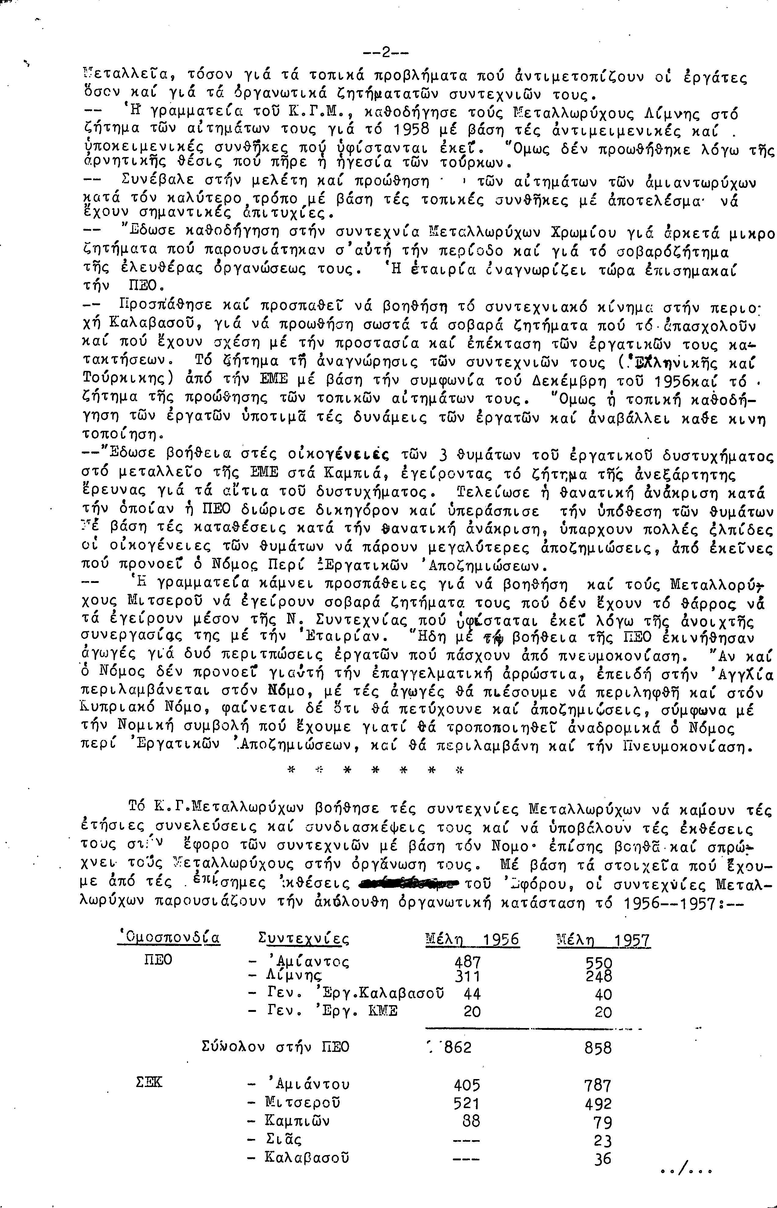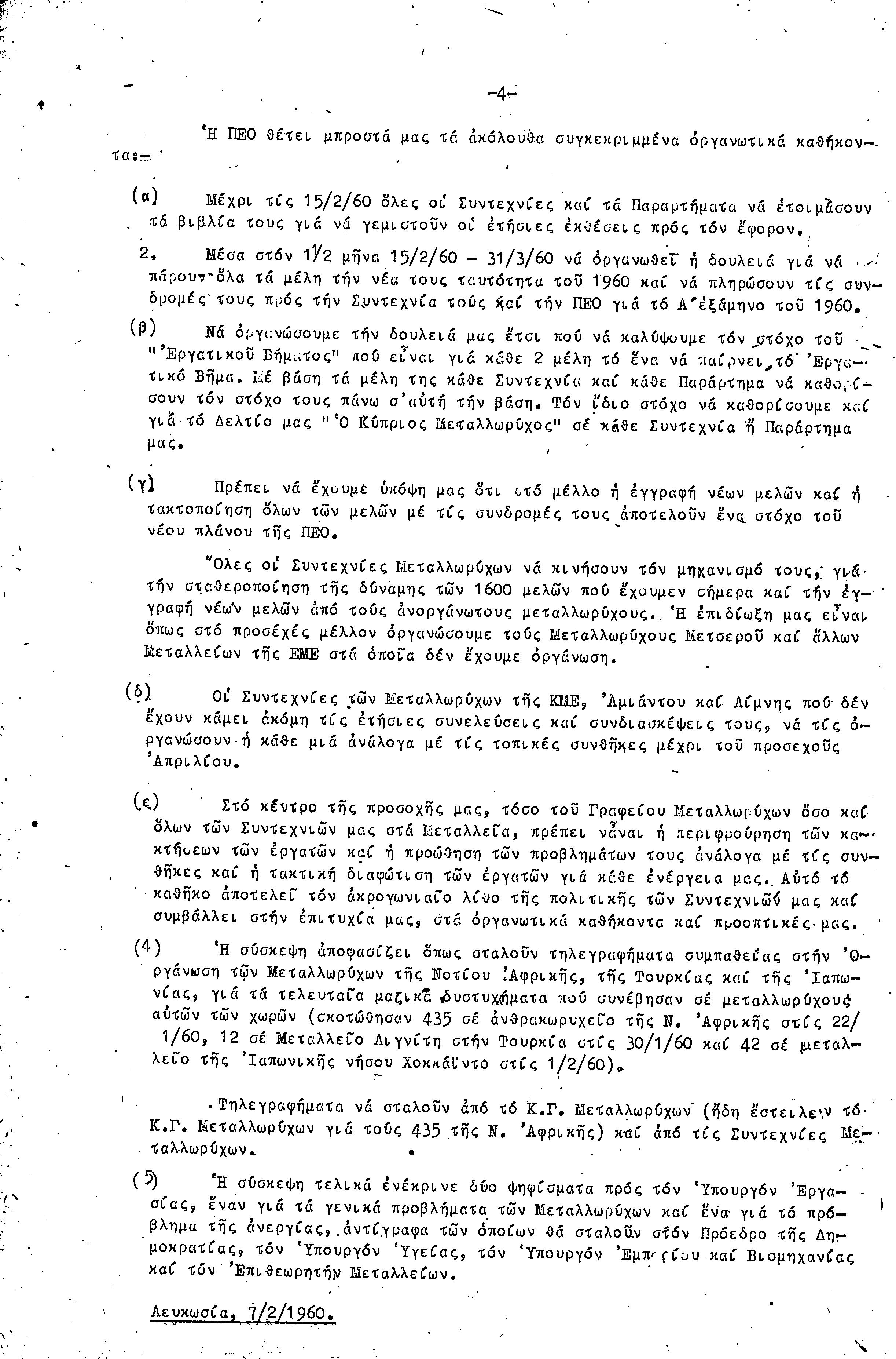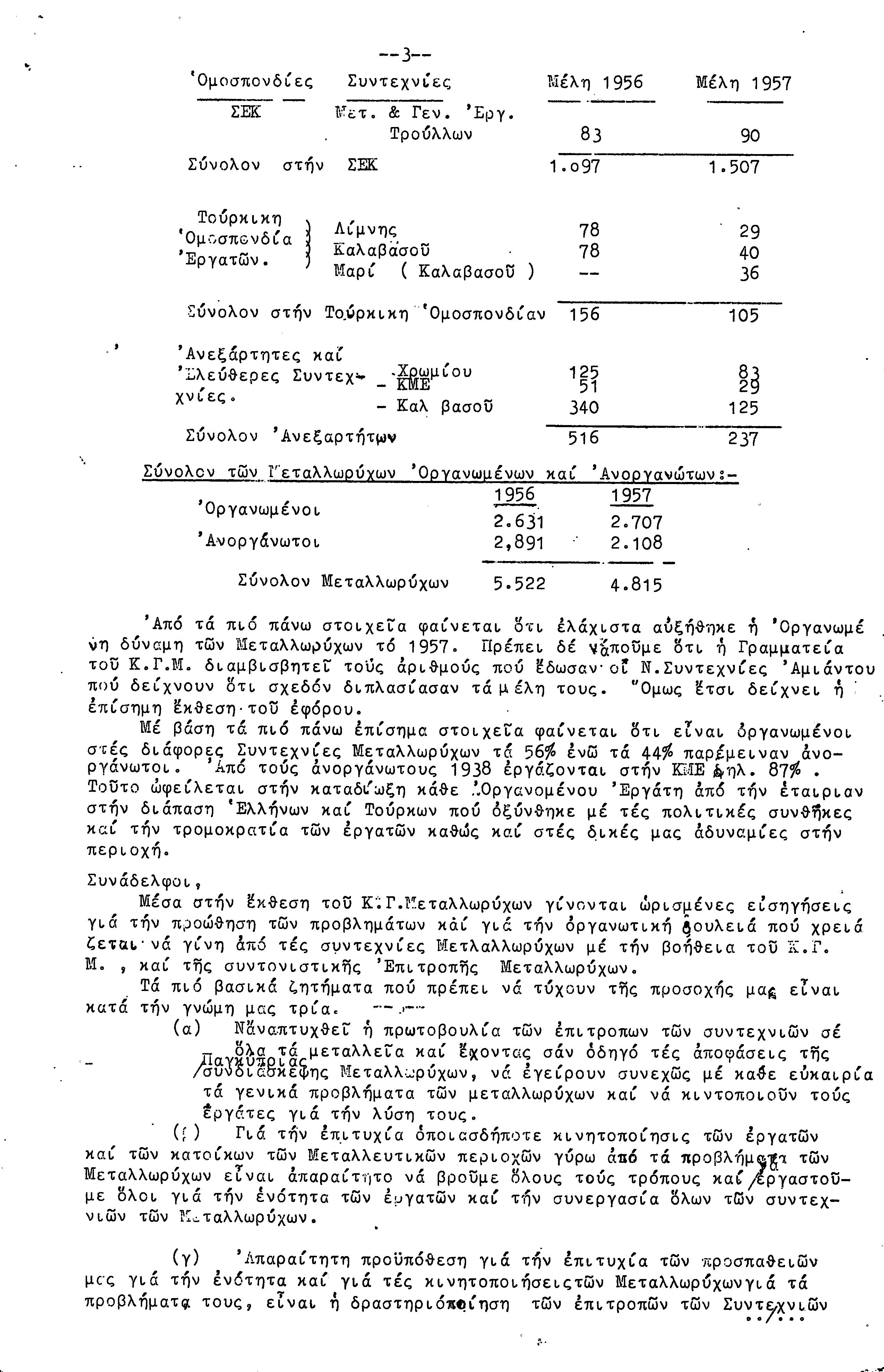 ΚΕΝΤΡΙΚΟ ΟΡΓΑΝΩΤΙΚΟ ΓΡΑΦΕΙΟ ΜΕΤΑΛΛΩΡΥΧΩΝ 1957-1960