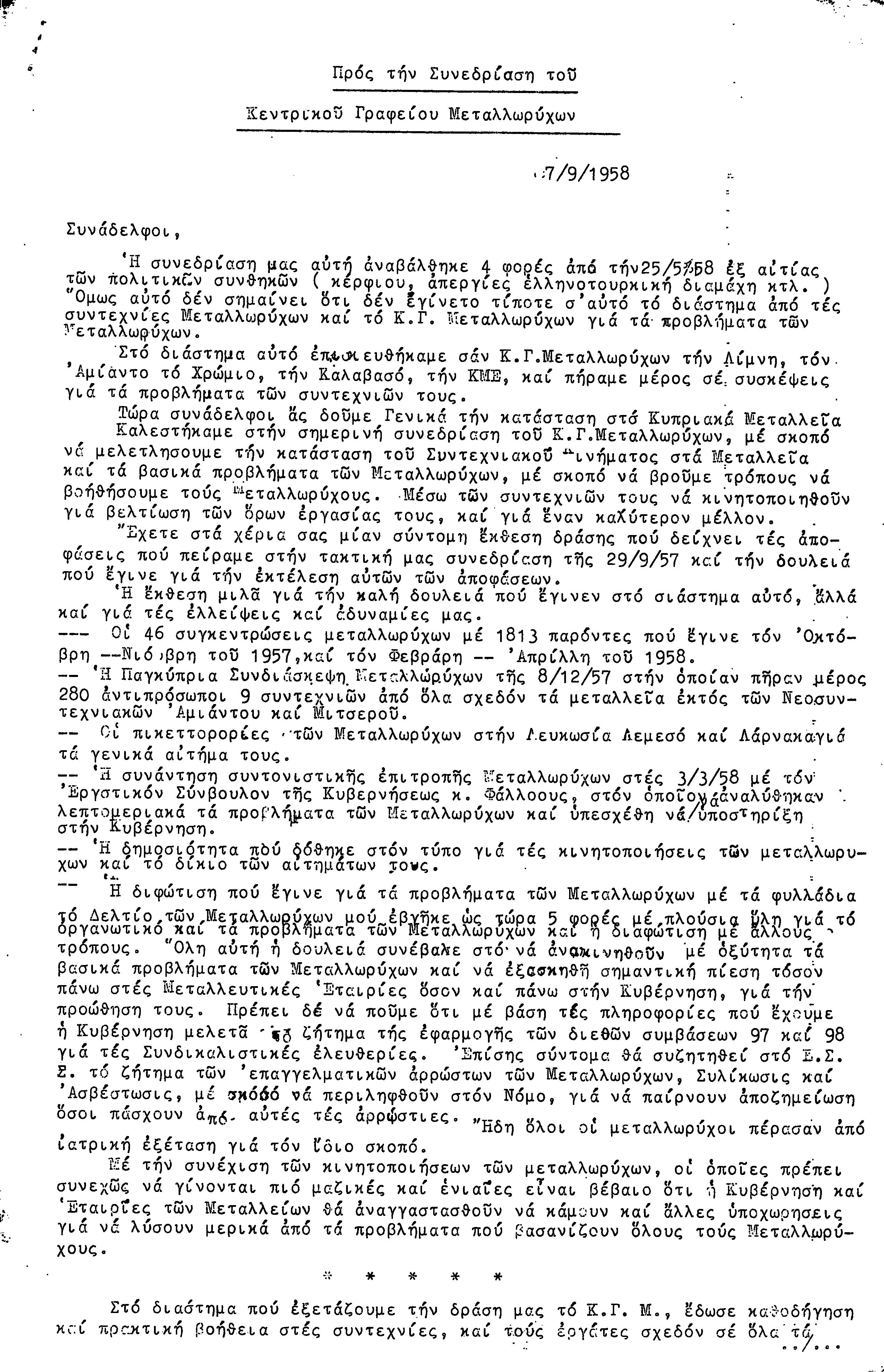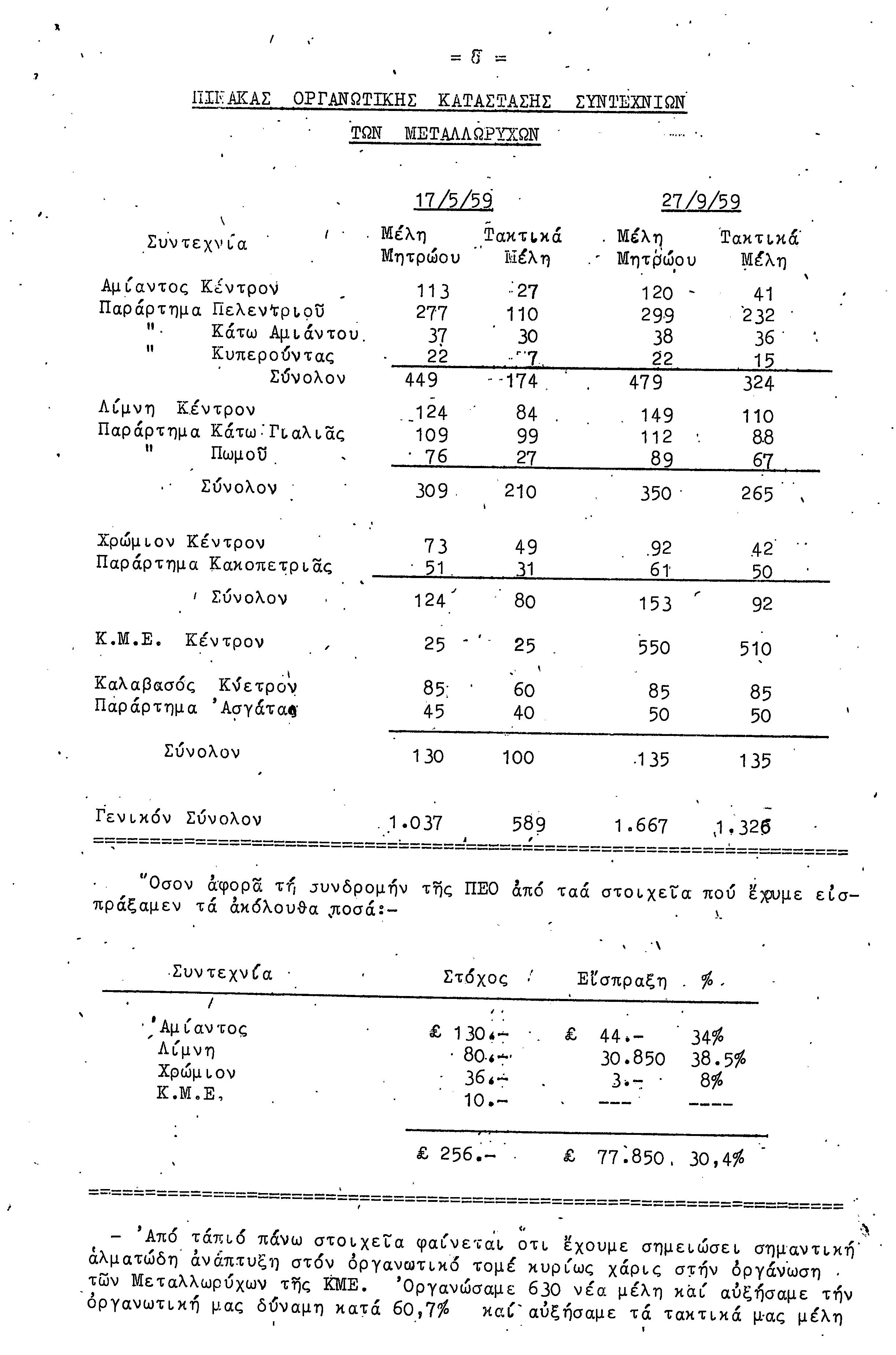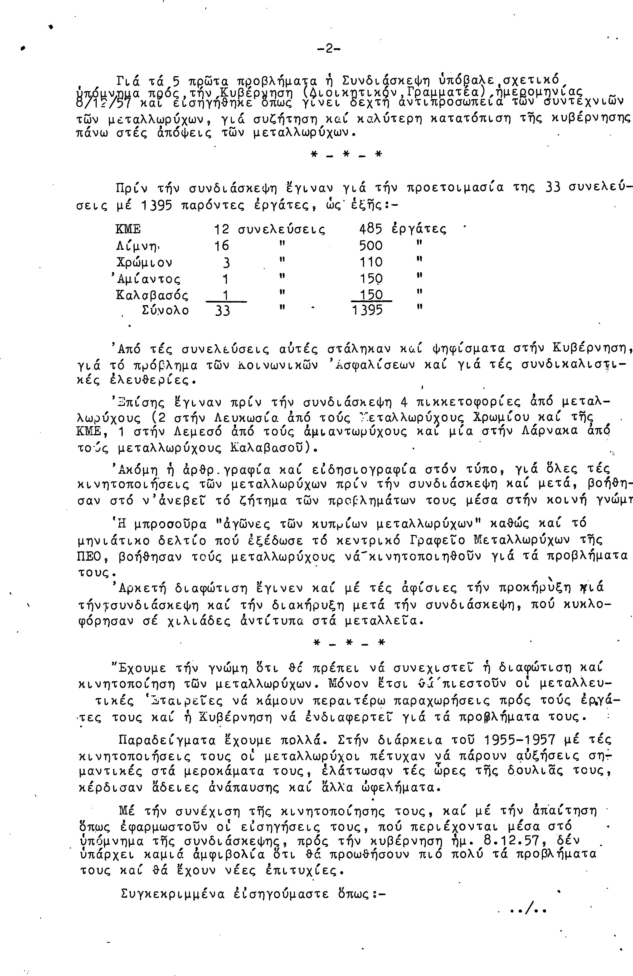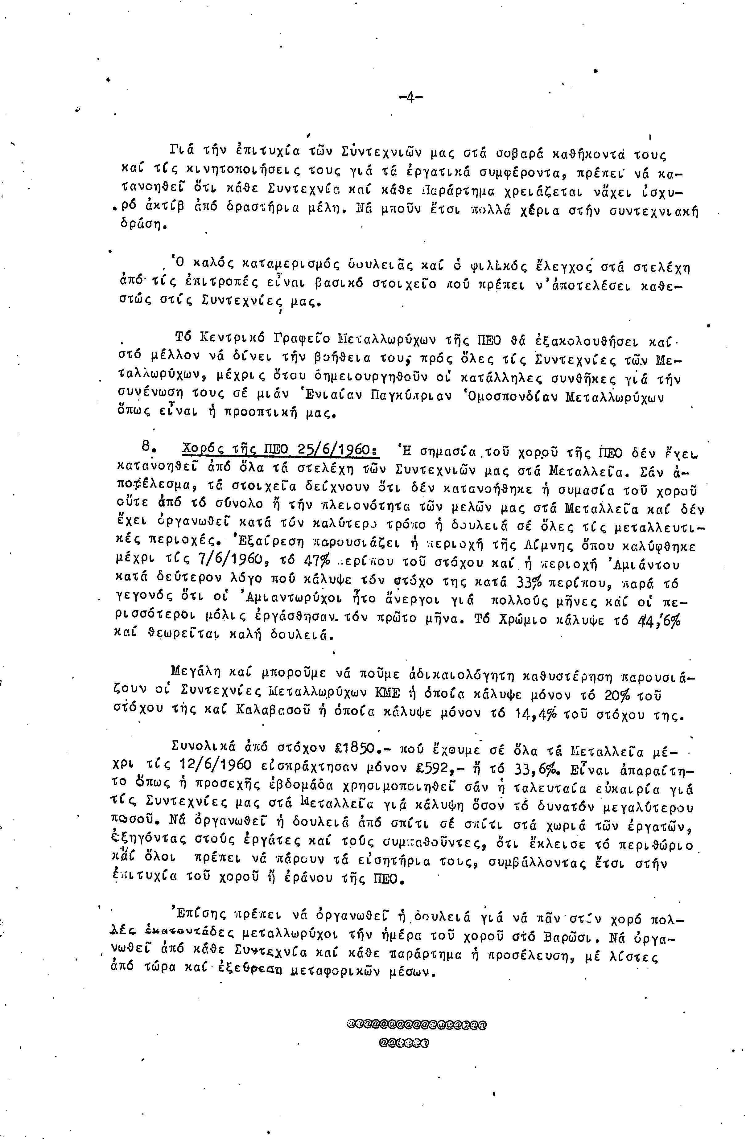 ΚΕΝΤΡΙΚΟ ΟΡΓΑΝΩΤΙΚΟ ΓΡΑΦΕΙΟ ΜΕΤΑΛΛΩΡΥΧΩΝ 1957-1960