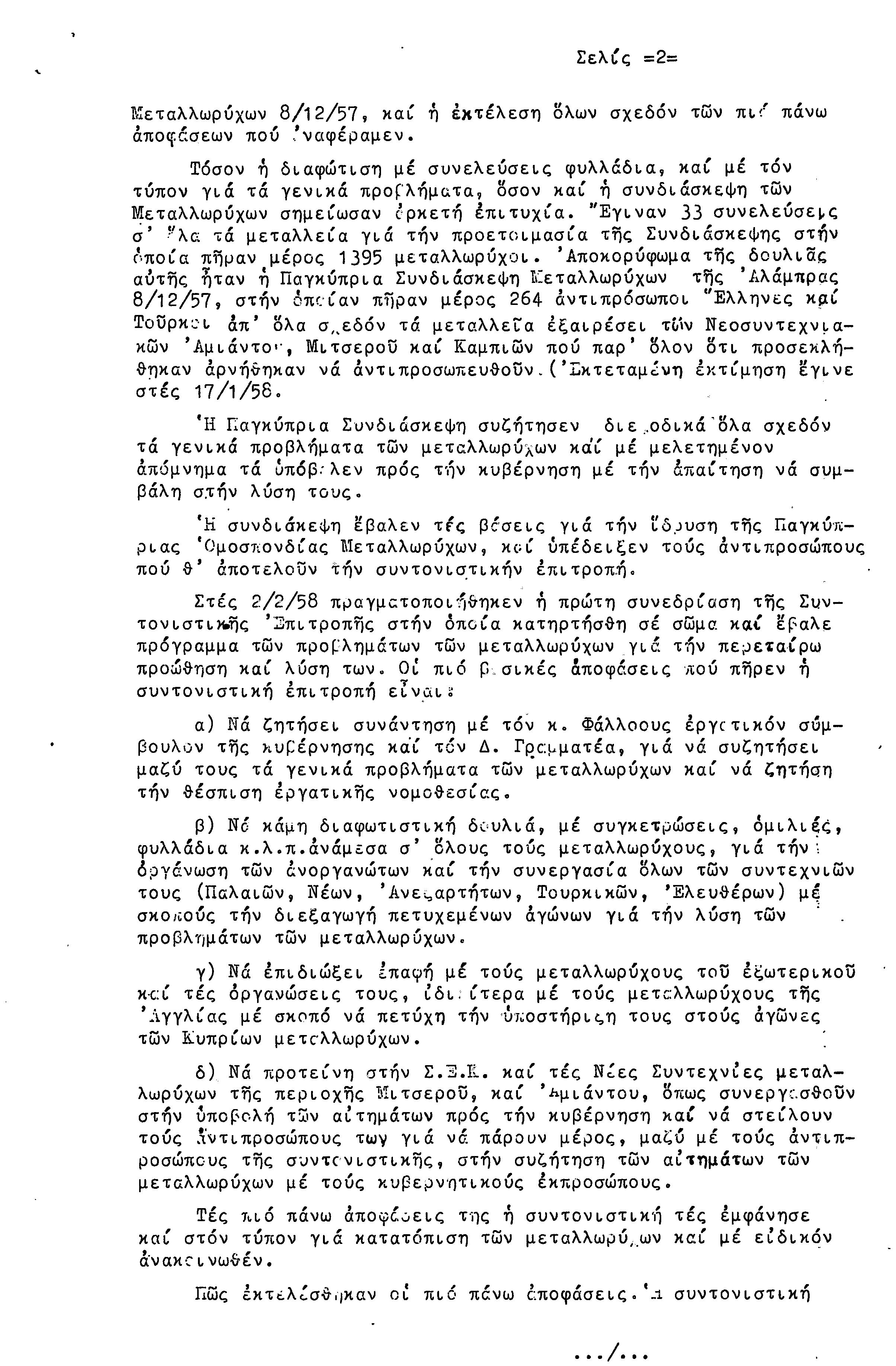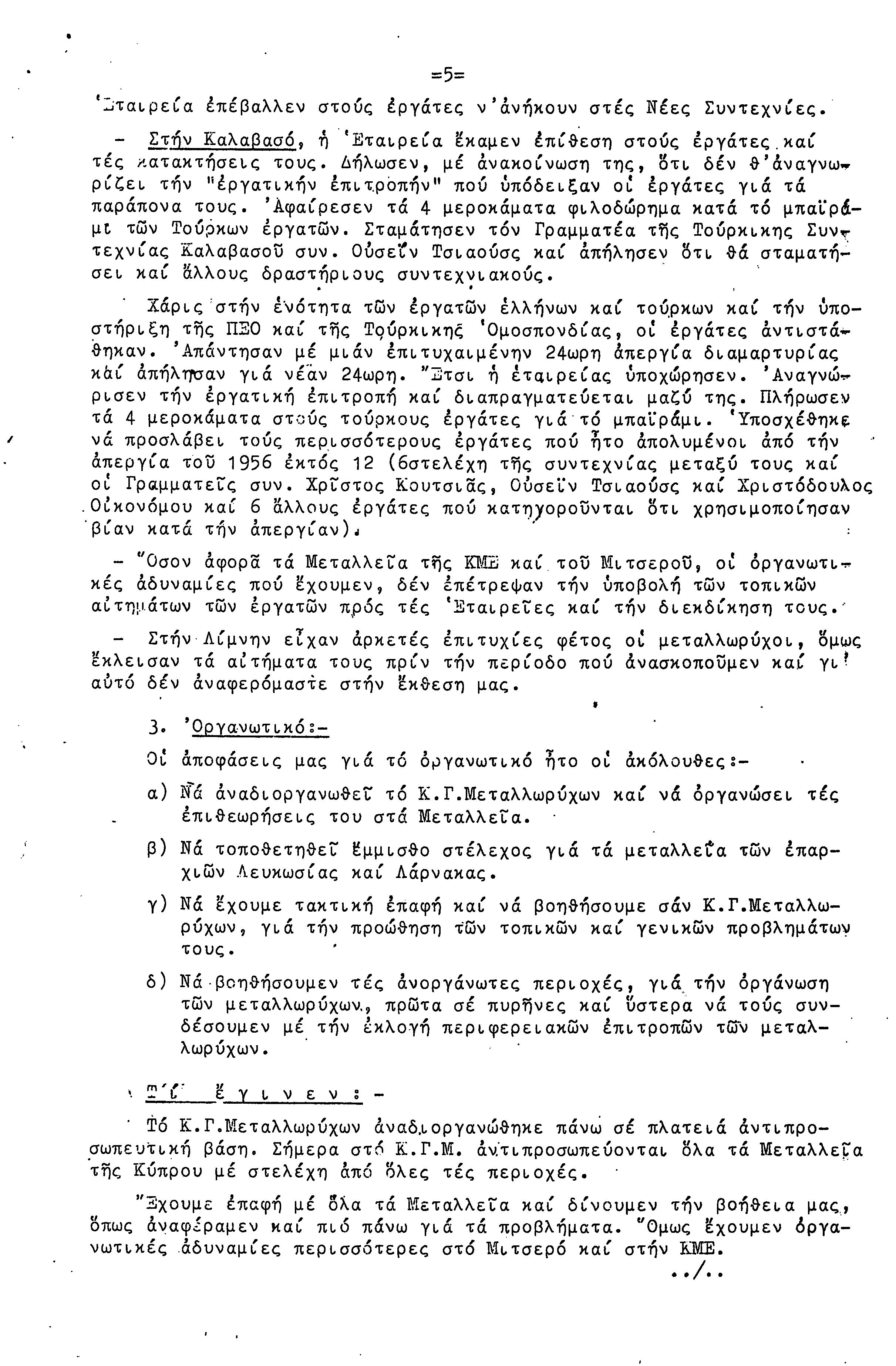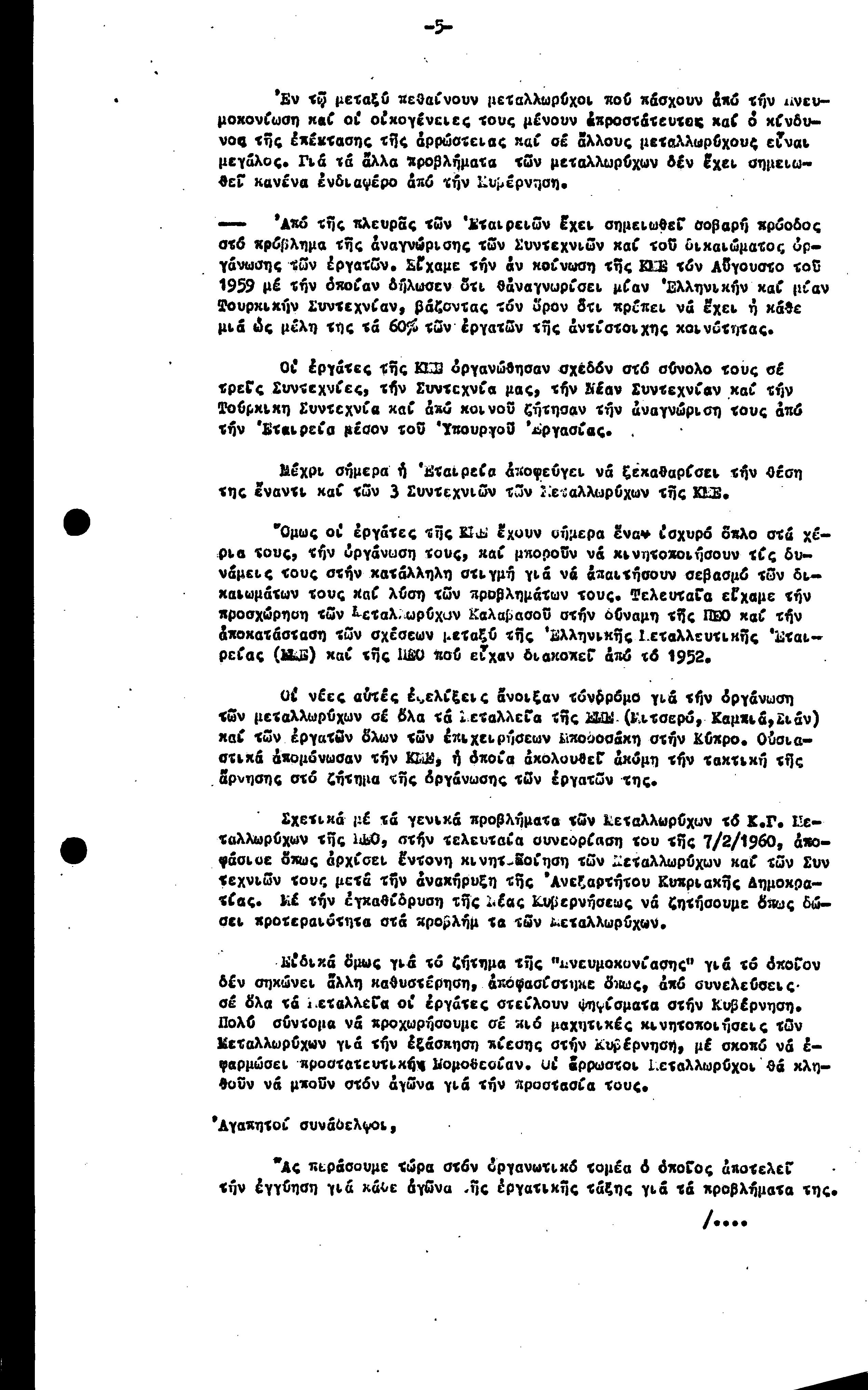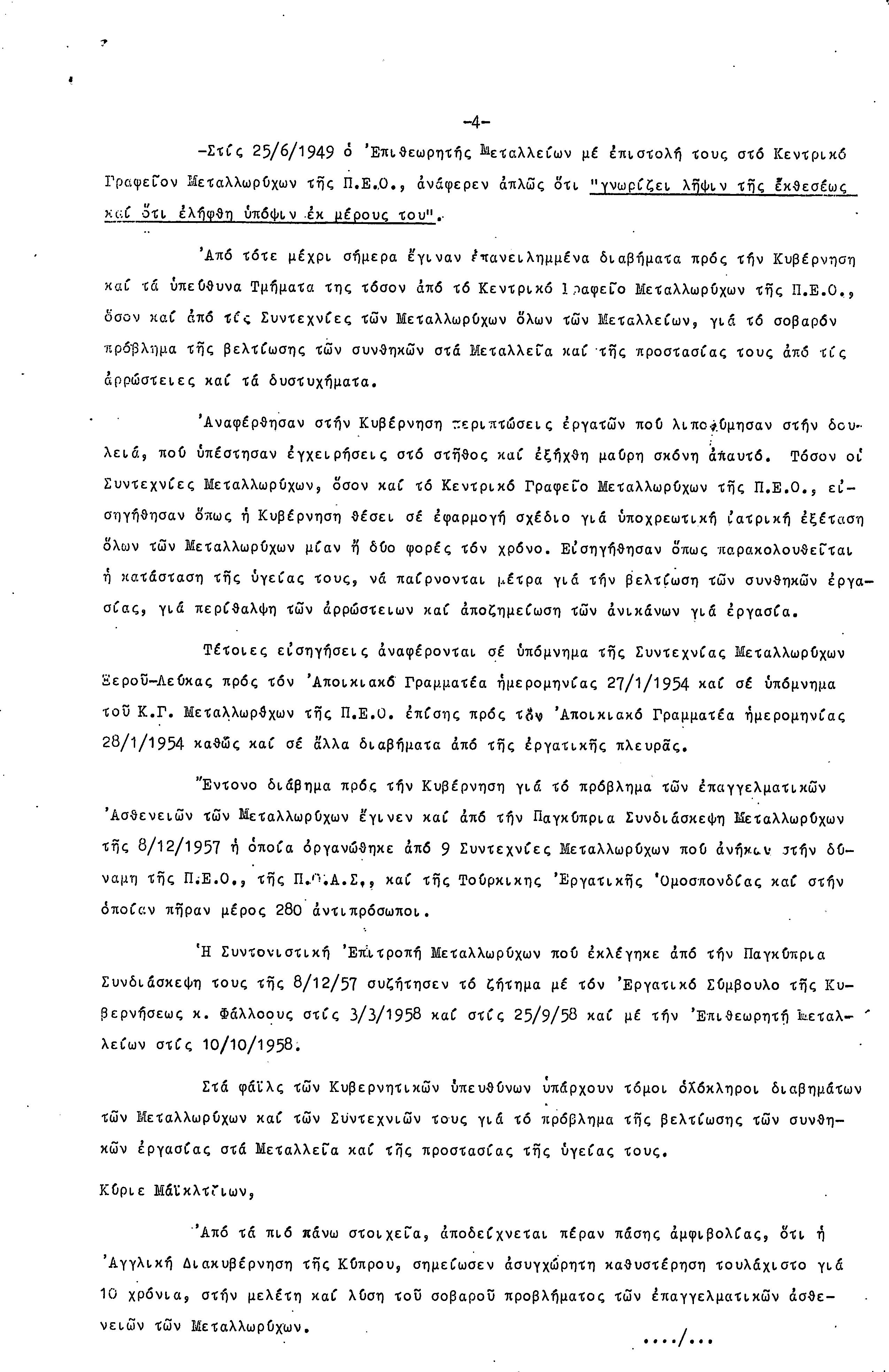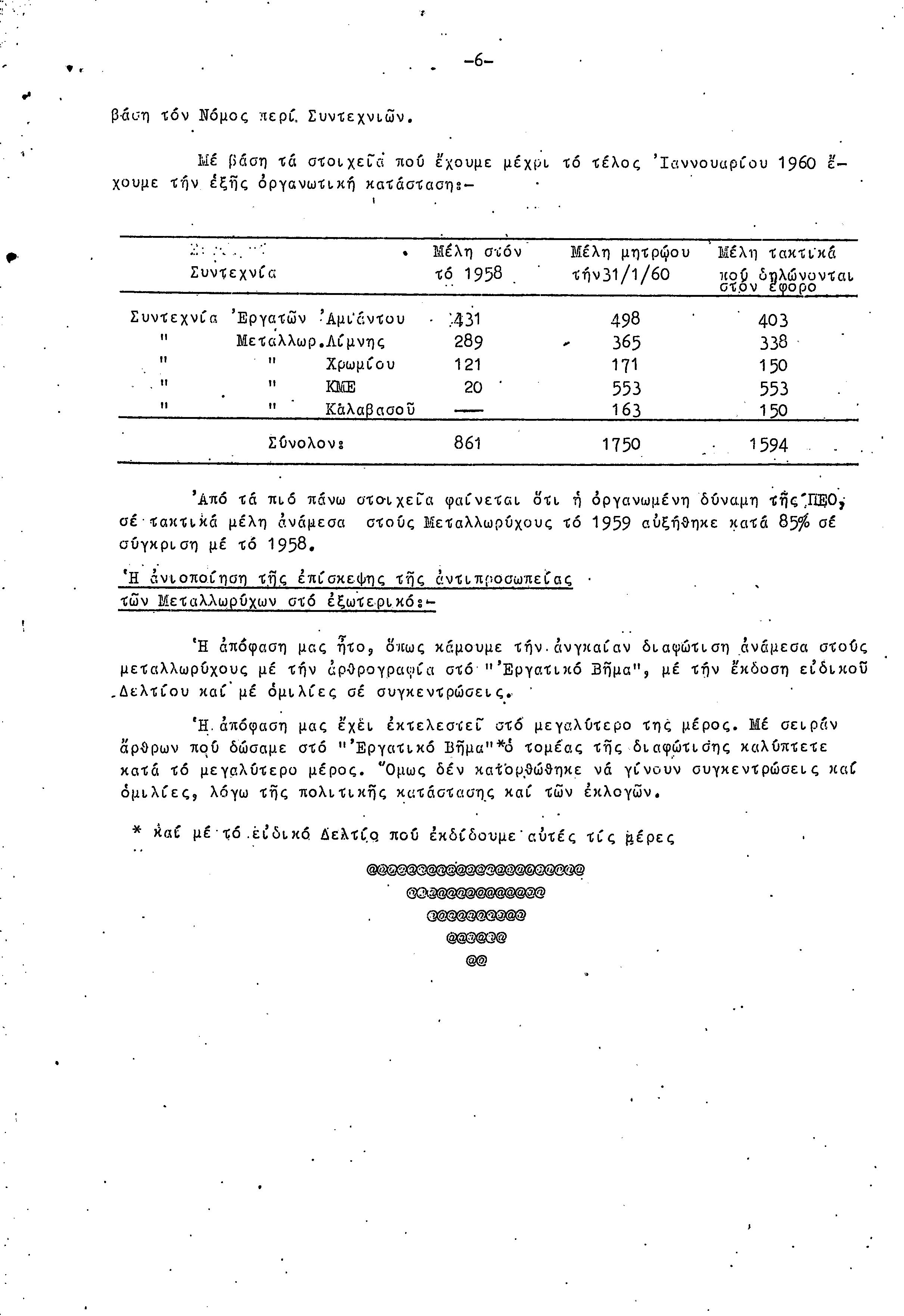 ΚΕΝΤΡΙΚΟ ΟΡΓΑΝΩΤΙΚΟ ΓΡΑΦΕΙΟ ΜΕΤΑΛΛΩΡΥΧΩΝ 1957-1960