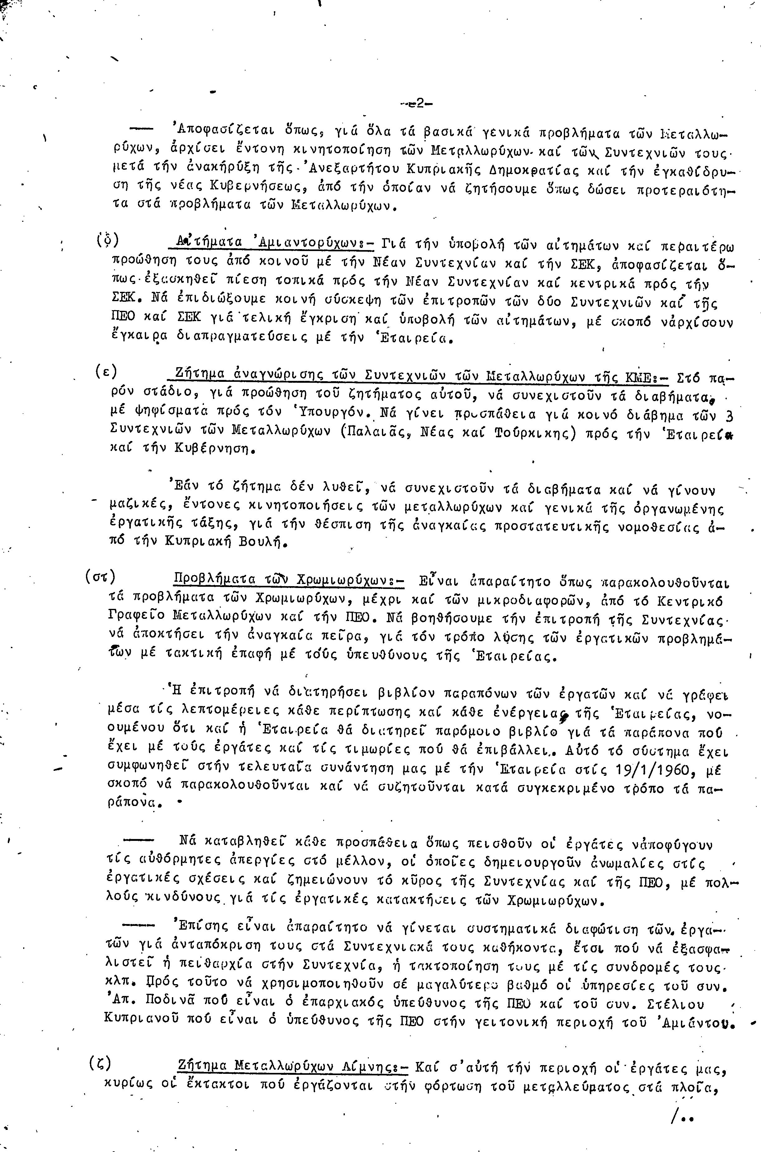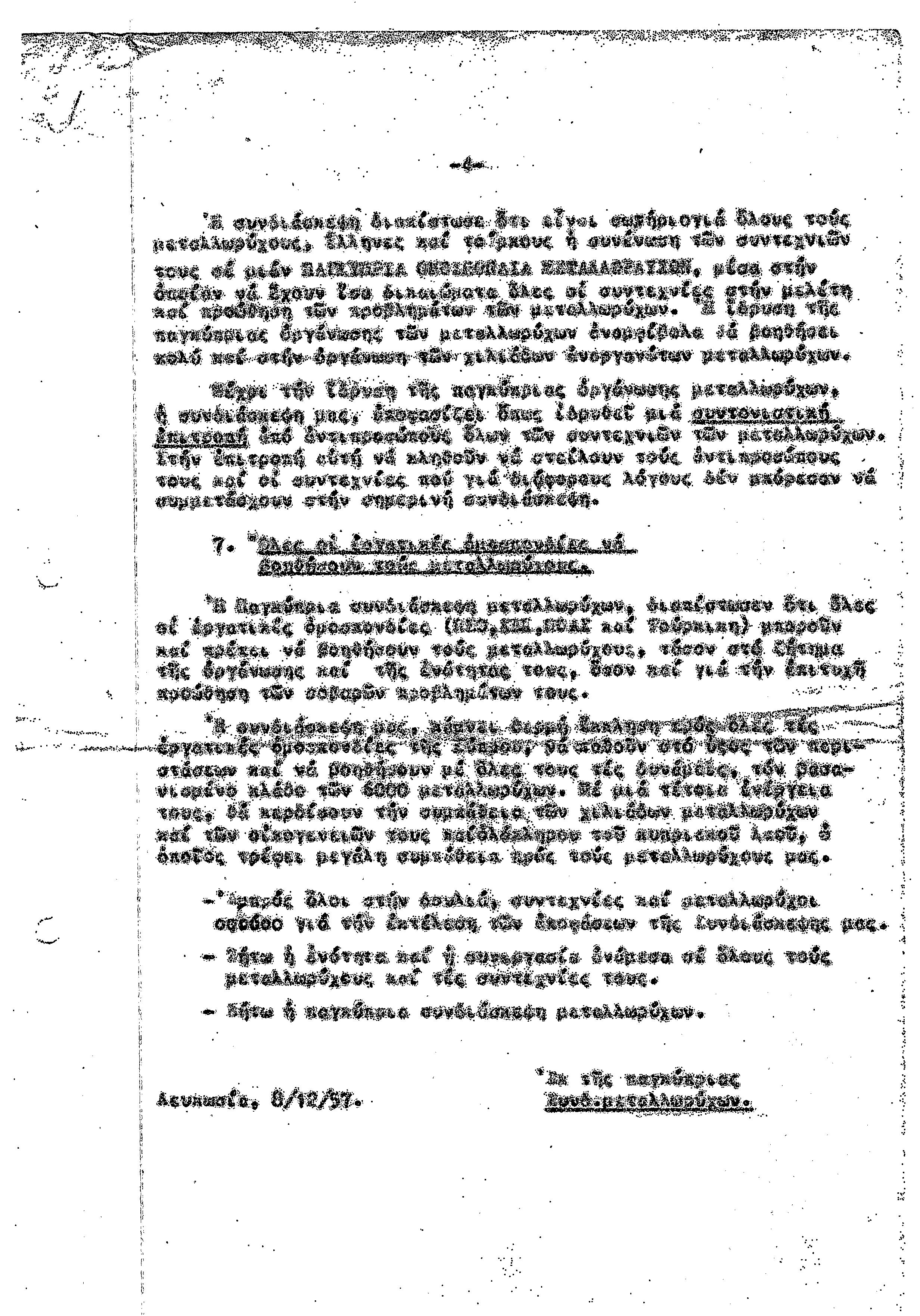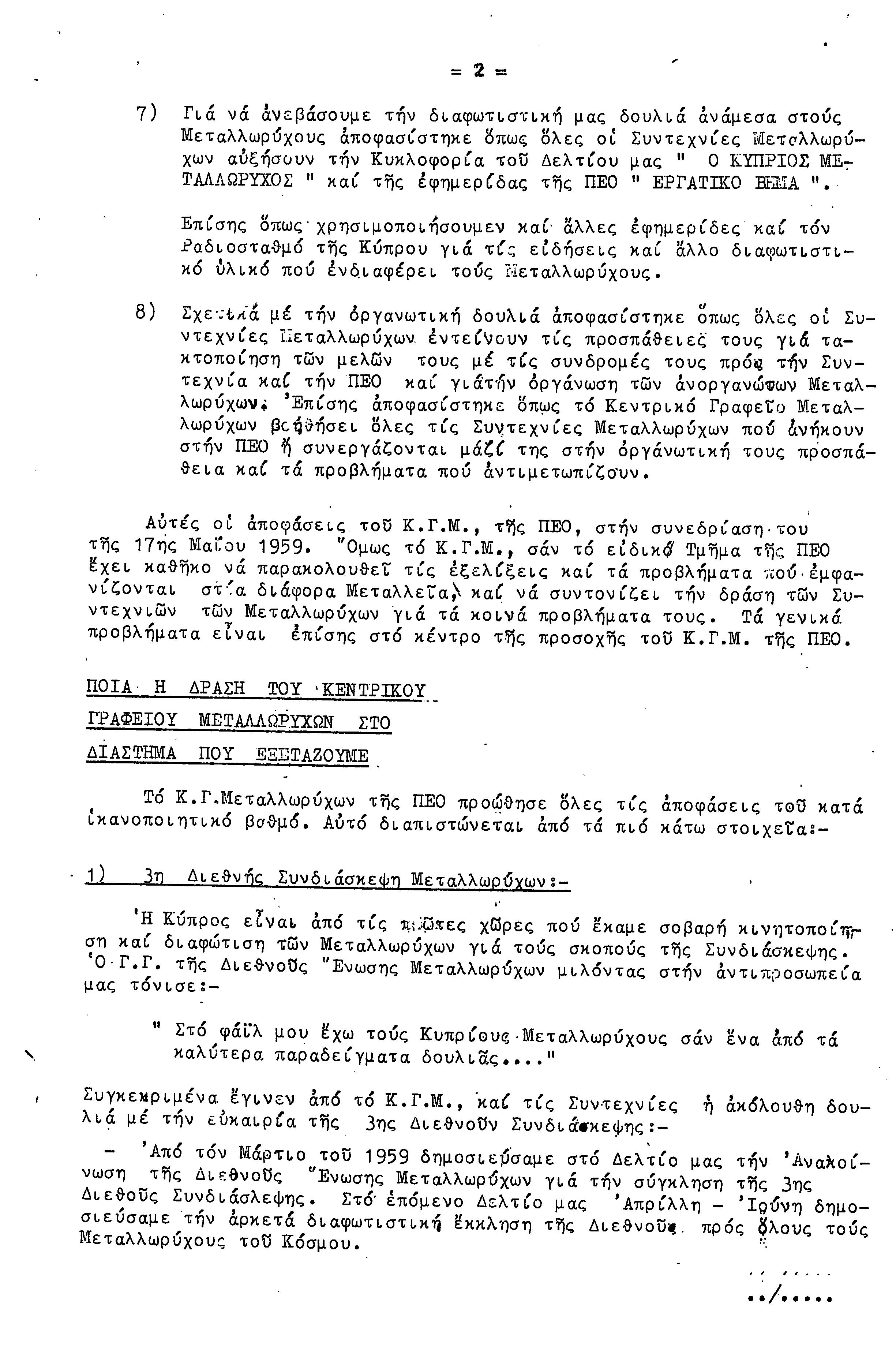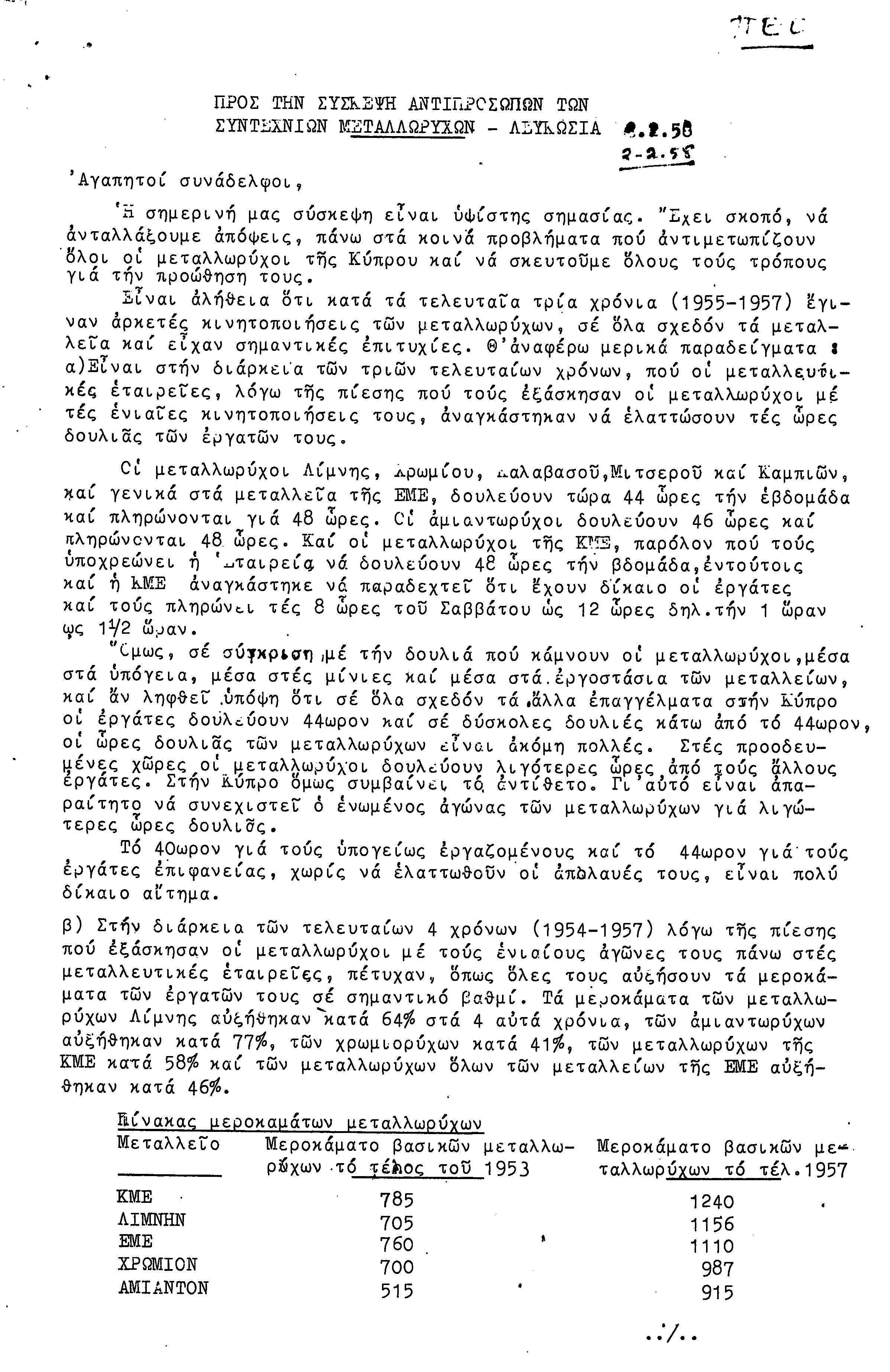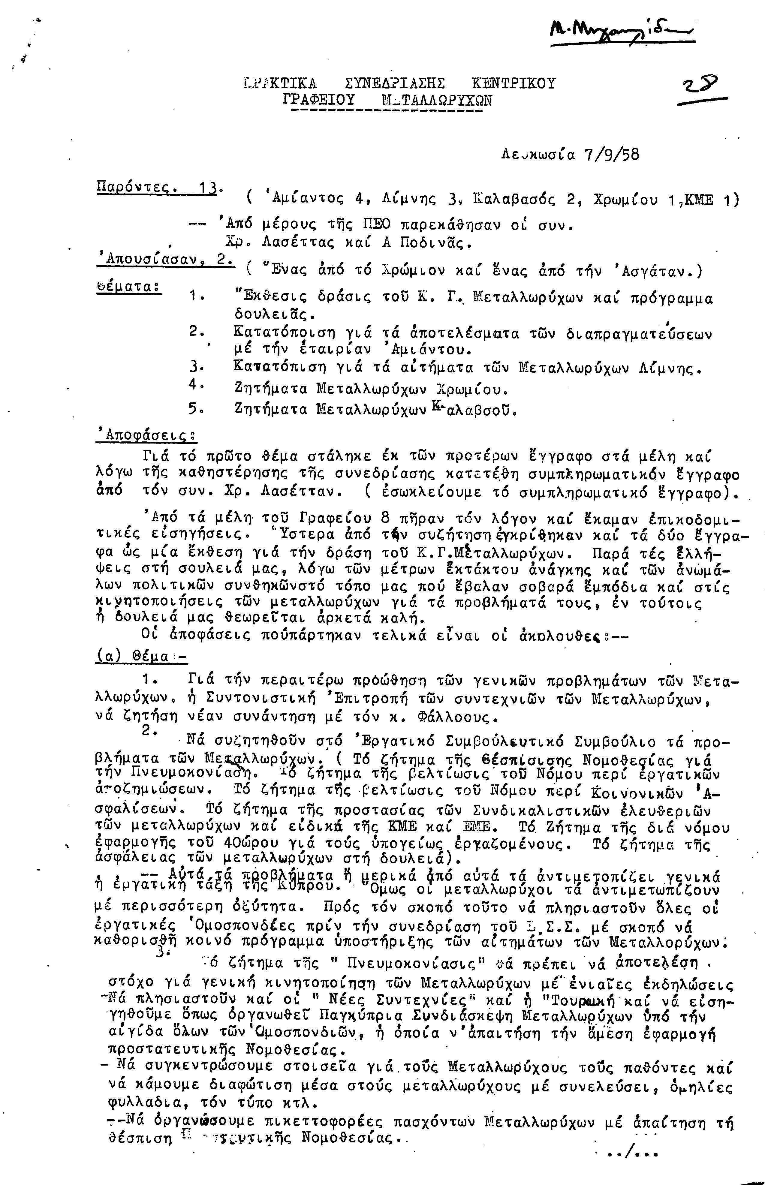 ΚΕΝΤΡΙΚΟ ΟΡΓΑΝΩΤΙΚΟ ΓΡΑΦΕΙΟ ΜΕΤΑΛΛΩΡΥΧΩΝ 1957-1960
