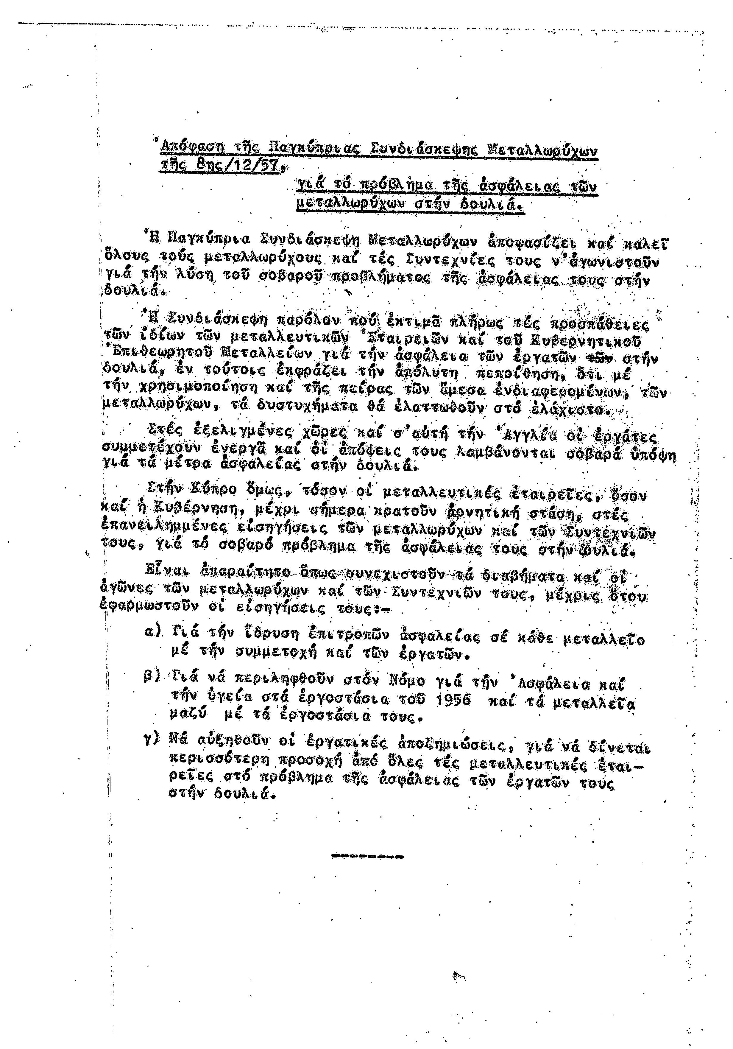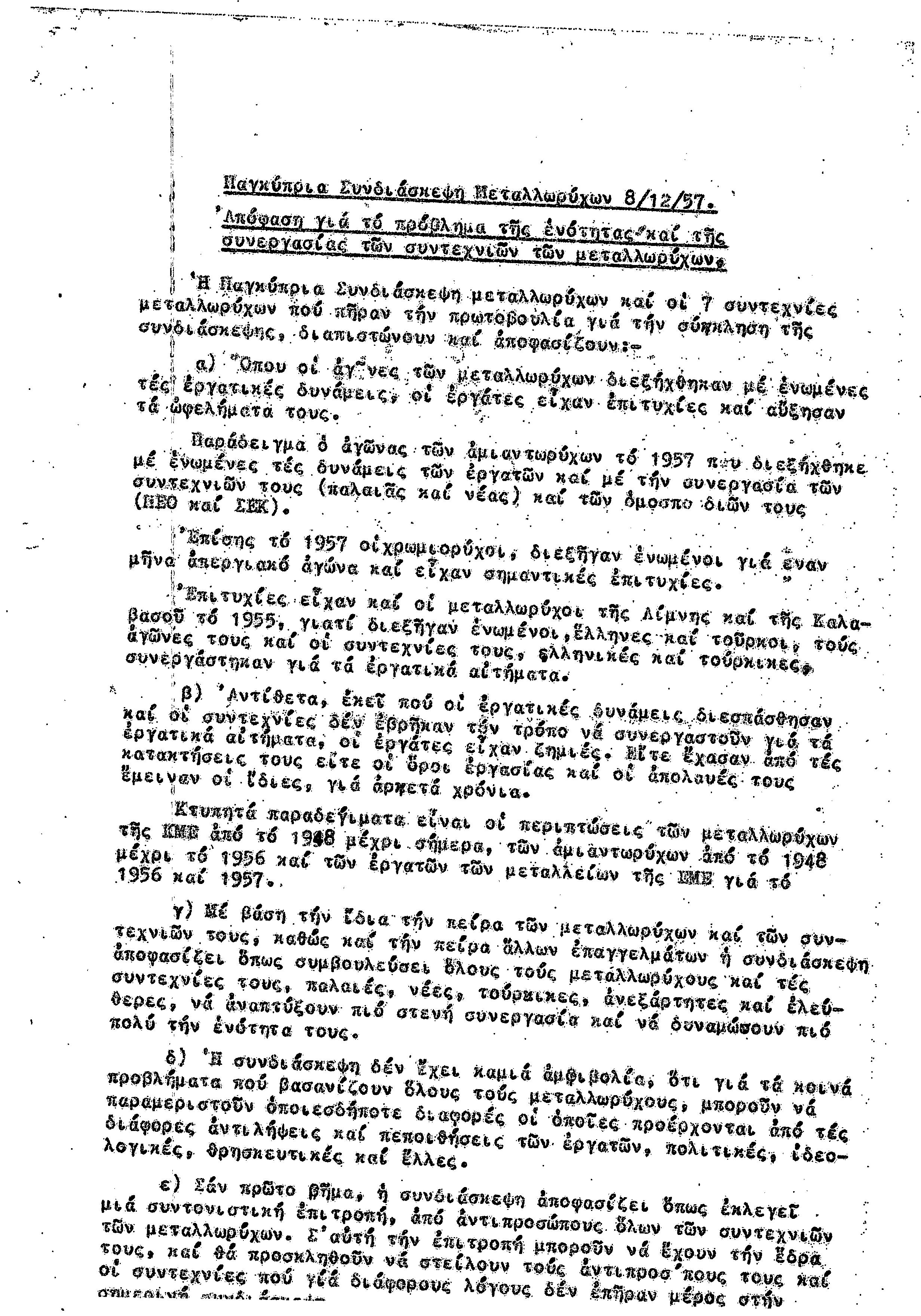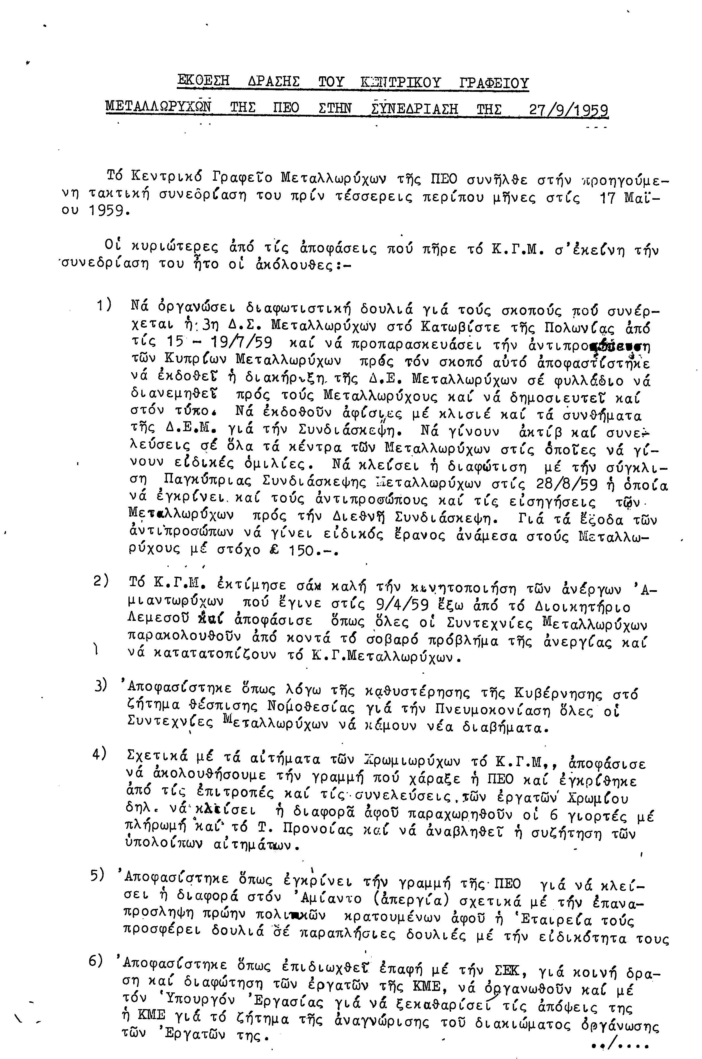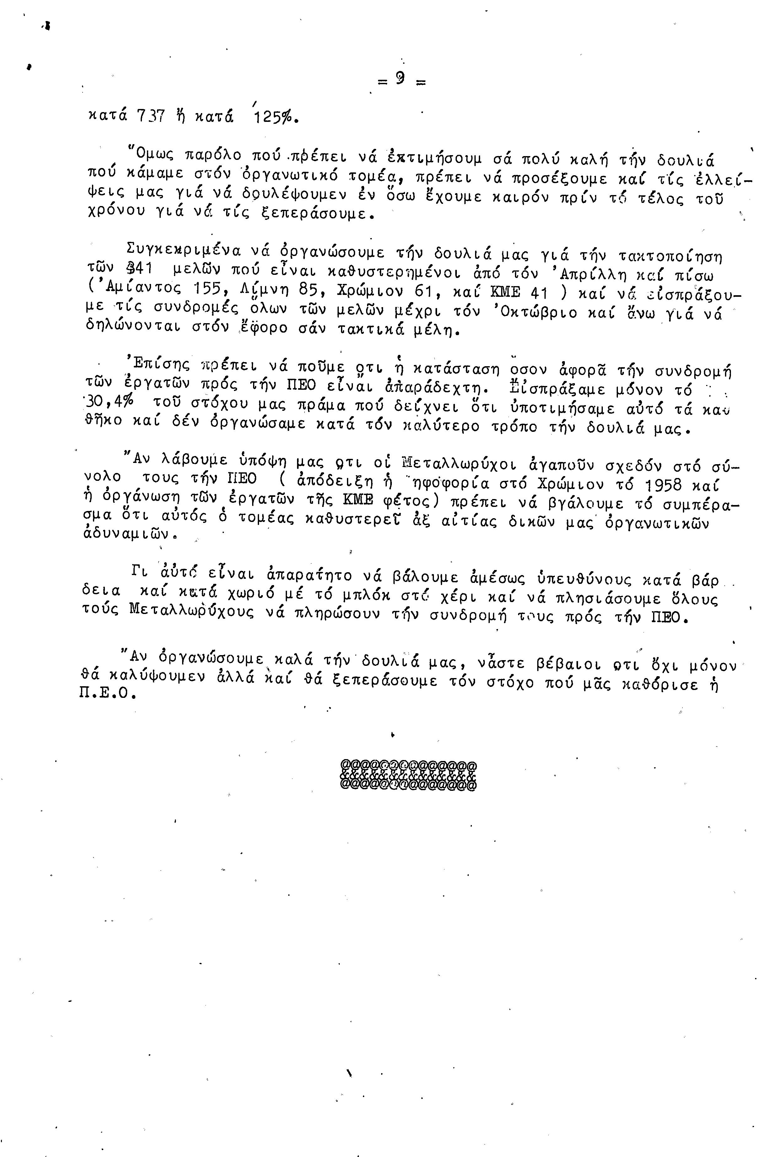ΚΕΝΤΡΙΚΟ ΟΡΓΑΝΩΤΙΚΟ ΓΡΑΦΕΙΟ ΜΕΤΑΛΛΩΡΥΧΩΝ 1957-1960