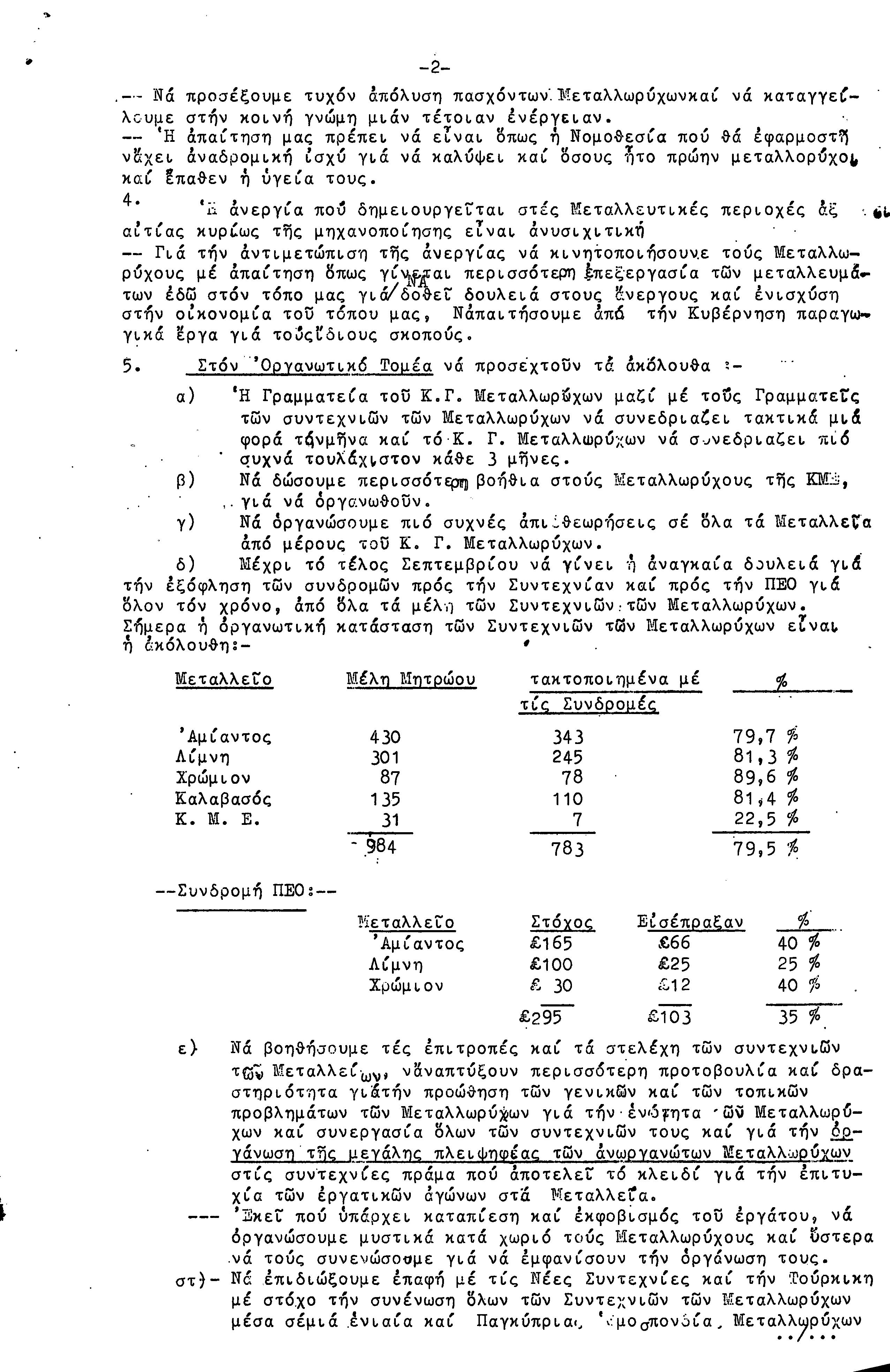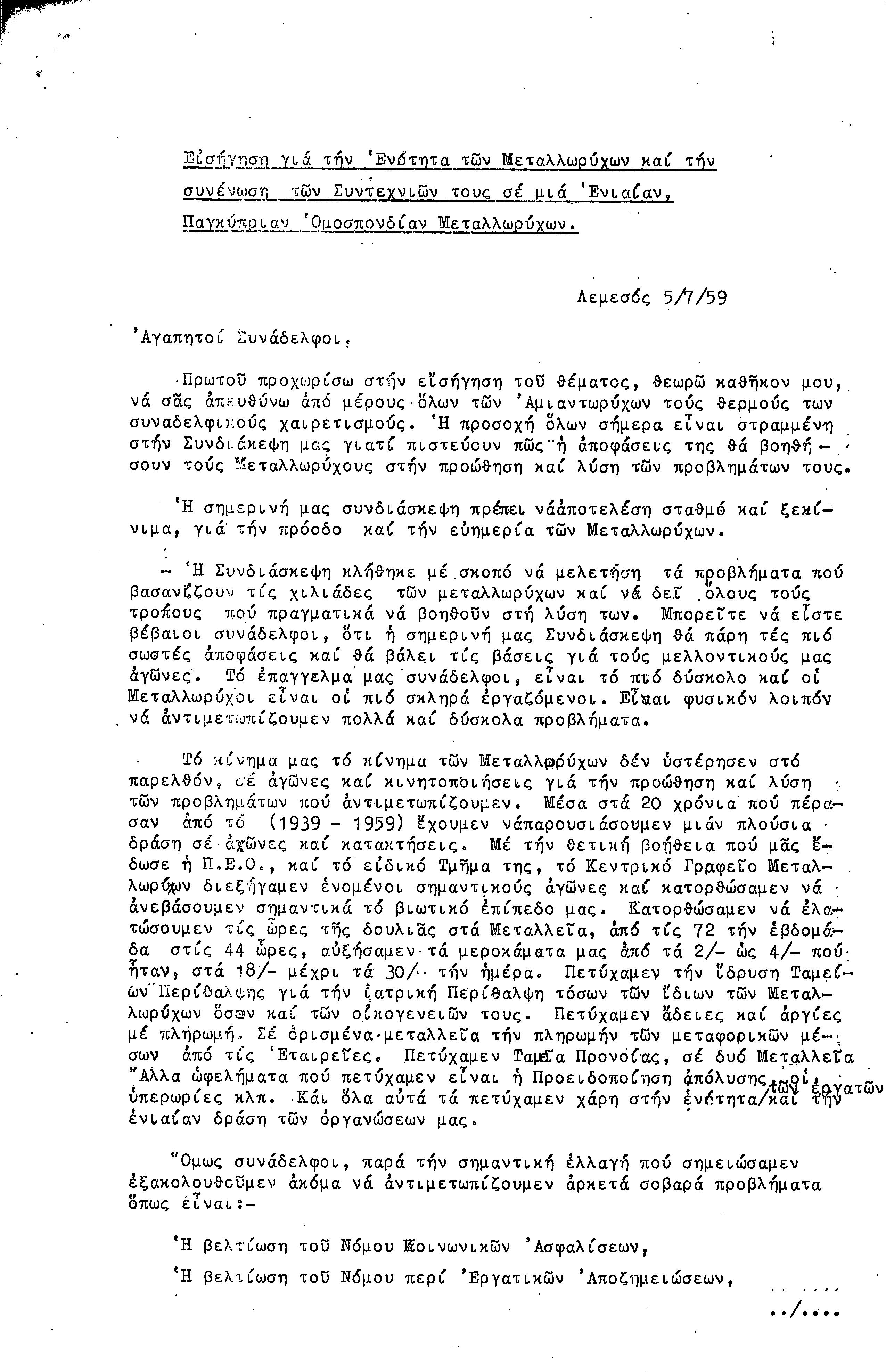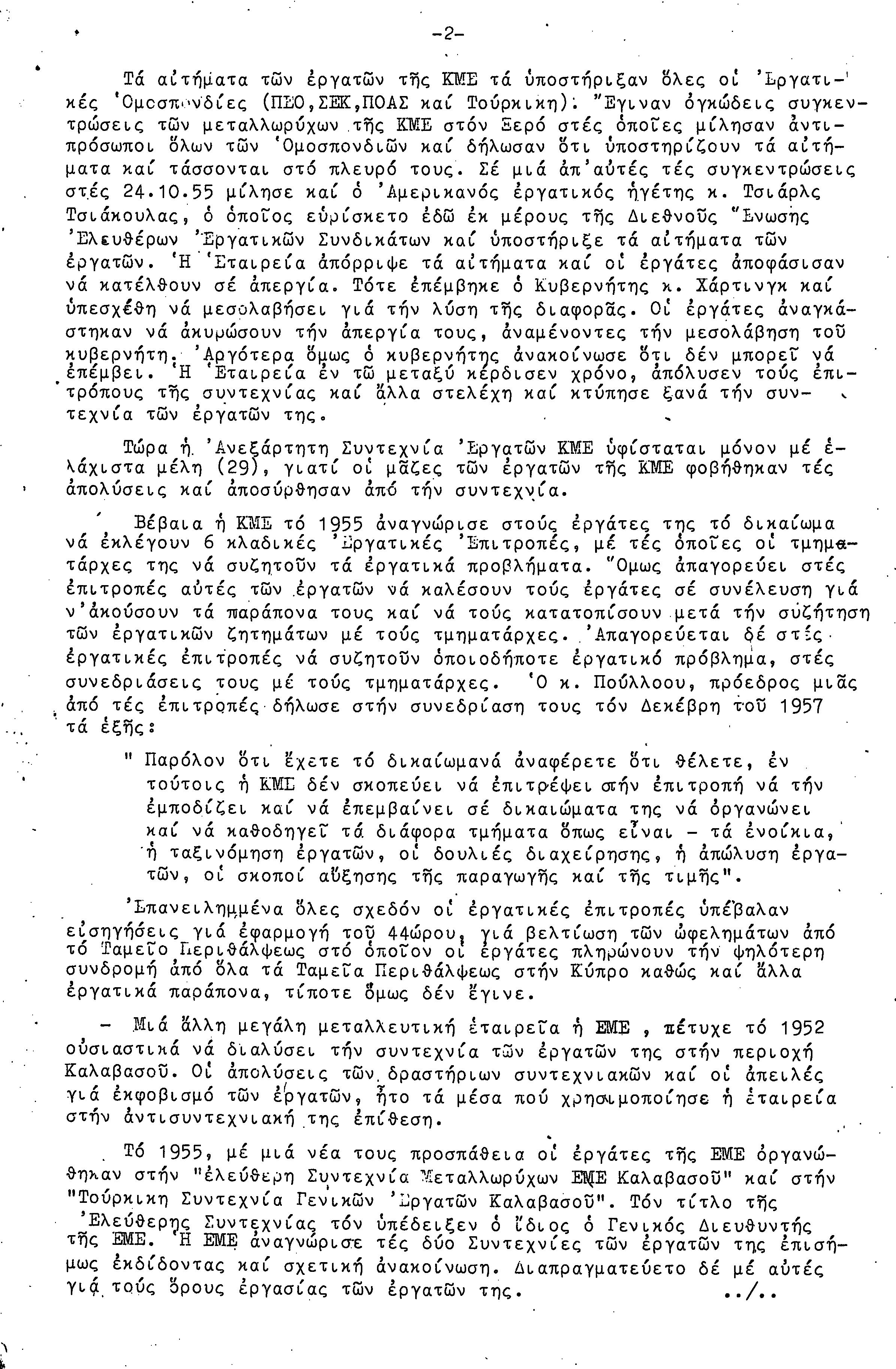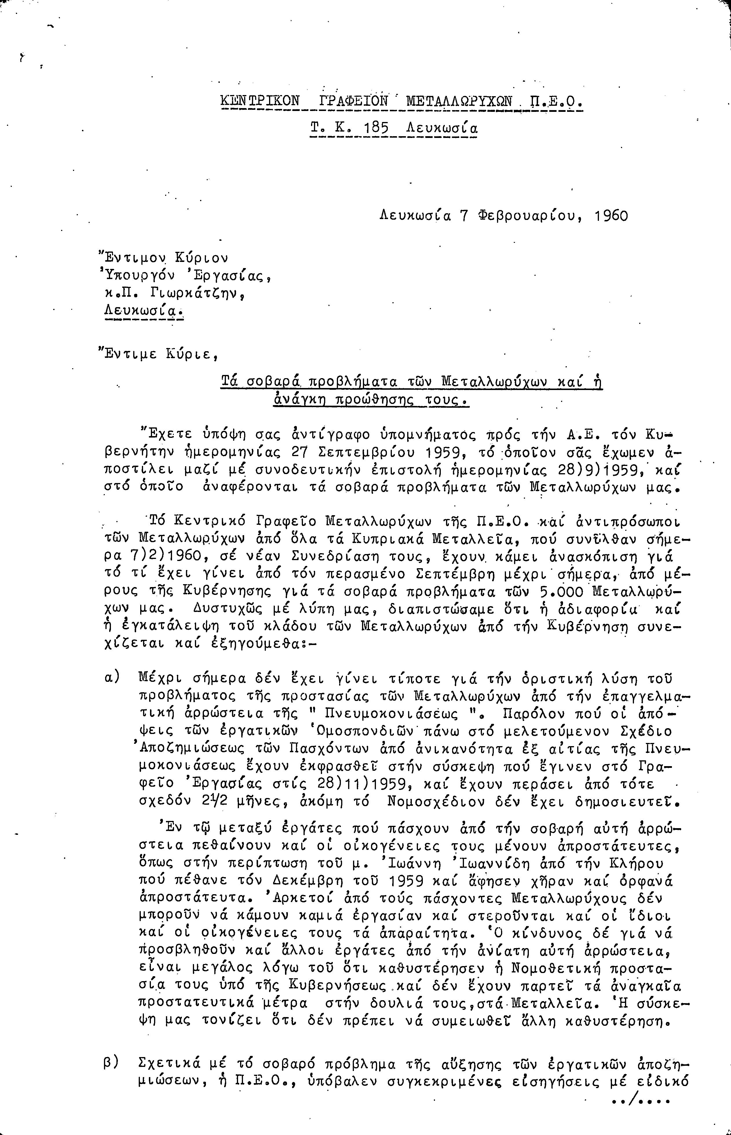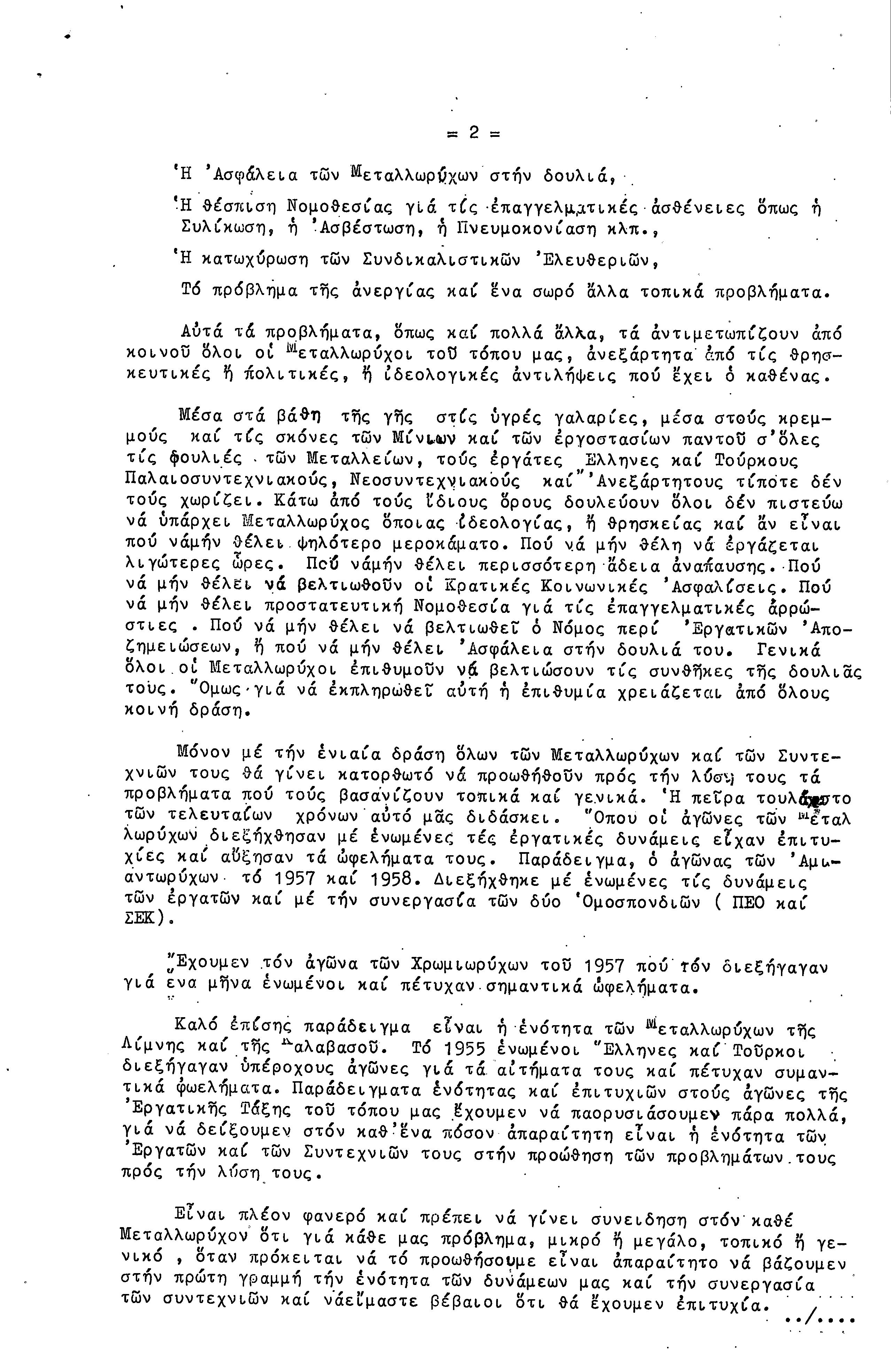 ΚΕΝΤΡΙΚΟ ΟΡΓΑΝΩΤΙΚΟ ΓΡΑΦΕΙΟ ΜΕΤΑΛΛΩΡΥΧΩΝ 1957-1960