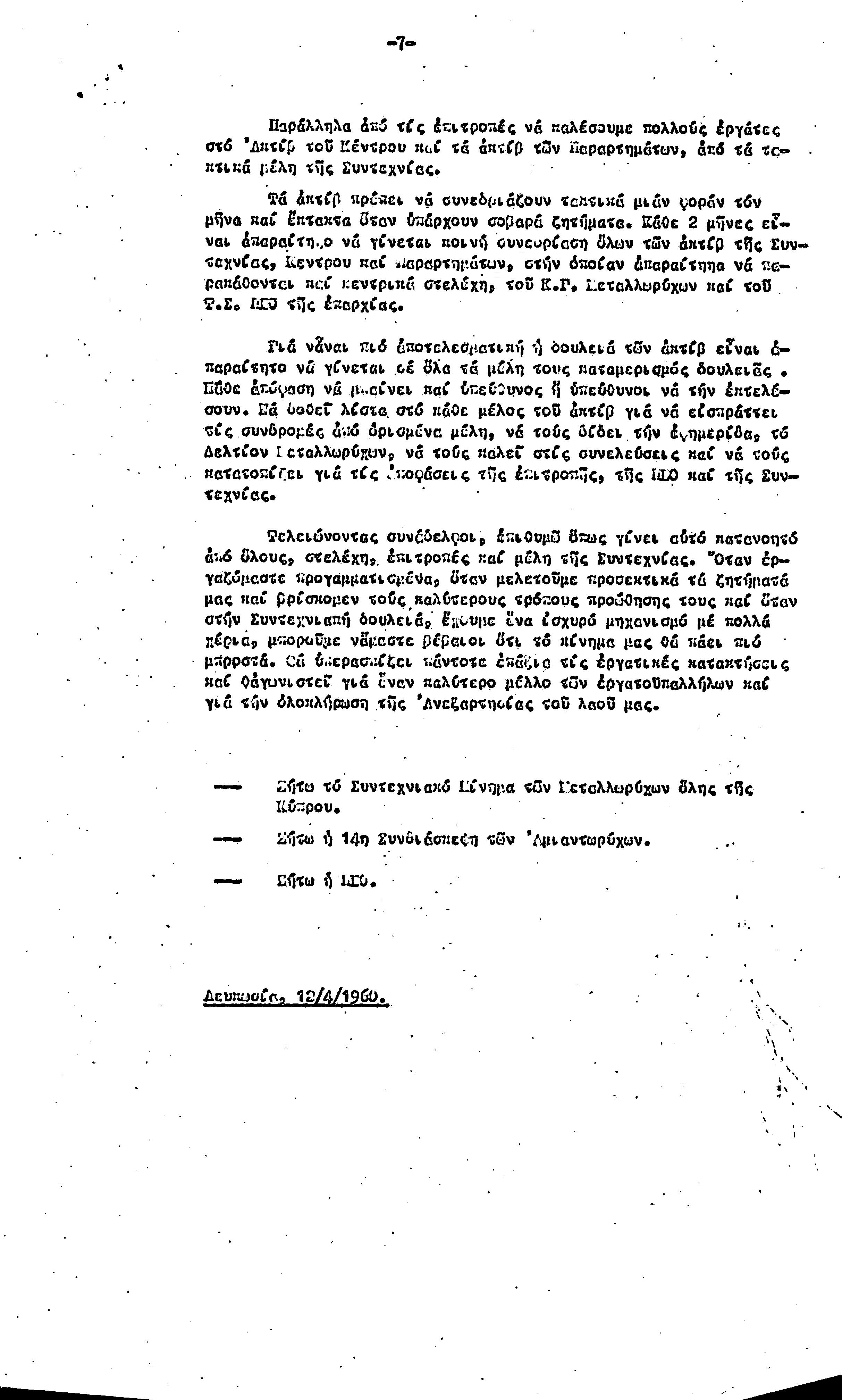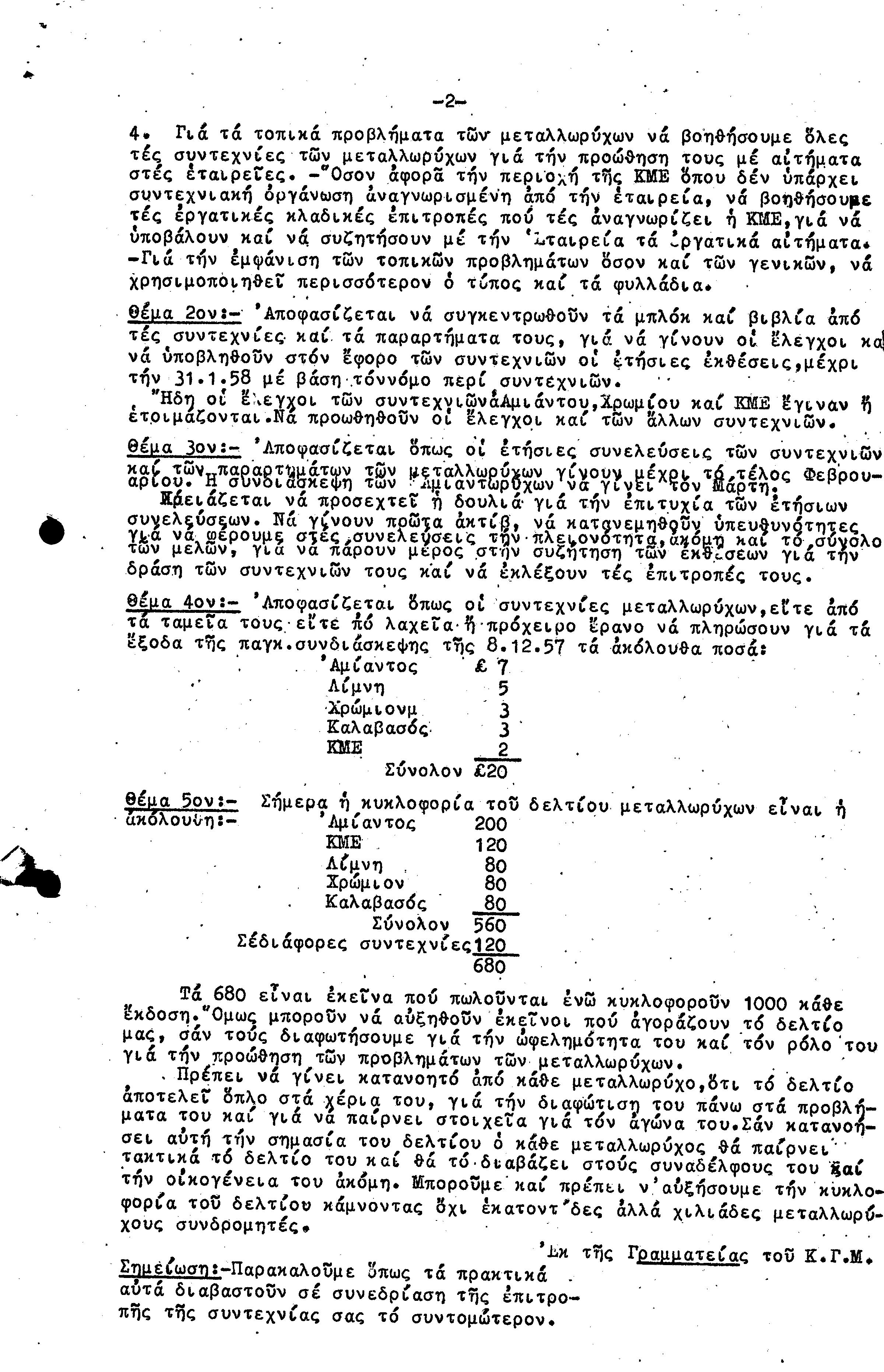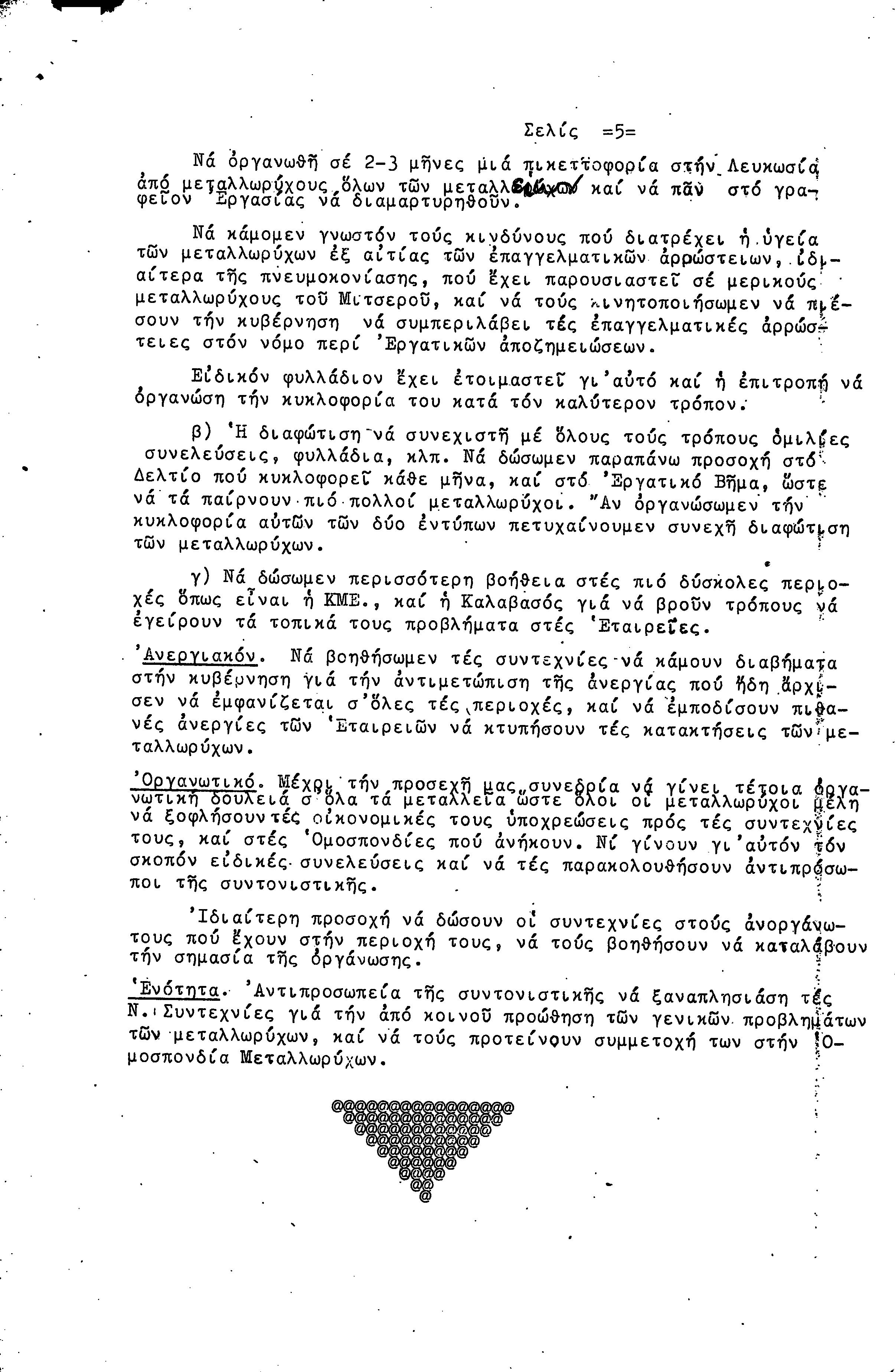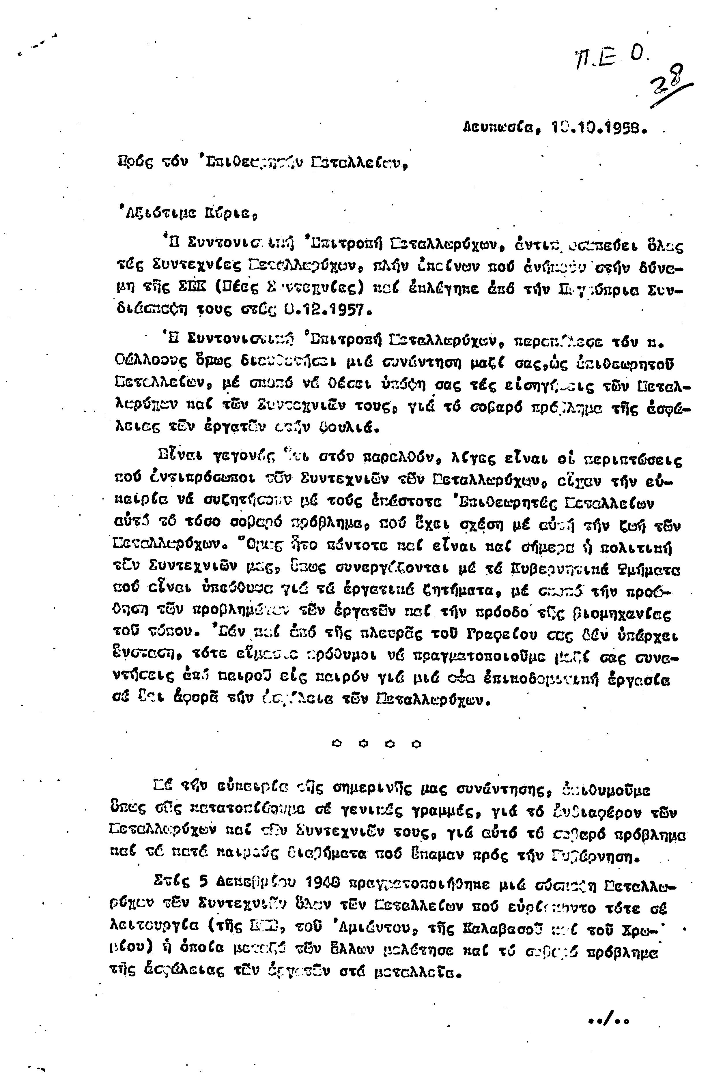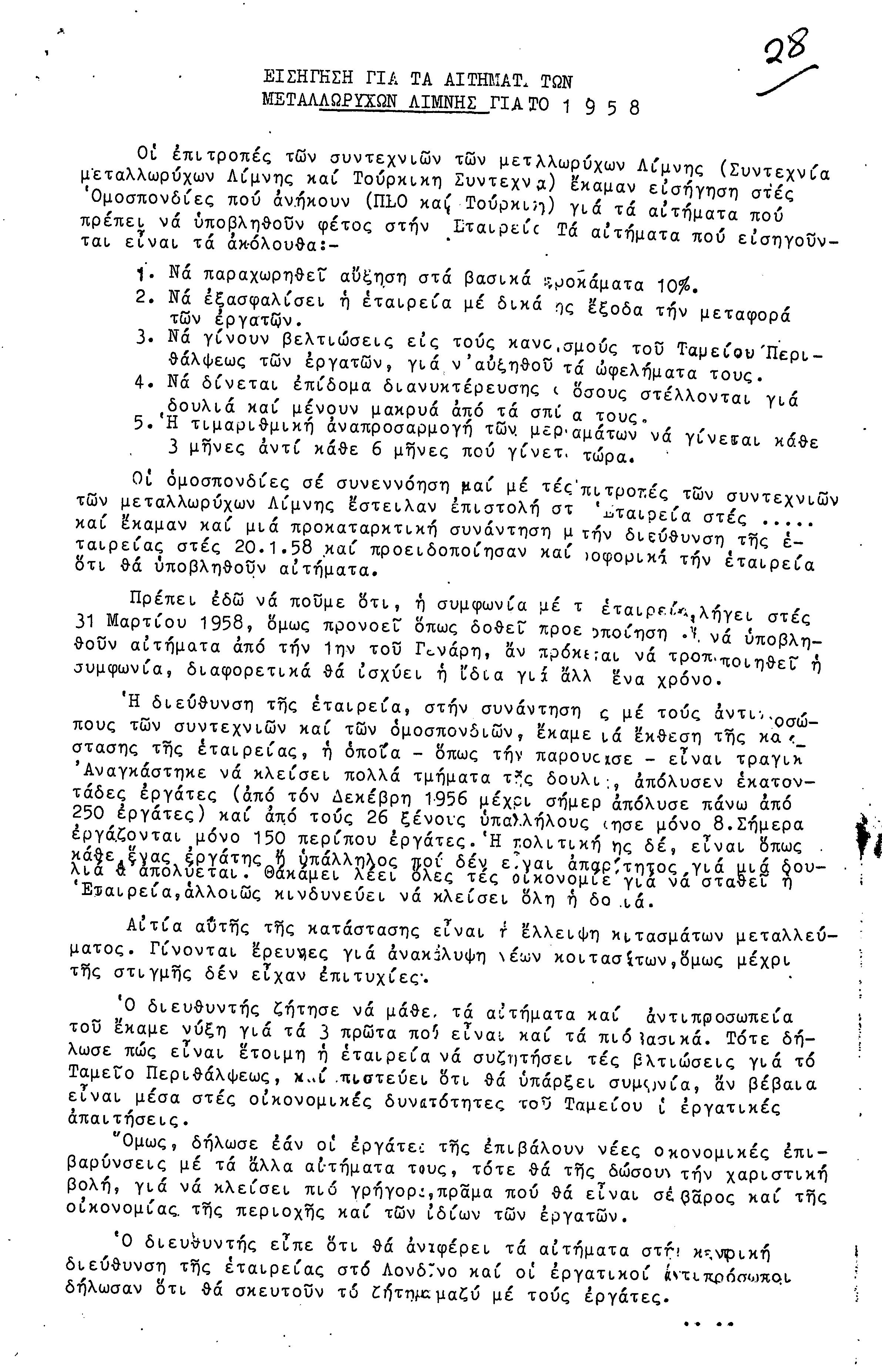 ΚΕΝΤΡΙΚΟ ΟΡΓΑΝΩΤΙΚΟ ΓΡΑΦΕΙΟ ΜΕΤΑΛΛΩΡΥΧΩΝ 1957-1960