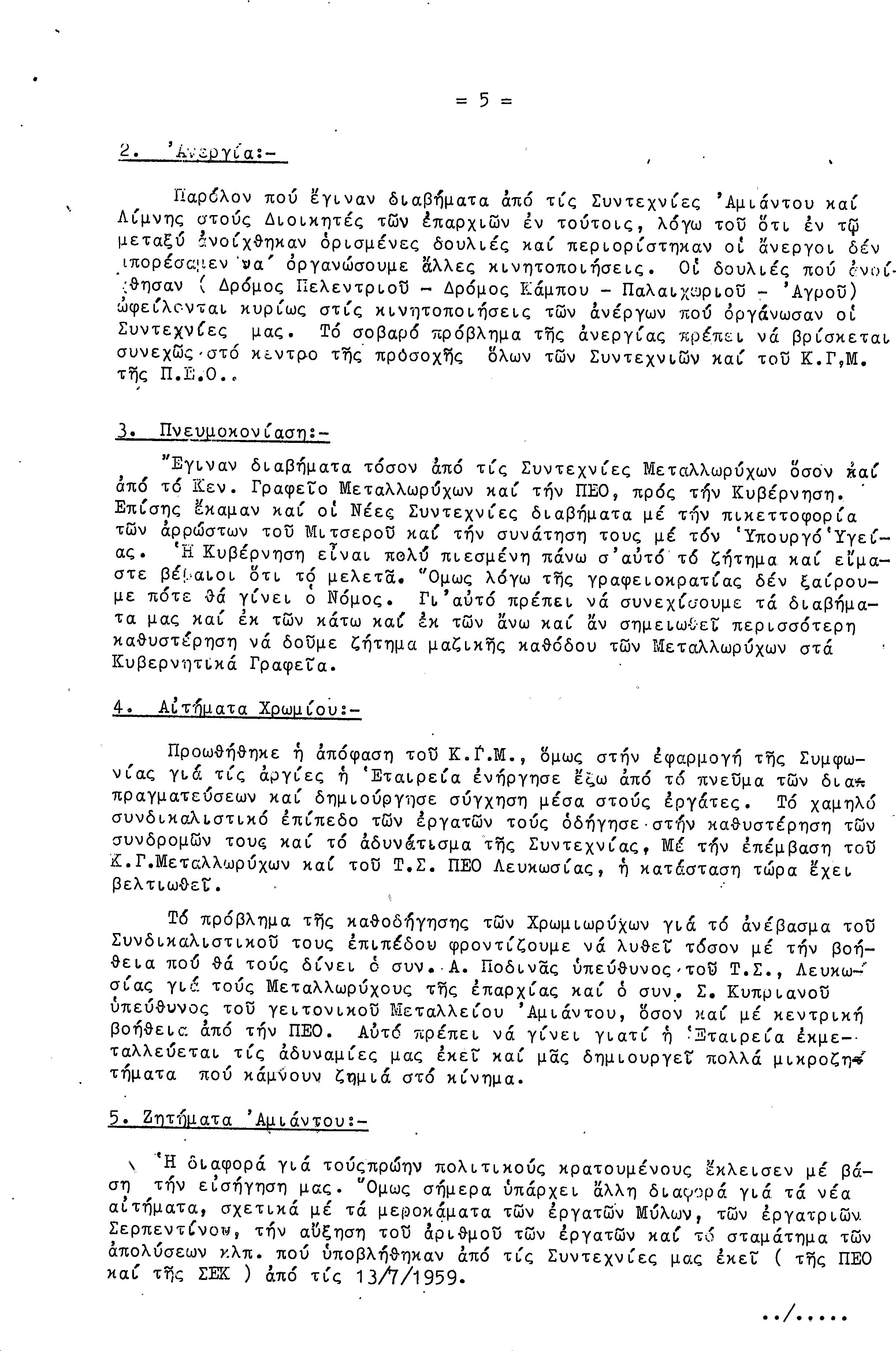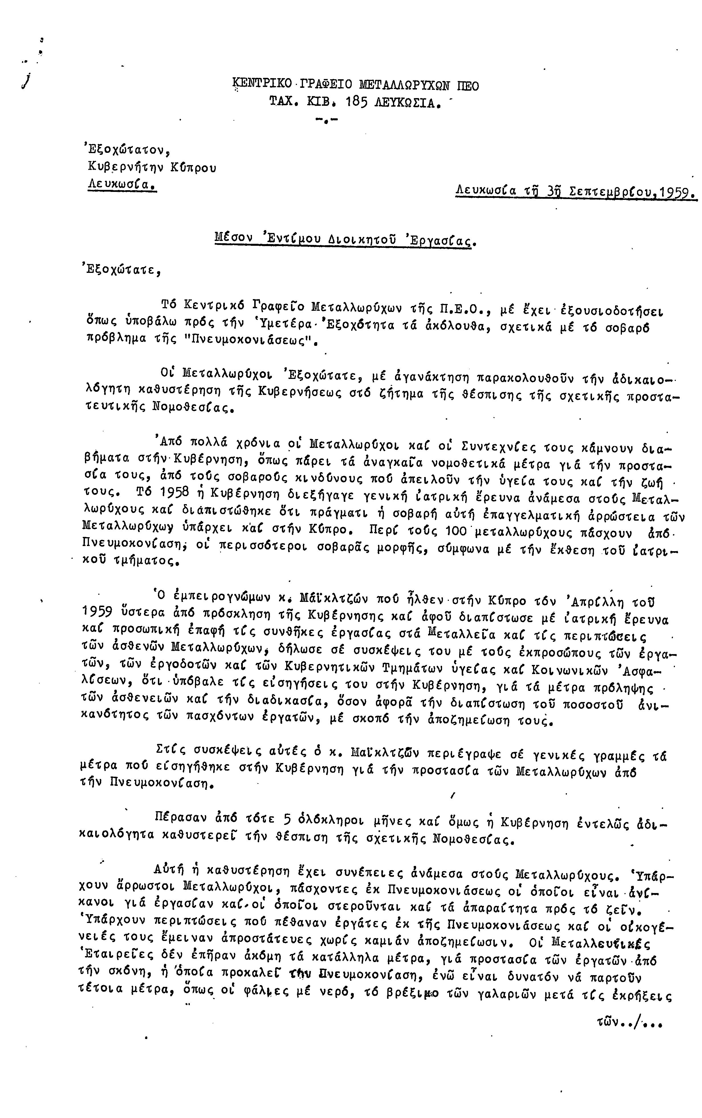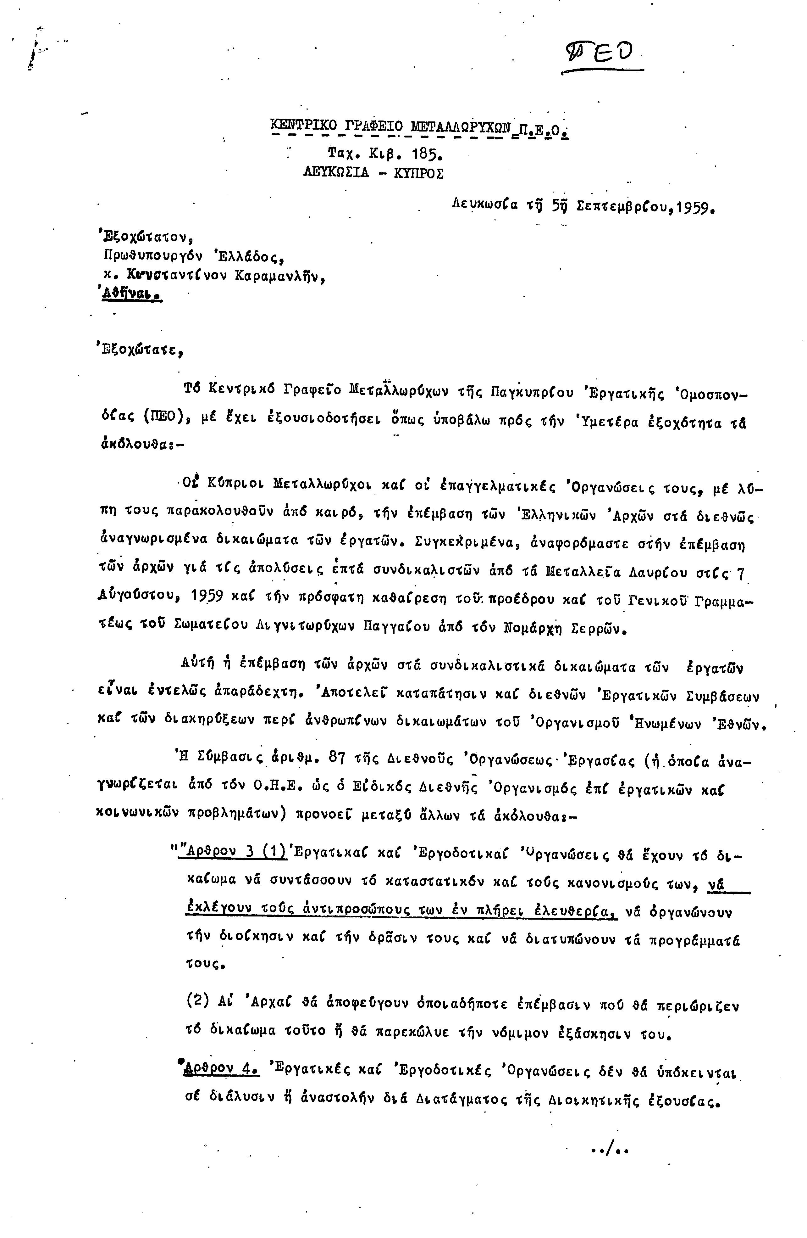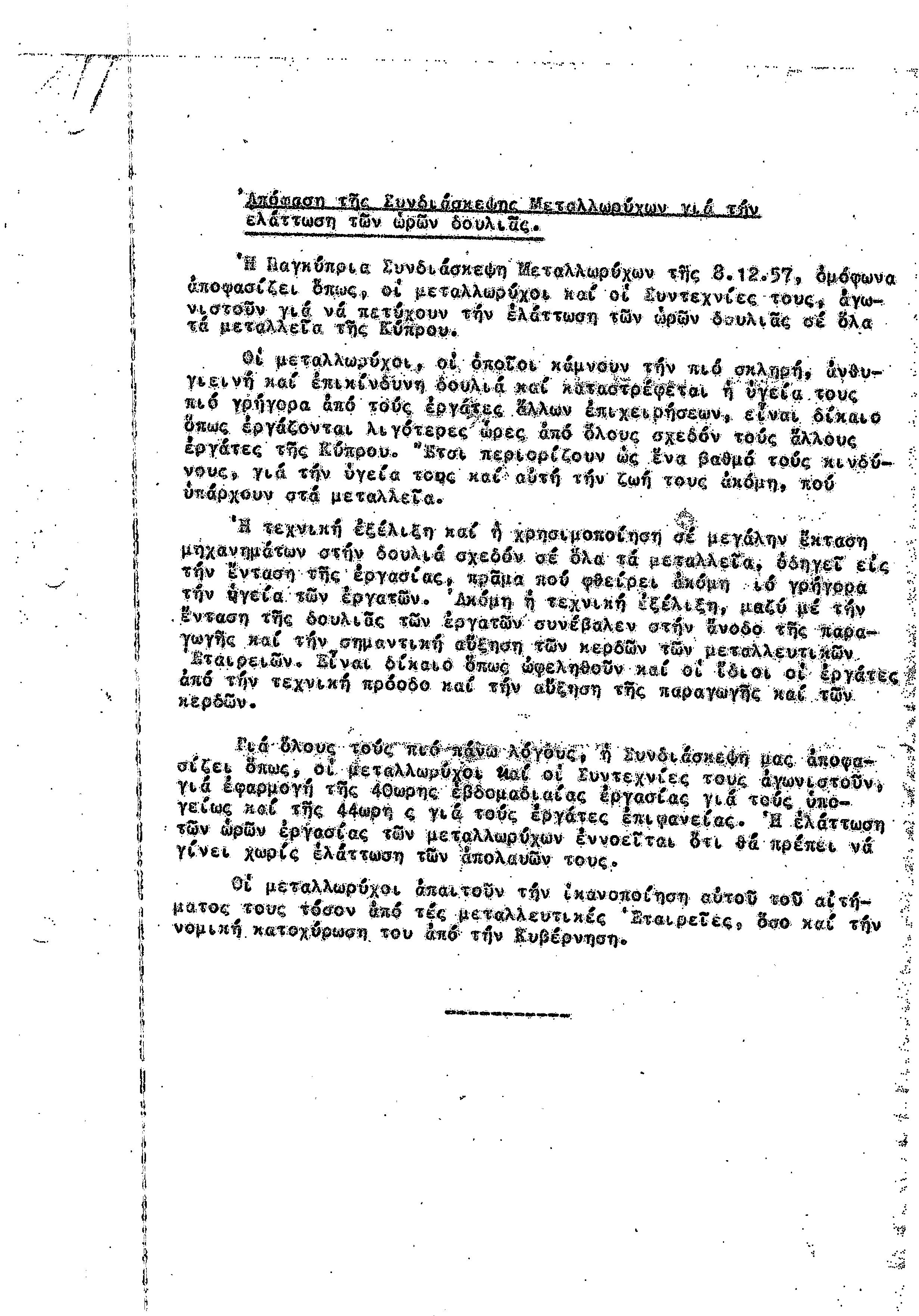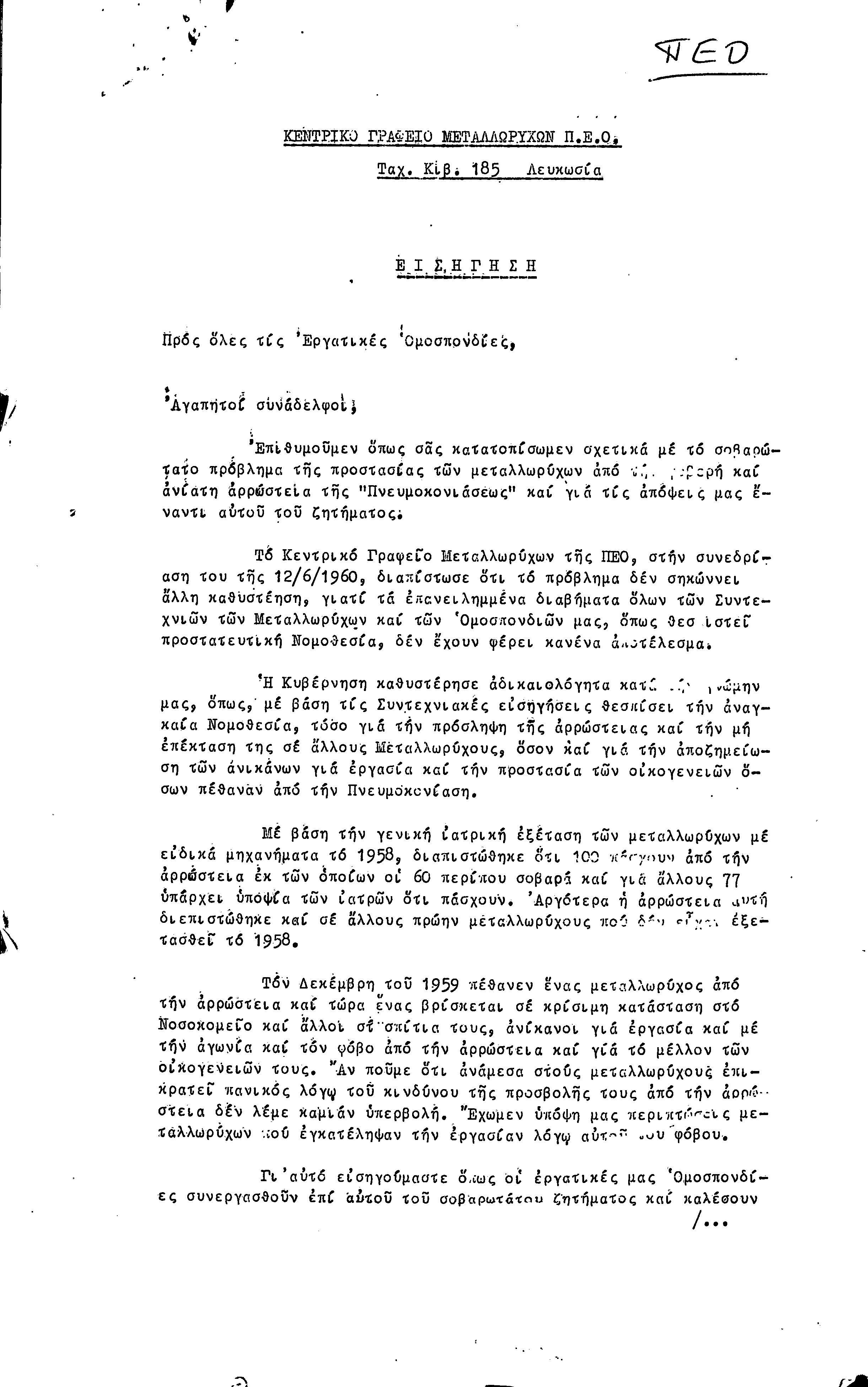 ΚΕΝΤΡΙΚΟ ΟΡΓΑΝΩΤΙΚΟ ΓΡΑΦΕΙΟ ΜΕΤΑΛΛΩΡΥΧΩΝ 1957-1960