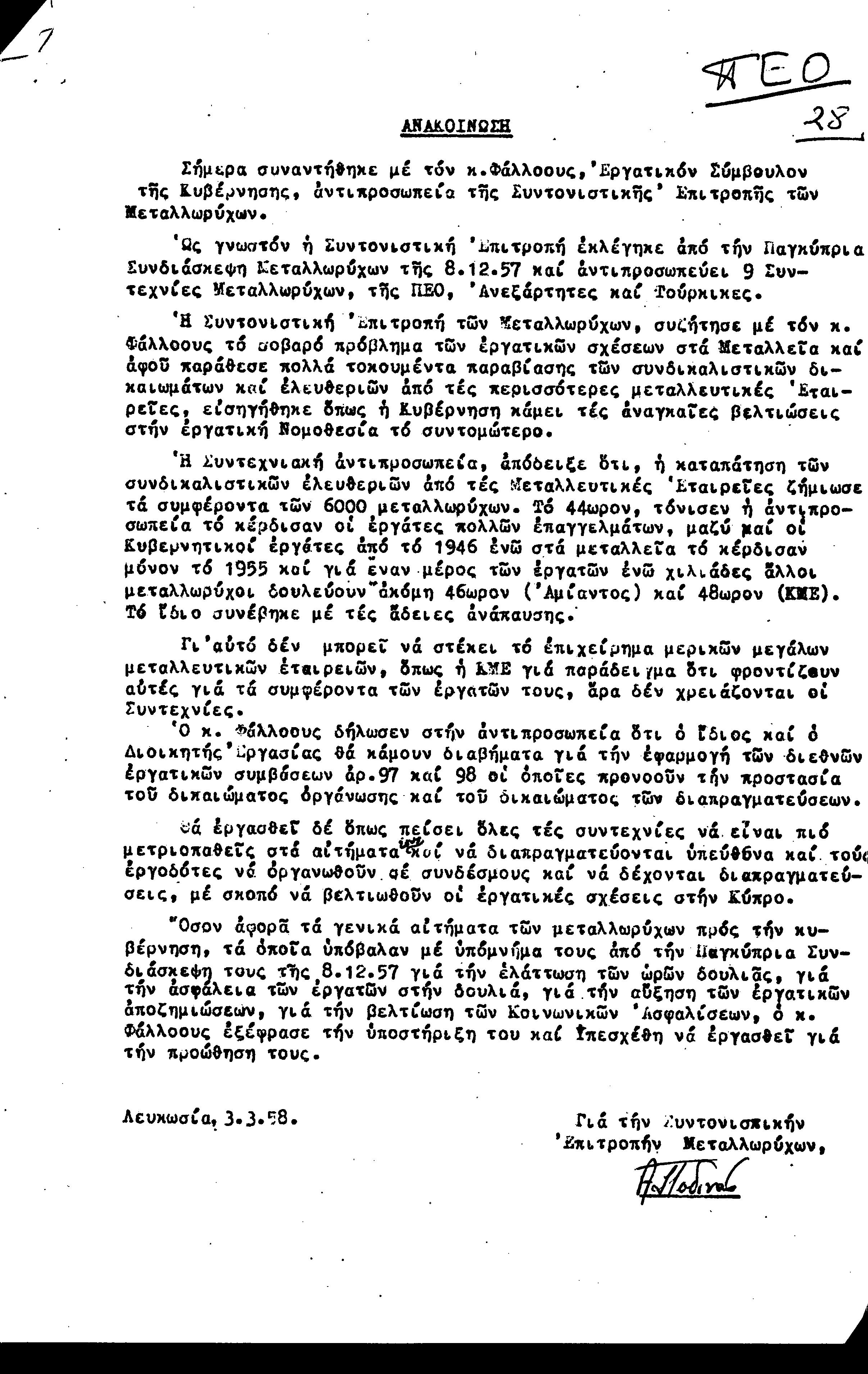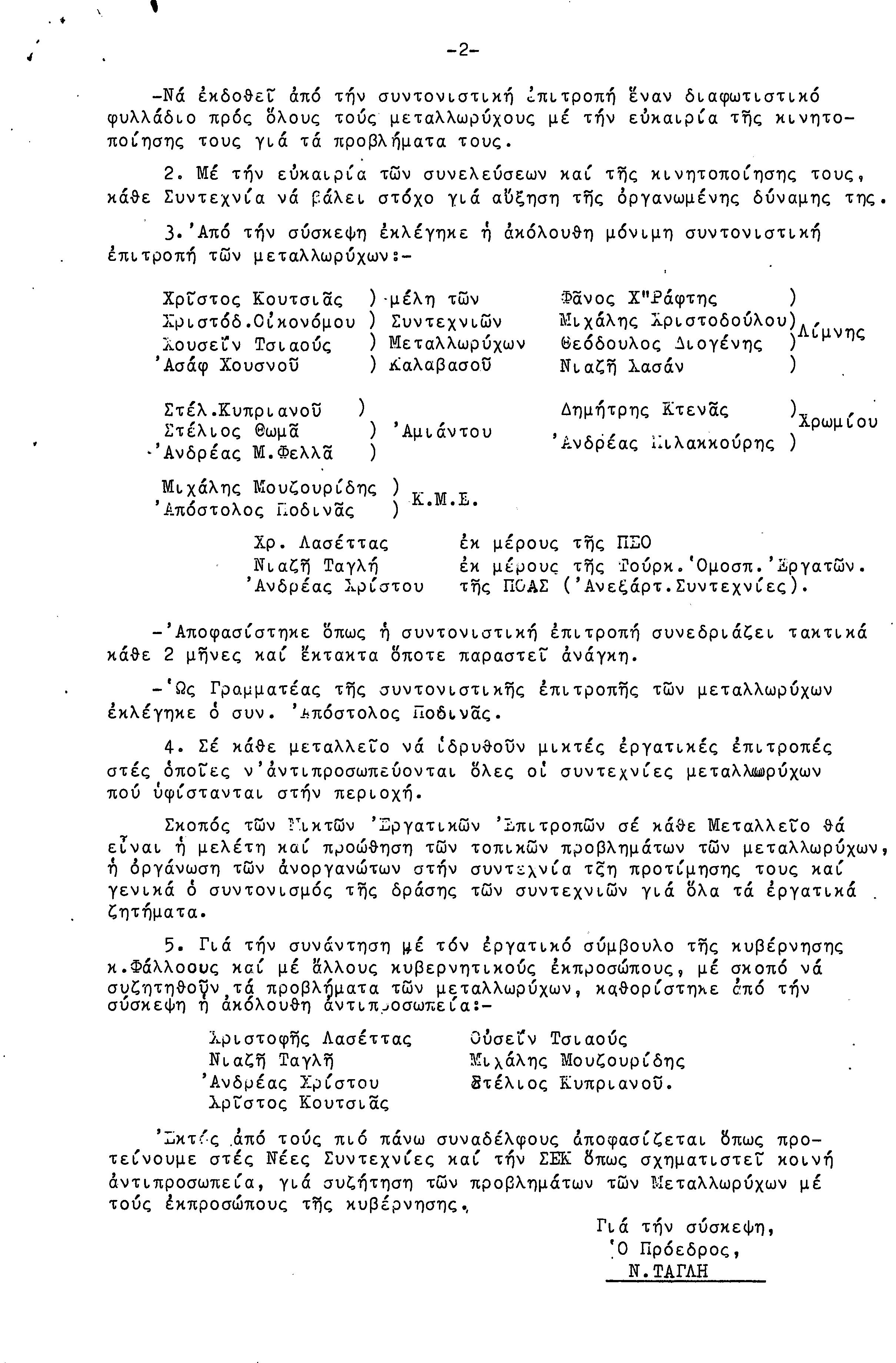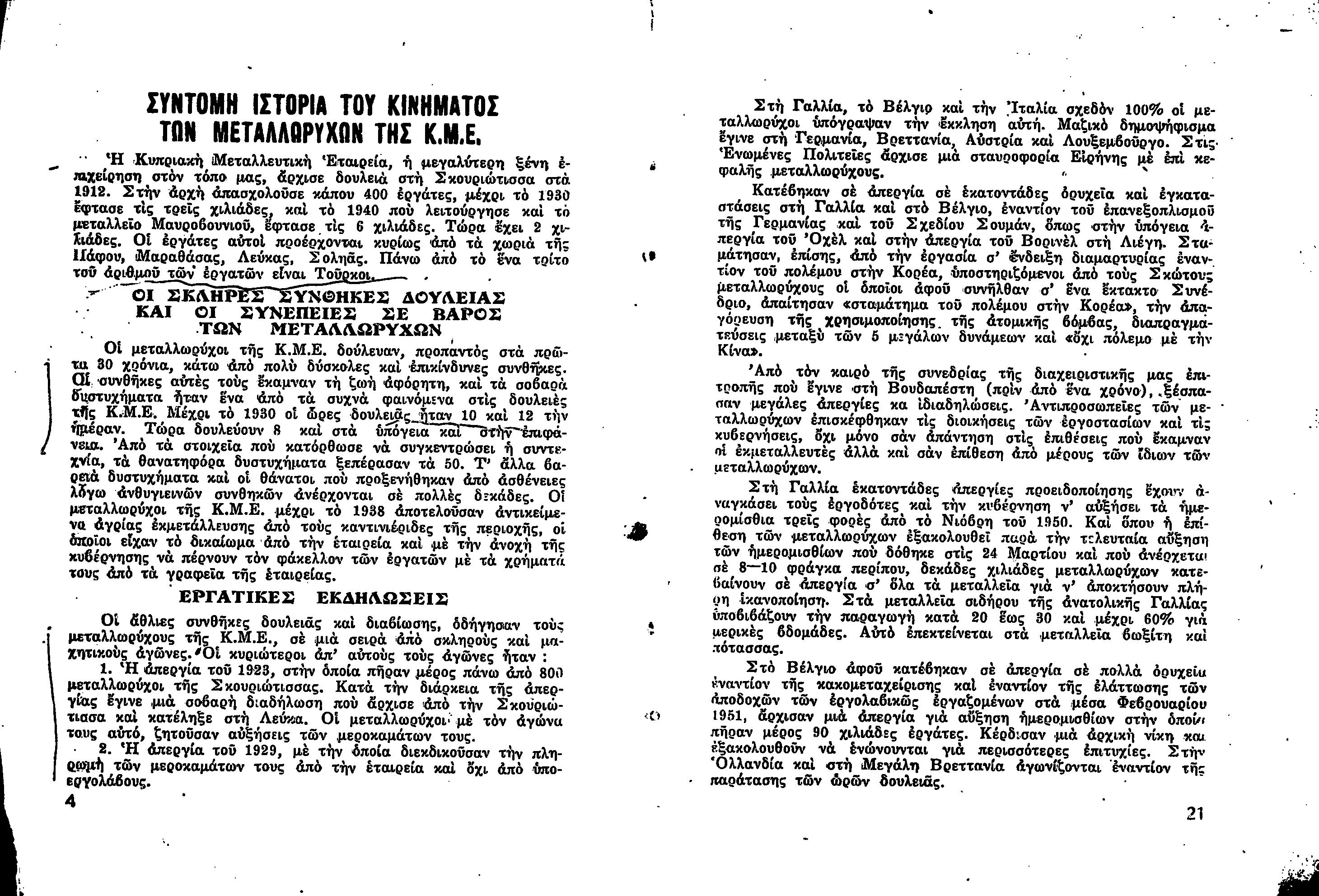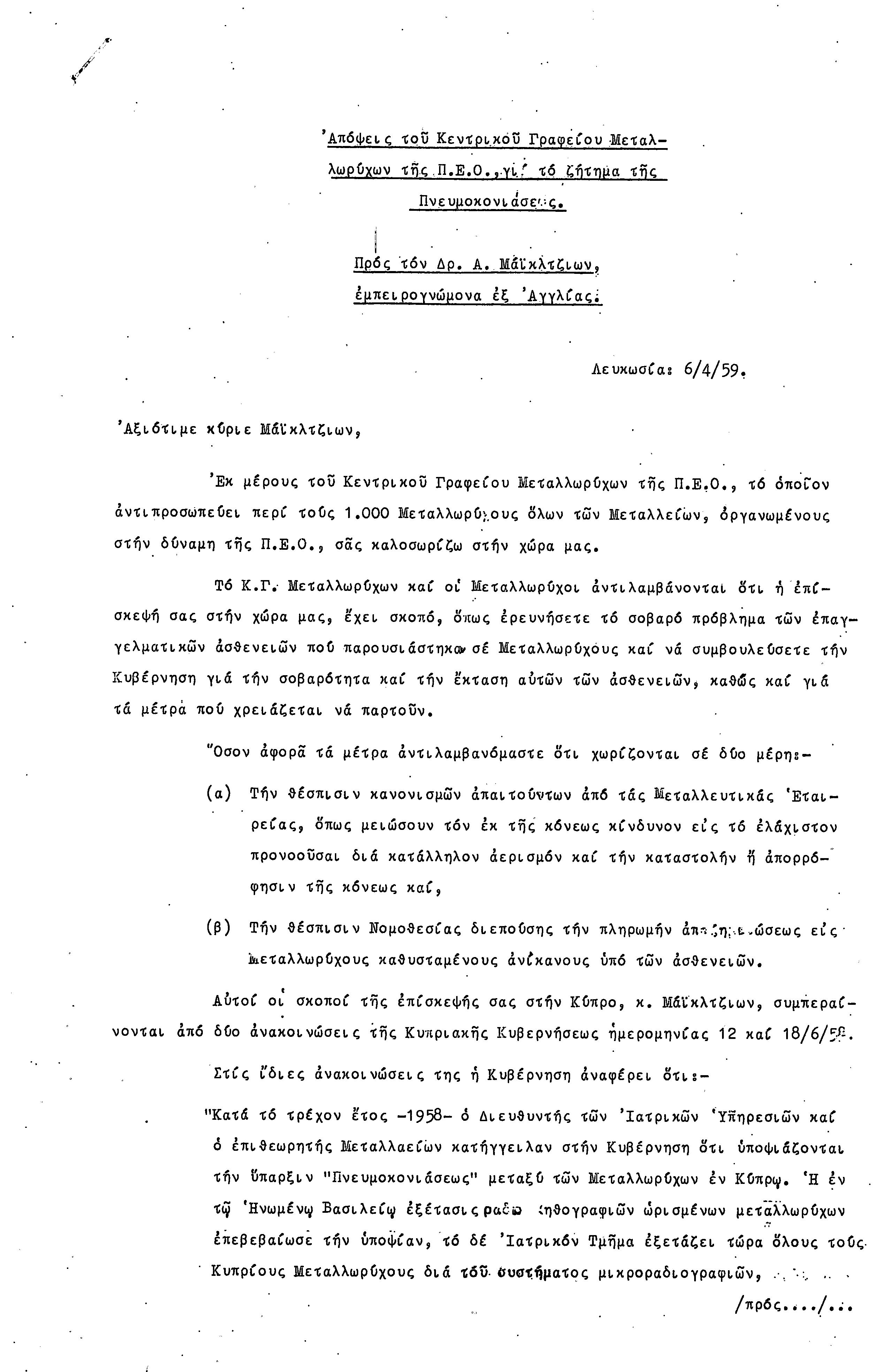 ΚΕΝΤΡΙΚΟ ΟΡΓΑΝΩΤΙΚΟ ΓΡΑΦΕΙΟ ΜΕΤΑΛΛΩΡΥΧΩΝ 1957-1960