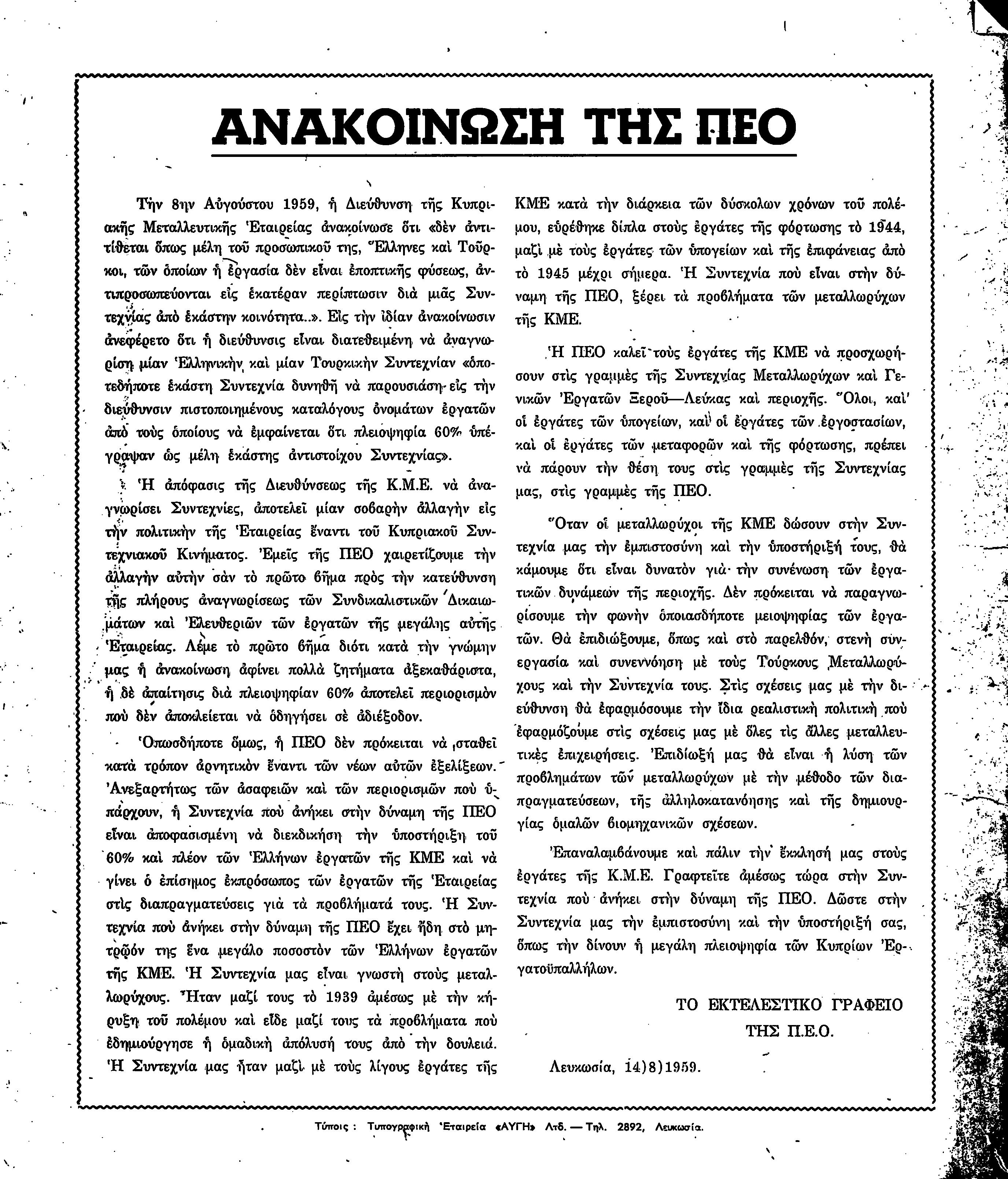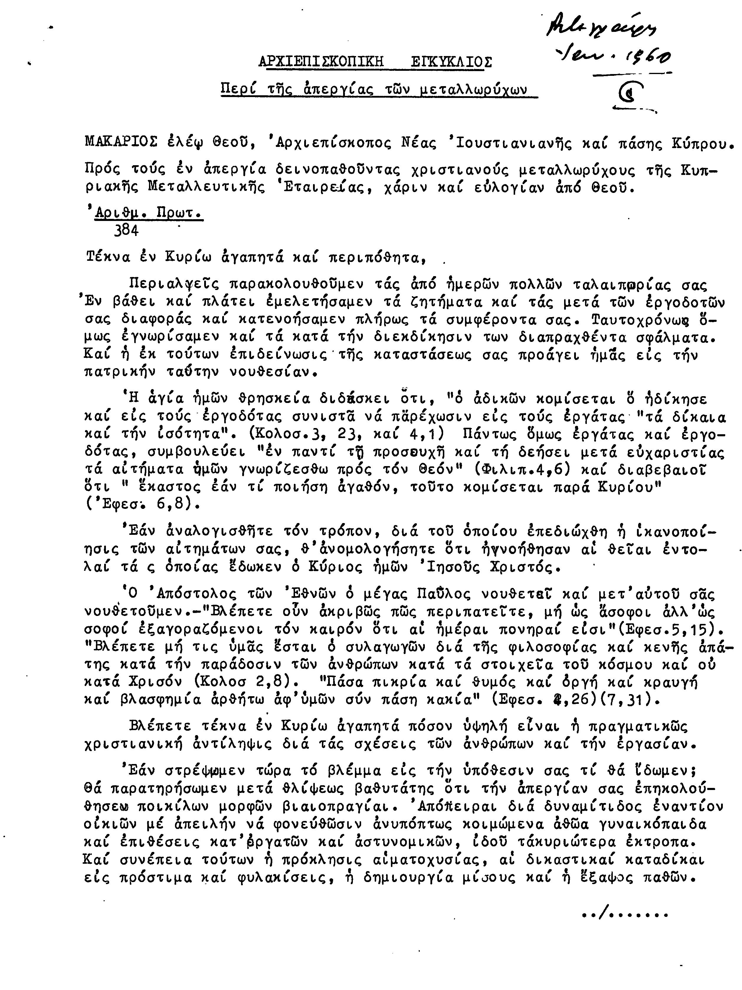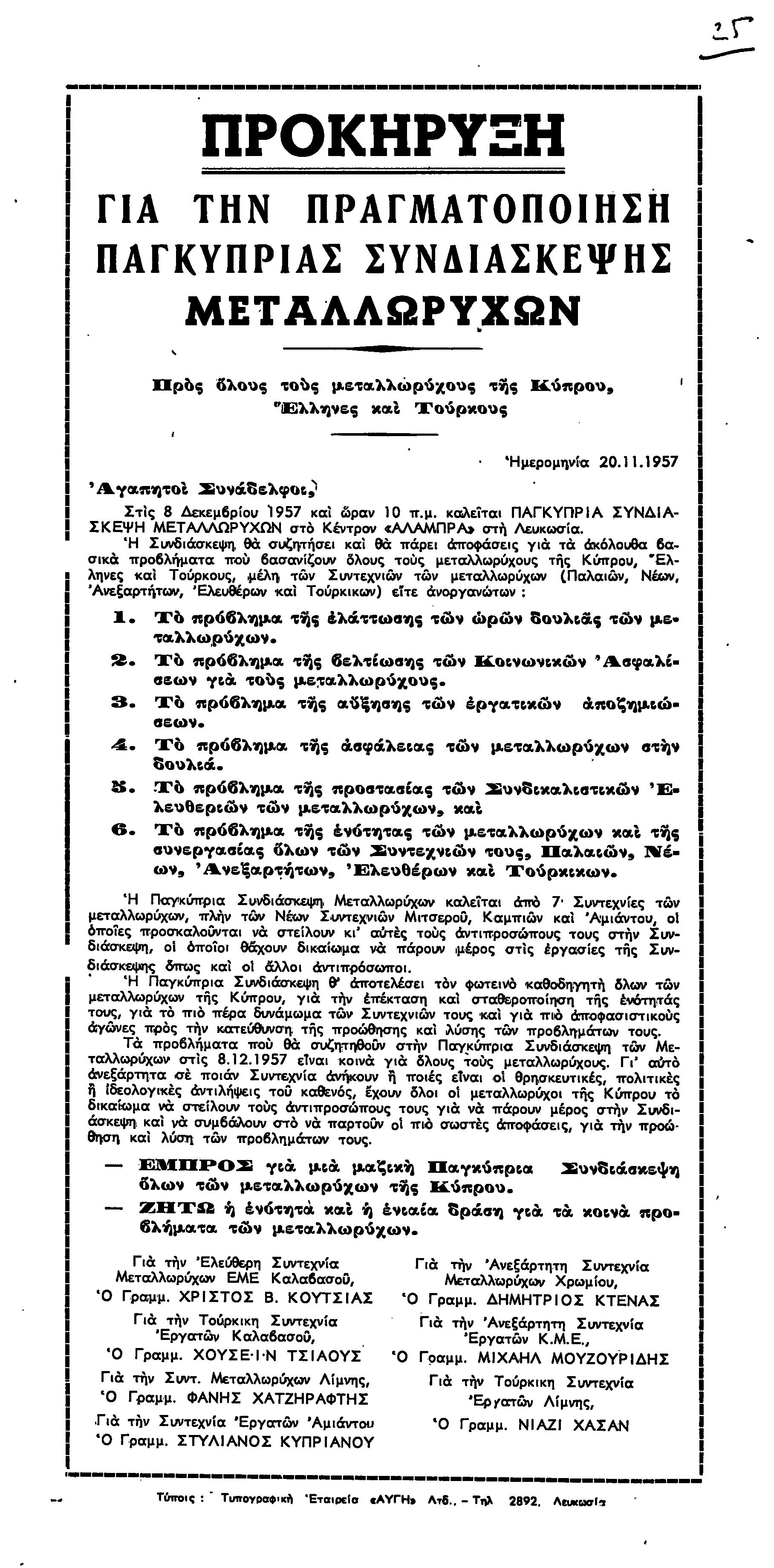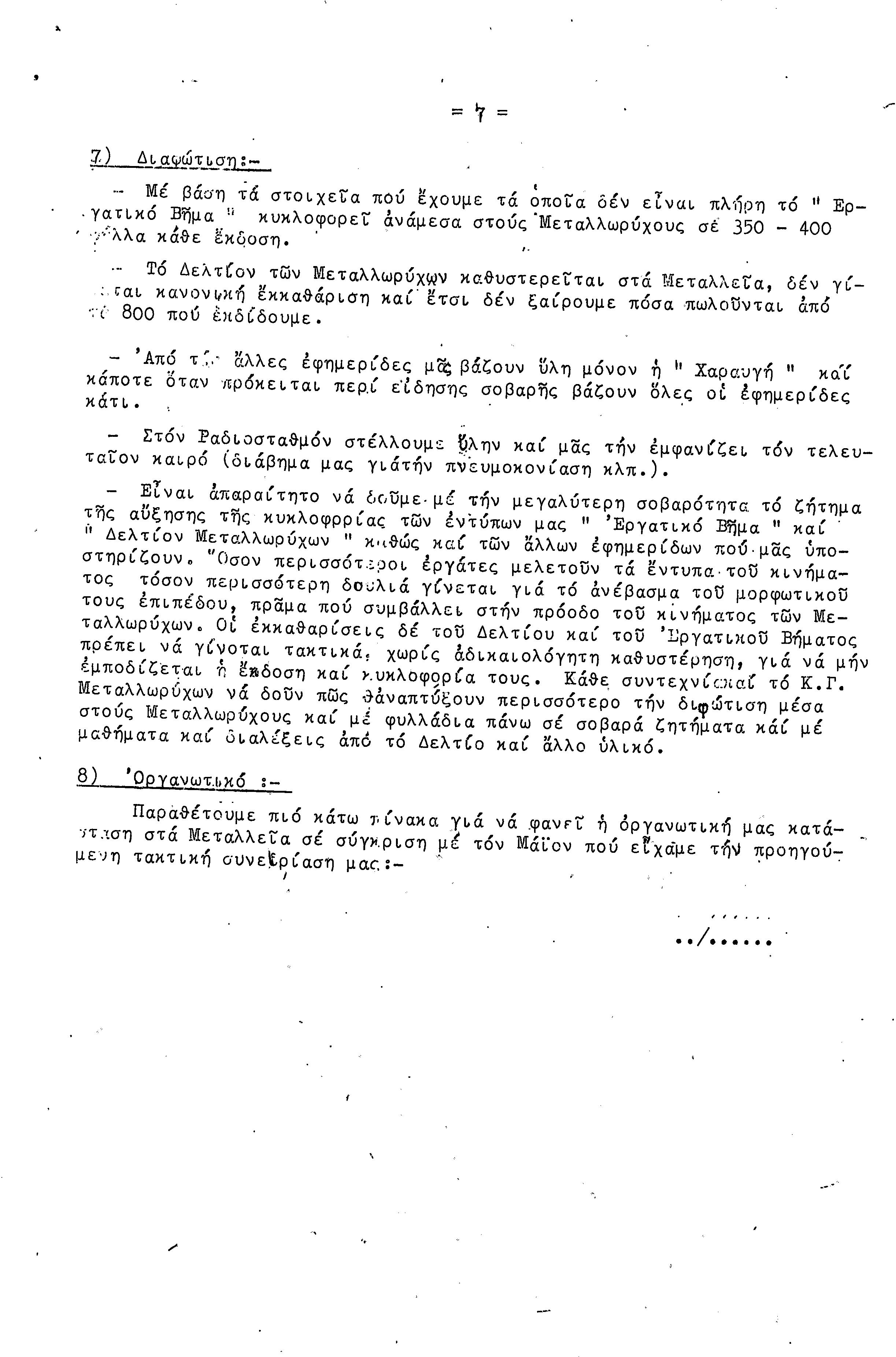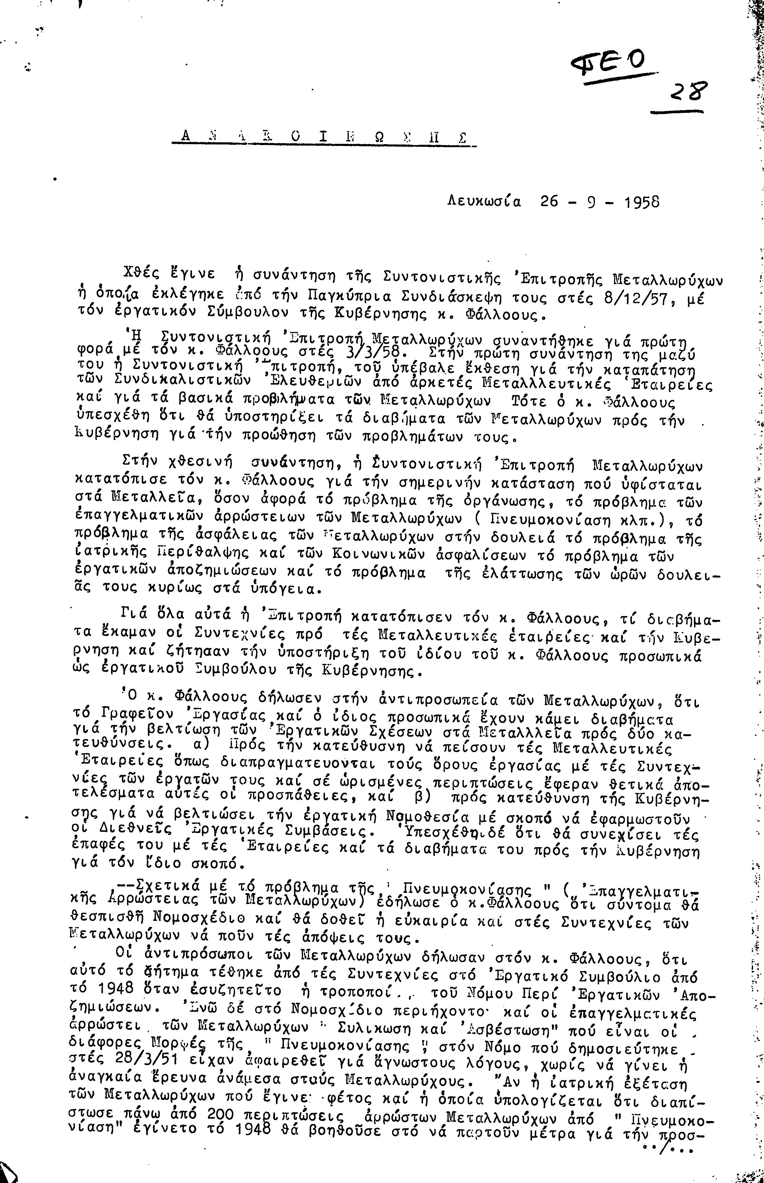 ΚΕΝΤΡΙΚΟ ΟΡΓΑΝΩΤΙΚΟ ΓΡΑΦΕΙΟ ΜΕΤΑΛΛΩΡΥΧΩΝ 1957-1960