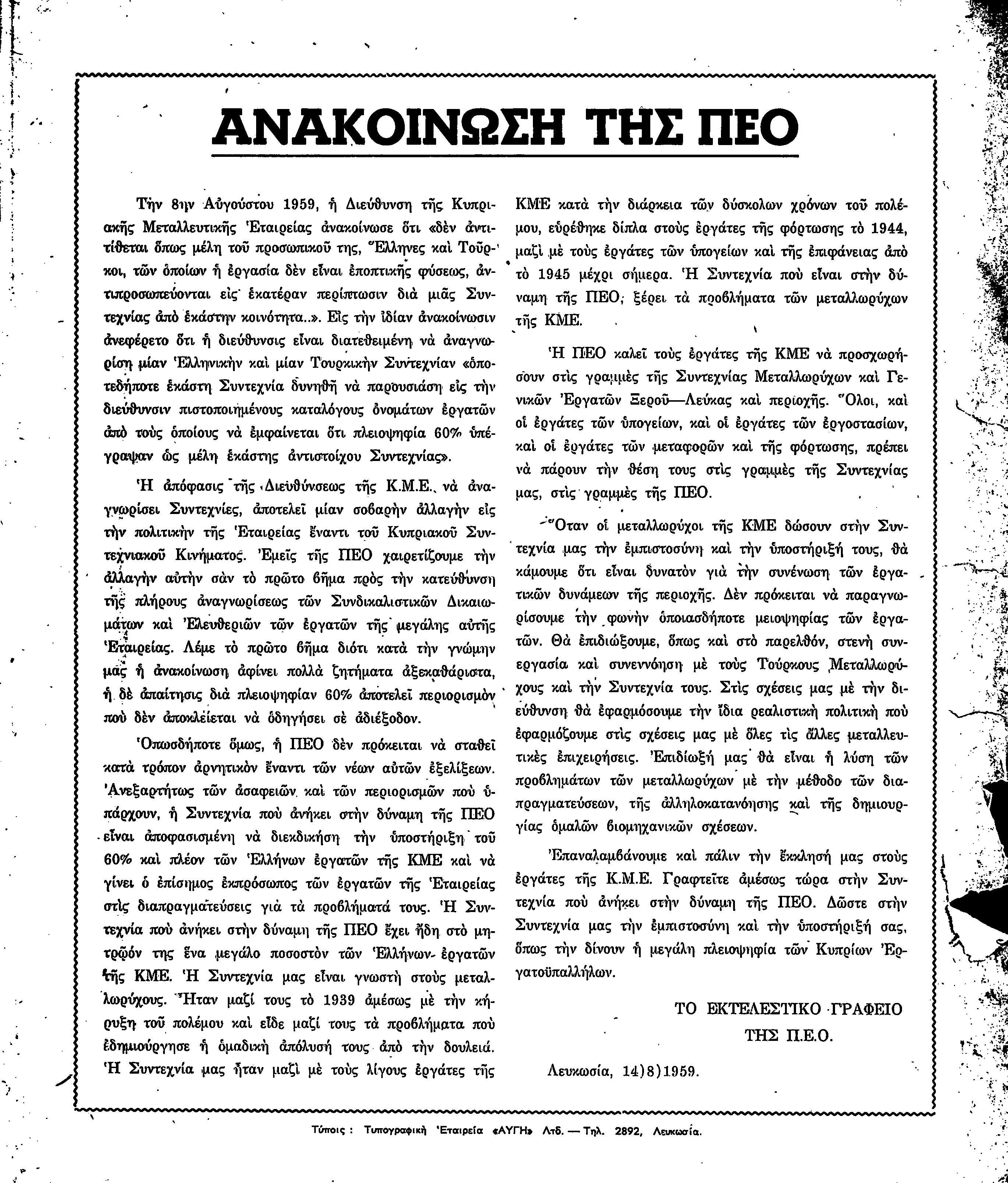 ΑΝΑΚΟΙΝΩΣΕΙΣ 1959-1963 by Παγκύπρια Εργατική Ομοσπονδία - Issuu