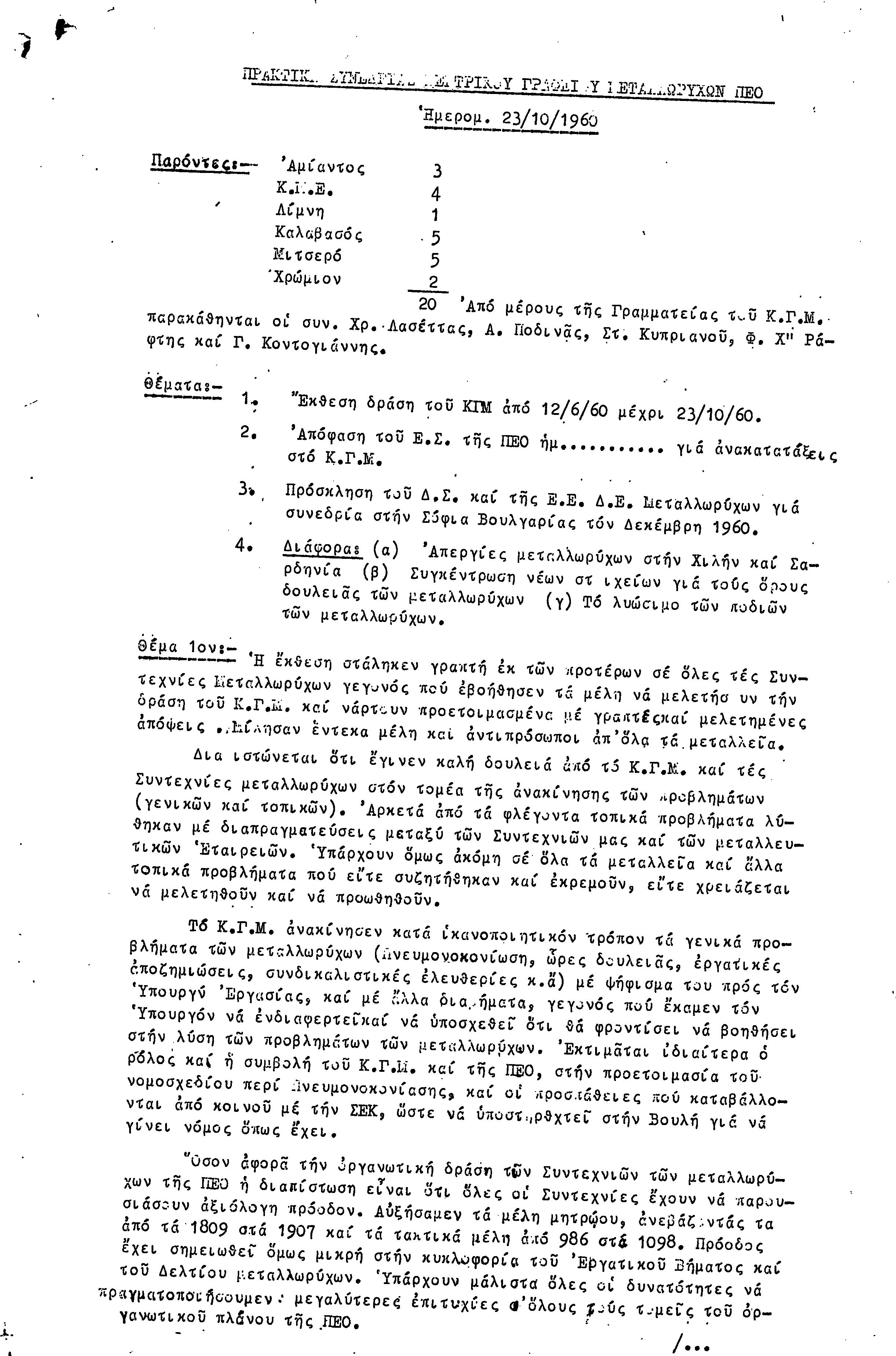 ΠΡΑΚΤΙΚΑ ΣΥΝΤΕΧΝΙΑΣ ΜΕΤΑΛΛΩΡΥΧΩΝ 1960-1961